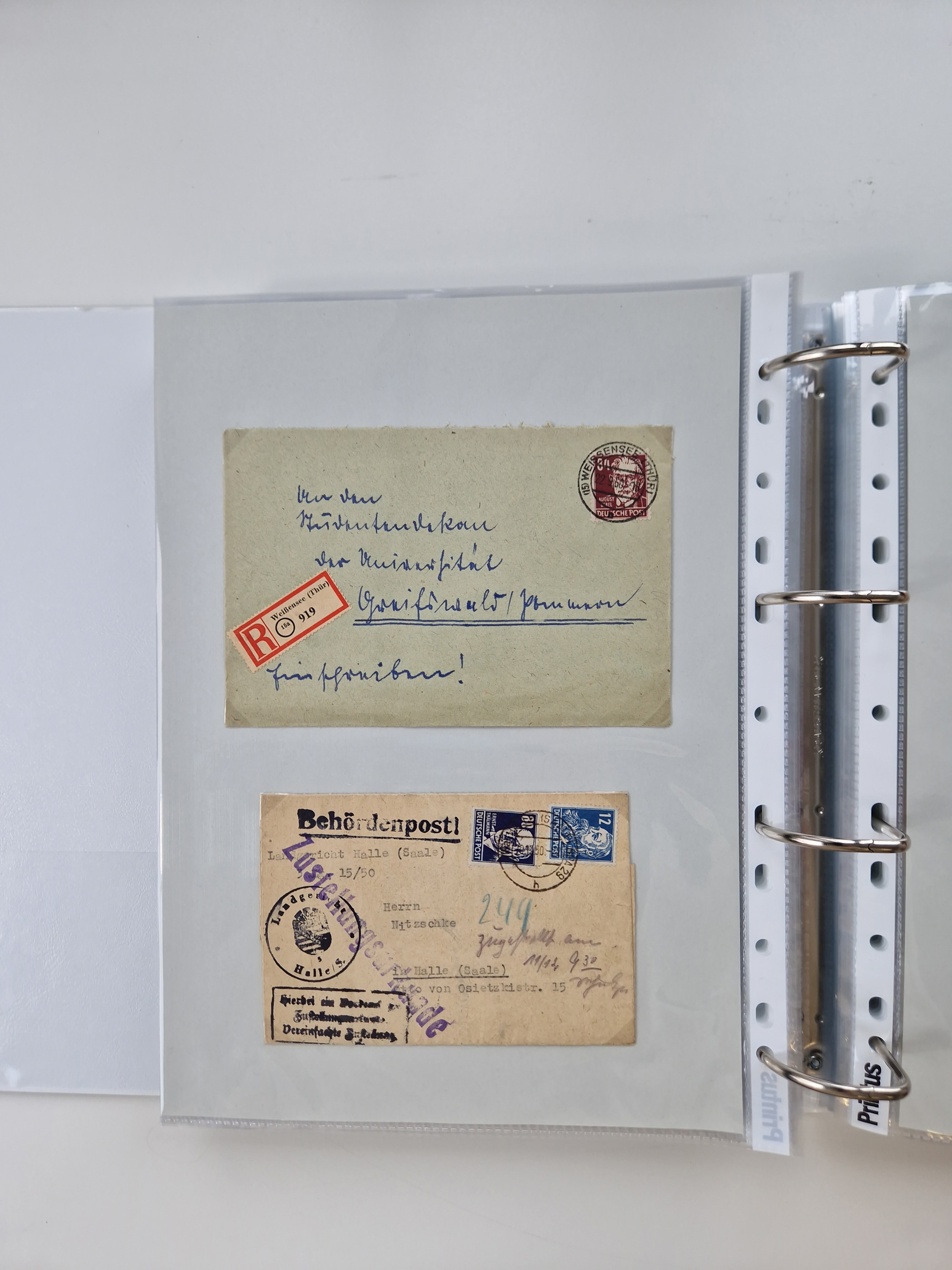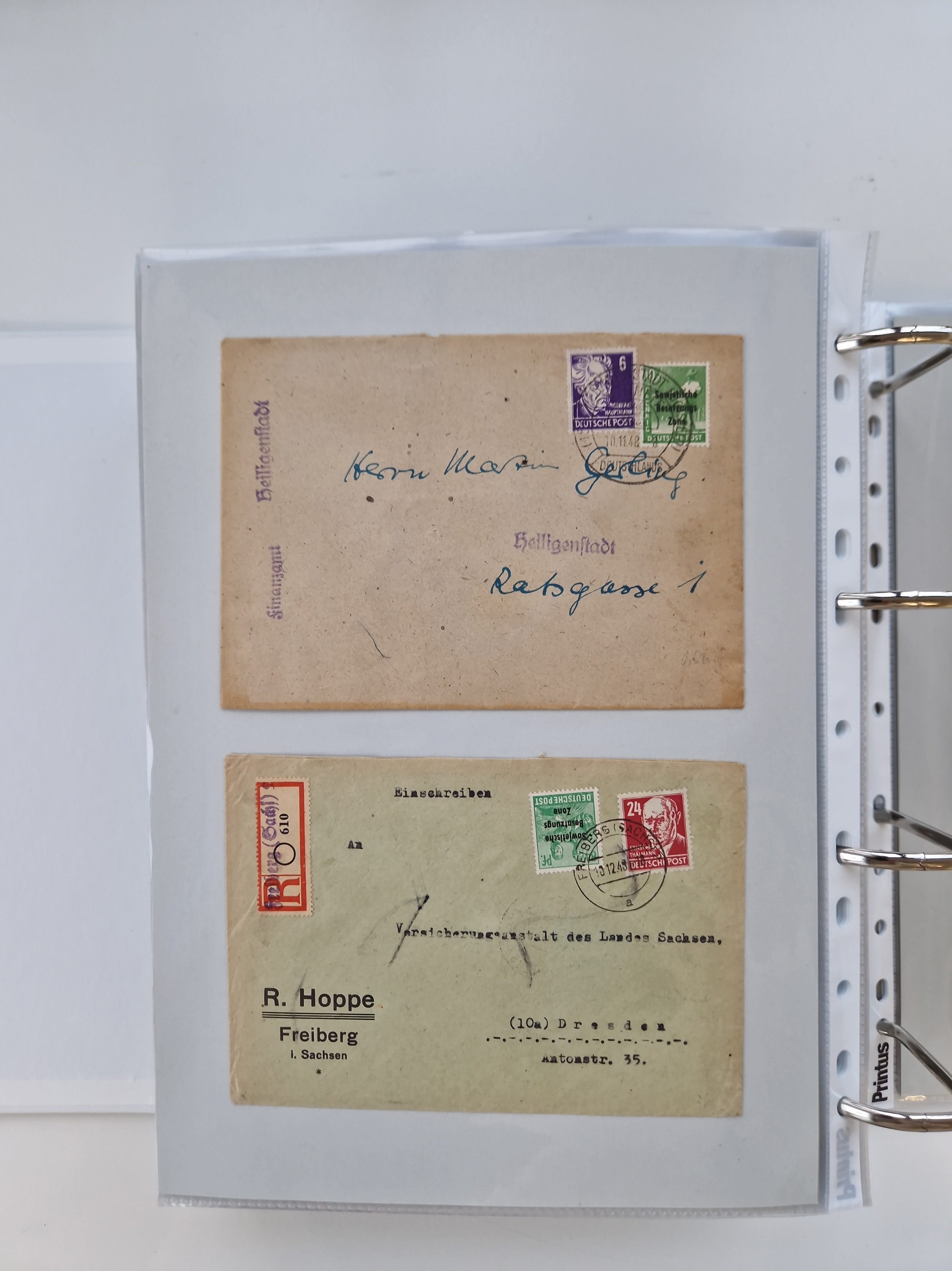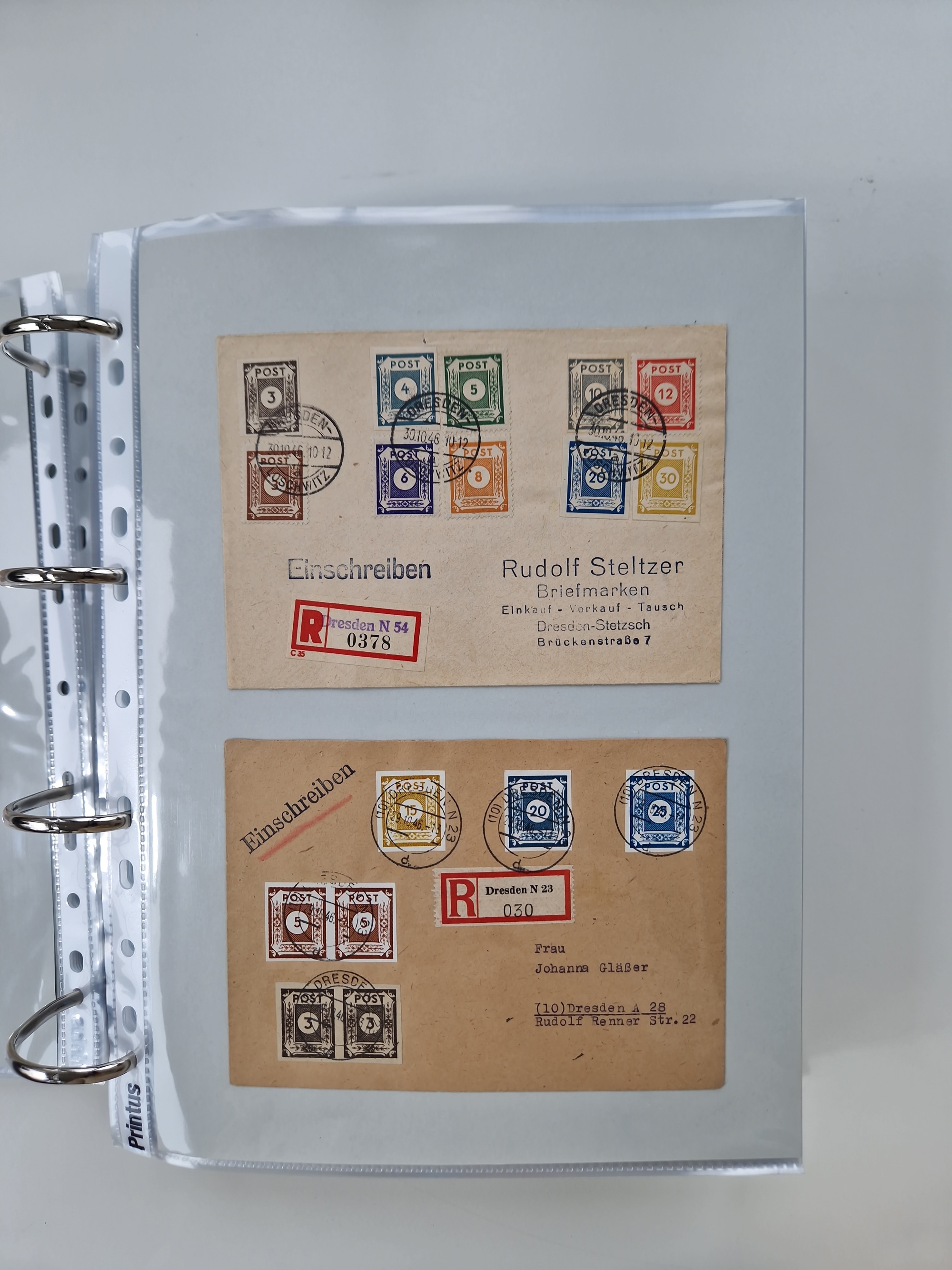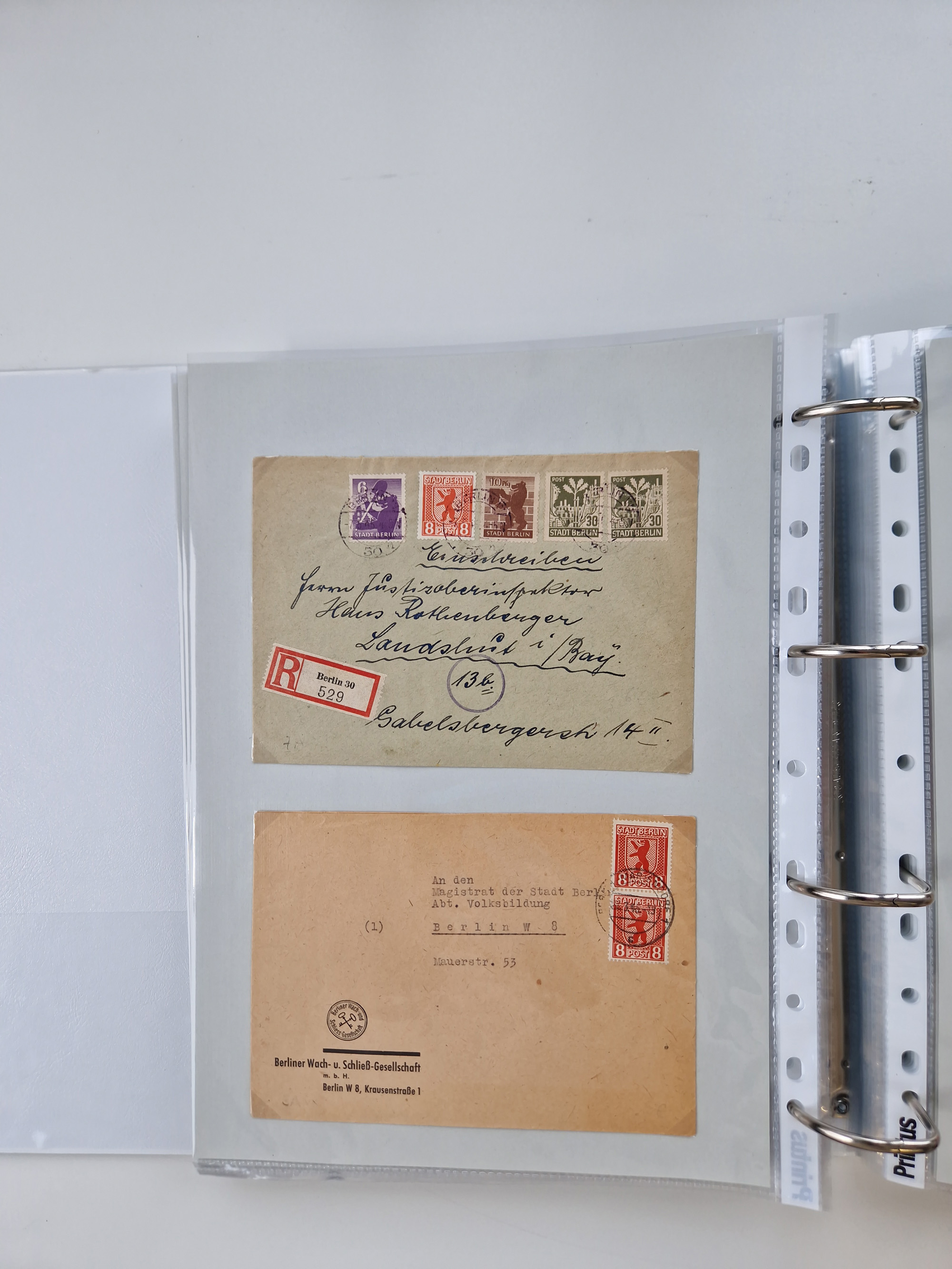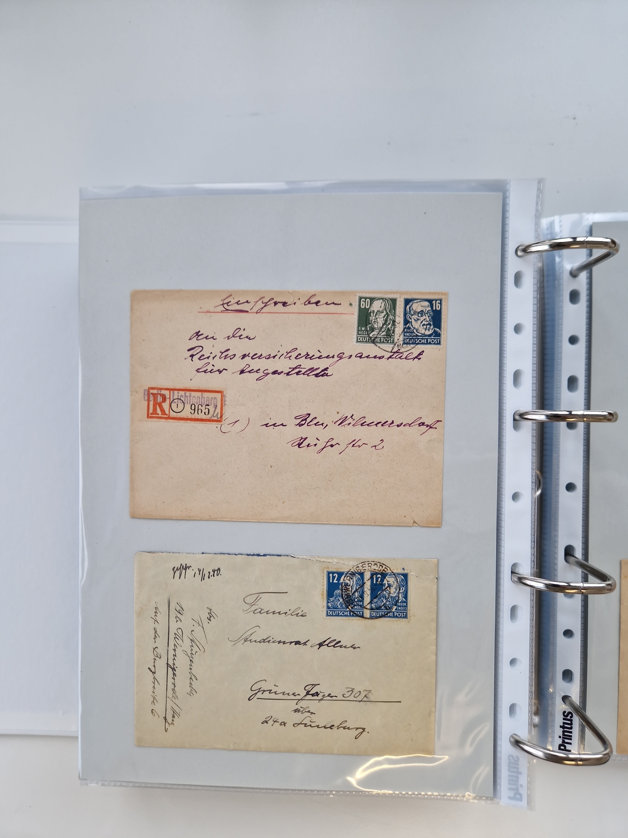 1945/48, geschätzt 200-300 Briefe mit Sammlerpost, vielen R-Briefen, mehrere Briefe mit POL-Lochungen aus Halle inkl. Briefe mit ZU, Notstempel, Gebühr bezahlt, Zensuren, Gebührenmeldung mit senkrechtem Paar Arbeiter 60 Pfg., Zehnfachfrankaturen mit Mehrfachfrankaturen bis 84 Pfg. und fünf R-Briefe mit Amts-R-Zettel von Bad Nauheim mit Buchstaben “B", “E”, “G” und “J” (einmal ohne Buchstaben), meist in guter Erhaltung