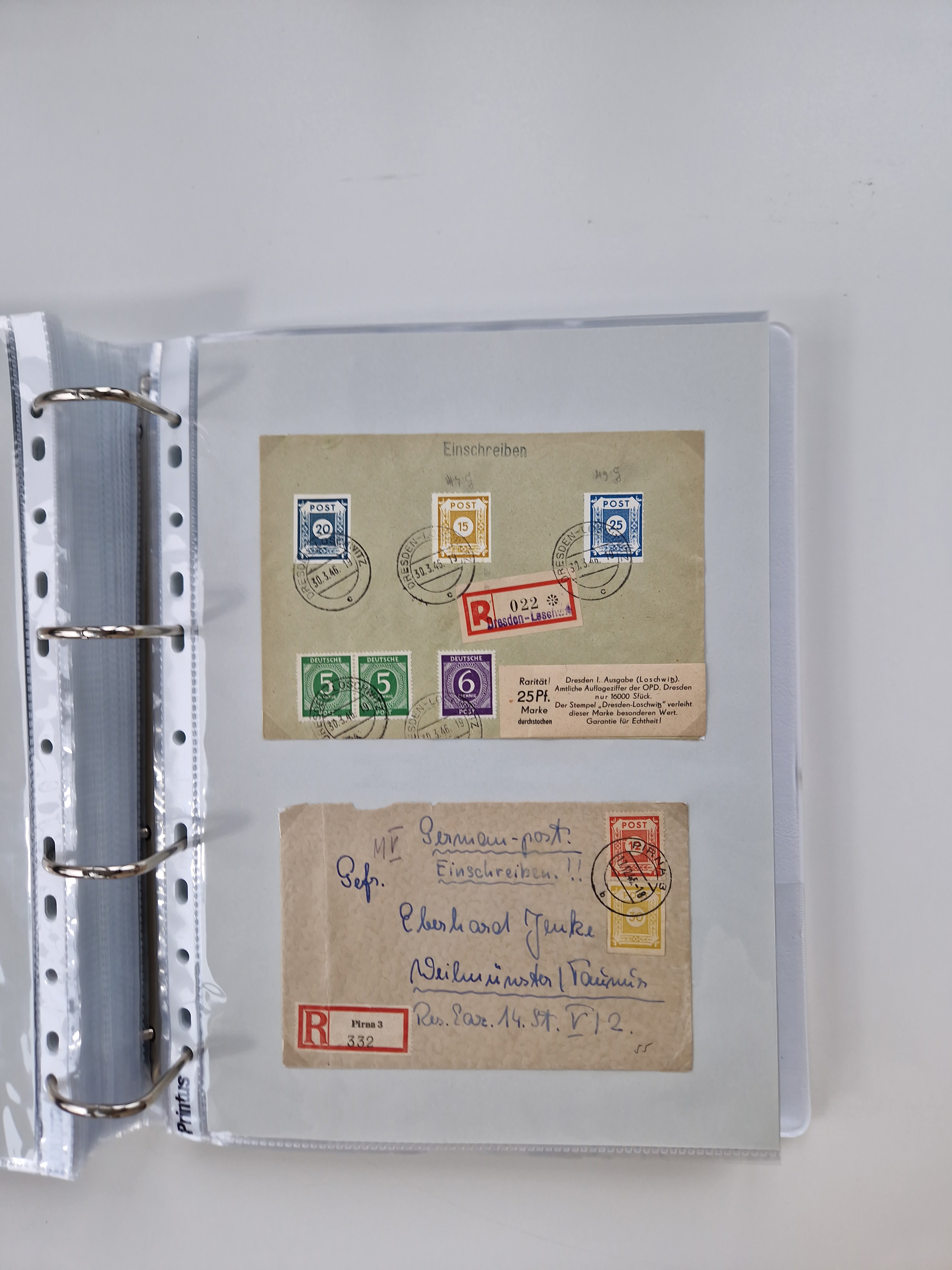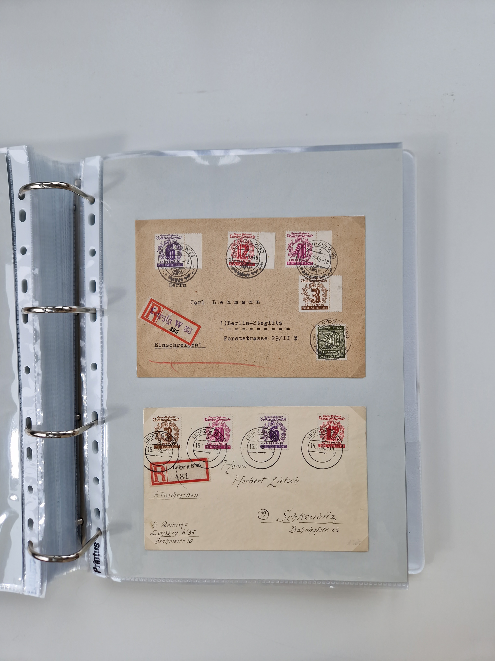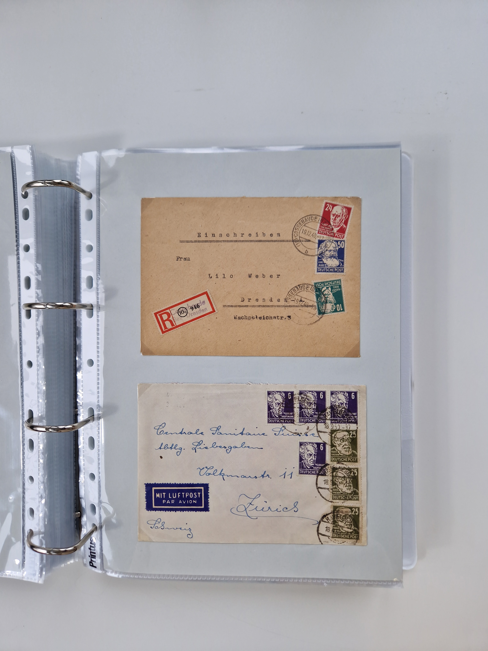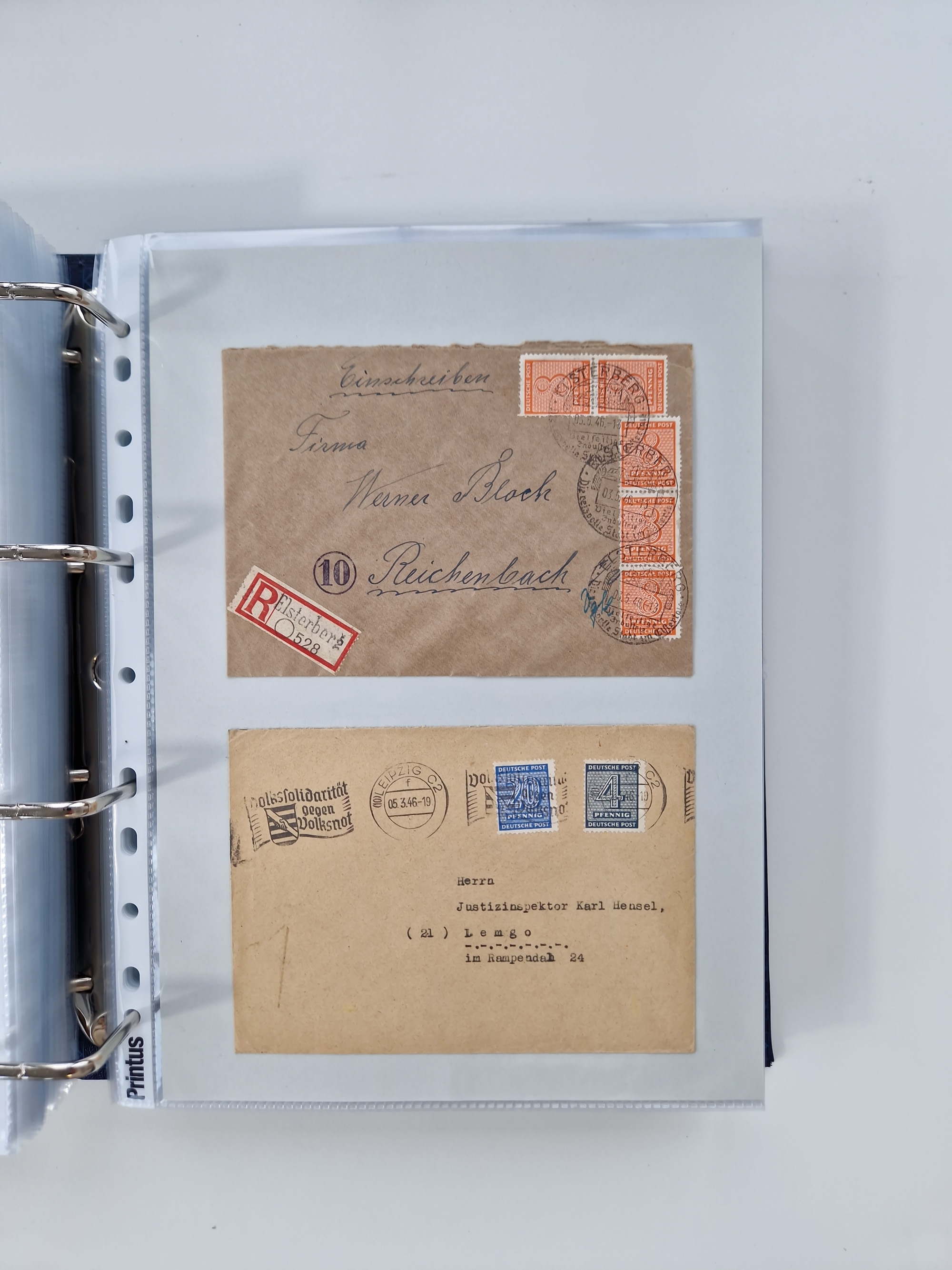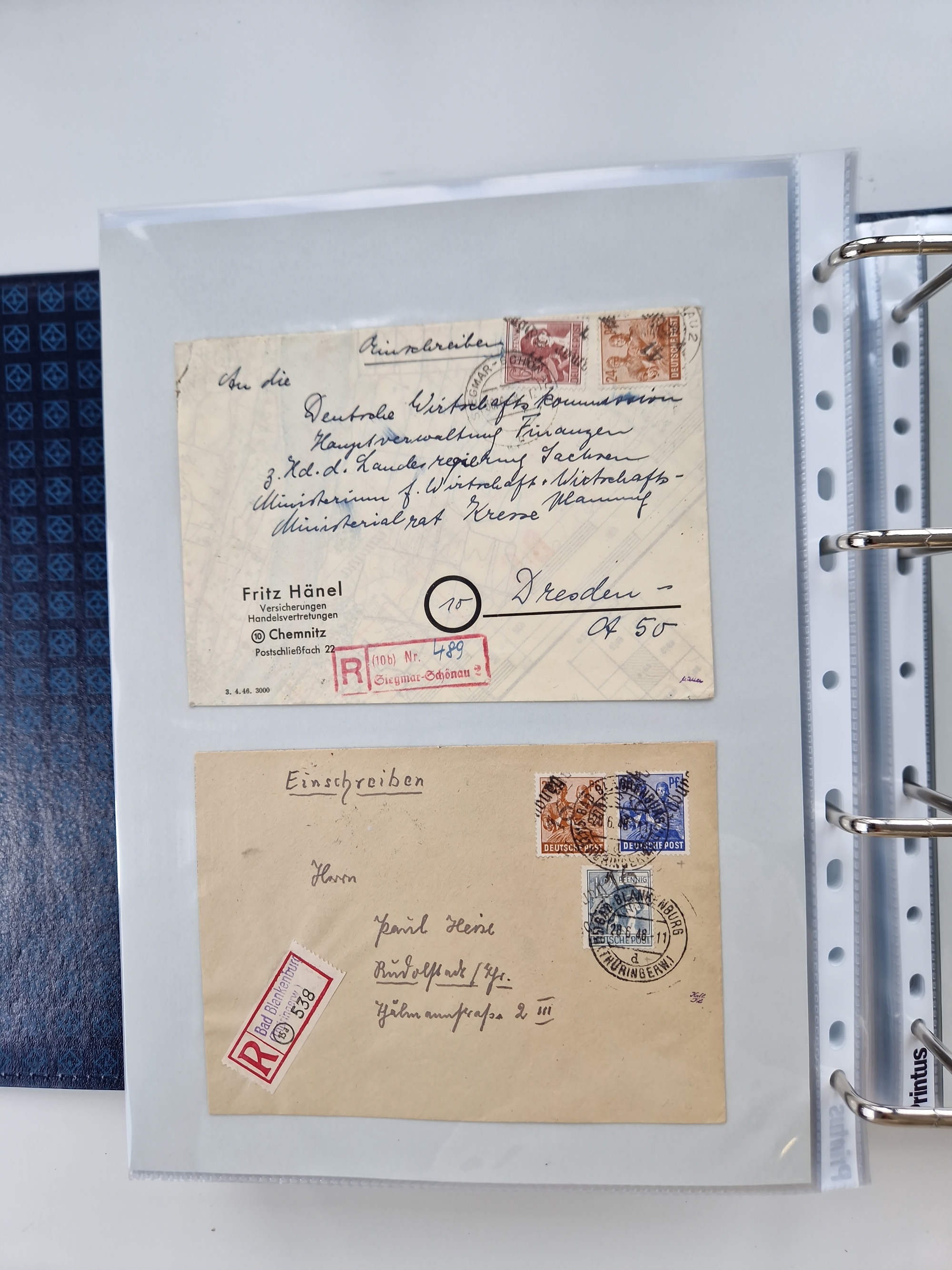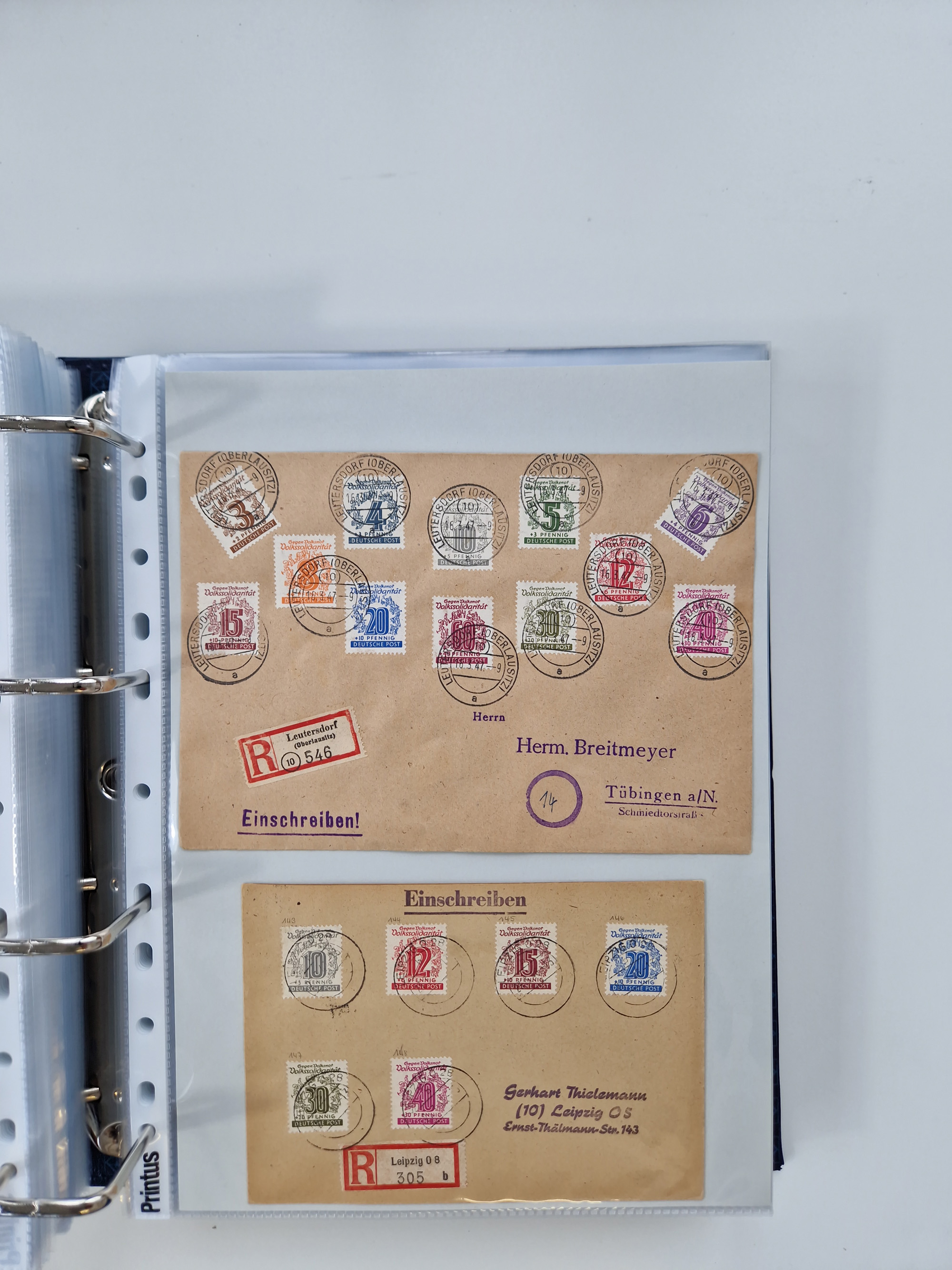 1945/48, geschätzt 200-300 Briefe mit Sammlerpost, vielen R-Briefen, mehrere Briefe mit POL-Lochungen aus Halle inkl. Briefe mit ZU, Notstempel, Gebühr bezahlt, Zensuren, Gebührenmeldung mit senkrechtem Paar Arbeiter 60 Pfg., Zehnfachfrankaturen mit Mehrfachfrankaturen bis 84 Pfg. und fünf R-Briefe mit Amts-R-Zettel von Bad Nauheim mit Buchstaben “B", “E”, “G” und “J” (einmal ohne Buchstaben), meist in guter Erhaltung