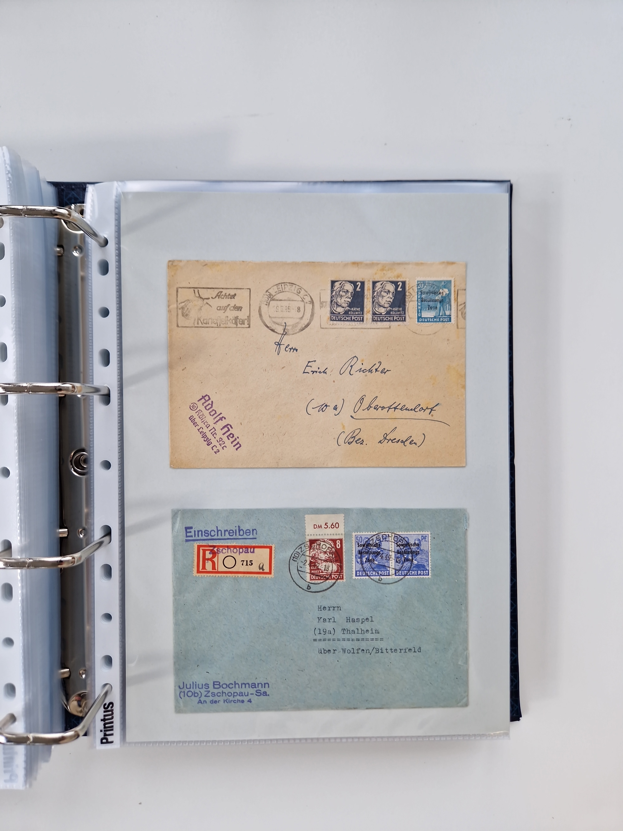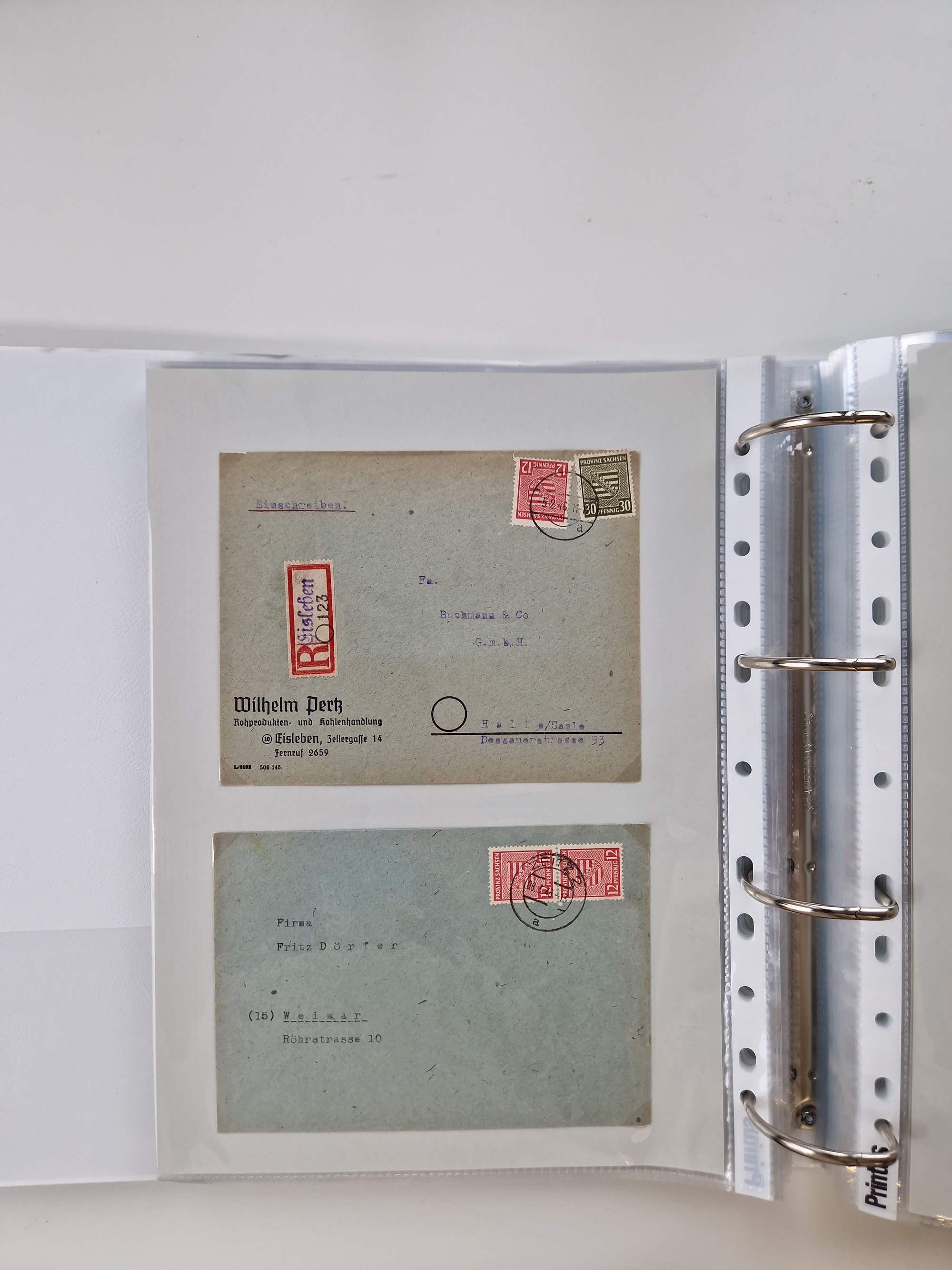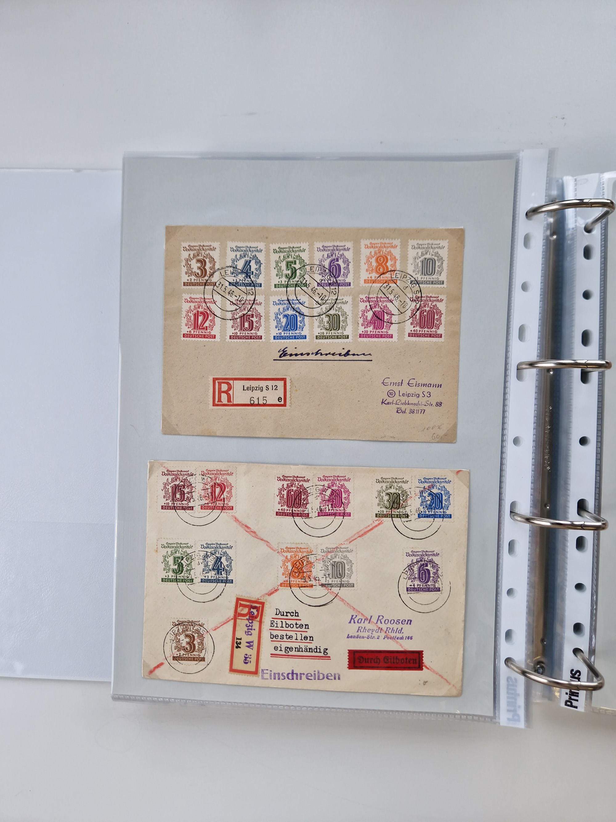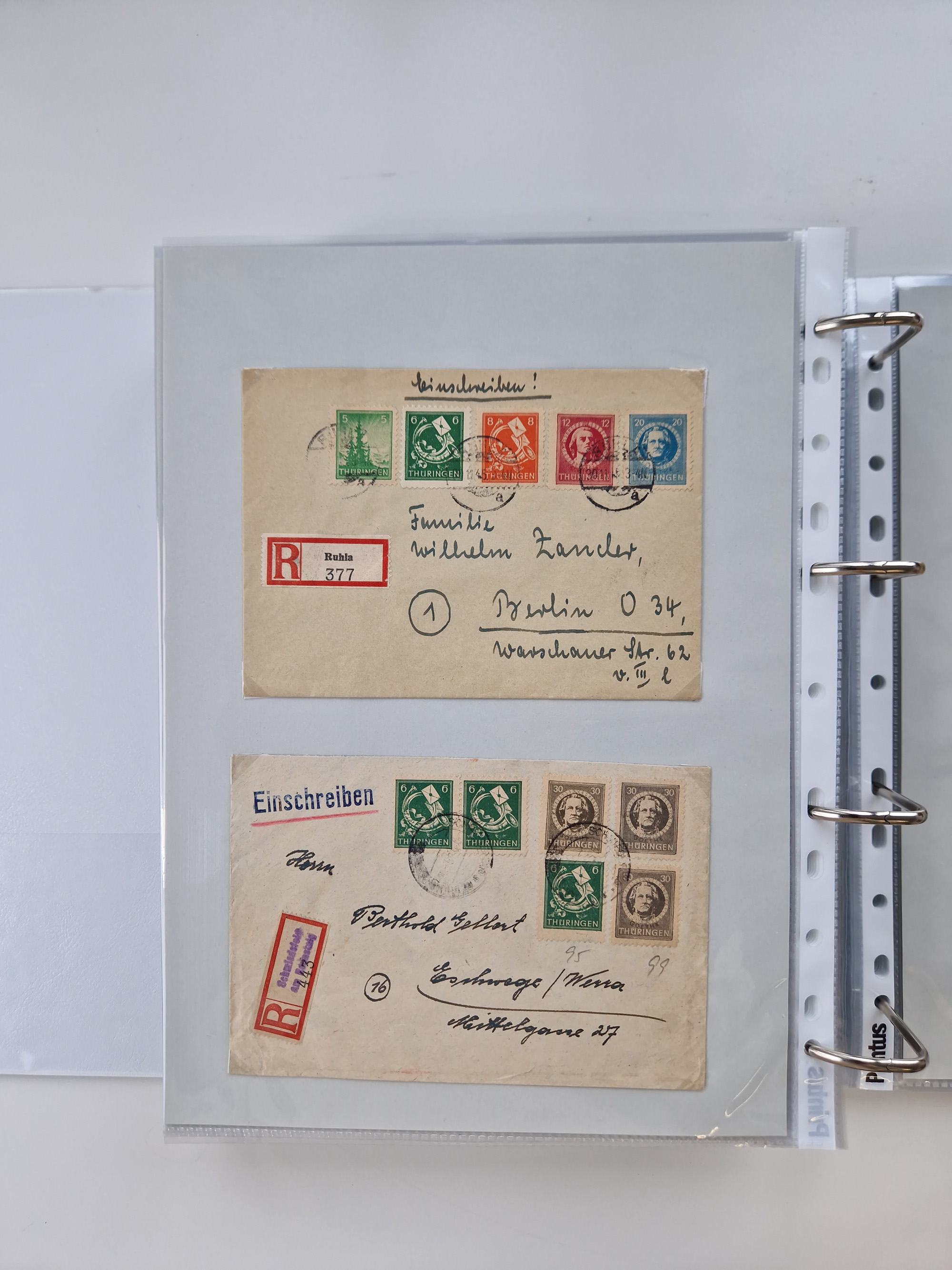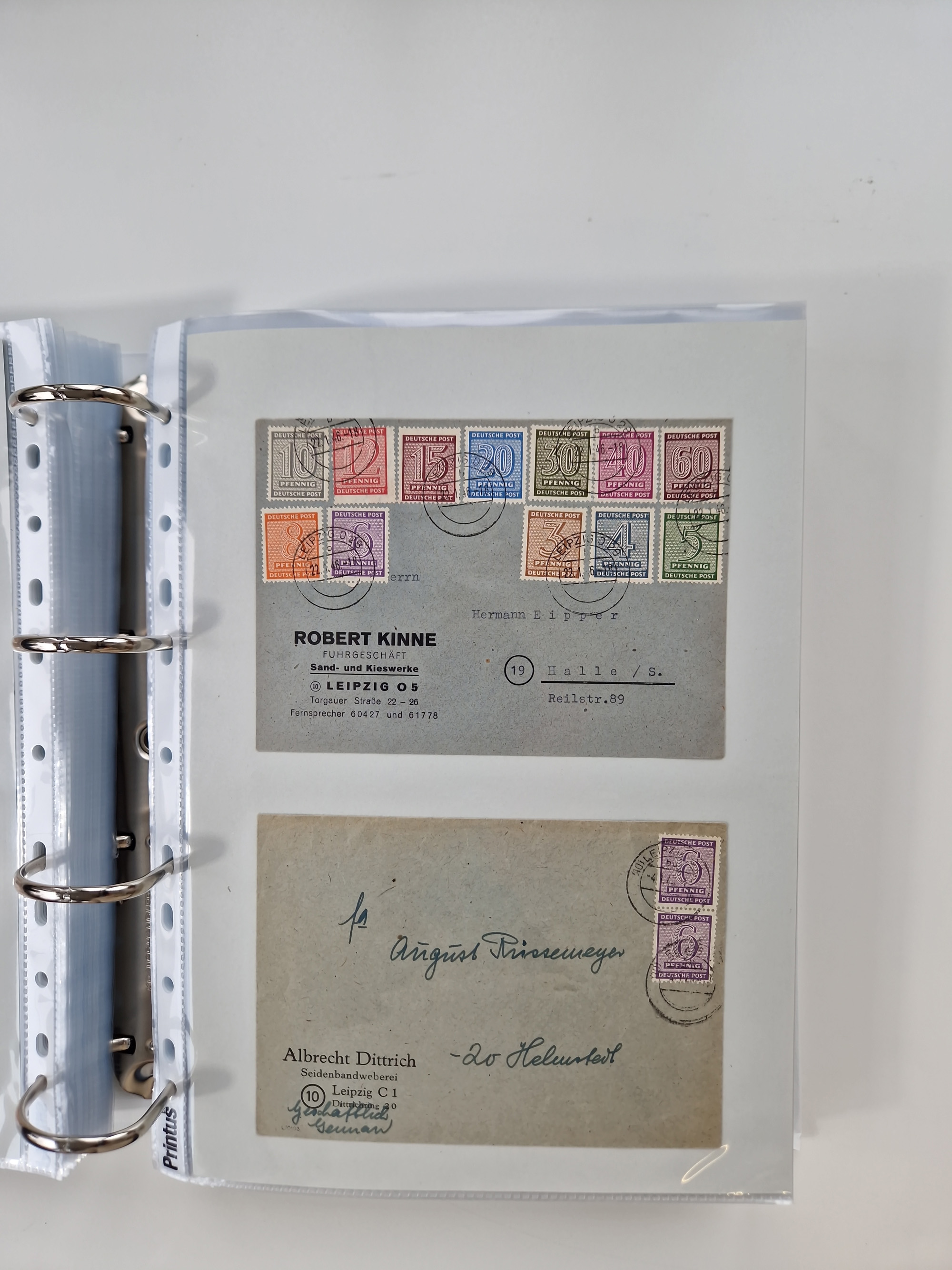 1945/48, geschätzt 200-300 Briefe mit Sammlerpost, vielen R-Briefen, mehrere Briefe mit POL-Lochungen aus Halle inkl. Briefe mit ZU, Notstempel, Gebühr bezahlt, Zensuren, Gebührenmeldung mit senkrechtem Paar Arbeiter 60 Pfg., Zehnfachfrankaturen mit Mehrfachfrankaturen bis 84 Pfg. und fünf R-Briefe mit Amts-R-Zettel von Bad Nauheim mit Buchstaben “B", “E”, “G” und “J” (einmal ohne Buchstaben), meist in guter Erhaltung