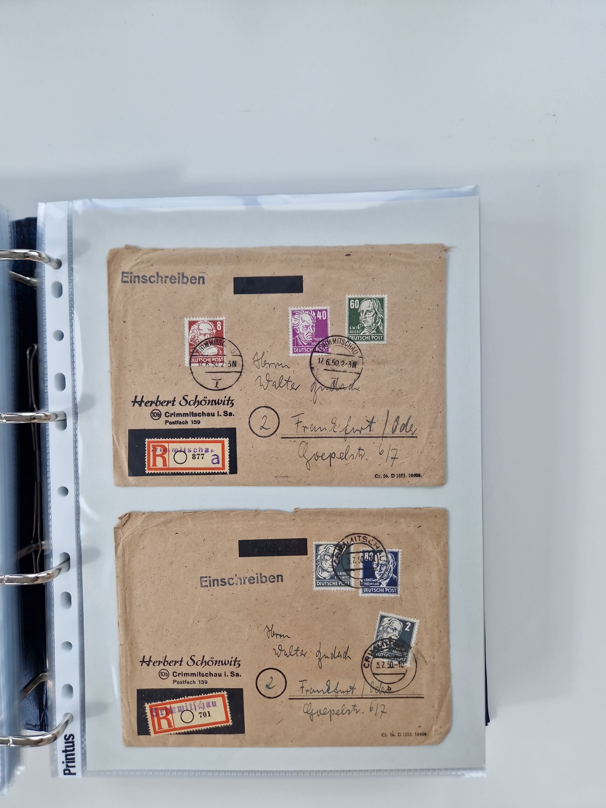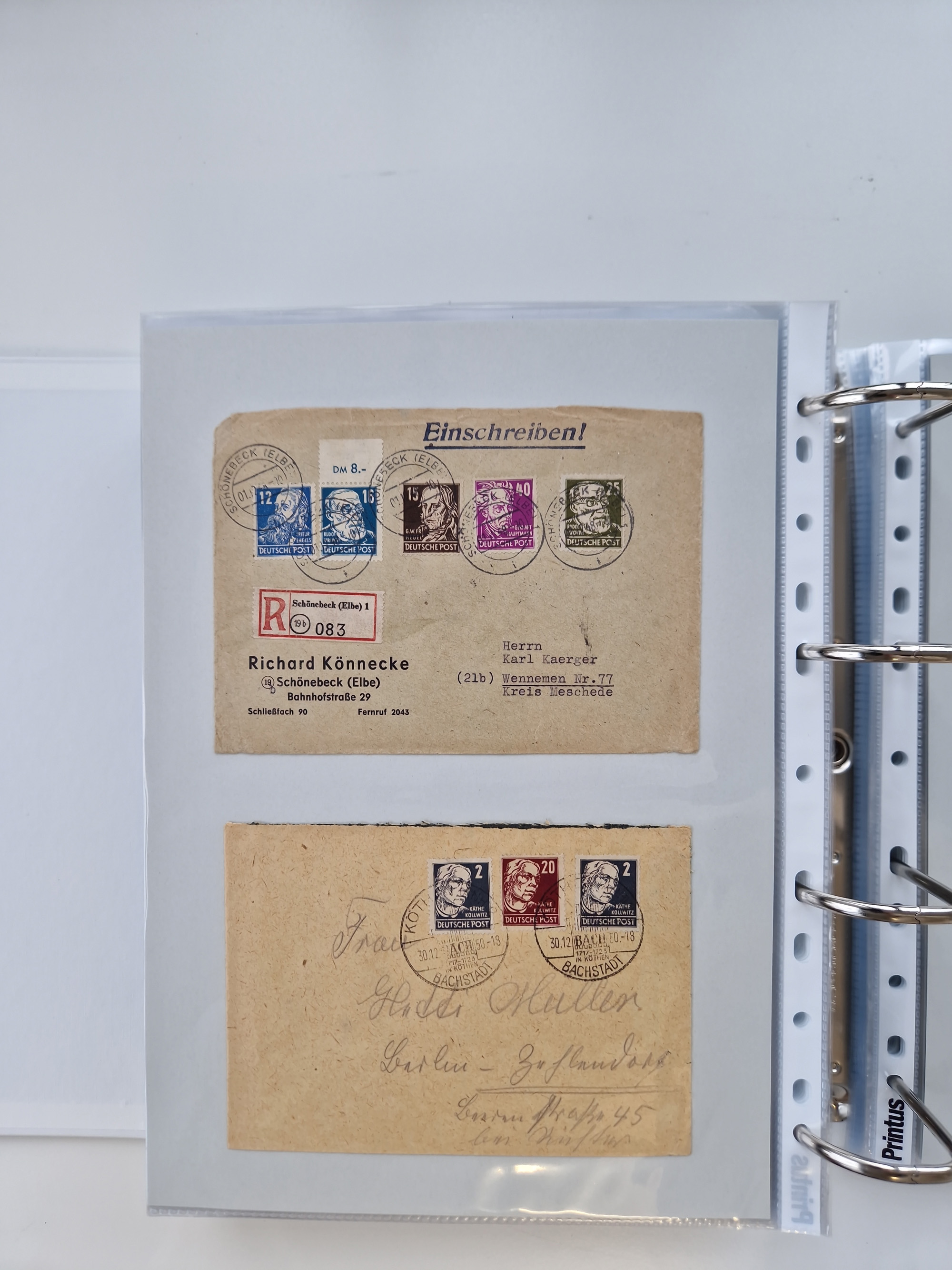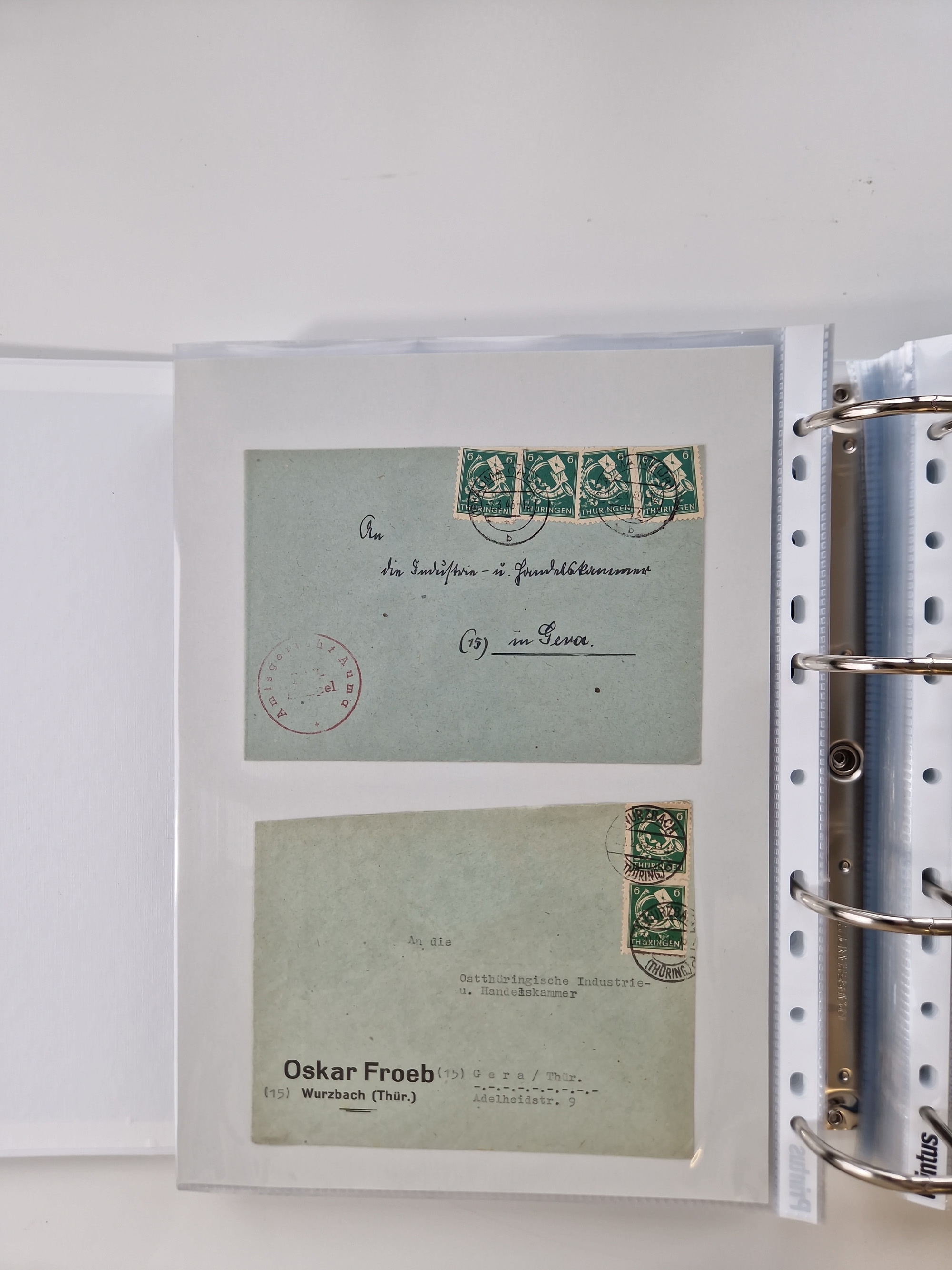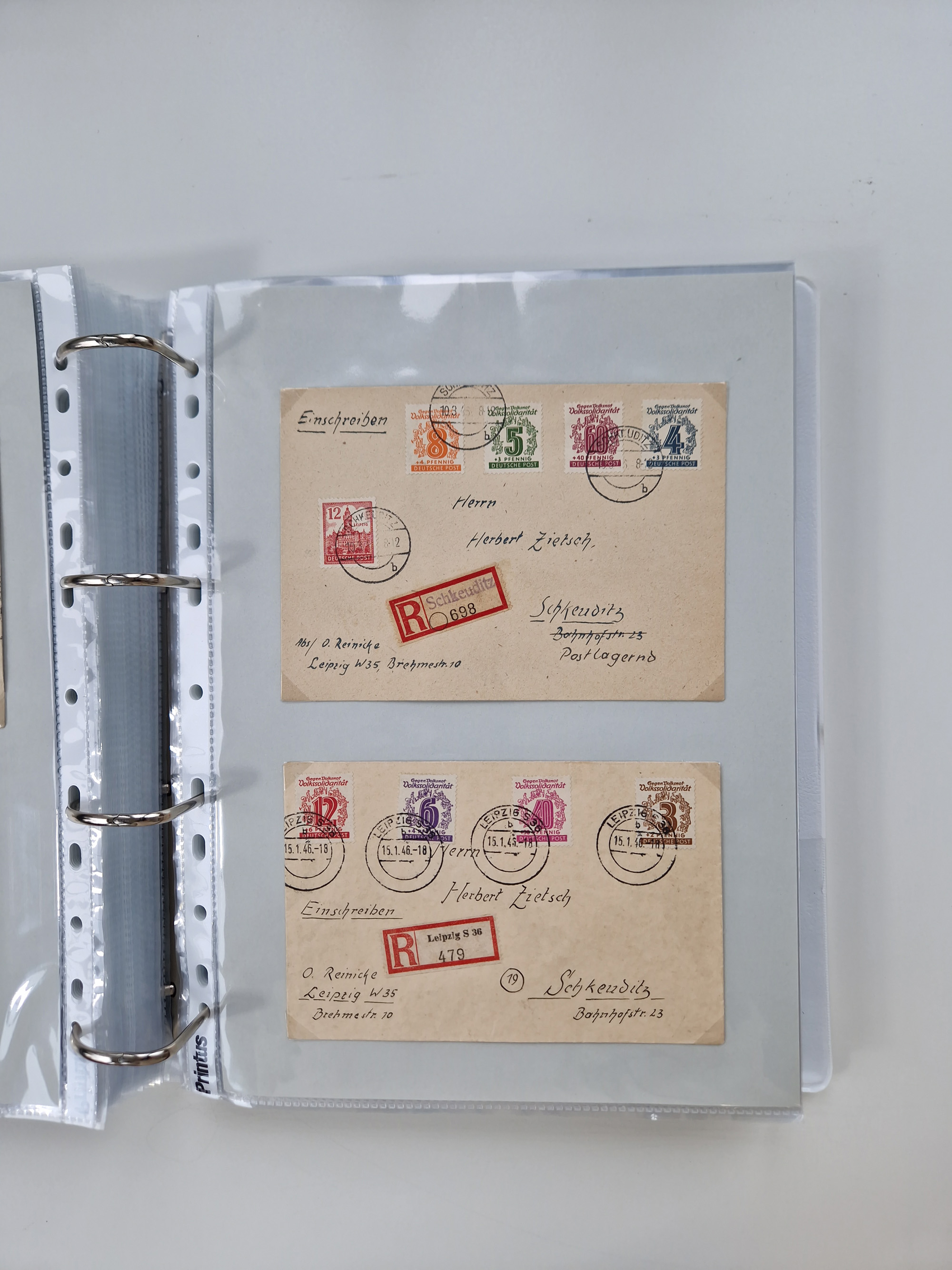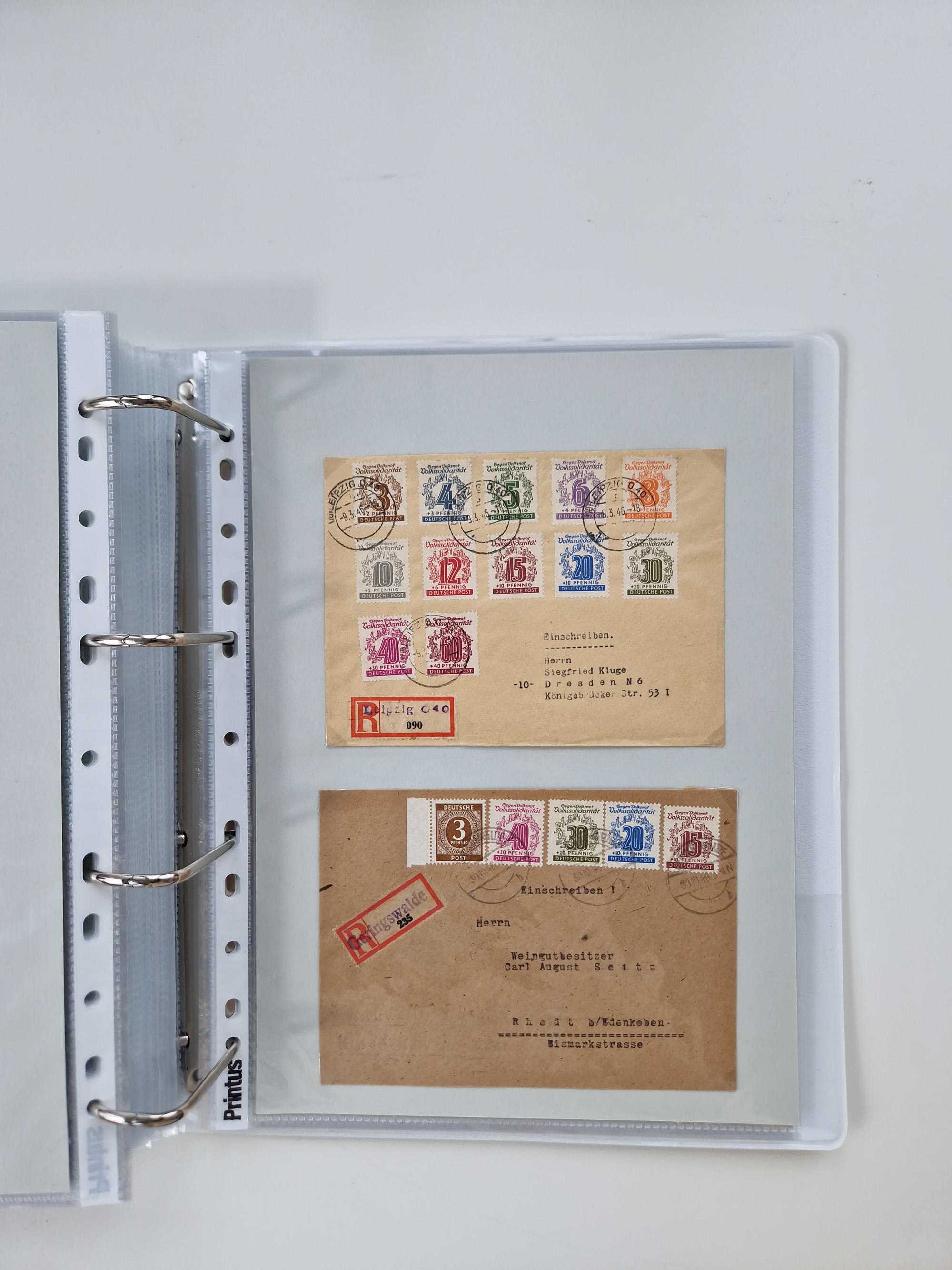 1945/48, geschätzt 200-300 Briefe mit Sammlerpost, vielen R-Briefen, mehrere Briefe mit POL-Lochungen aus Halle inkl. Briefe mit ZU, Notstempel, Gebühr bezahlt, Zensuren, Gebührenmeldung mit senkrechtem Paar Arbeiter 60 Pfg., Zehnfachfrankaturen mit Mehrfachfrankaturen bis 84 Pfg. und fünf R-Briefe mit Amts-R-Zettel von Bad Nauheim mit Buchstaben “B", “E”, “G” und “J” (einmal ohne Buchstaben), meist in guter Erhaltung