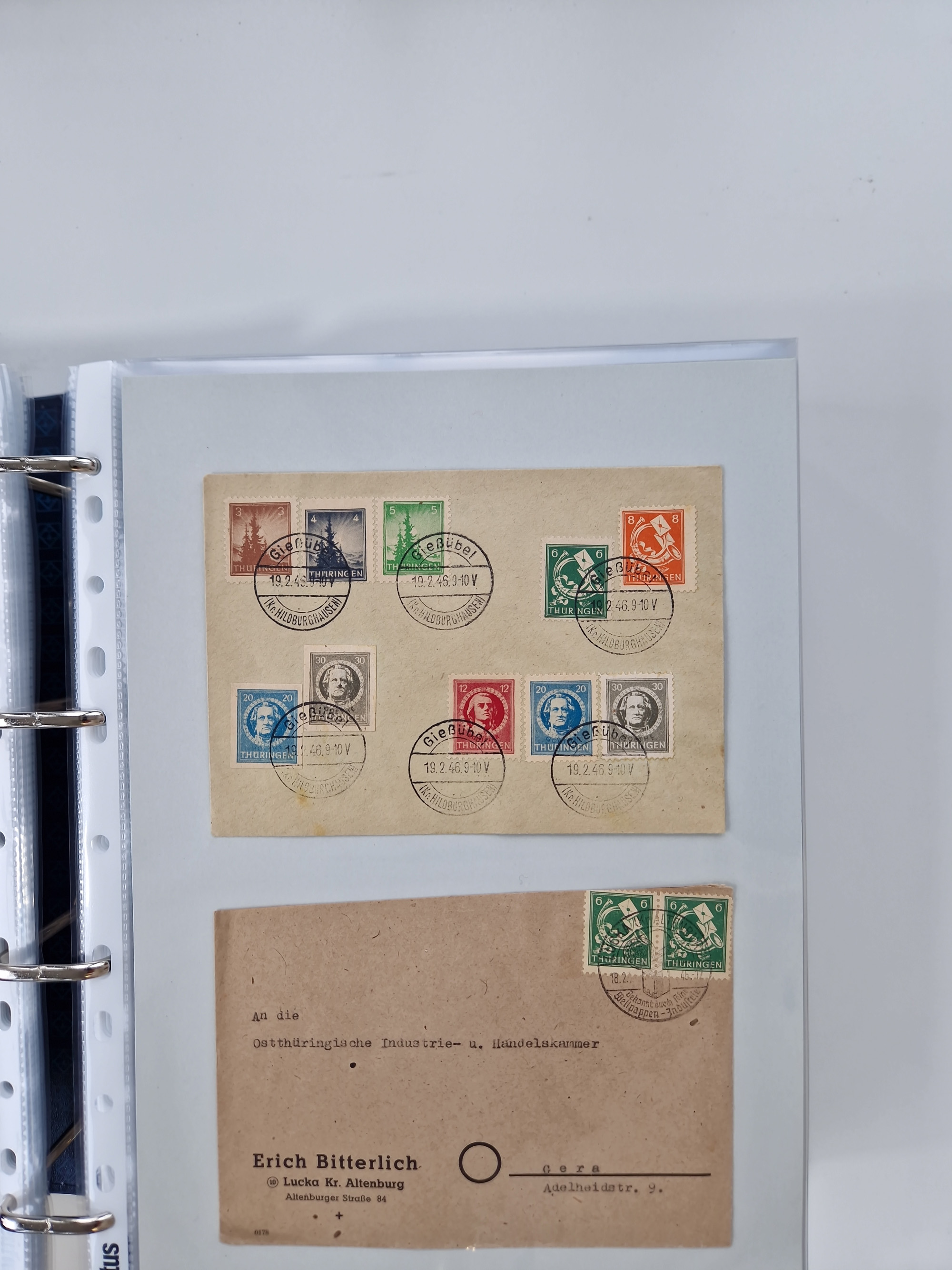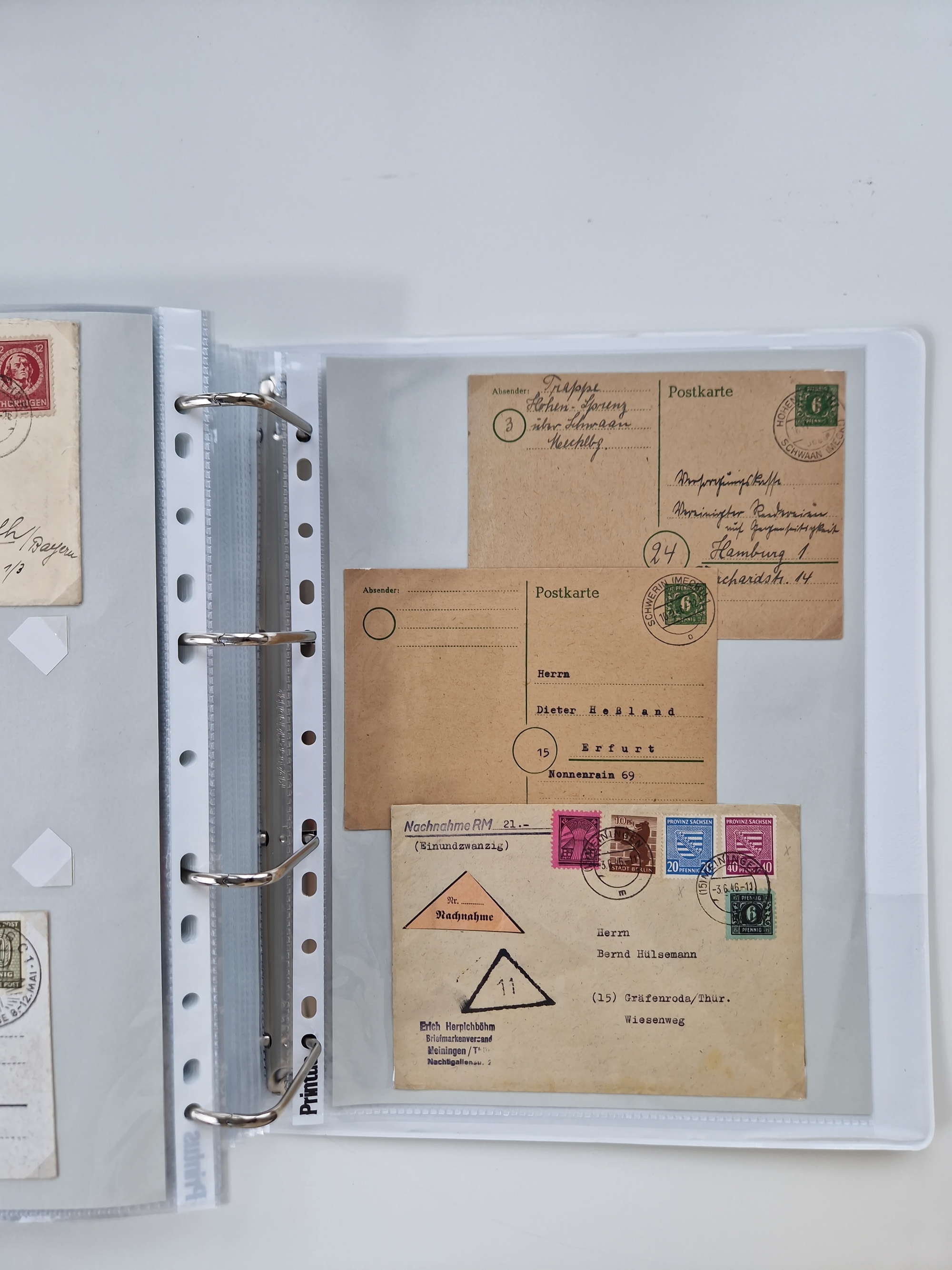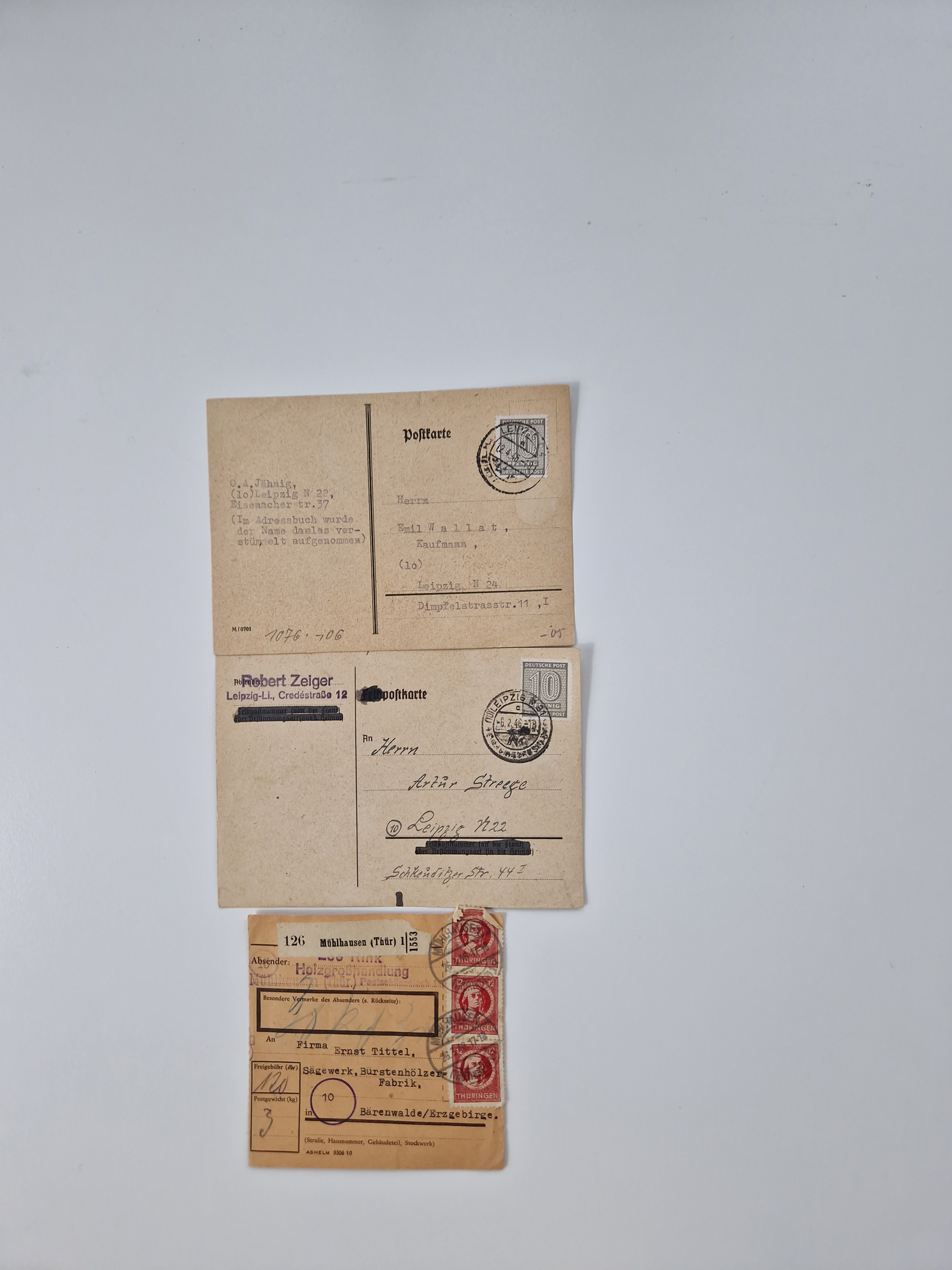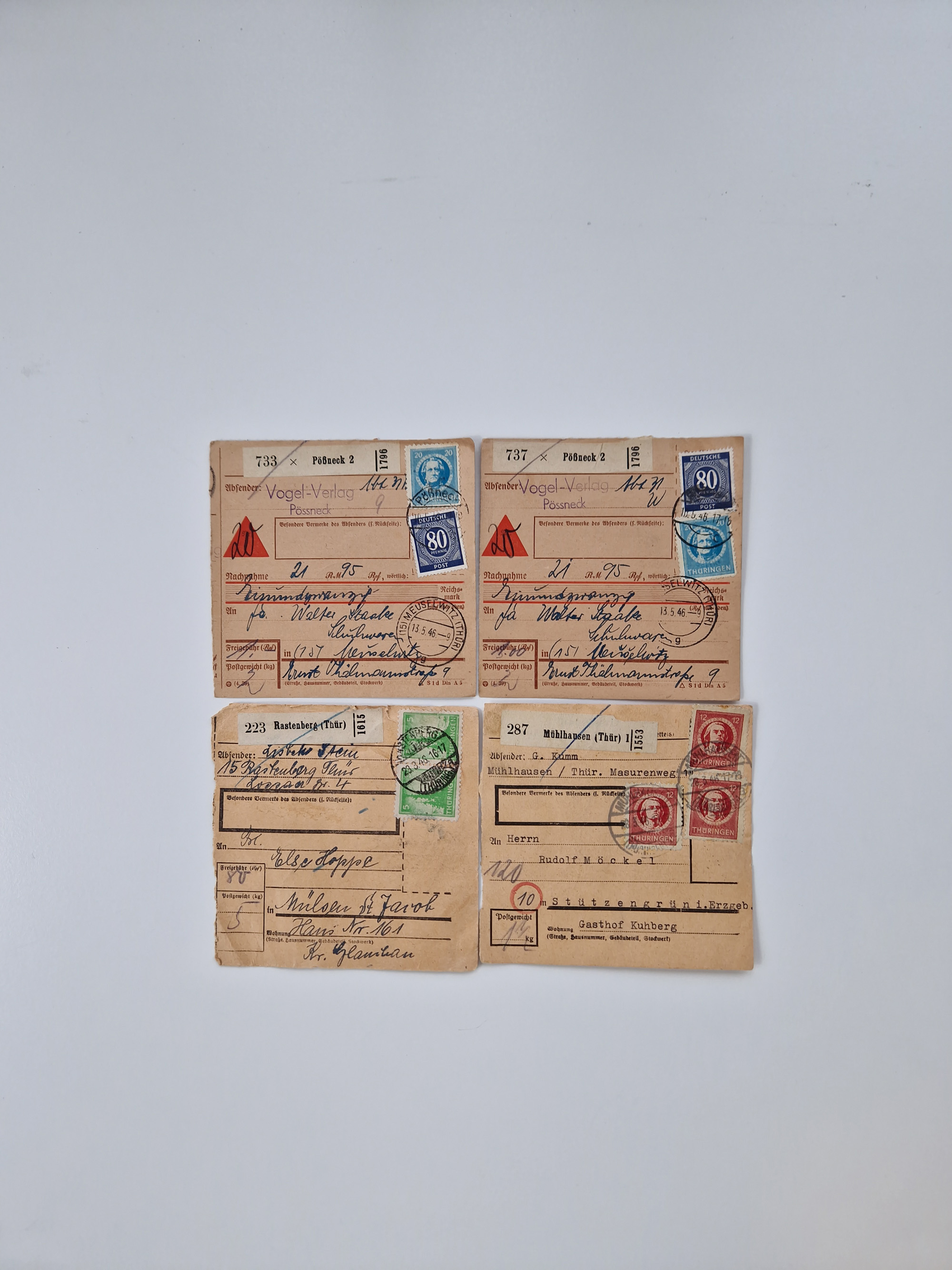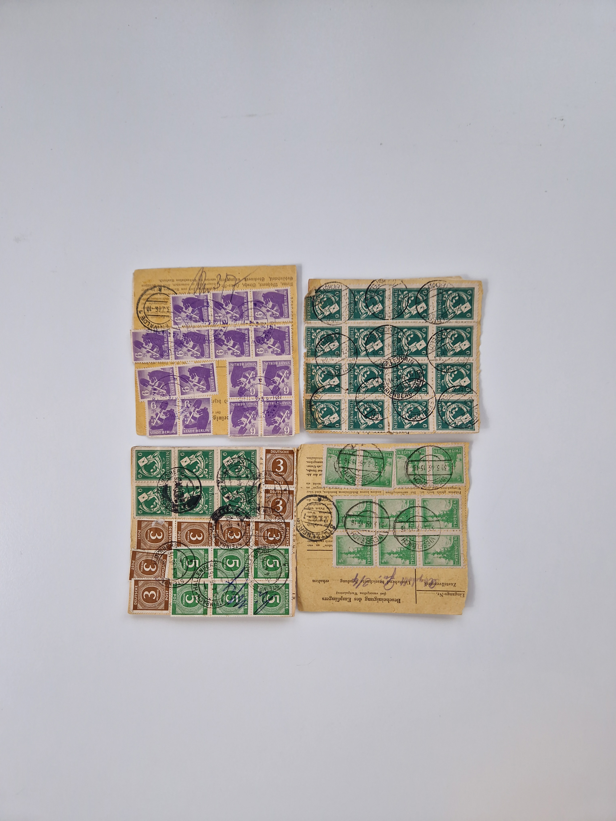 1945/48, kleiner Bestand “Paketkarten-Ausschnitte” ab Mecklenburg Vorpommern mit u.a. viel Thüringen, dazu etwas anderes Material