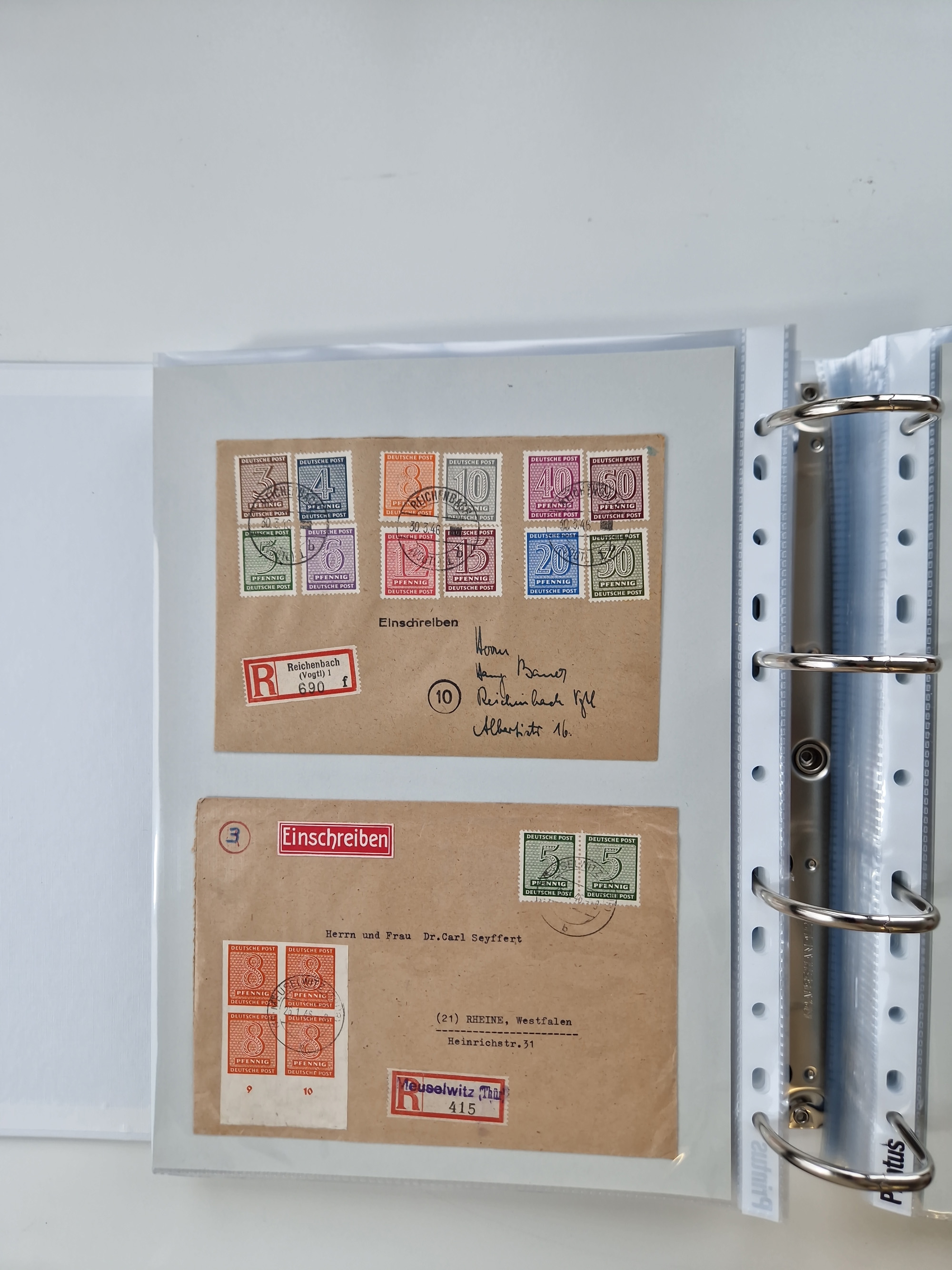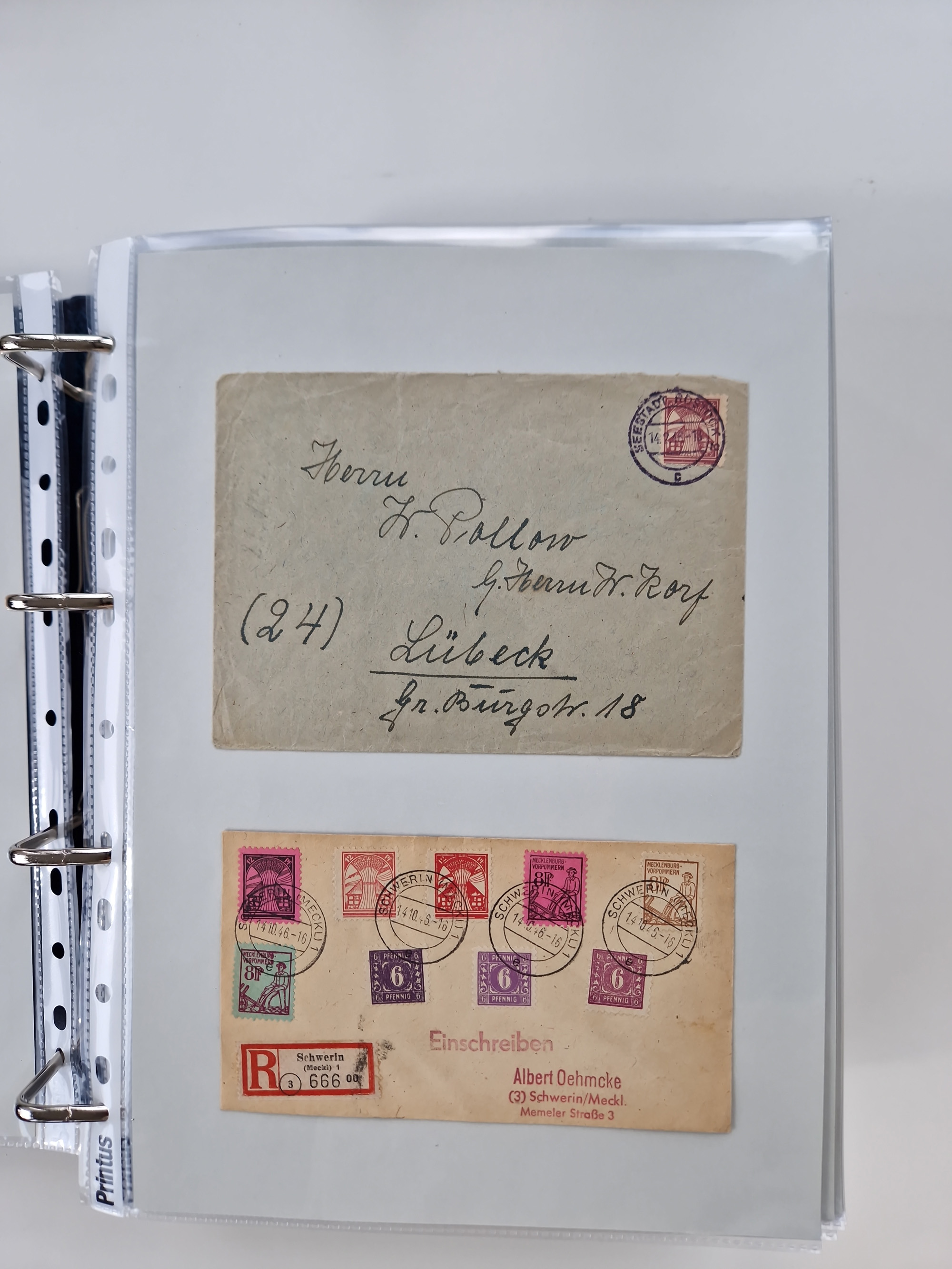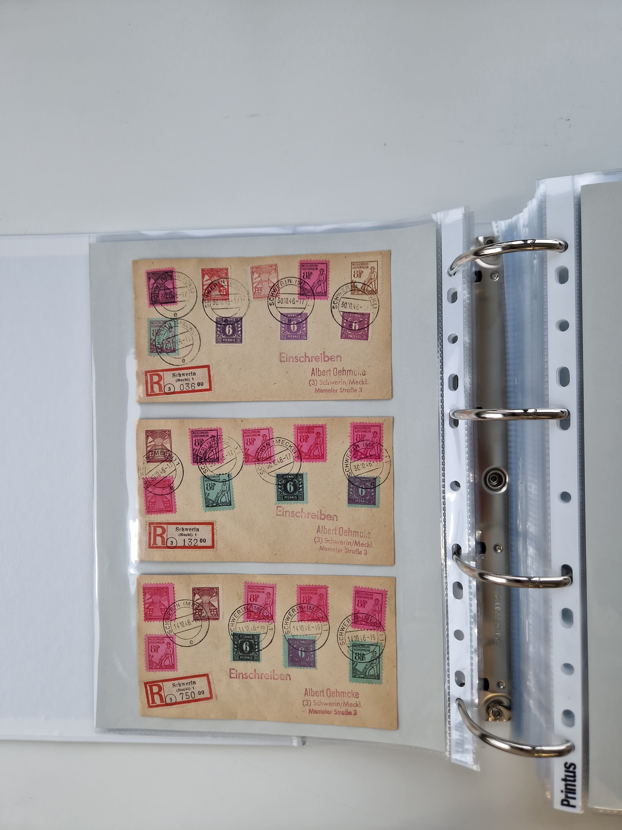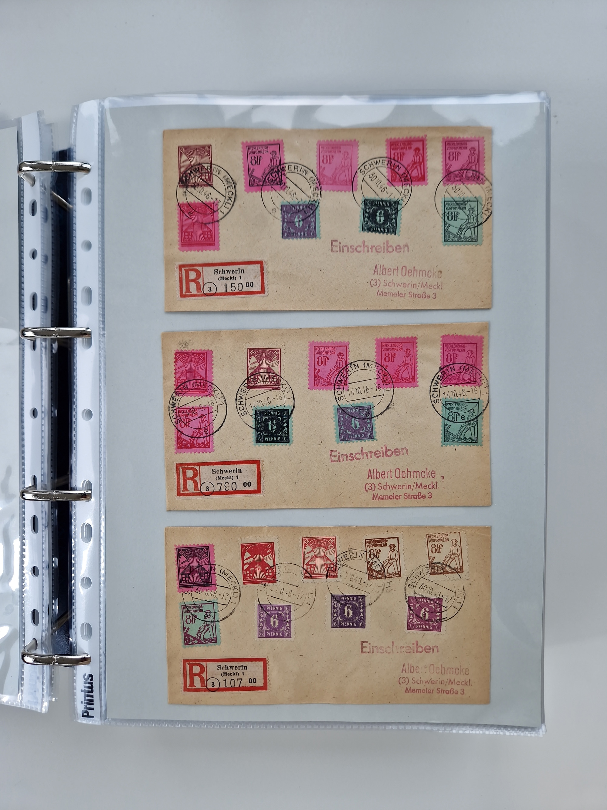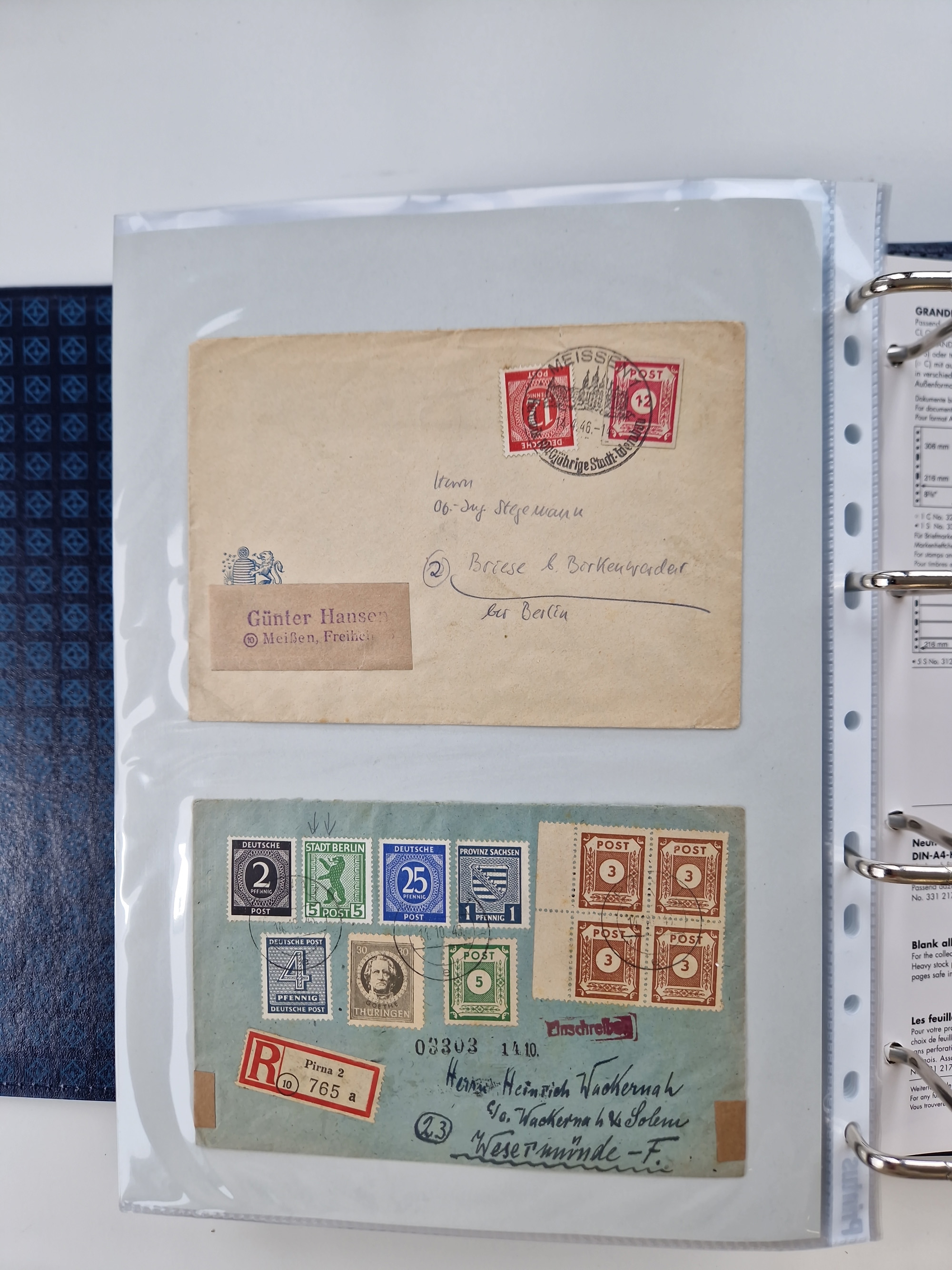 1945/49, umfangreiche Sammlung mit geschätzt 800-900 Briefen, Karten und Ganzsachen. Dabei viele R-Briefe und Satzbriefe, Bedarfspost Mecklenburg Vorpommern, Marken mit Rändern und Einheiten, Bezirkshandstempel mit Bedarfspost und weiteren Besonderheiten, sauber auf Albenblättern in drei Ordnern