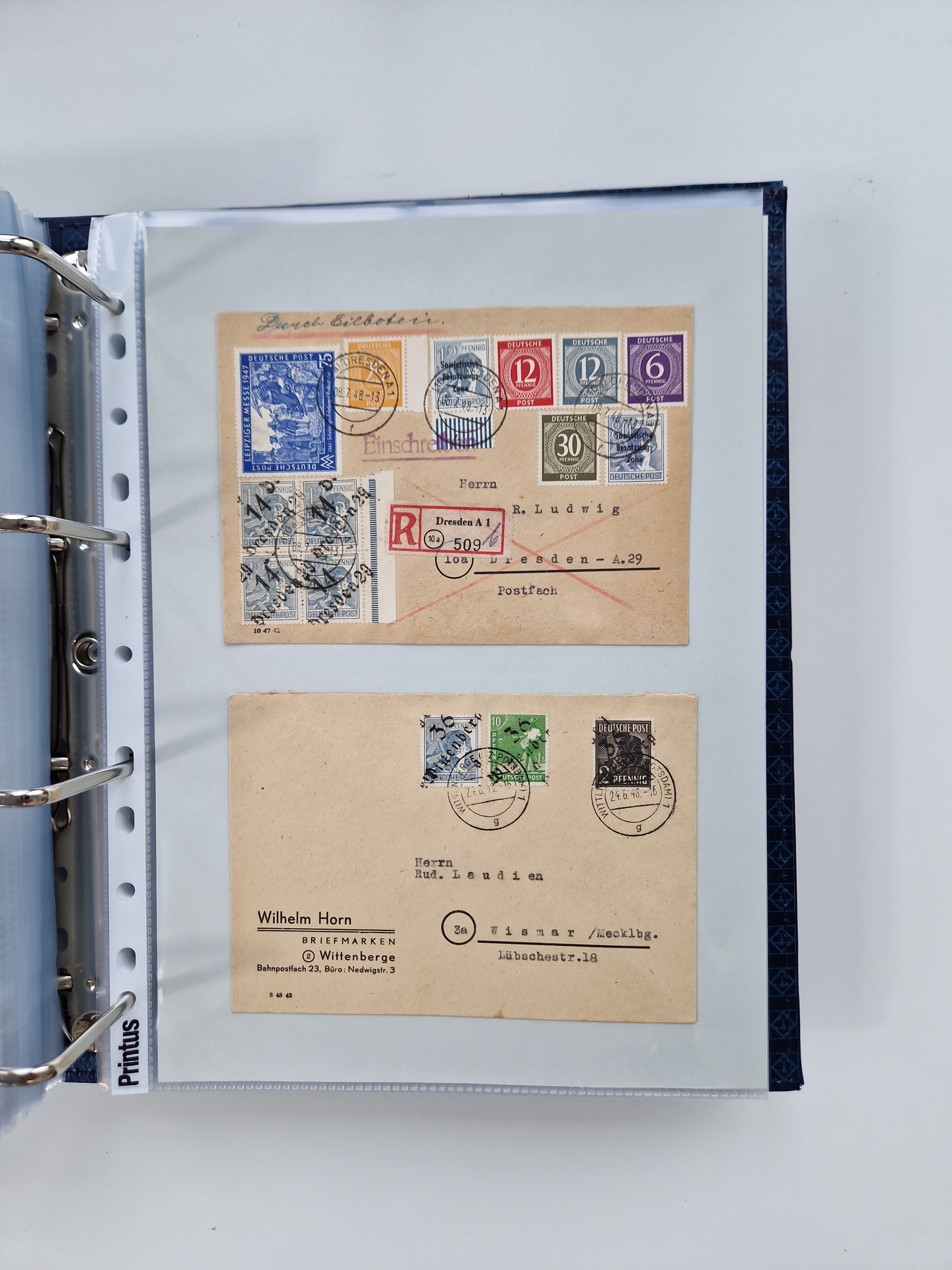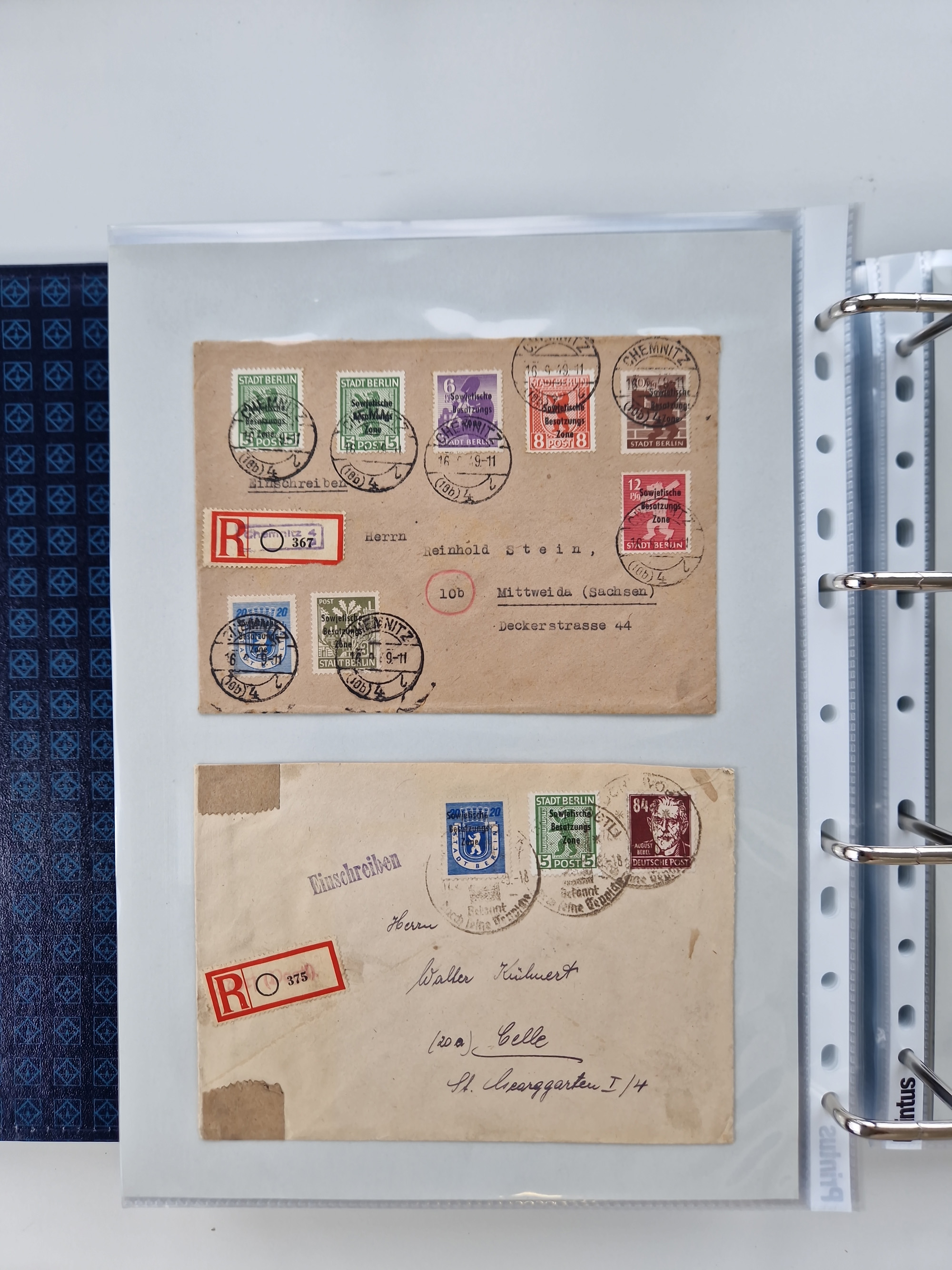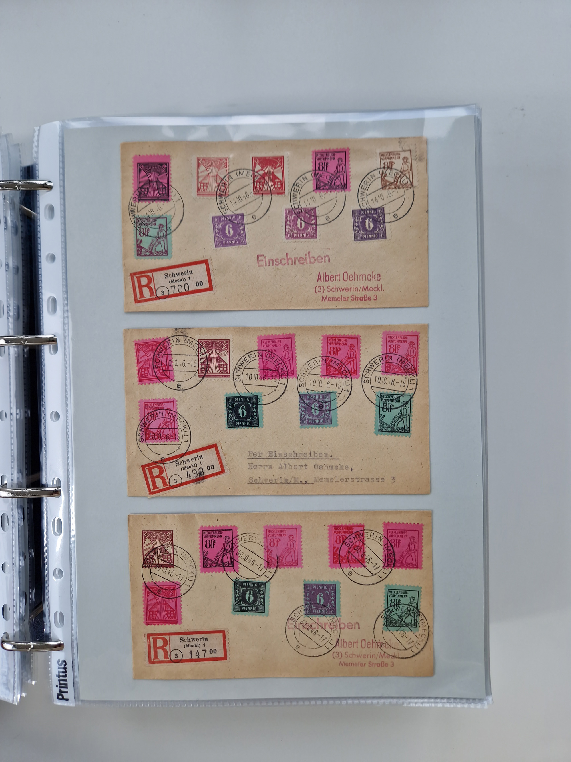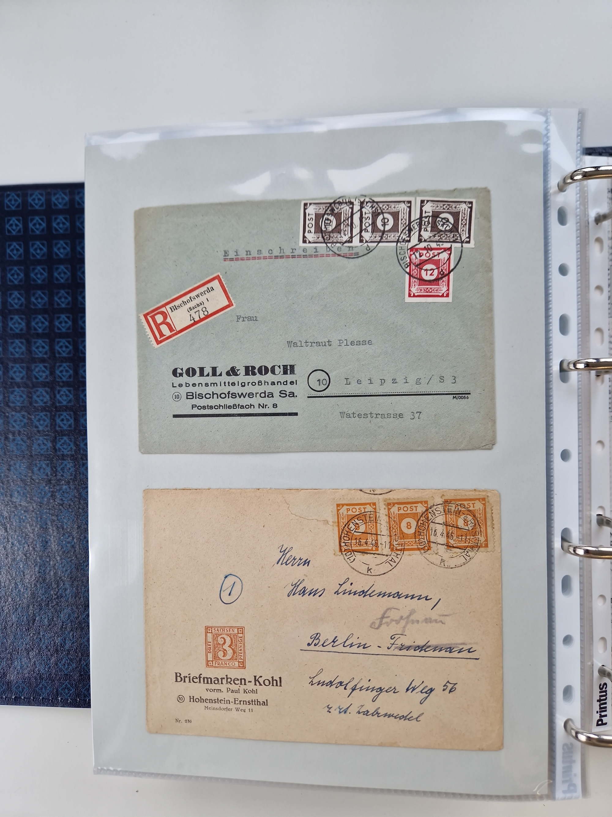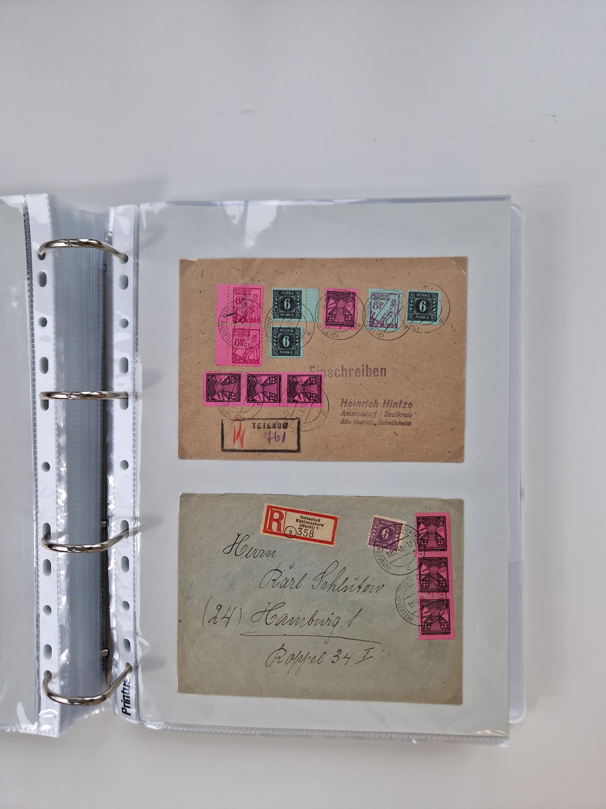 1945/49, umfangreiche Sammlung mit geschätzt 800-900 Briefen, Karten und Ganzsachen. Dabei viele R-Briefe und Satzbriefe, Bedarfspost Mecklenburg Vorpommern, Marken mit Rändern und Einheiten, Bezirkshandstempel mit Bedarfspost und weiteren Besonderheiten, sauber auf Albenblättern in drei Ordnern