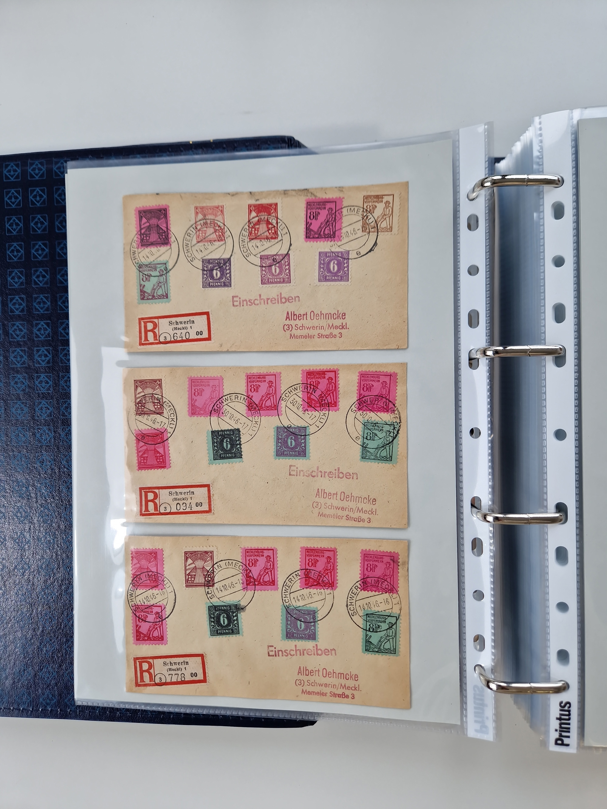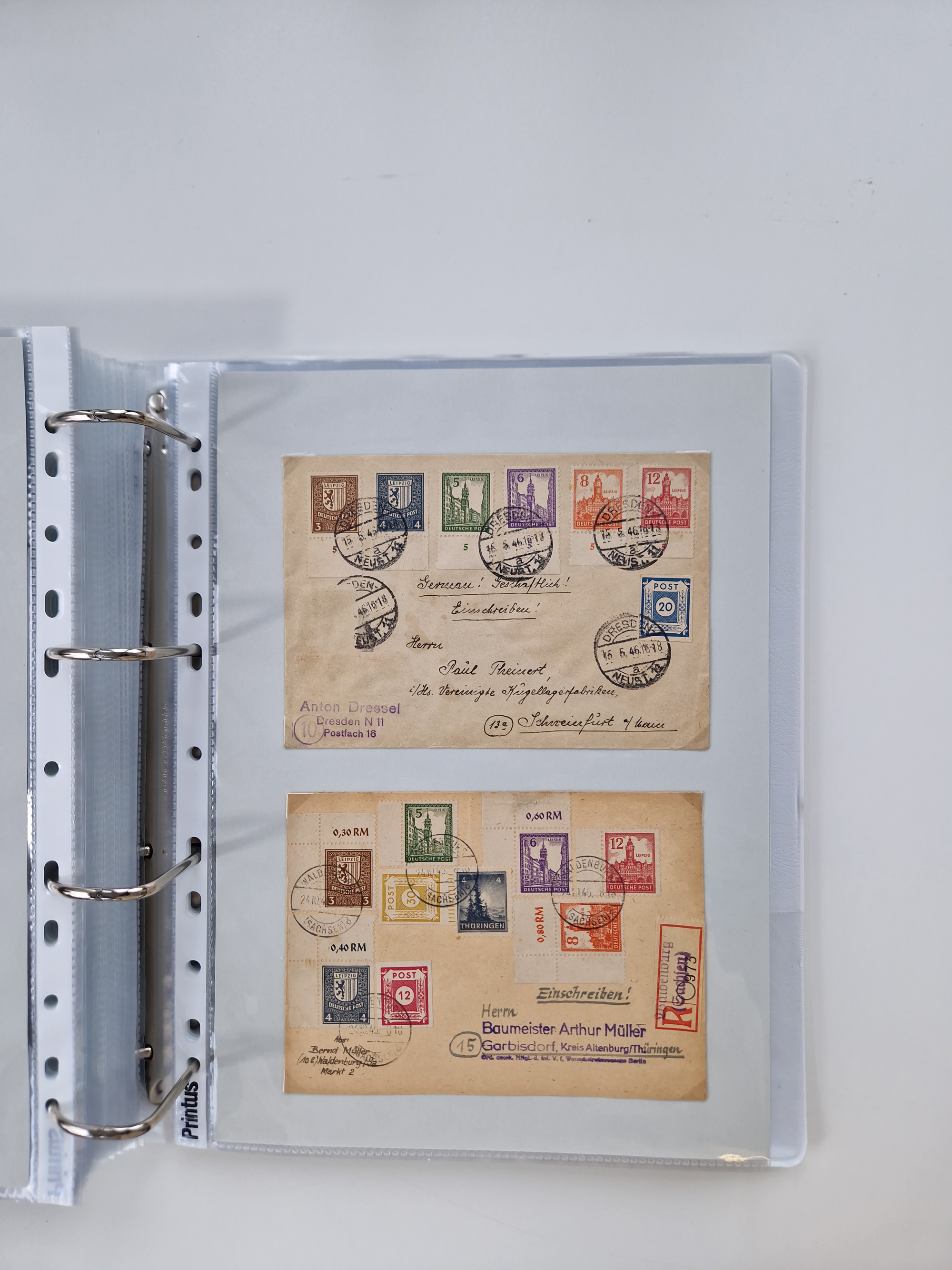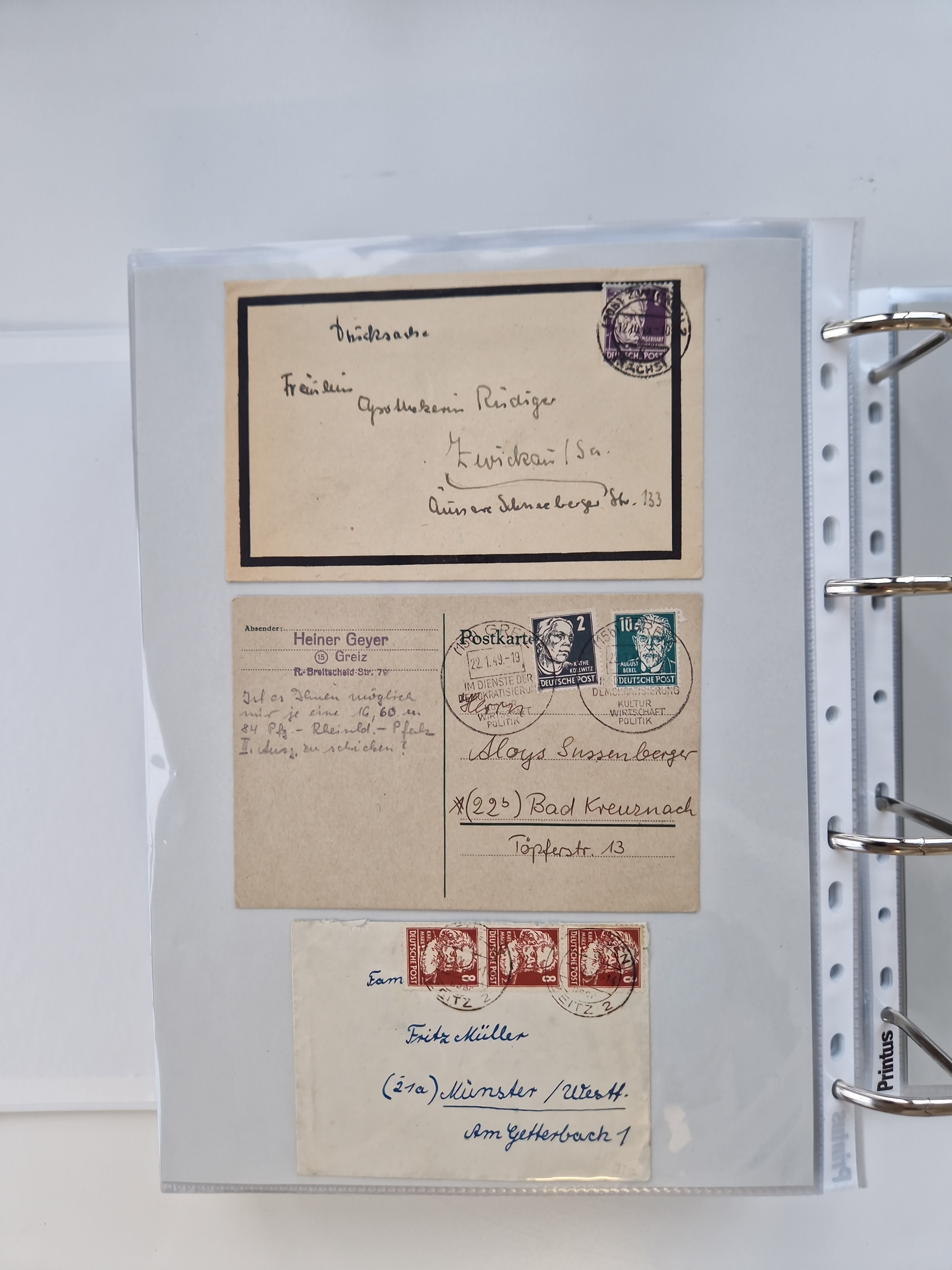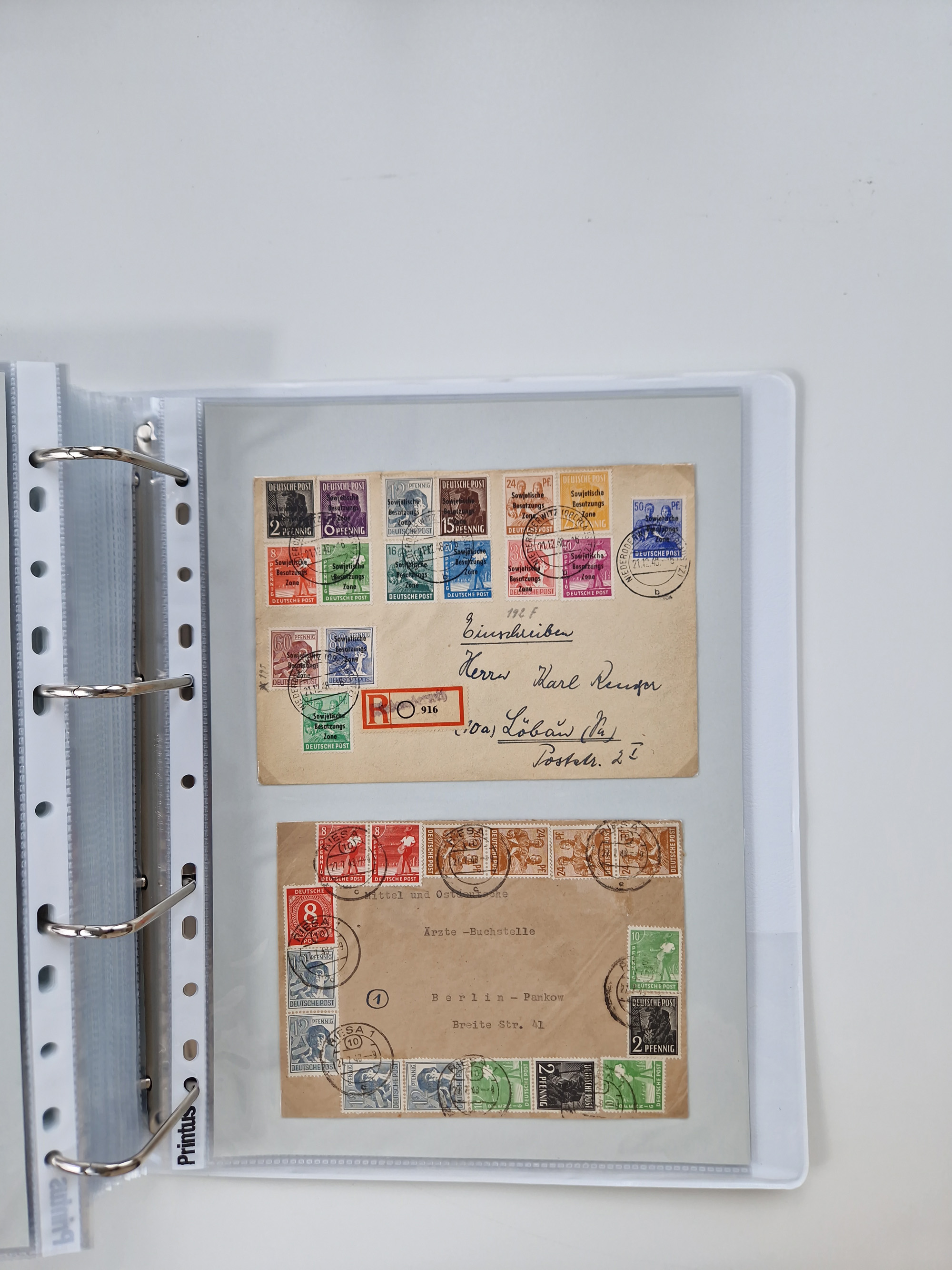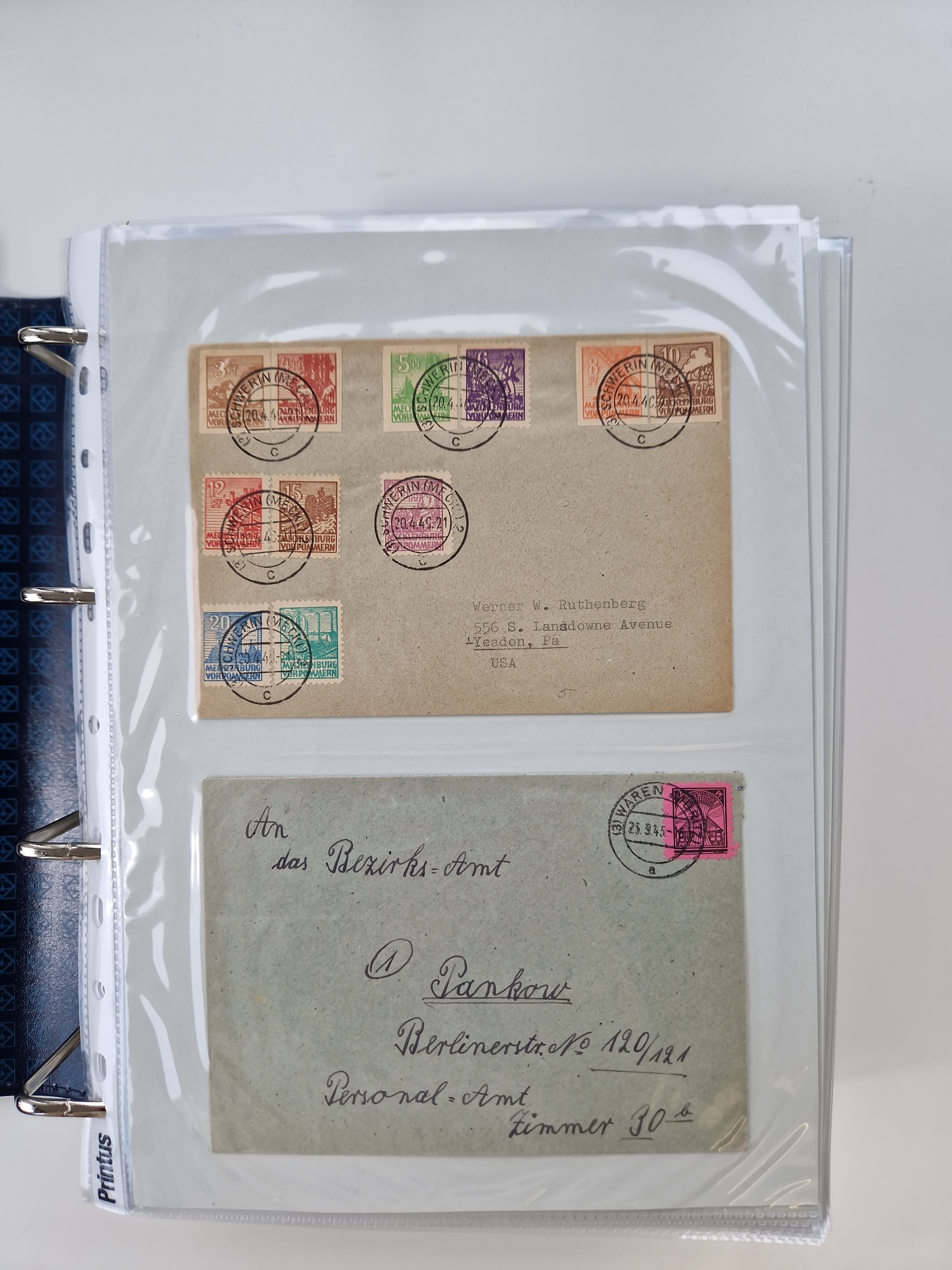 1945/49, umfangreiche Sammlung mit geschätzt 800-900 Briefen, Karten und Ganzsachen. Dabei viele R-Briefe und Satzbriefe, Bedarfspost Mecklenburg Vorpommern, Marken mit Rändern und Einheiten, Bezirkshandstempel mit Bedarfspost und weiteren Besonderheiten, sauber auf Albenblättern in drei Ordnern