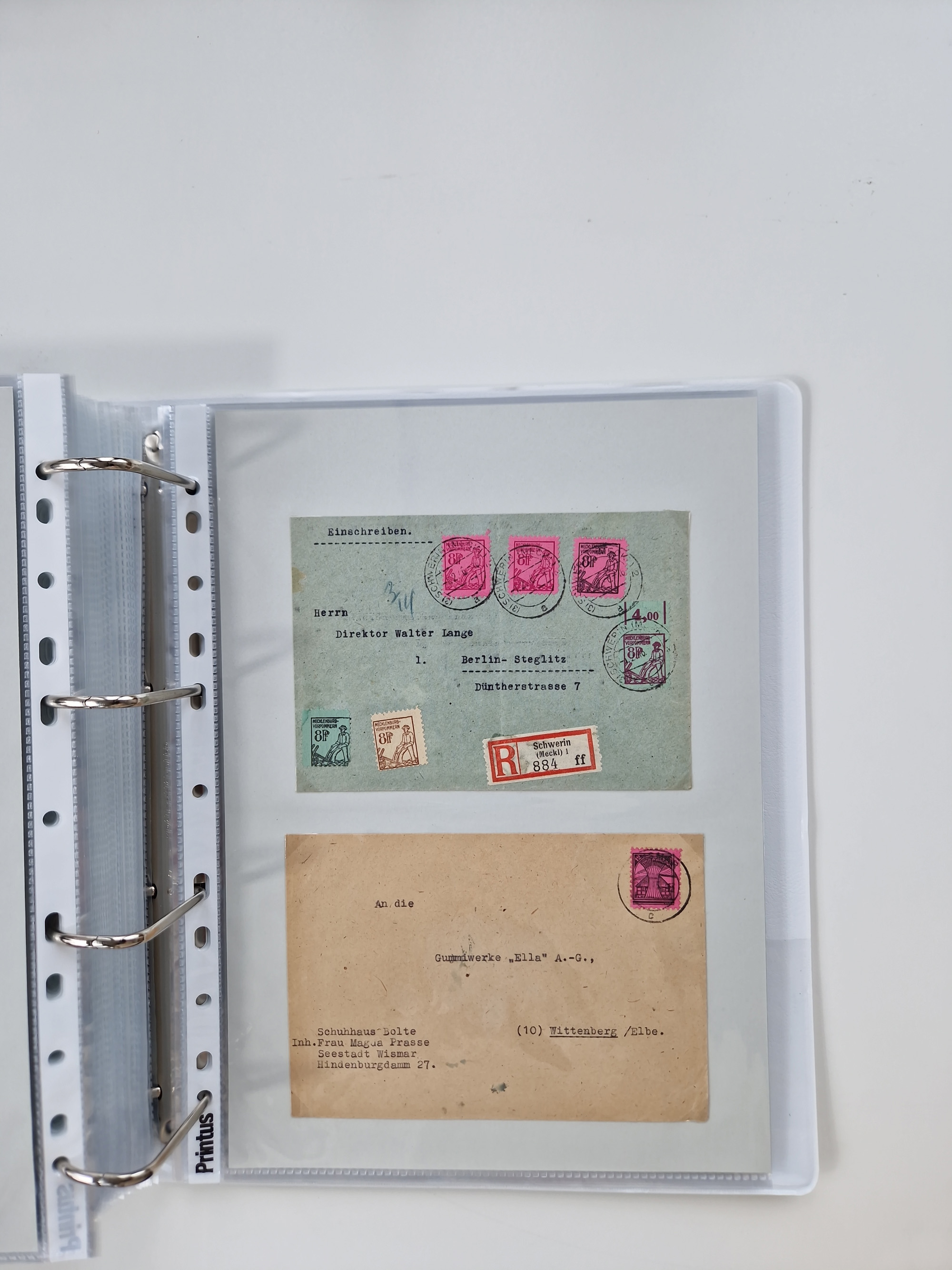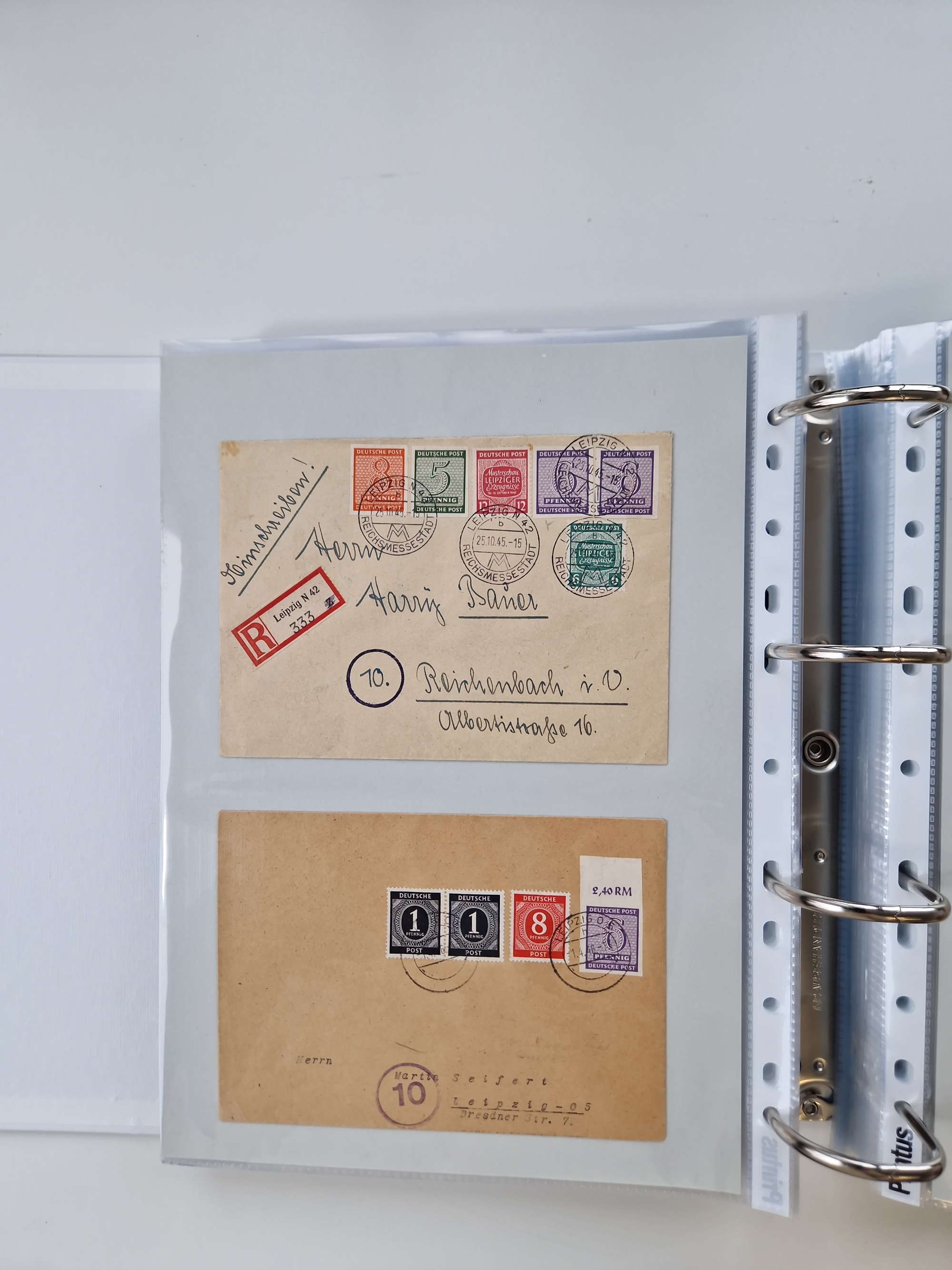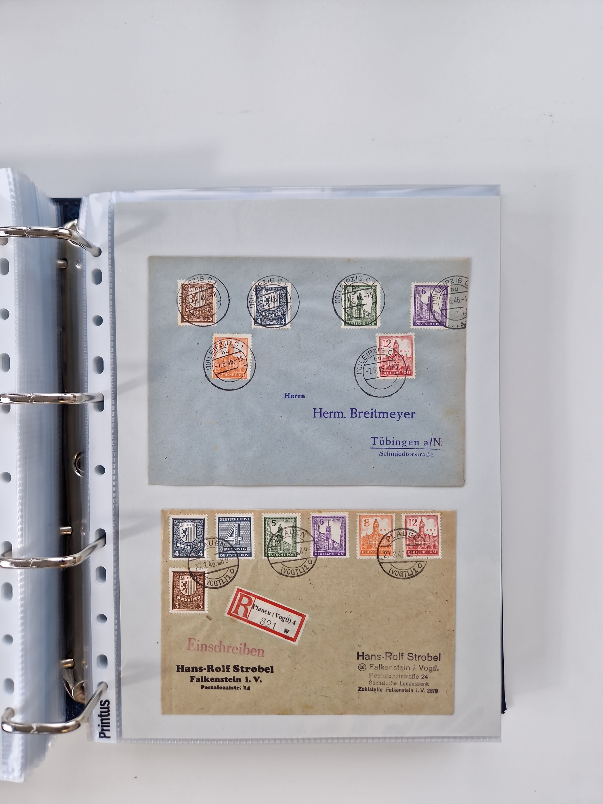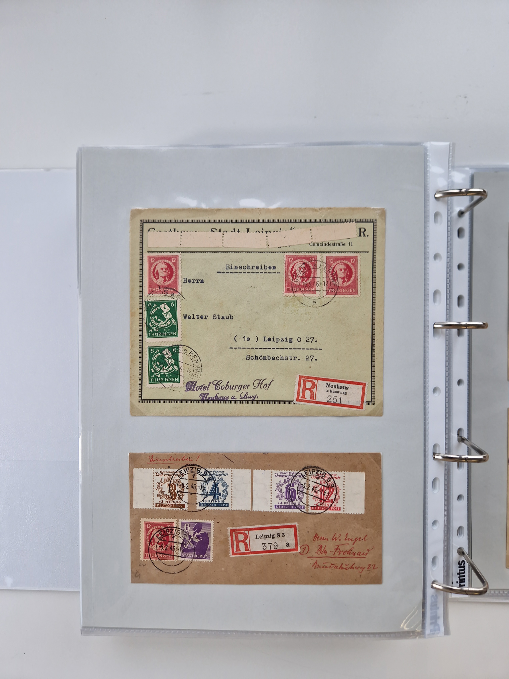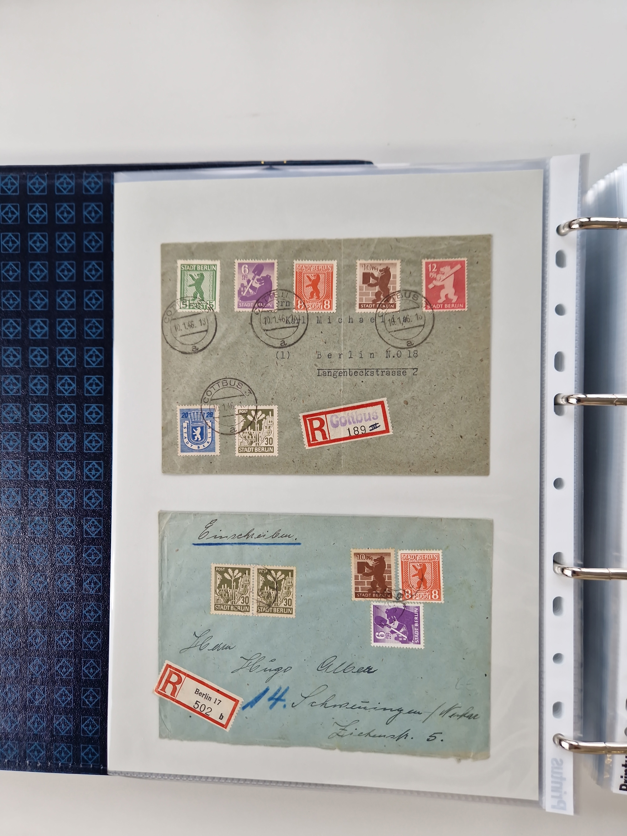 1945/49, umfangreiche Sammlung mit geschätzt 800-900 Briefen, Karten und Ganzsachen. Dabei viele R-Briefe und Satzbriefe, Bedarfspost Mecklenburg Vorpommern, Marken mit Rändern und Einheiten, Bezirkshandstempel mit Bedarfspost und weiteren Besonderheiten, sauber auf Albenblättern in drei Ordnern