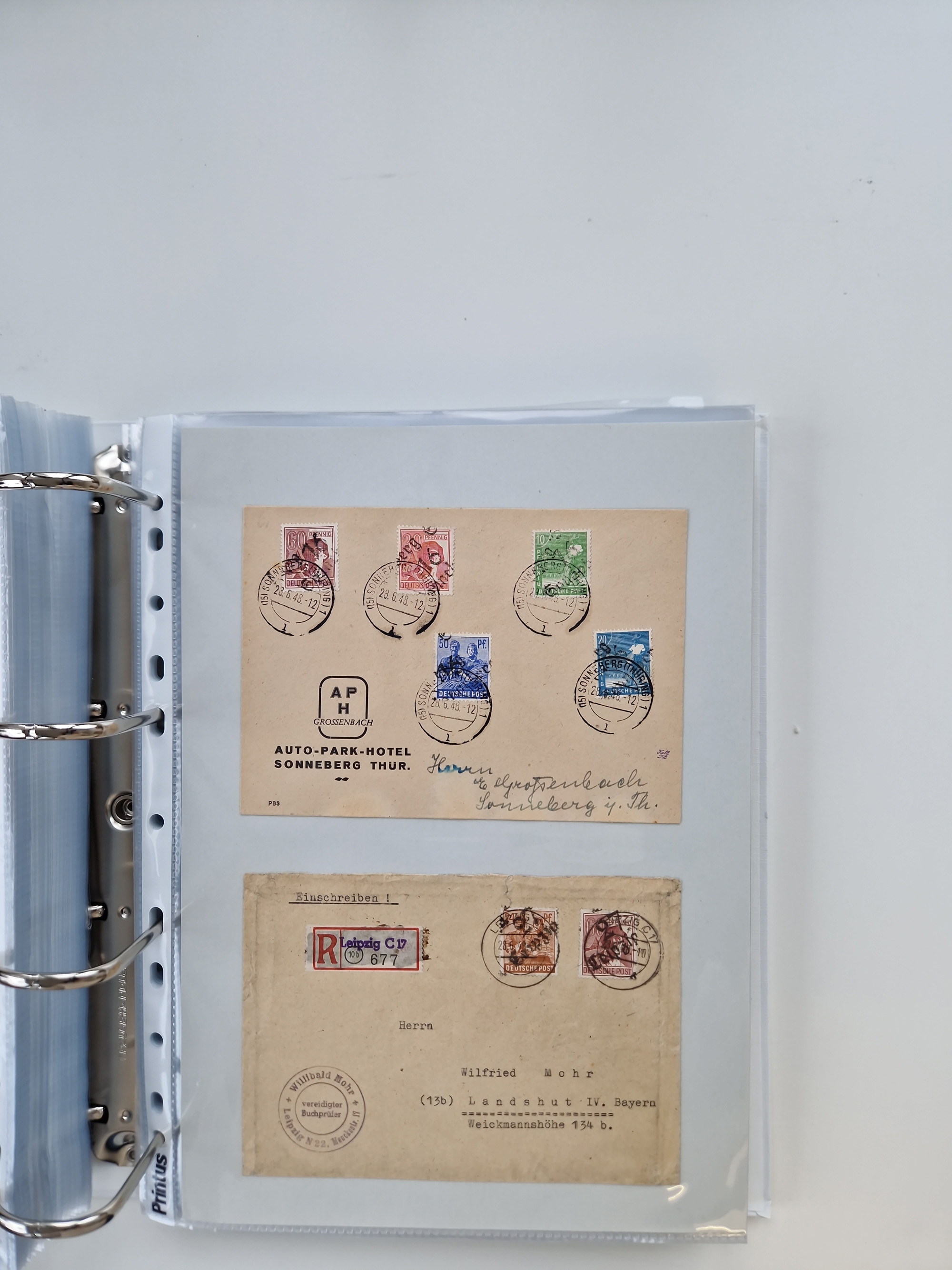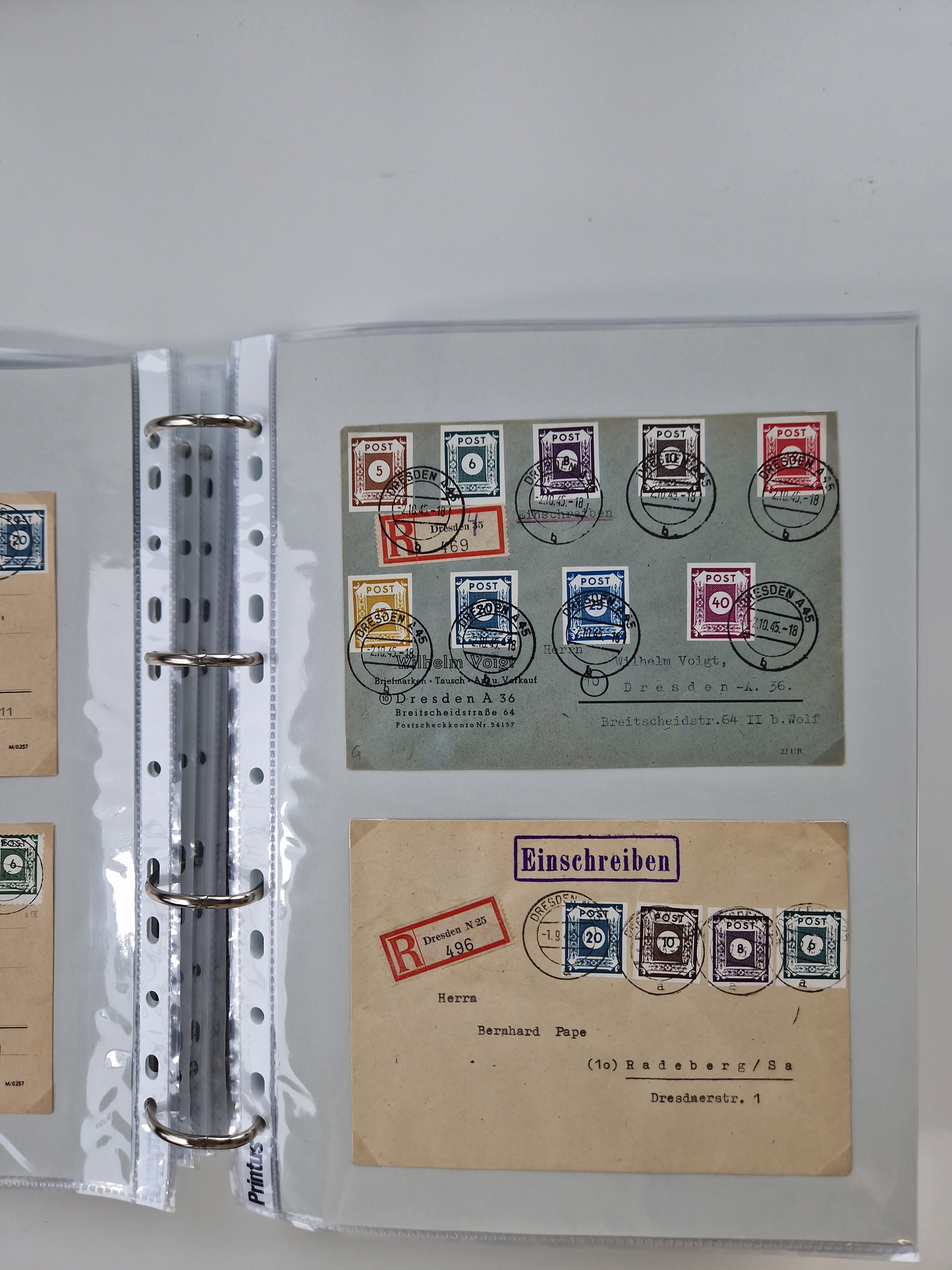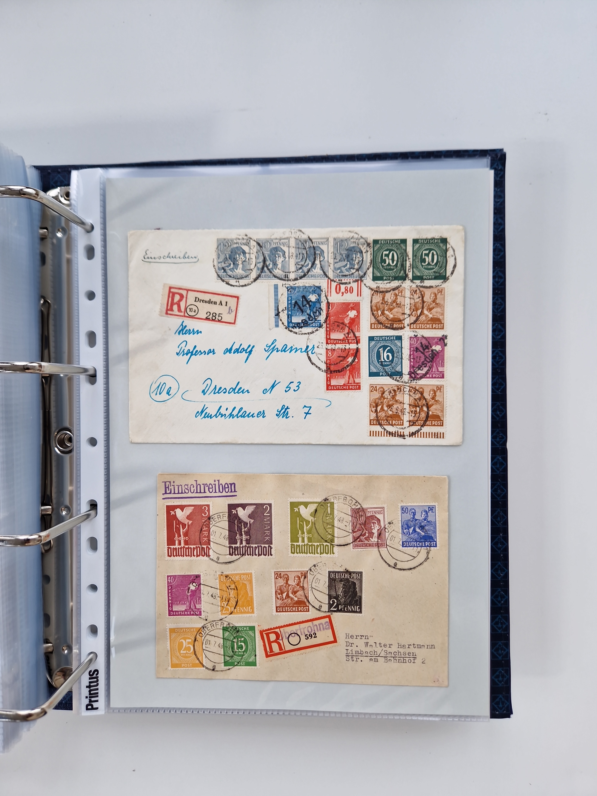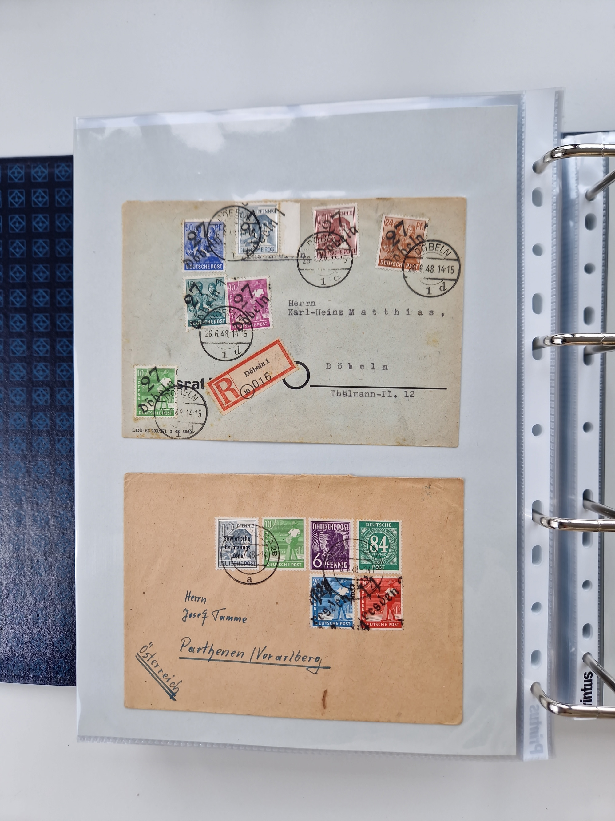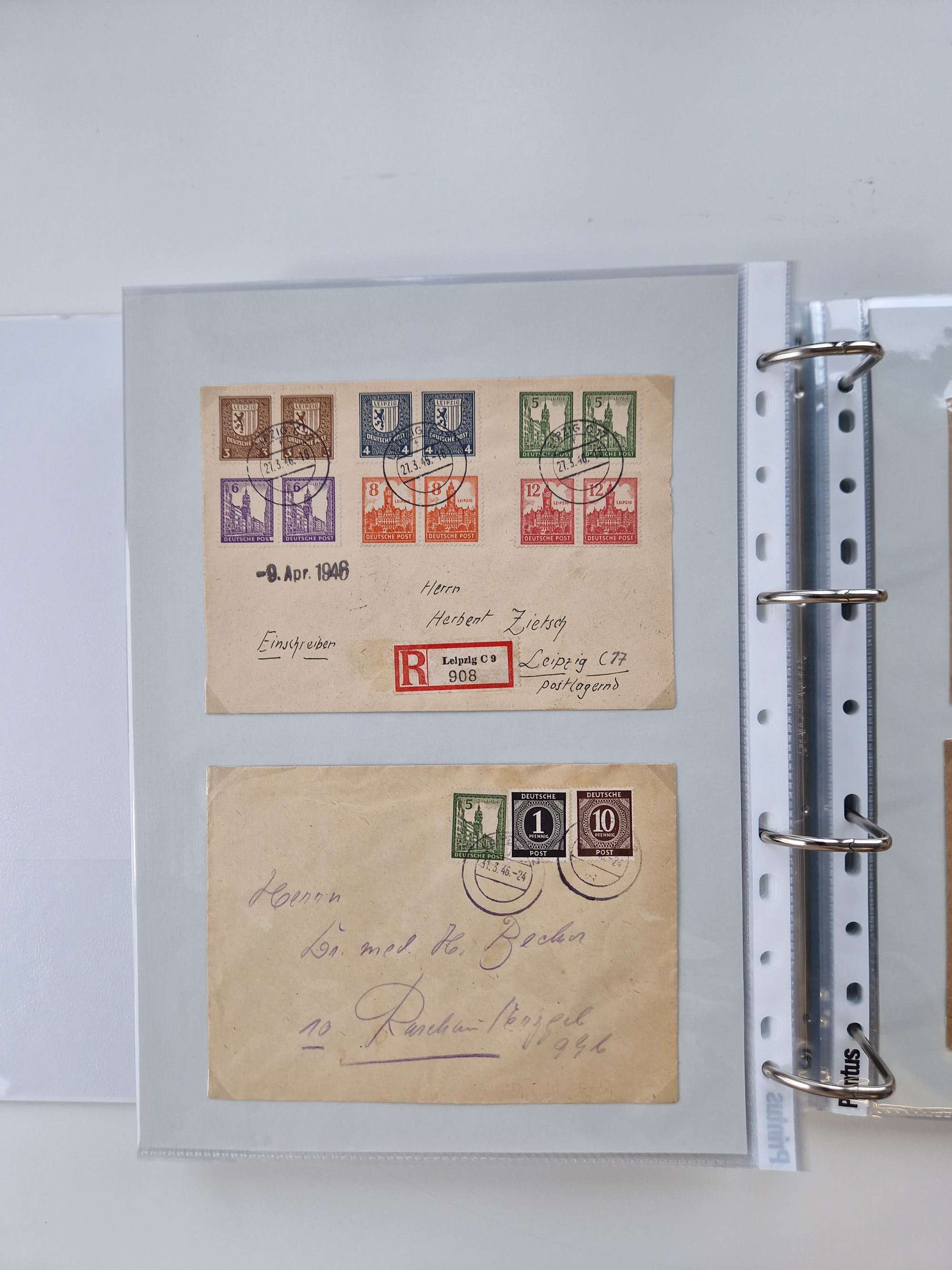 1945/49, umfangreiche Sammlung mit geschätzt 800-900 Briefen, Karten und Ganzsachen. Dabei viele R-Briefe und Satzbriefe, Bedarfspost Mecklenburg Vorpommern, Marken mit Rändern und Einheiten, Bezirkshandstempel mit Bedarfspost und weiteren Besonderheiten, sauber auf Albenblättern in drei Ordnern