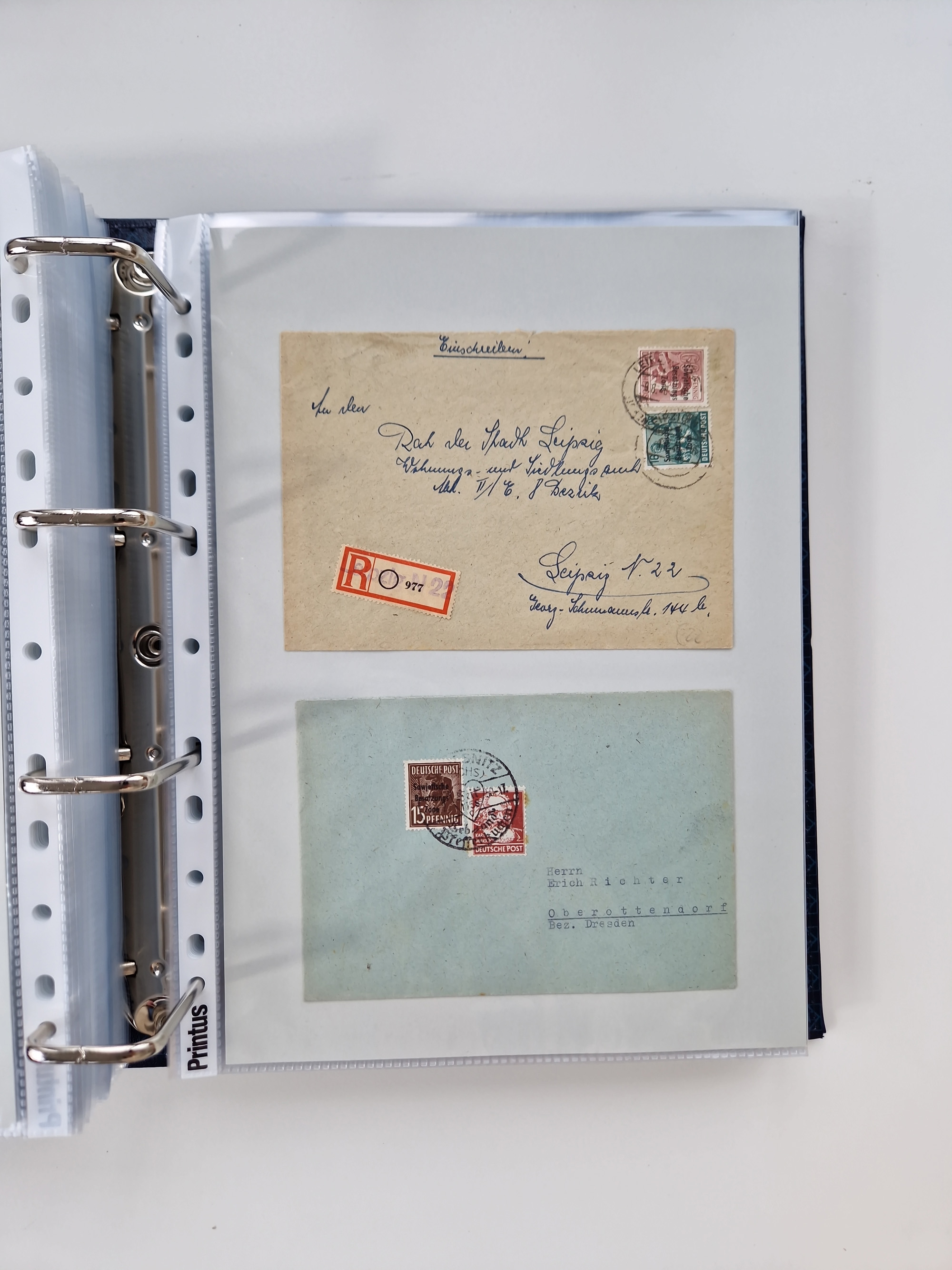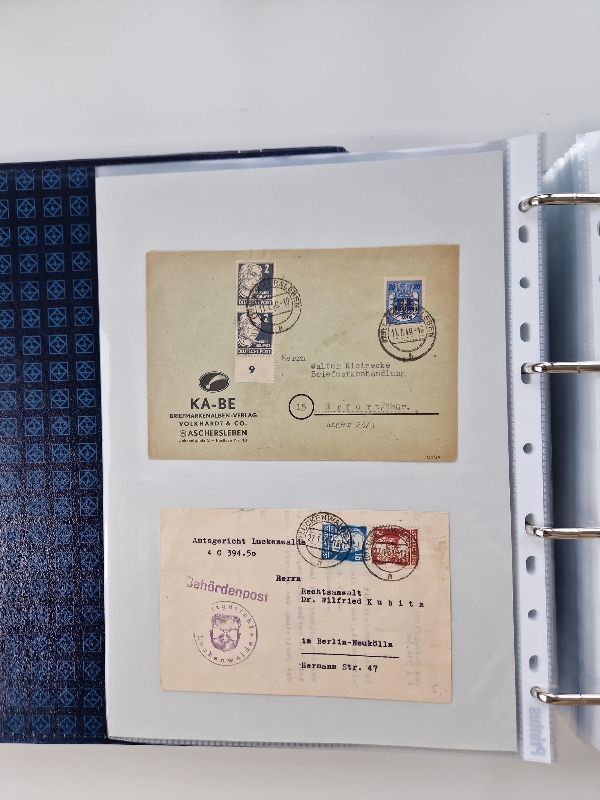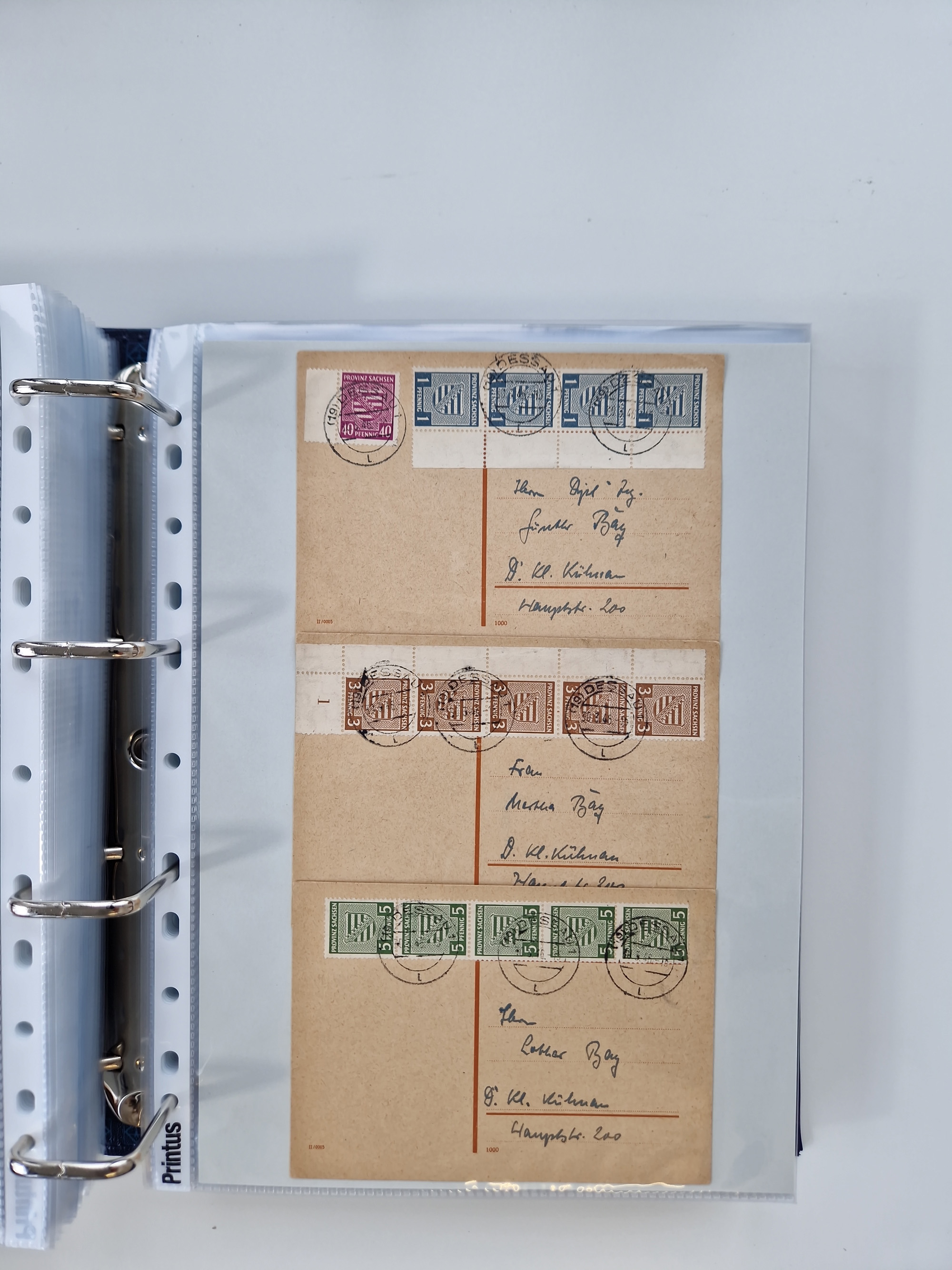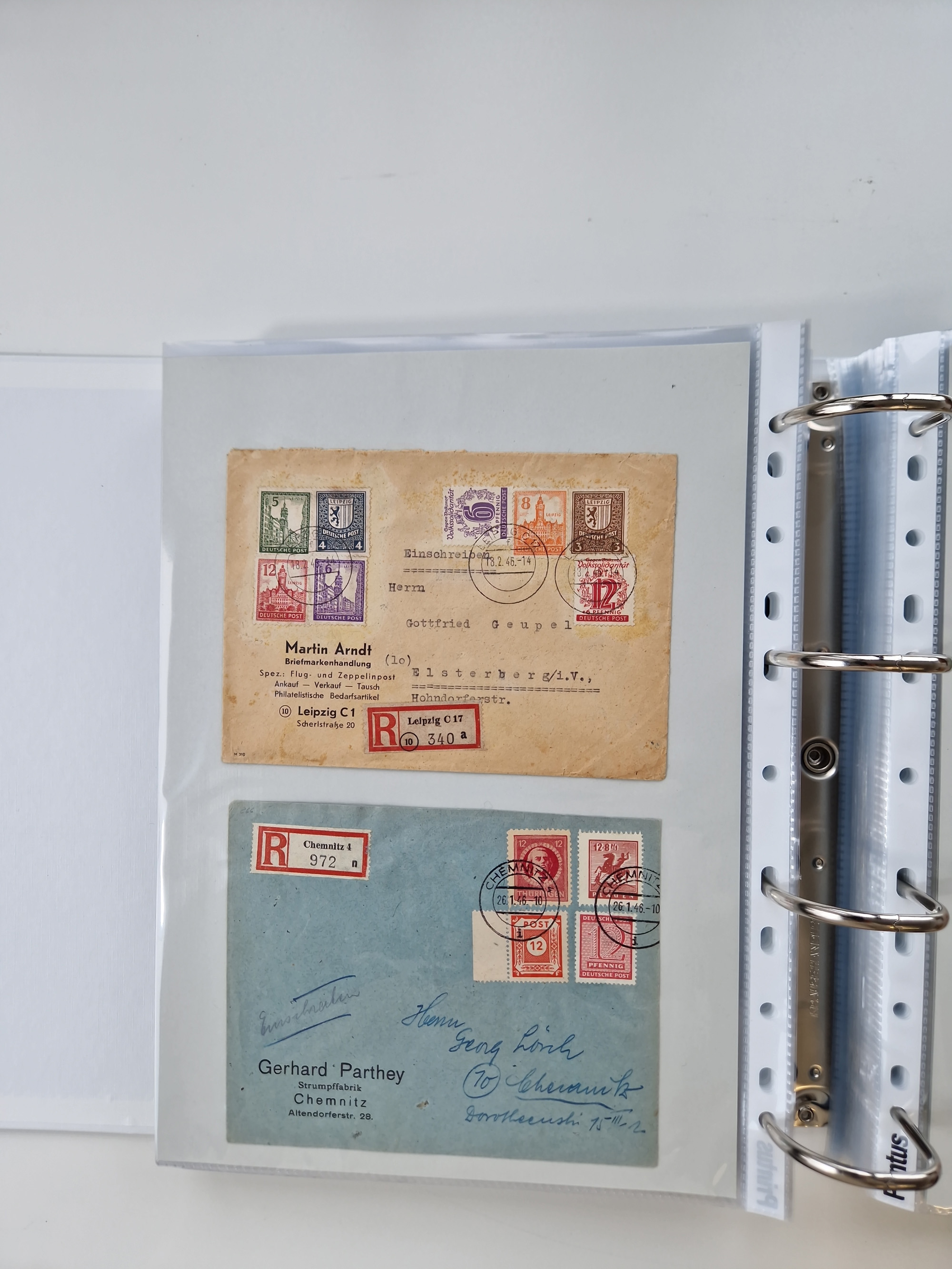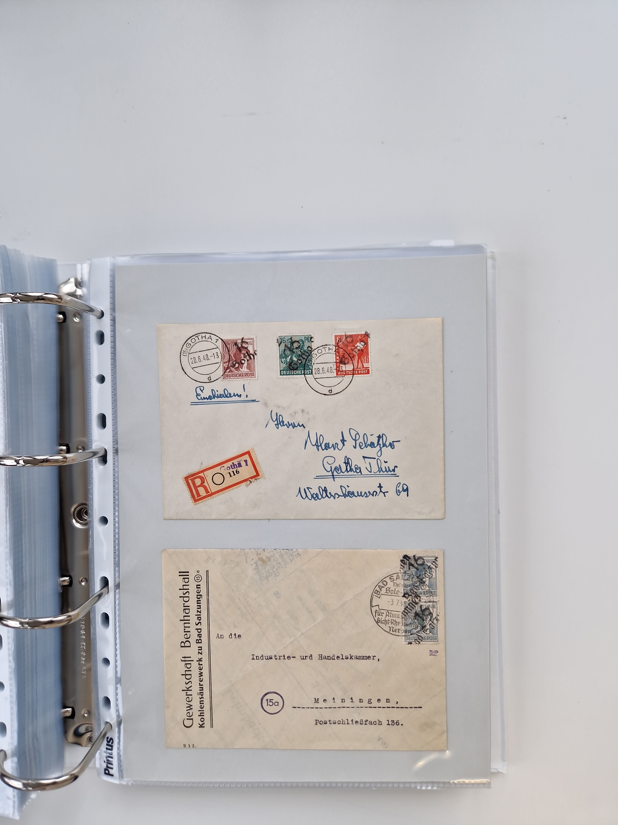 1945/49, umfangreiche Sammlung mit geschätzt 800-900 Briefen, Karten und Ganzsachen. Dabei viele R-Briefe und Satzbriefe, Bedarfspost Mecklenburg Vorpommern, Marken mit Rändern und Einheiten, Bezirkshandstempel mit Bedarfspost und weiteren Besonderheiten, sauber auf Albenblättern in drei Ordnern