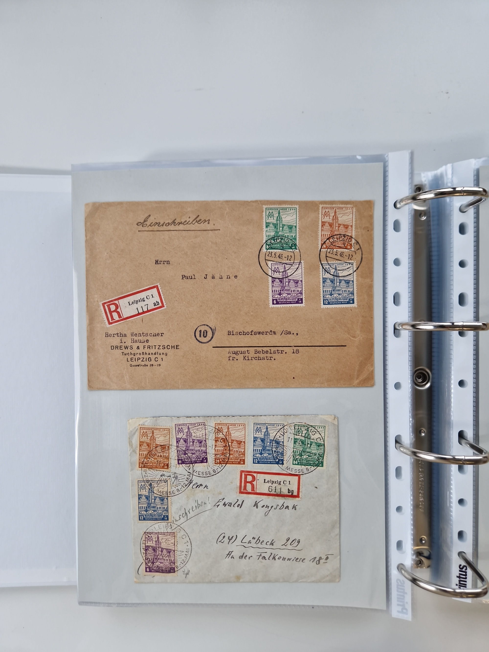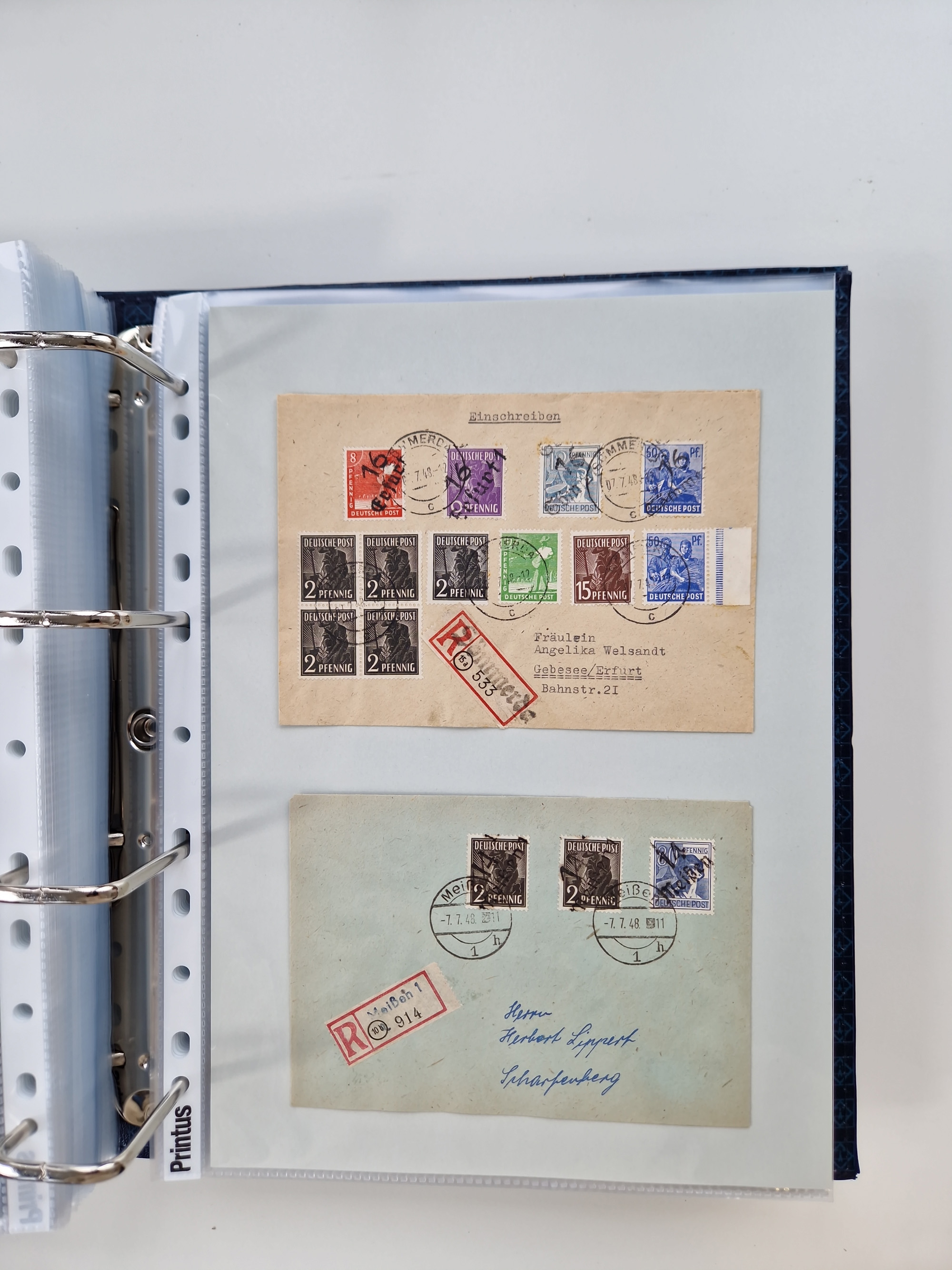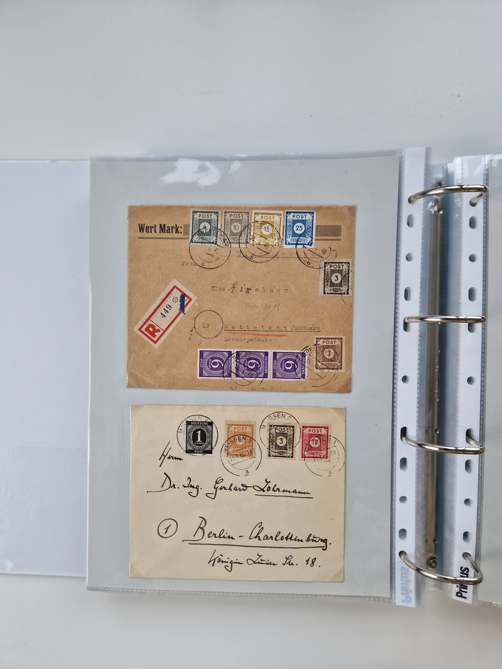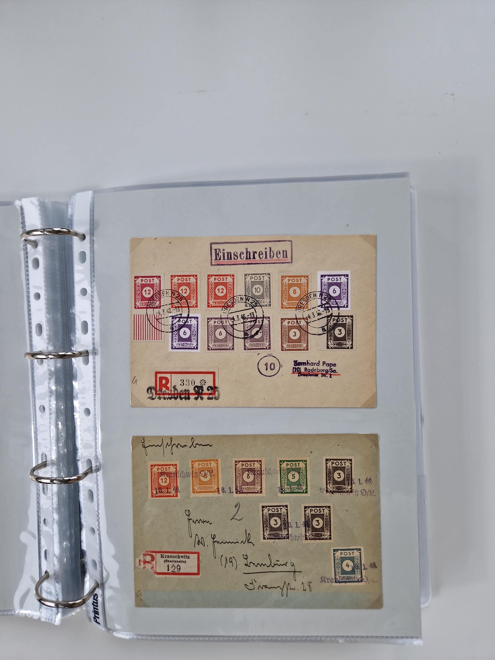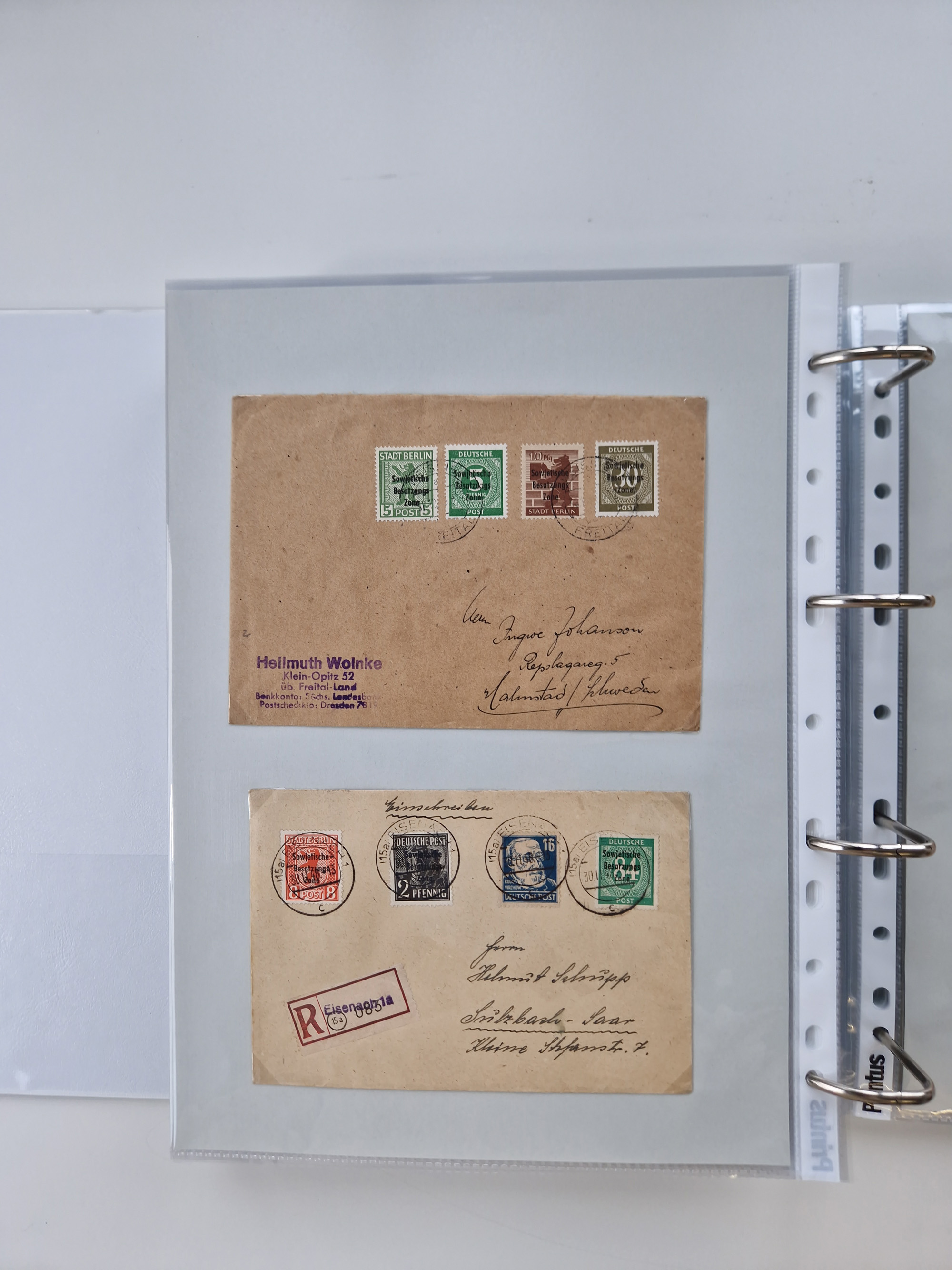 1945/49, umfangreiche Sammlung mit geschätzt 800-900 Briefen, Karten und Ganzsachen. Dabei viele R-Briefe und Satzbriefe, Bedarfspost Mecklenburg Vorpommern, Marken mit Rändern und Einheiten, Bezirkshandstempel mit Bedarfspost und weiteren Besonderheiten, sauber auf Albenblättern in drei Ordnern