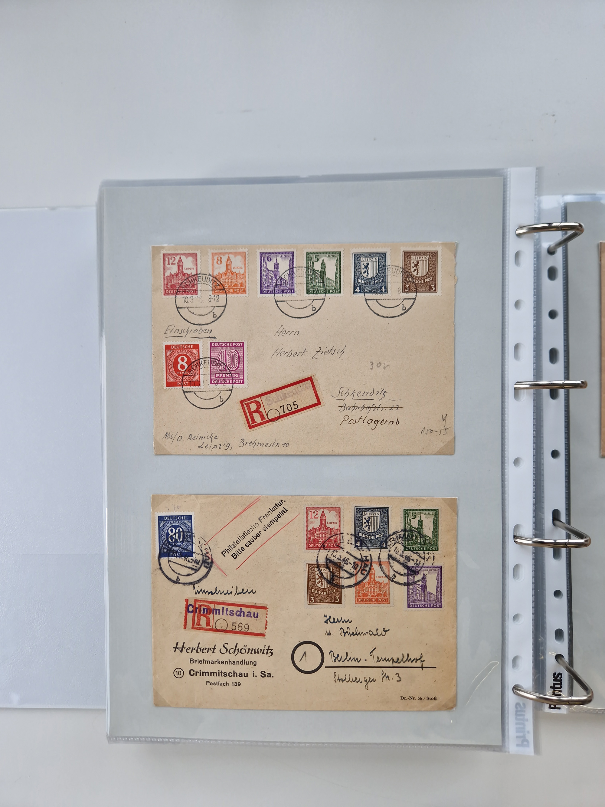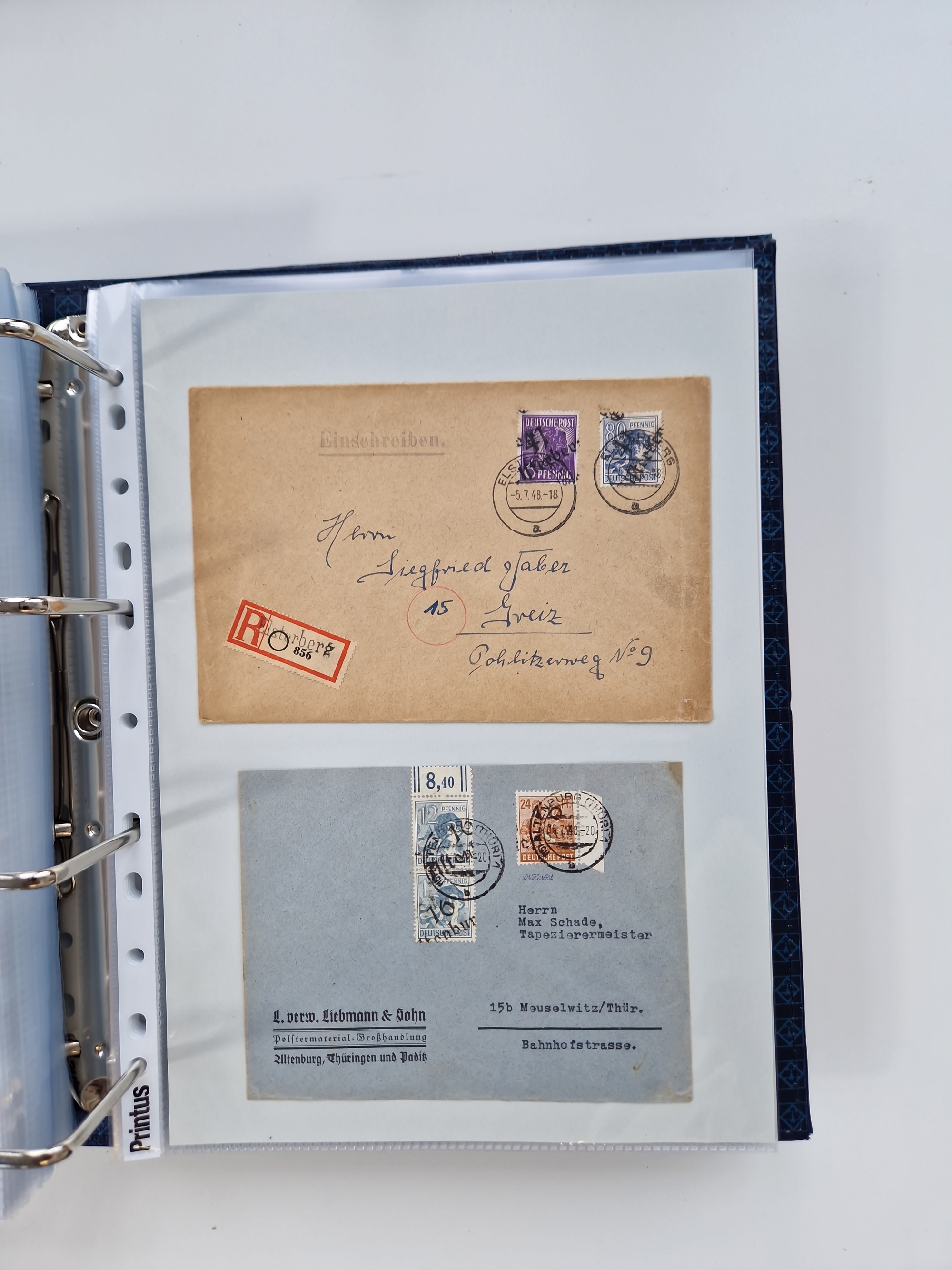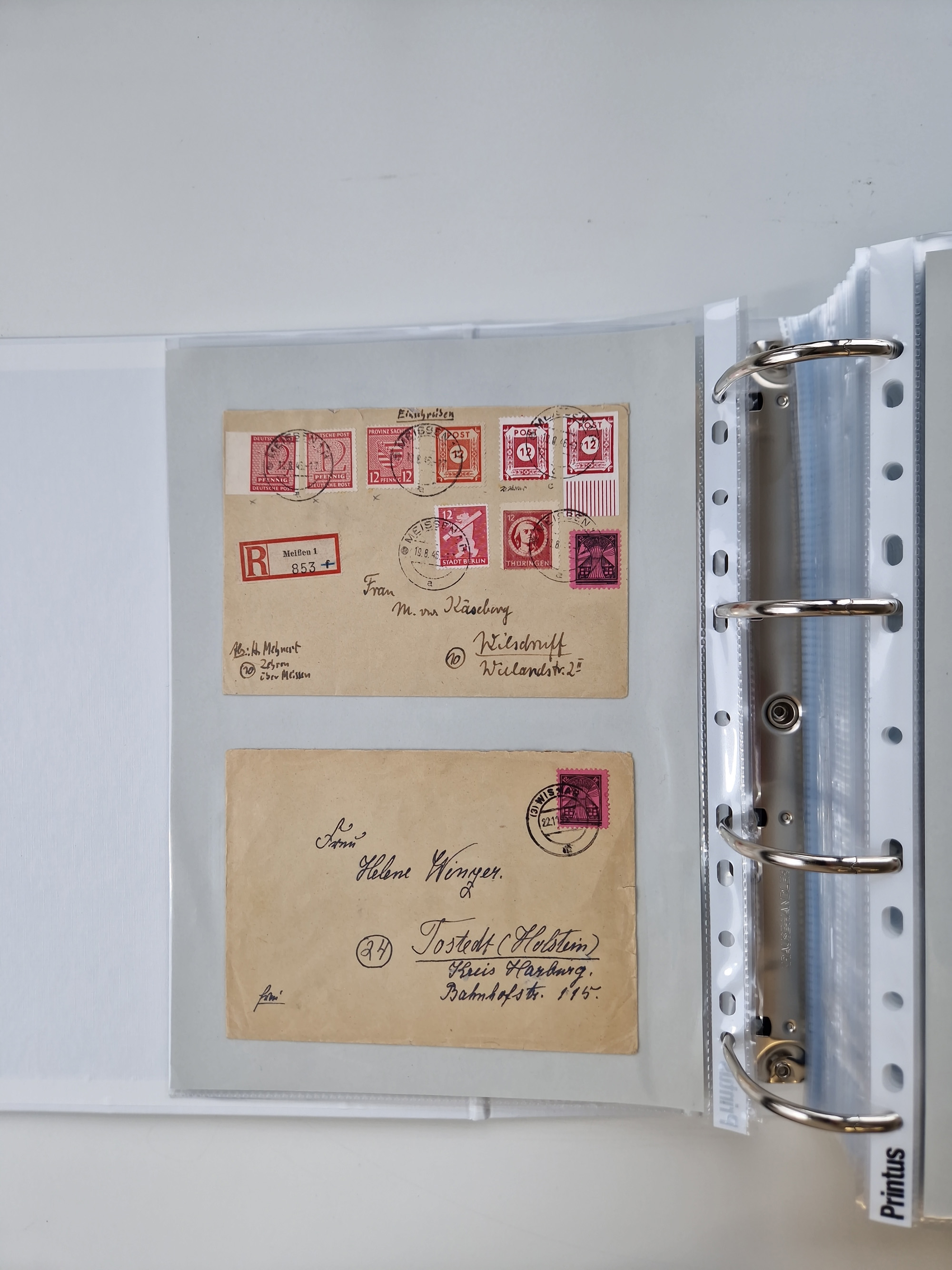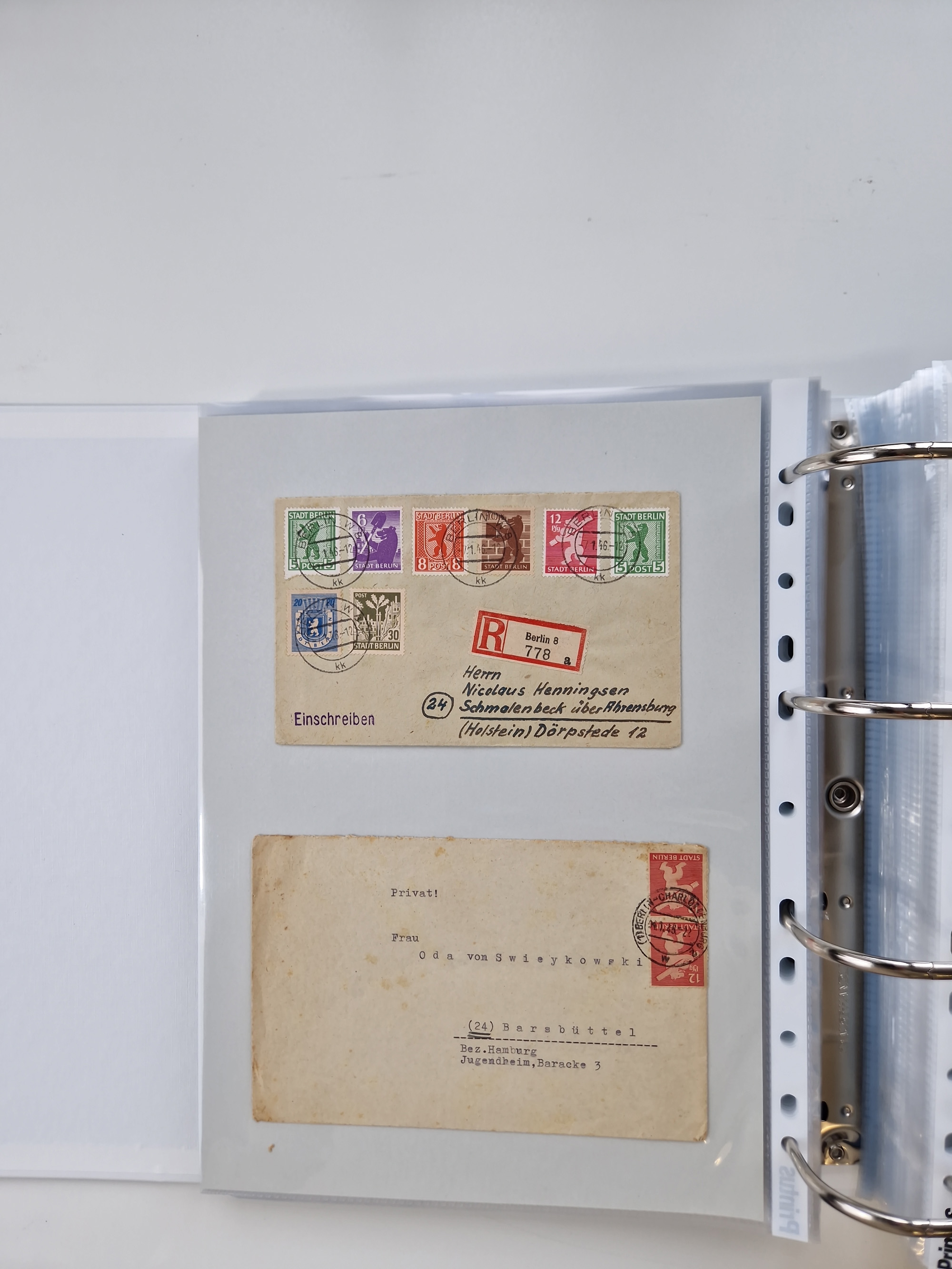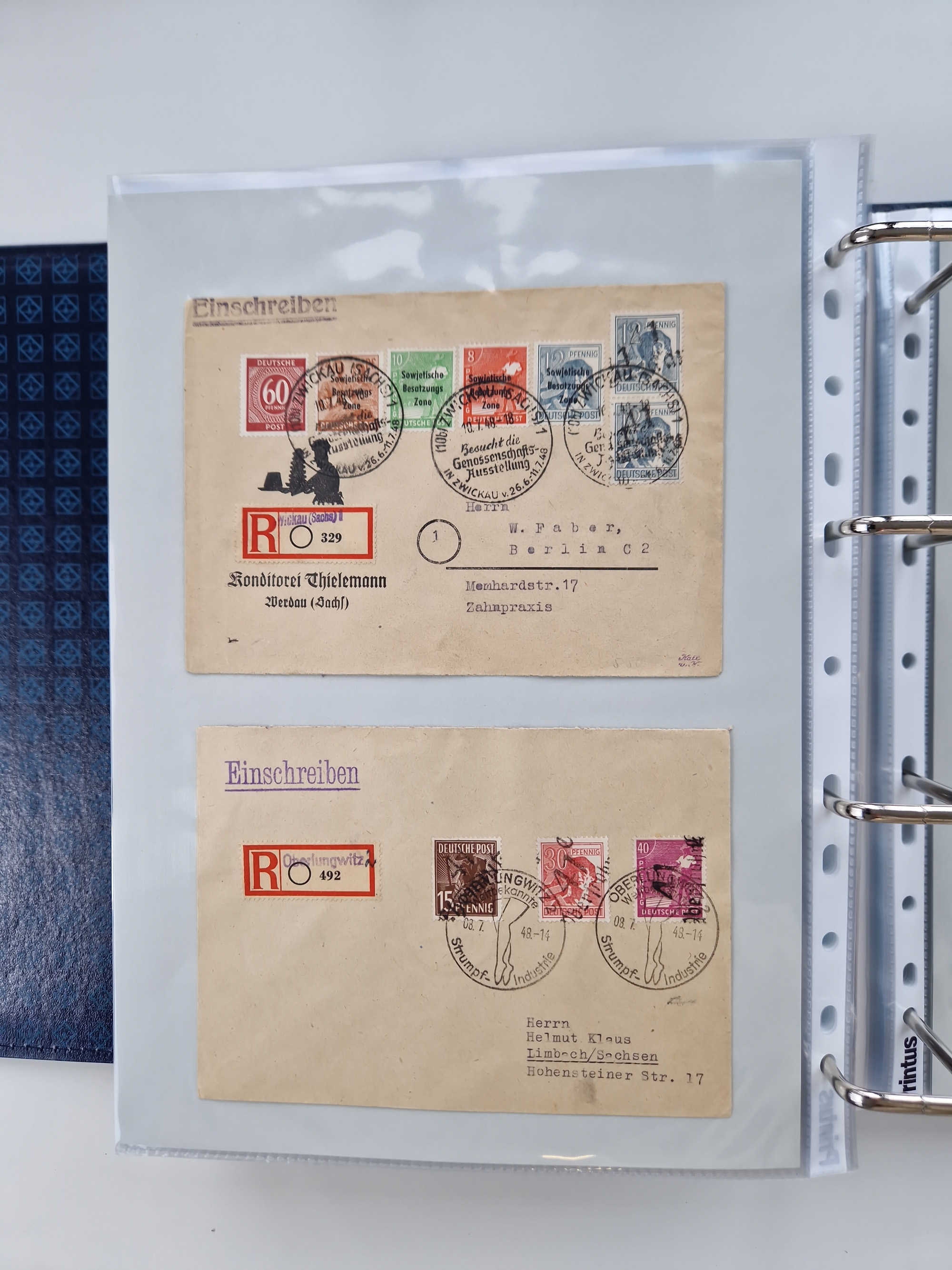 1945/49, umfangreiche Sammlung mit geschätzt 800-900 Briefen, Karten und Ganzsachen. Dabei viele R-Briefe und Satzbriefe, Bedarfspost Mecklenburg Vorpommern, Marken mit Rändern und Einheiten, Bezirkshandstempel mit Bedarfspost und weiteren Besonderheiten, sauber auf Albenblättern in drei Ordnern