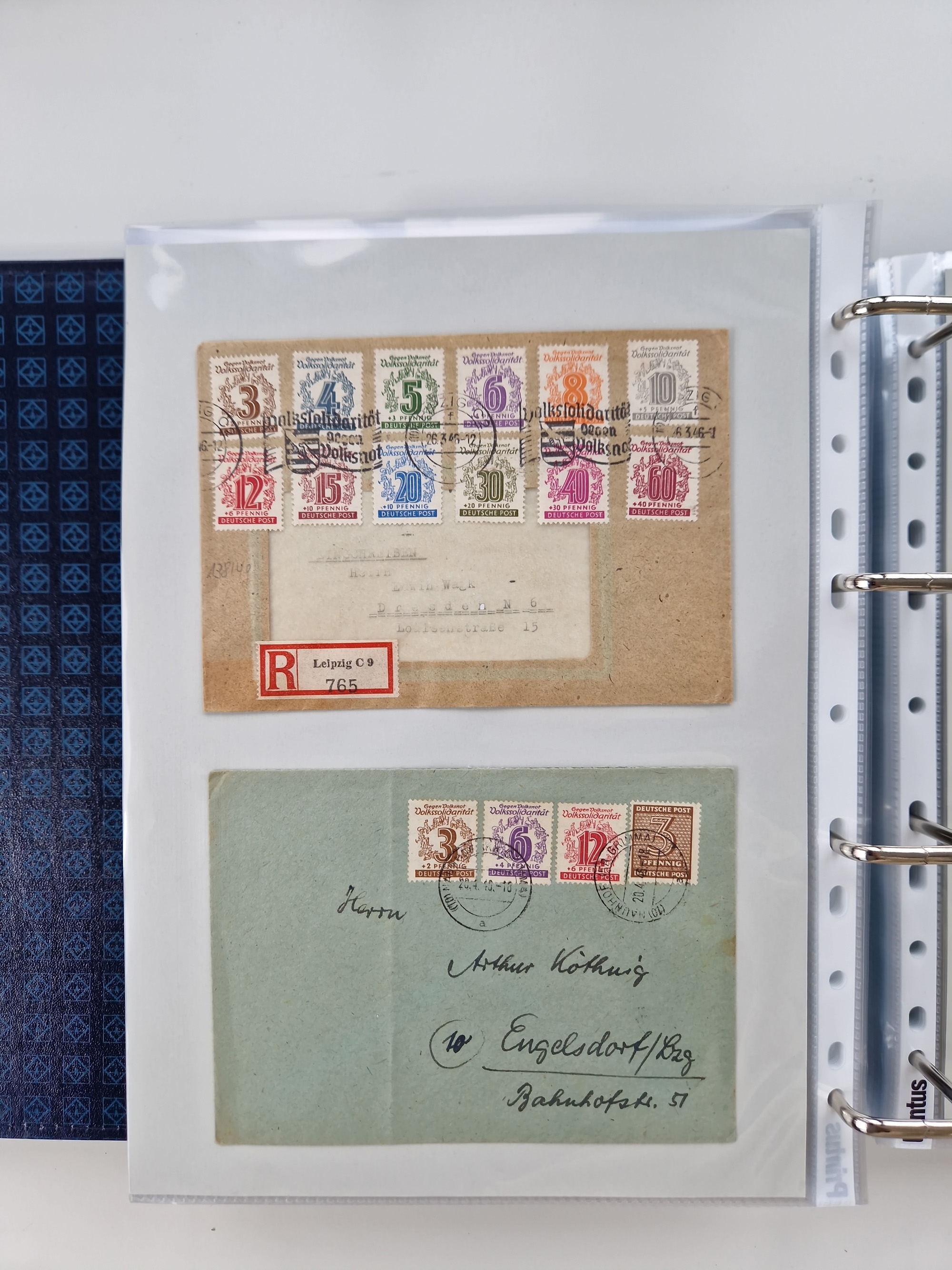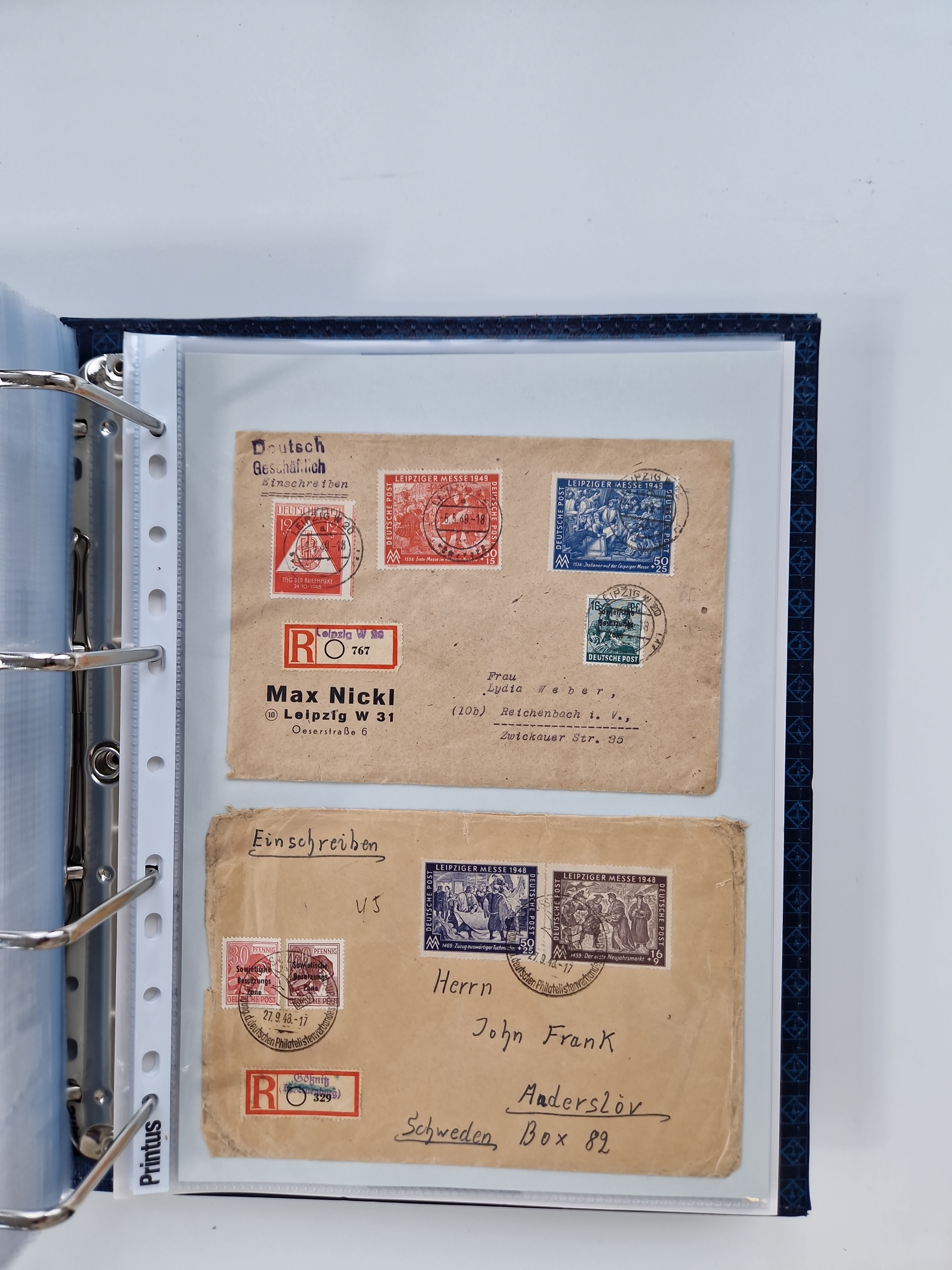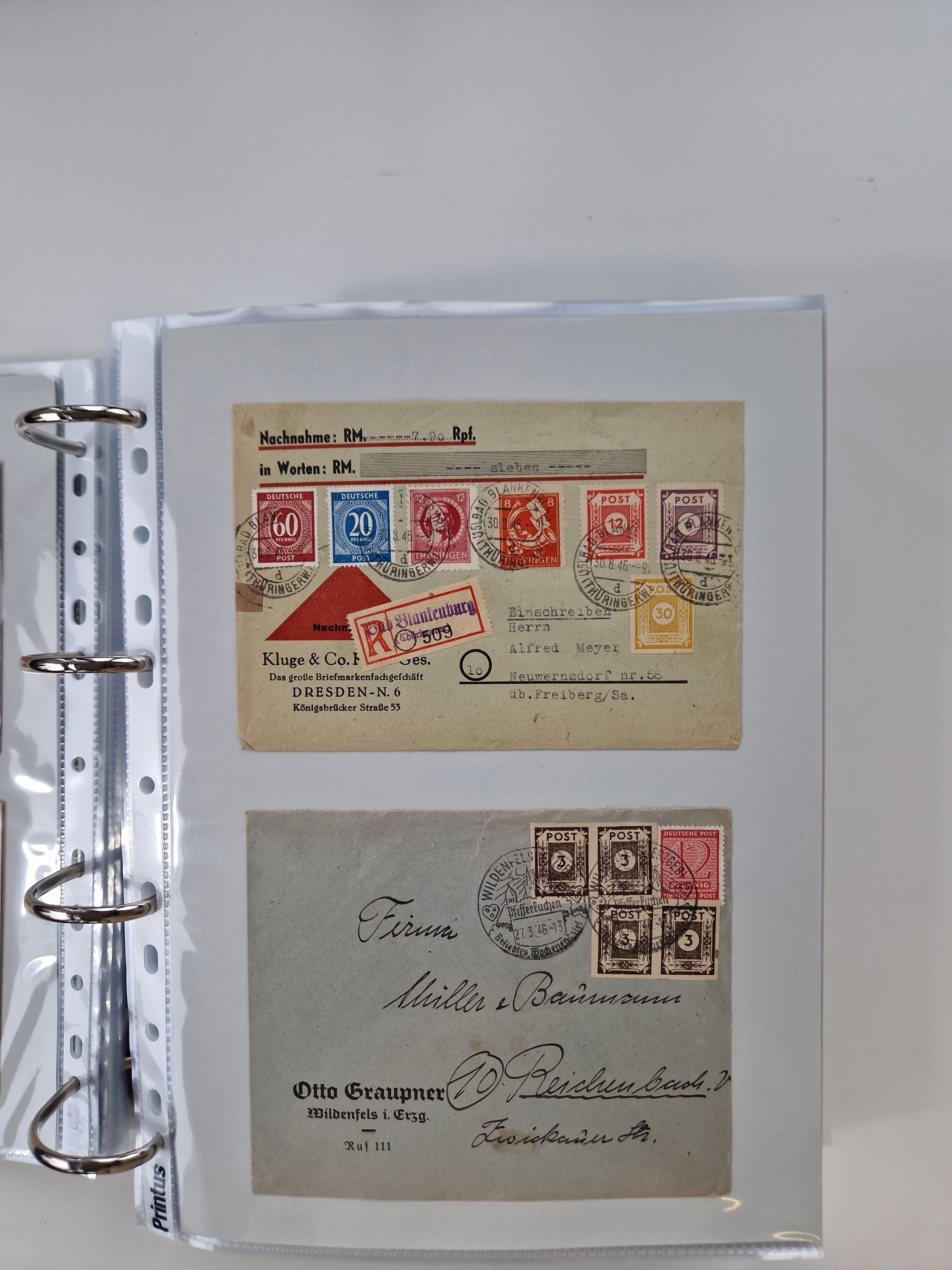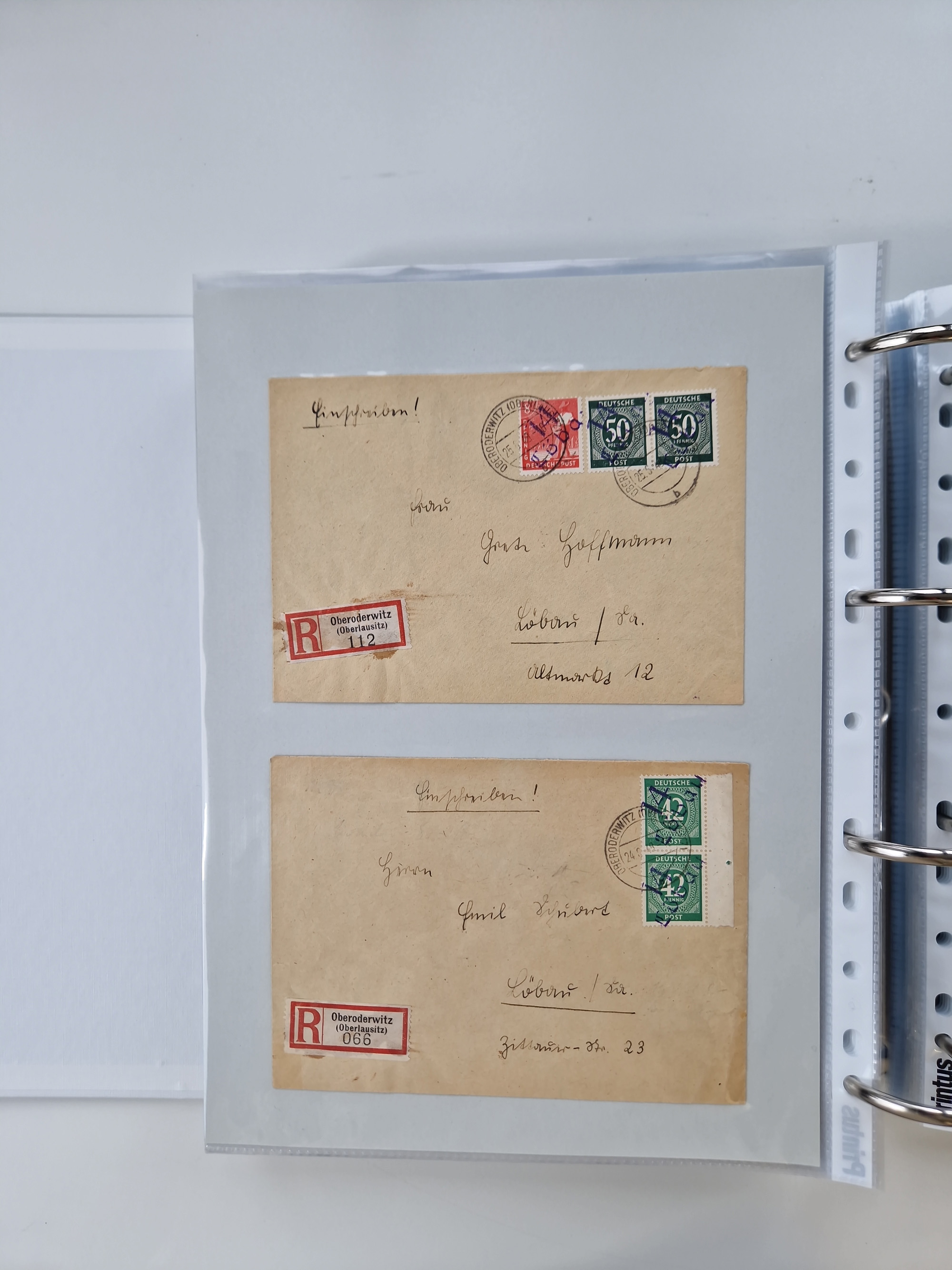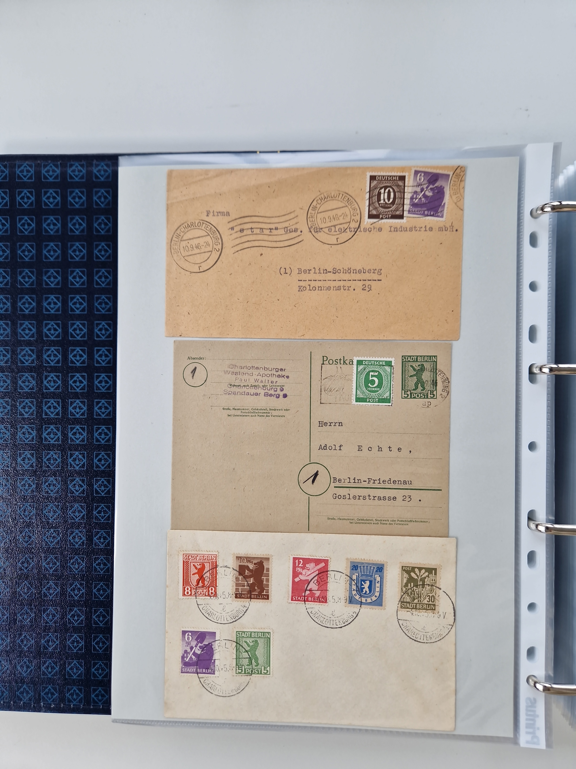 1945/49, umfangreiche Sammlung mit geschätzt 800-900 Briefen, Karten und Ganzsachen. Dabei viele R-Briefe und Satzbriefe, Bedarfspost Mecklenburg Vorpommern, Marken mit Rändern und Einheiten, Bezirkshandstempel mit Bedarfspost und weiteren Besonderheiten, sauber auf Albenblättern in drei Ordnern