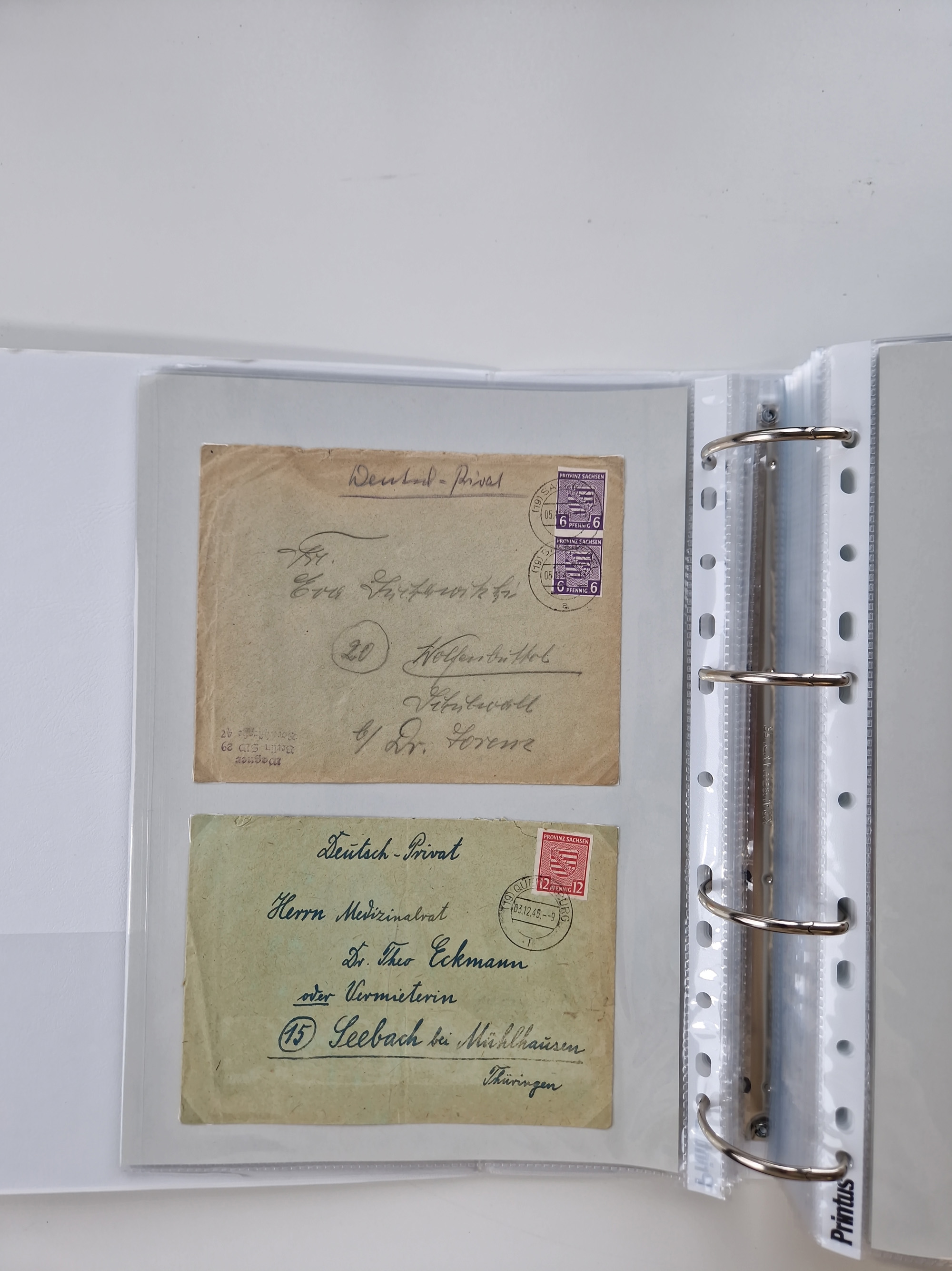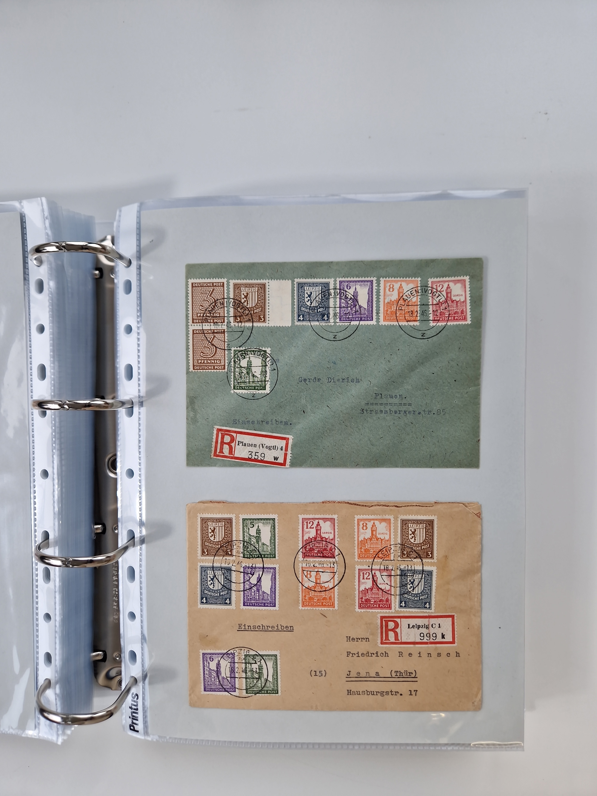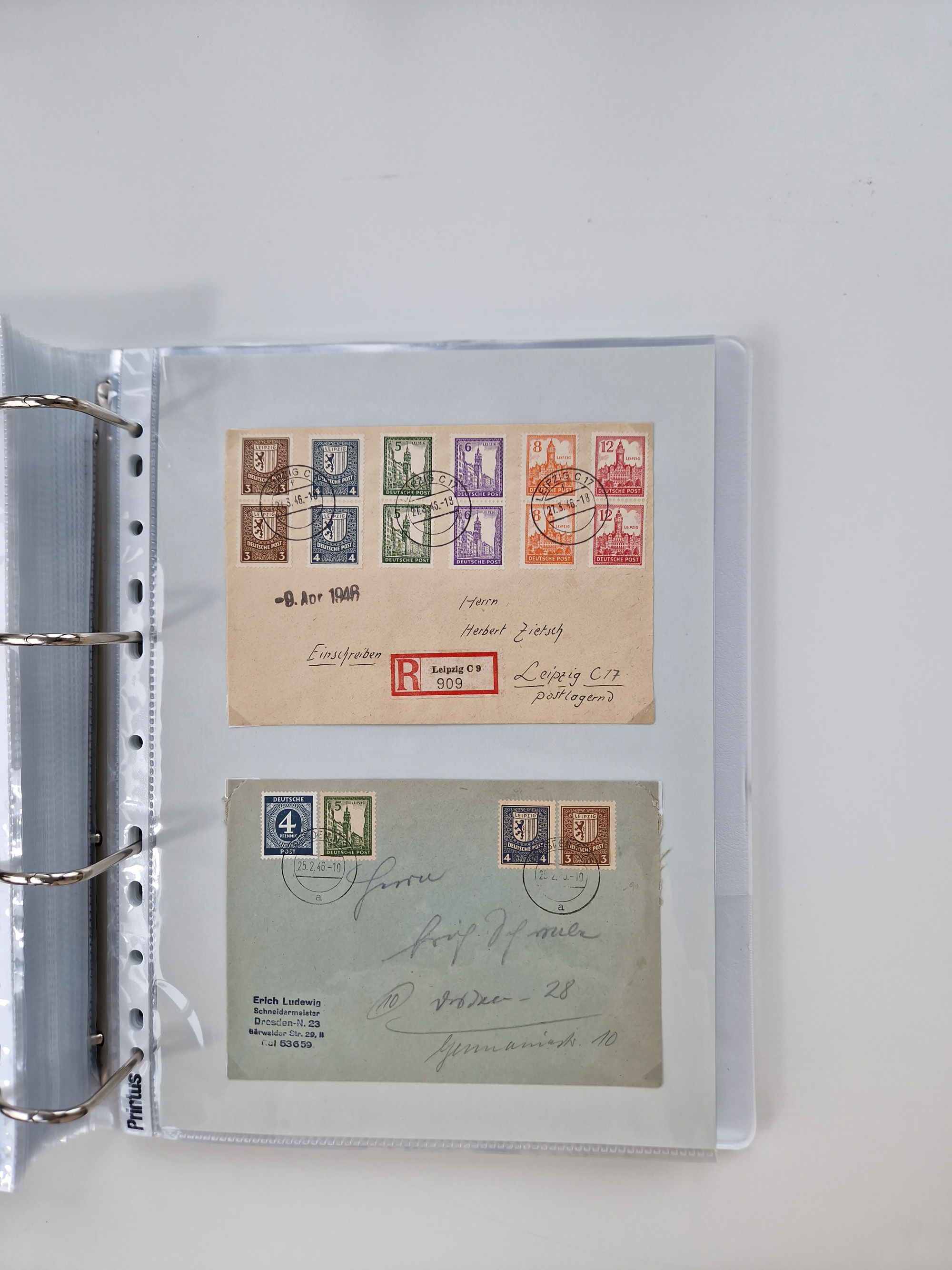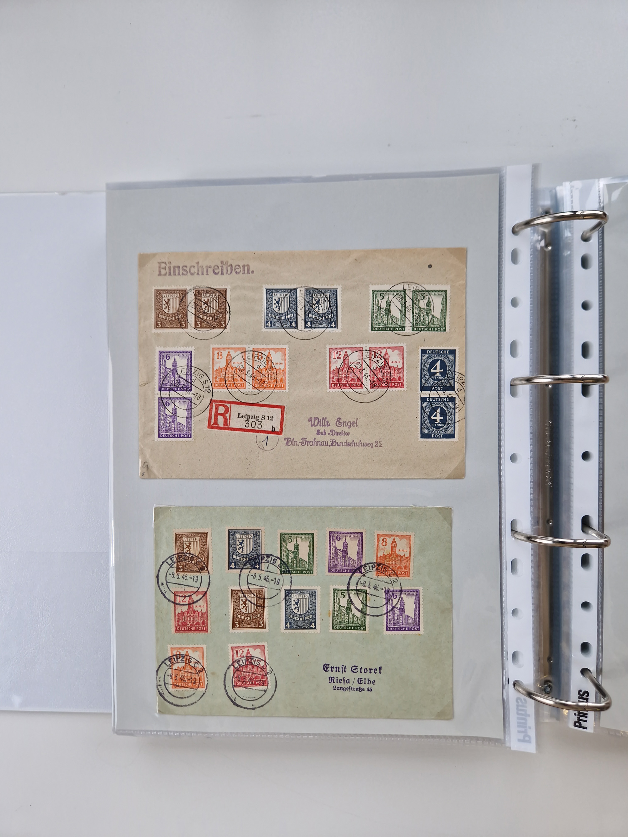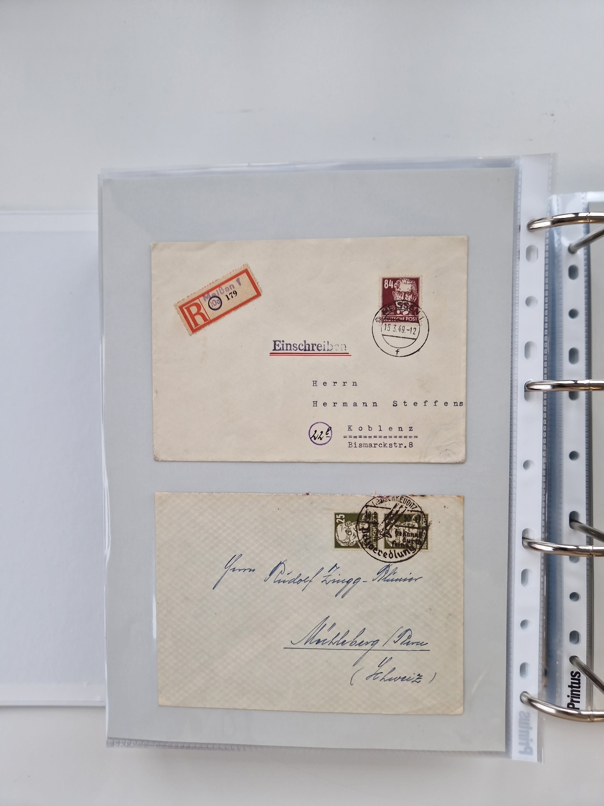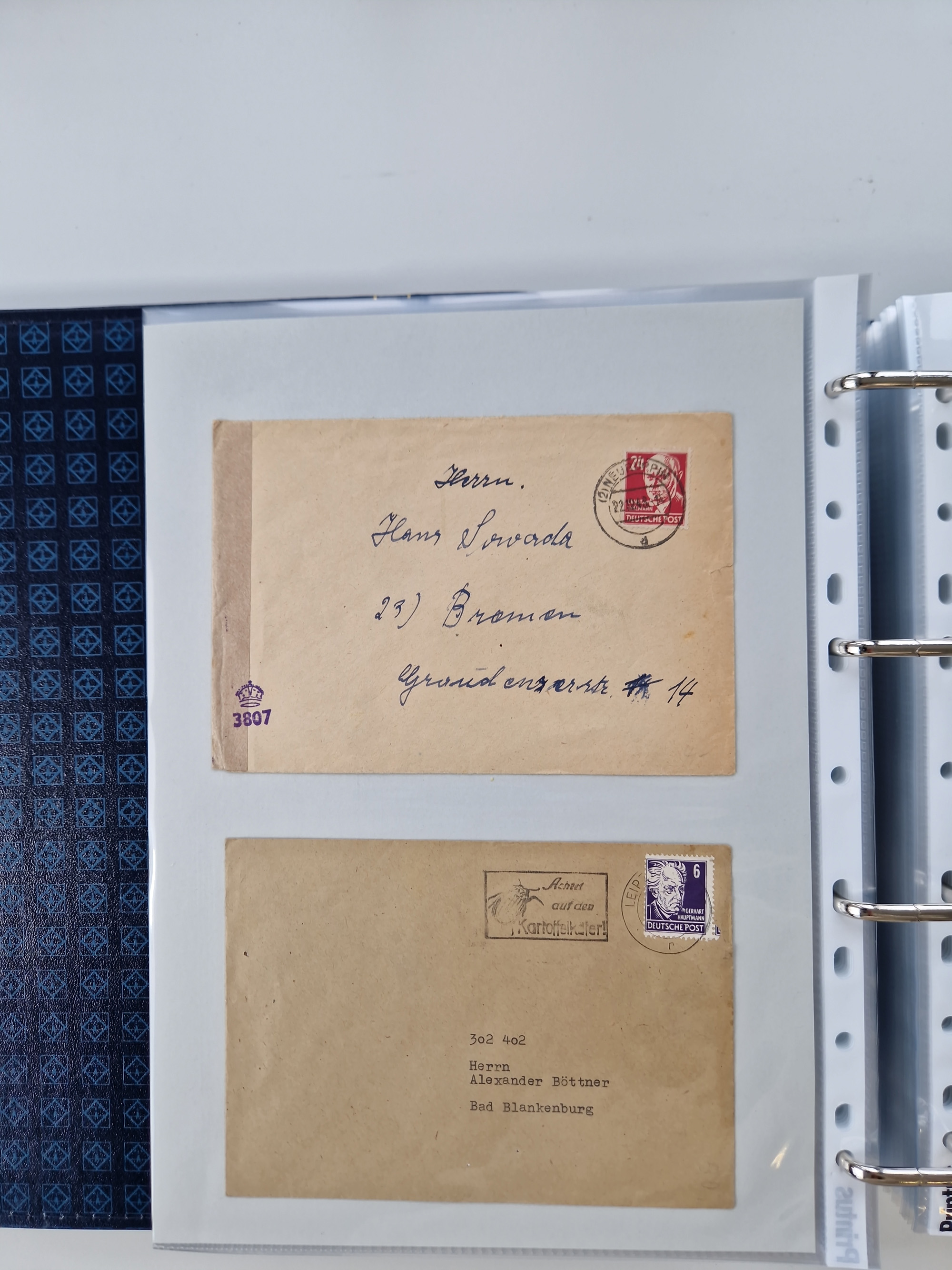 1945/49, umfangreiche Sammlung mit geschätzt 800-900 Briefen, Karten und Ganzsachen. Dabei viele R-Briefe und Satzbriefe, Bedarfspost Mecklenburg Vorpommern, Marken mit Rändern und Einheiten, Bezirkshandstempel mit Bedarfspost und weiteren Besonderheiten, sauber auf Albenblättern in drei Ordnern