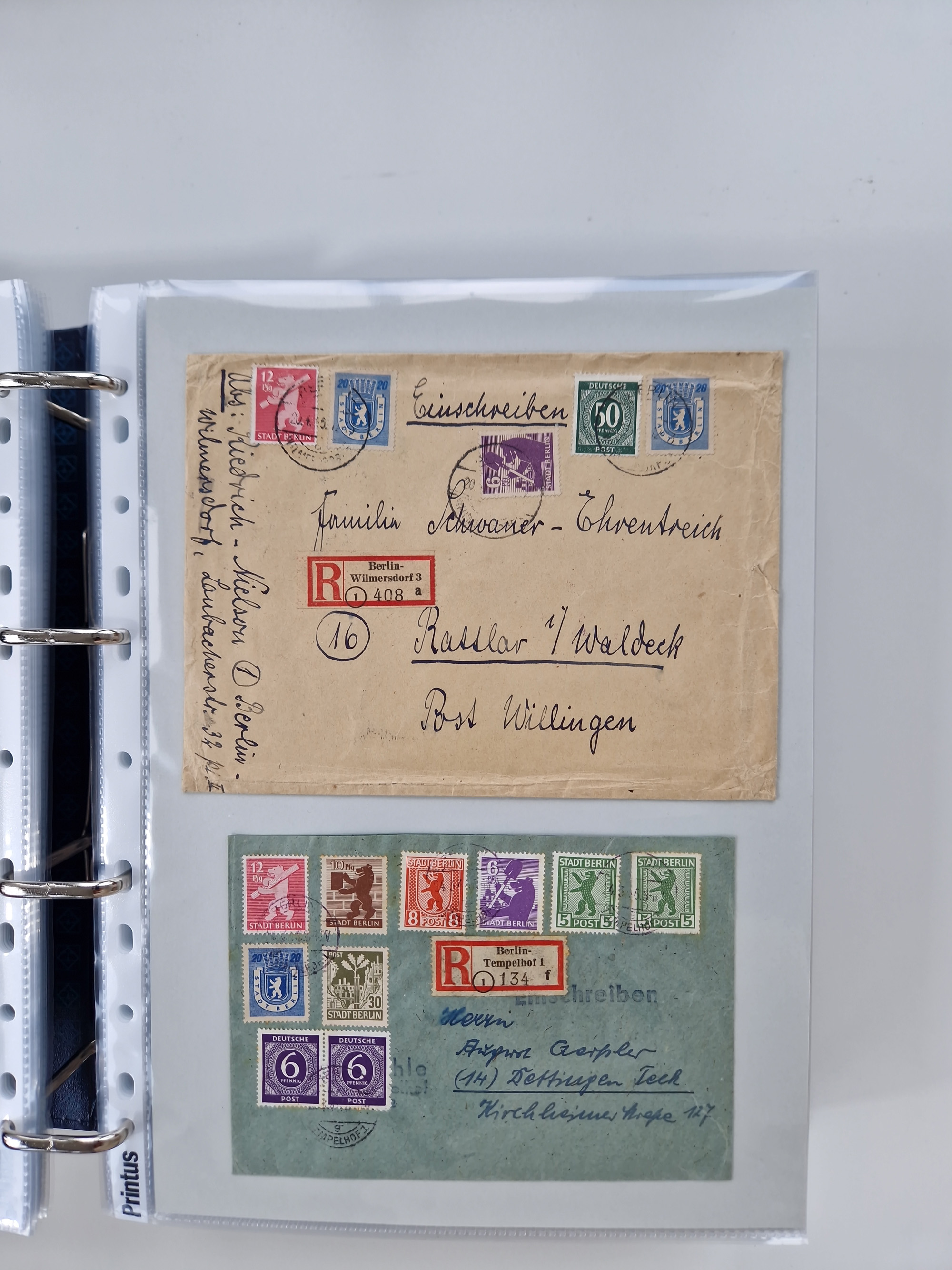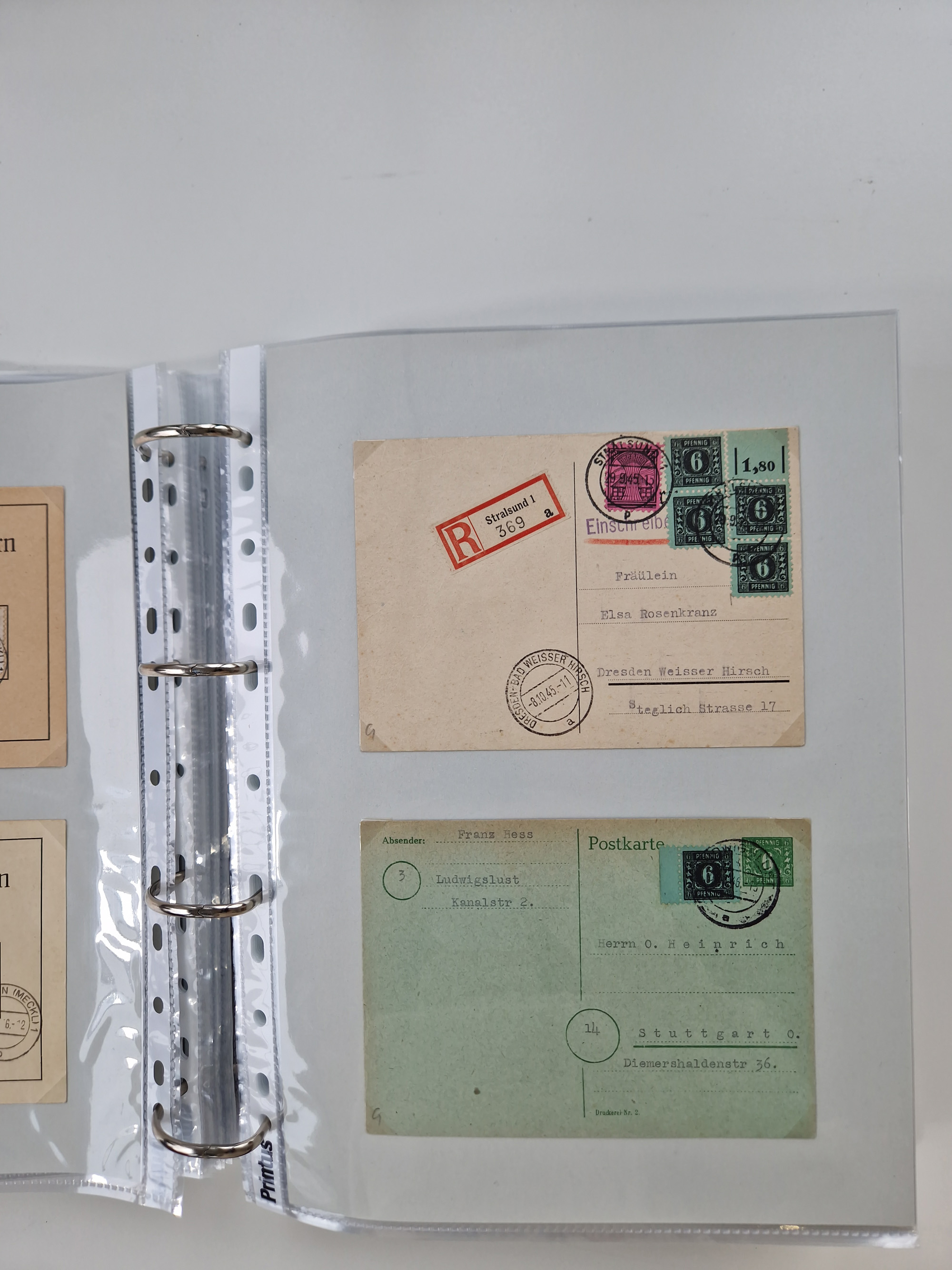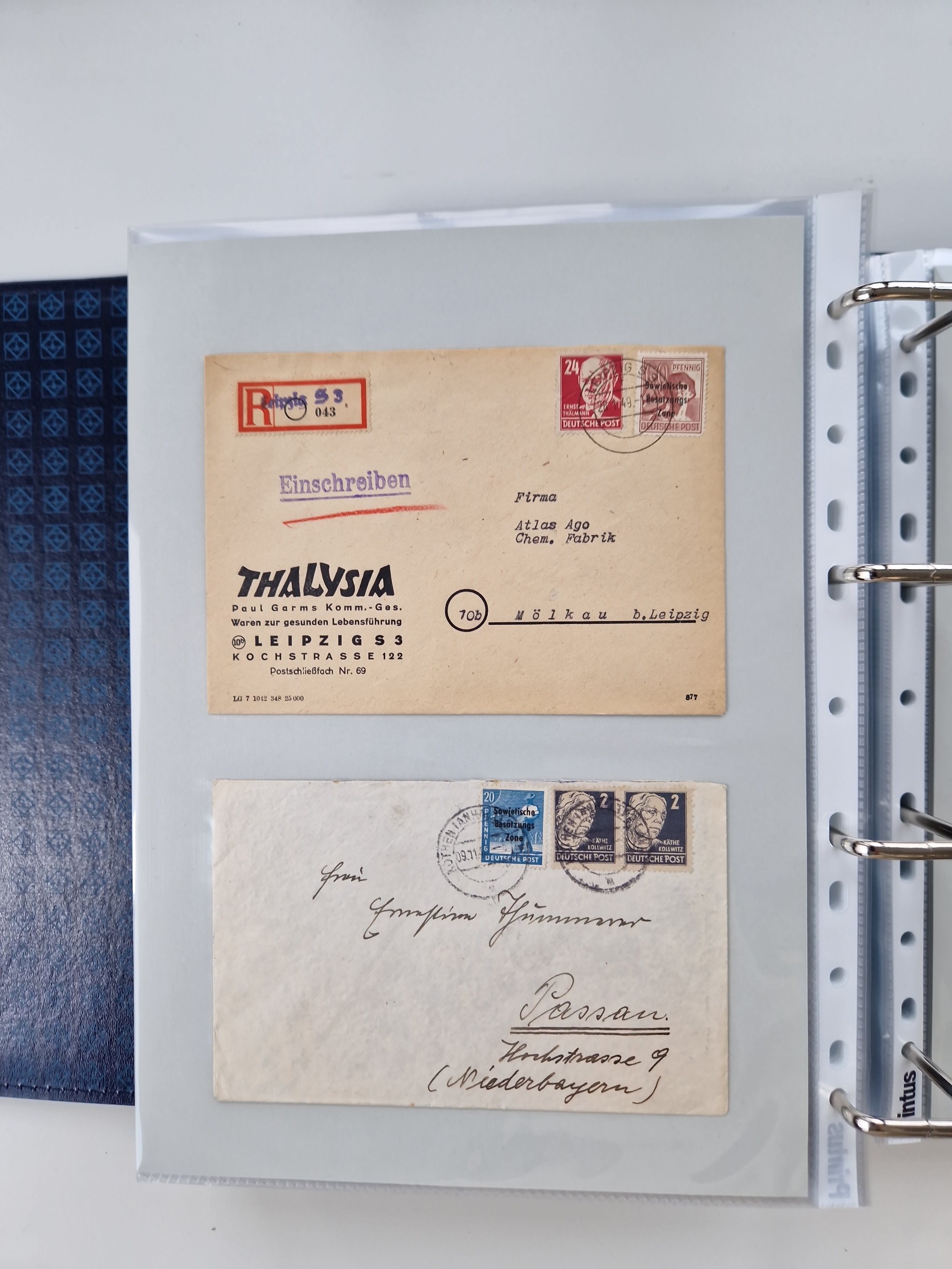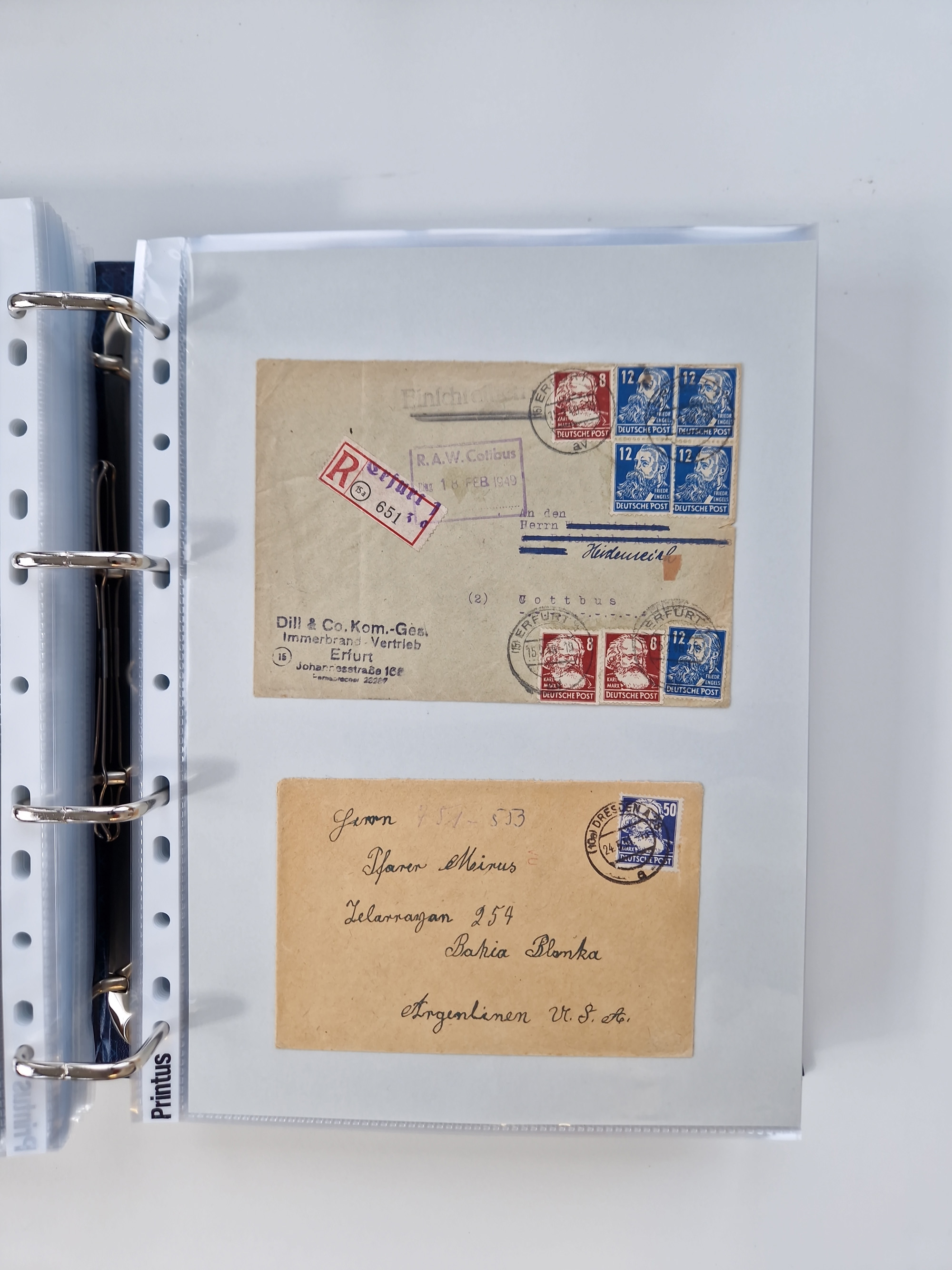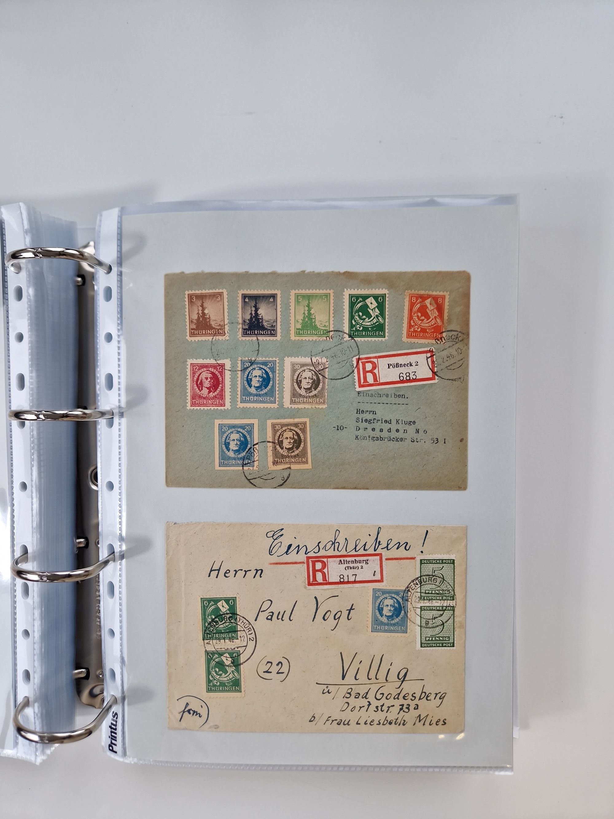 1945/49, umfangreiche Sammlung mit geschätzt 800-900 Briefen, Karten und Ganzsachen. Dabei viele R-Briefe und Satzbriefe, Bedarfspost Mecklenburg Vorpommern, Marken mit Rändern und Einheiten, Bezirkshandstempel mit Bedarfspost und weiteren Besonderheiten, sauber auf Albenblättern in drei Ordnern