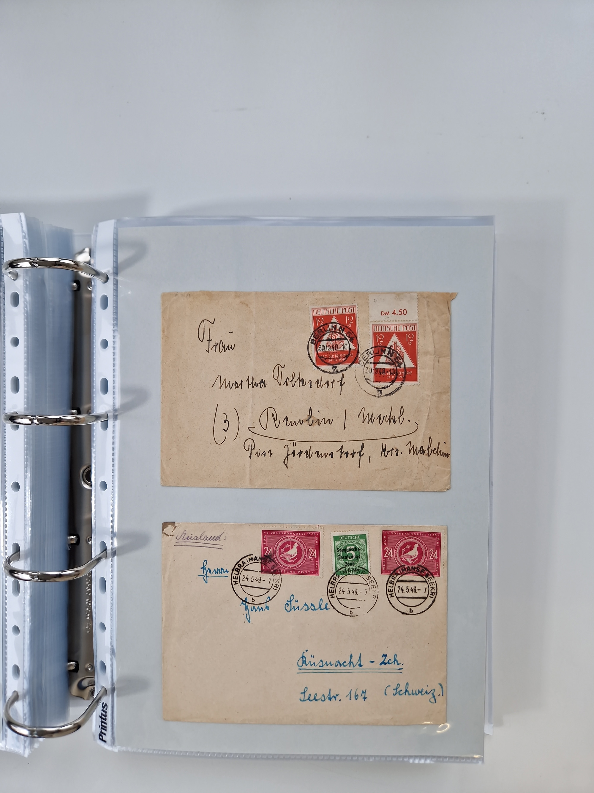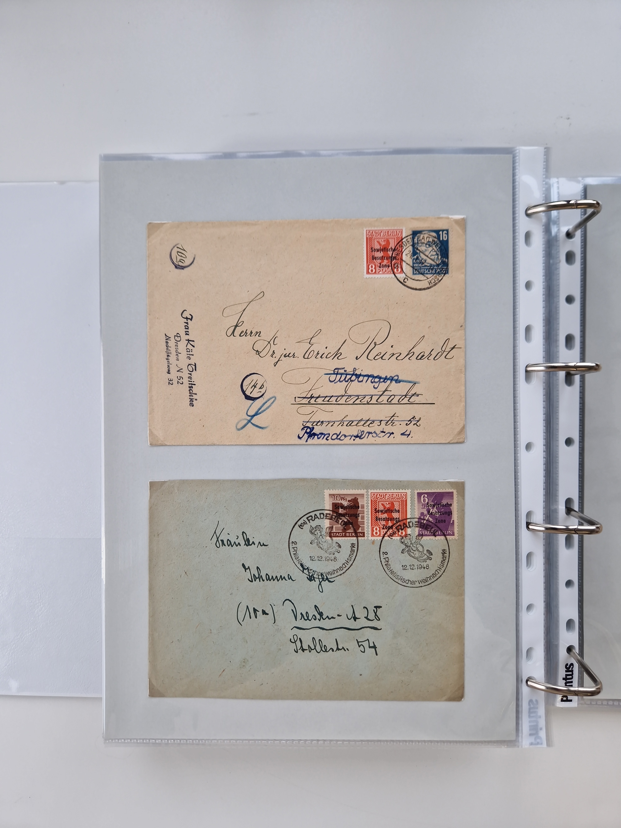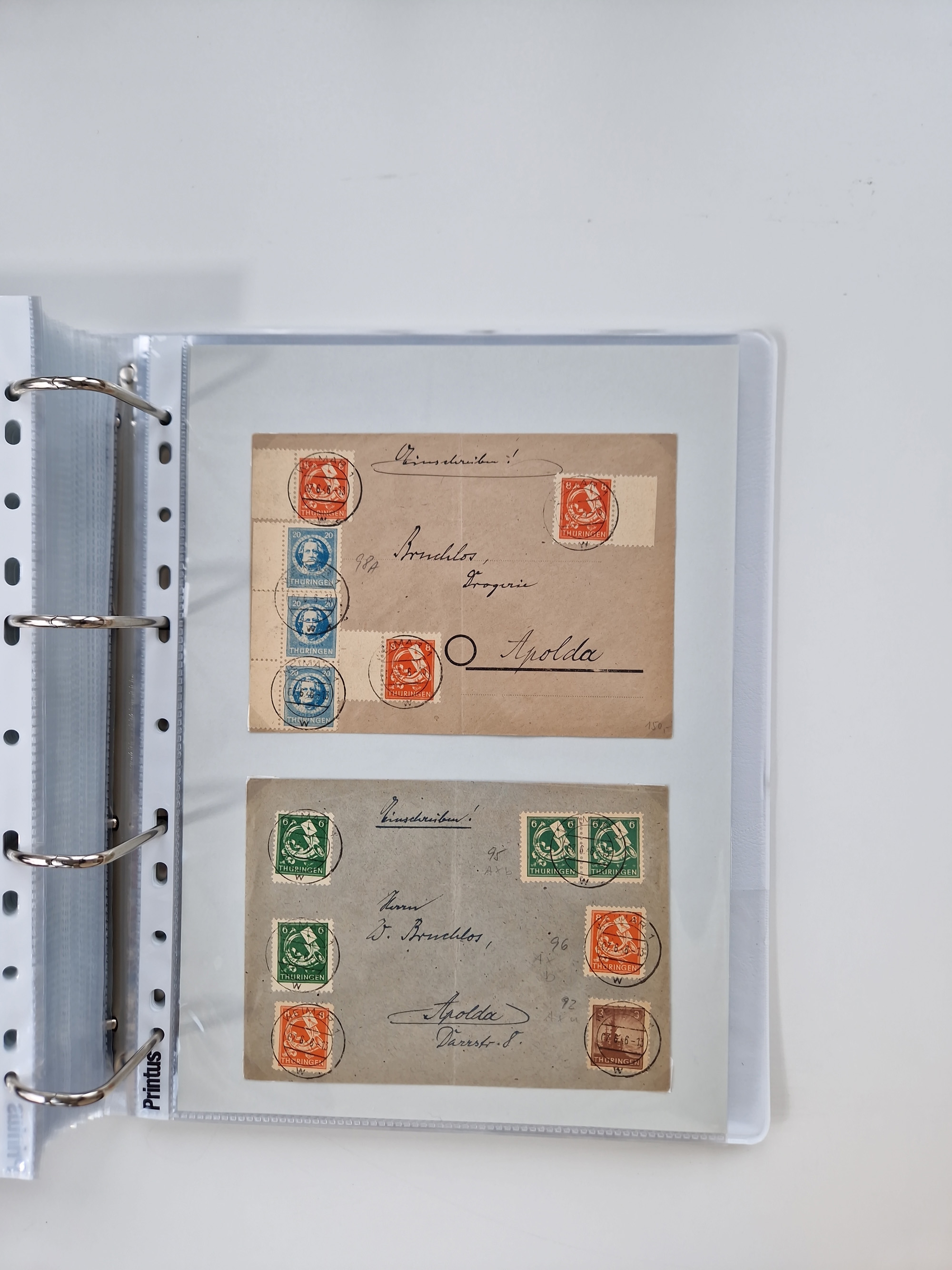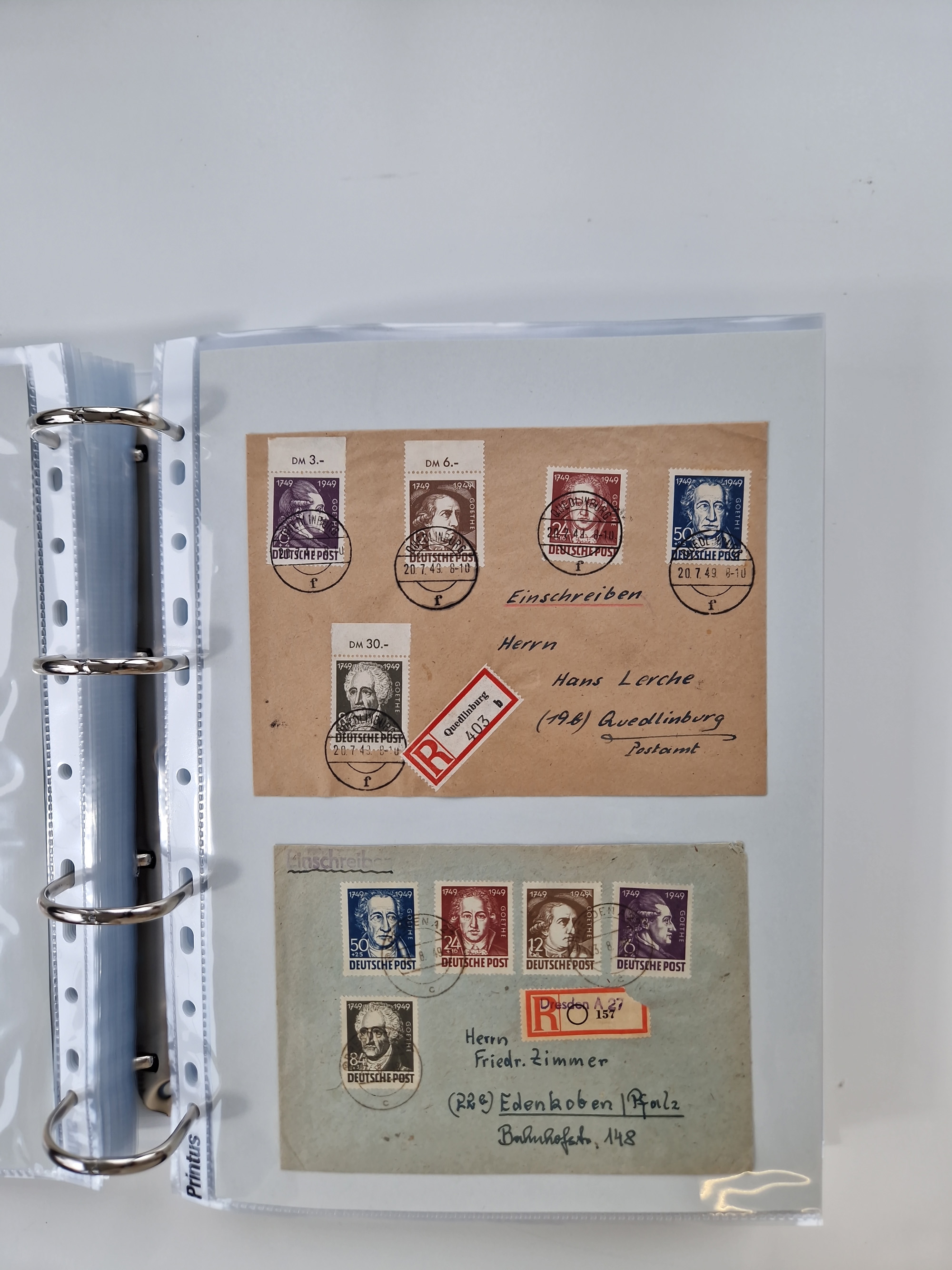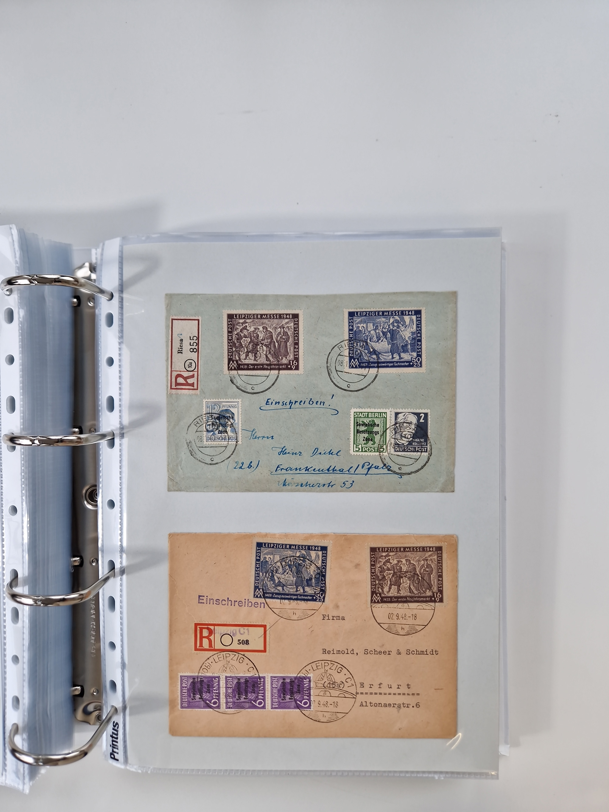 1945/49, umfangreiche Sammlung mit geschätzt 800-900 Briefen, Karten und Ganzsachen. Dabei viele R-Briefe und Satzbriefe, Bedarfspost Mecklenburg Vorpommern, Marken mit Rändern und Einheiten, Bezirkshandstempel mit Bedarfspost und weiteren Besonderheiten, sauber auf Albenblättern in drei Ordnern