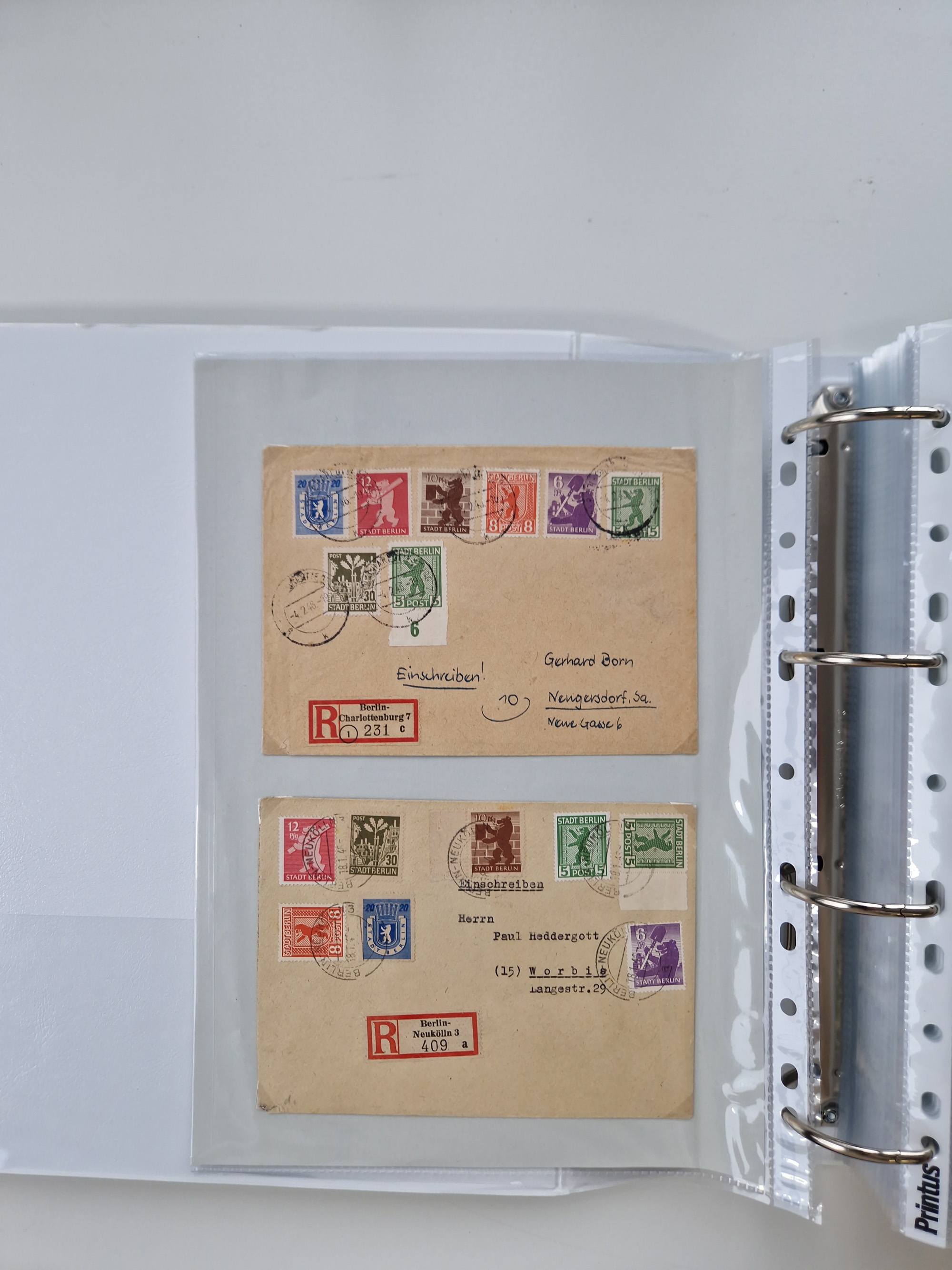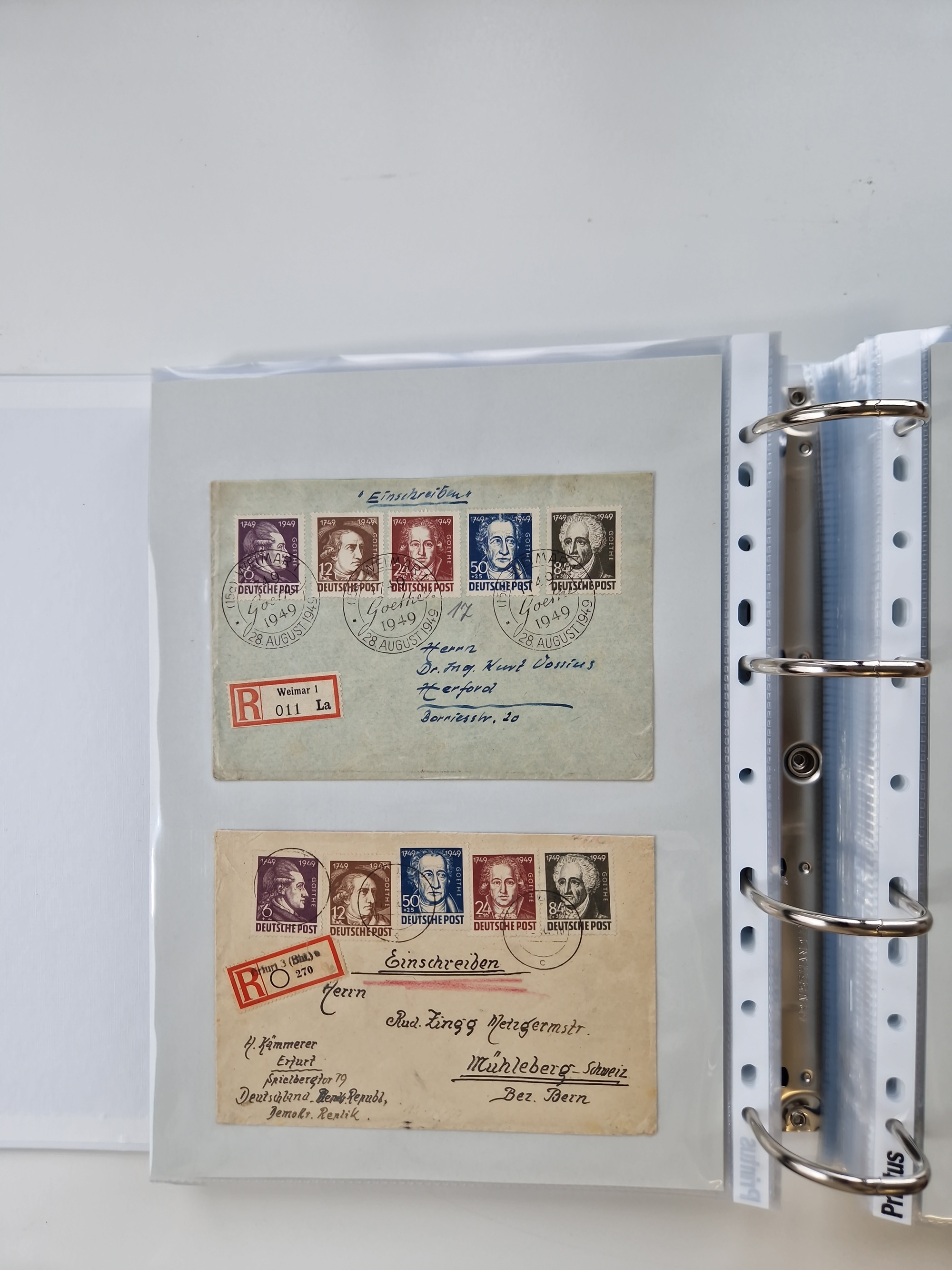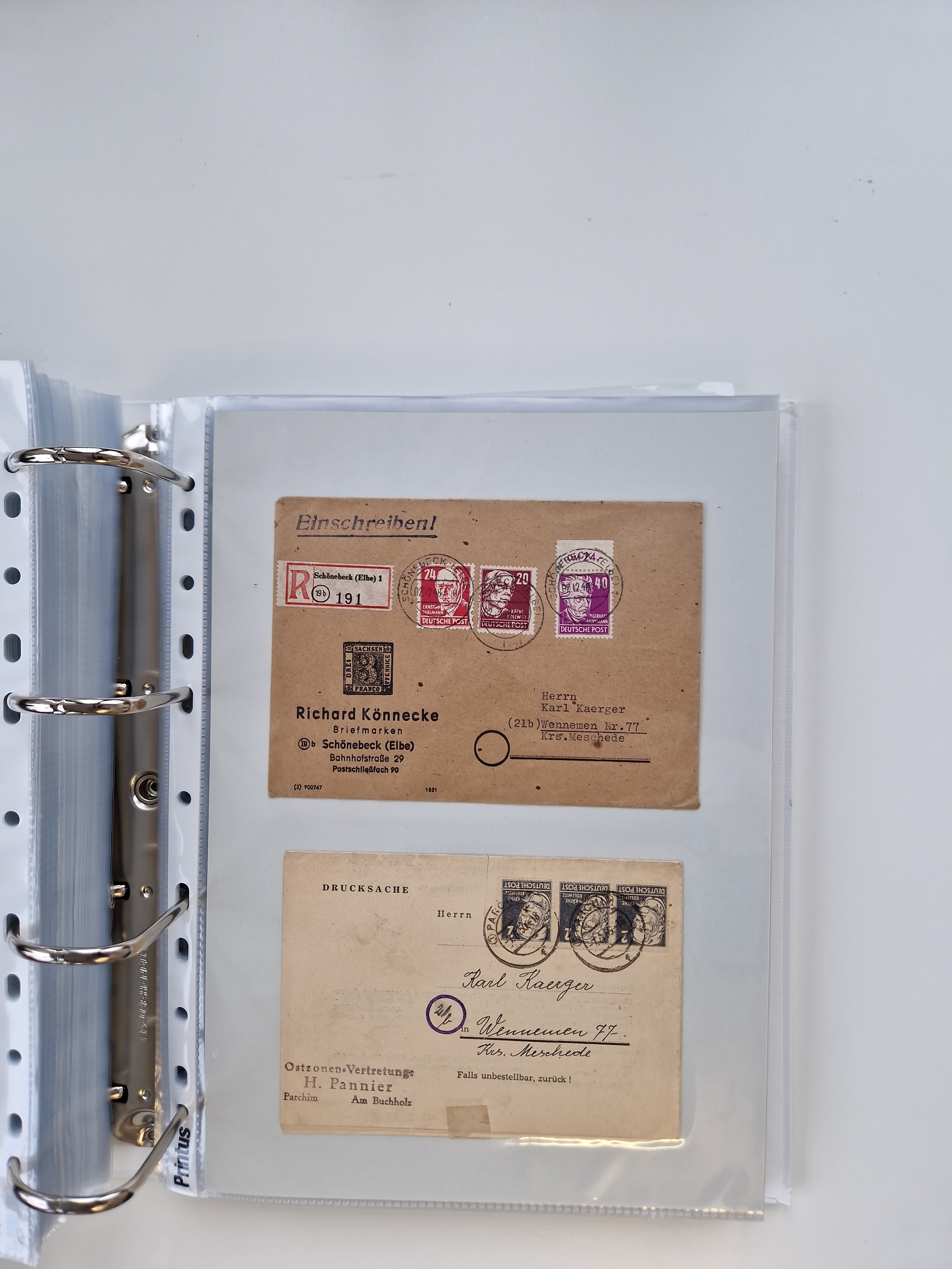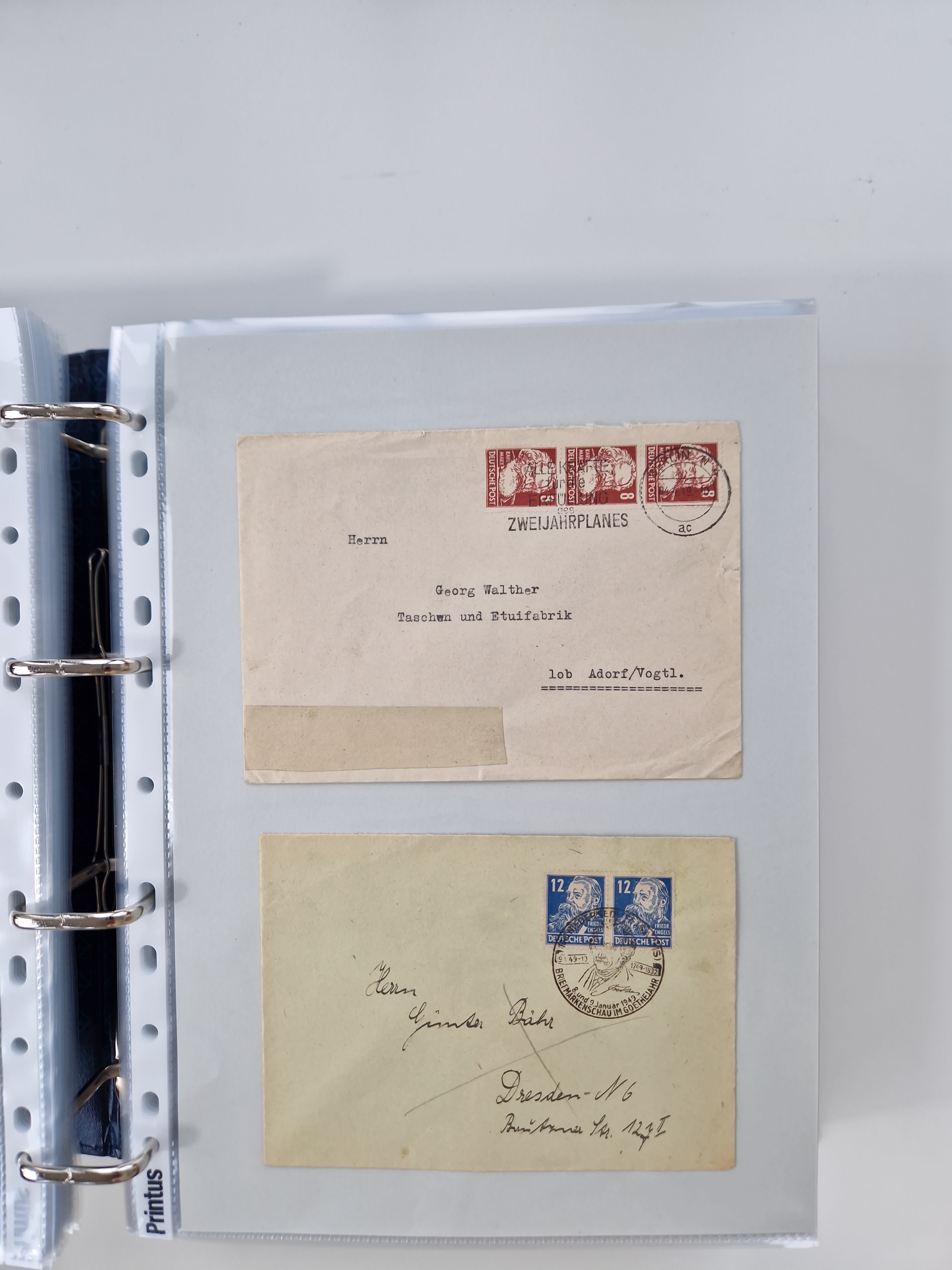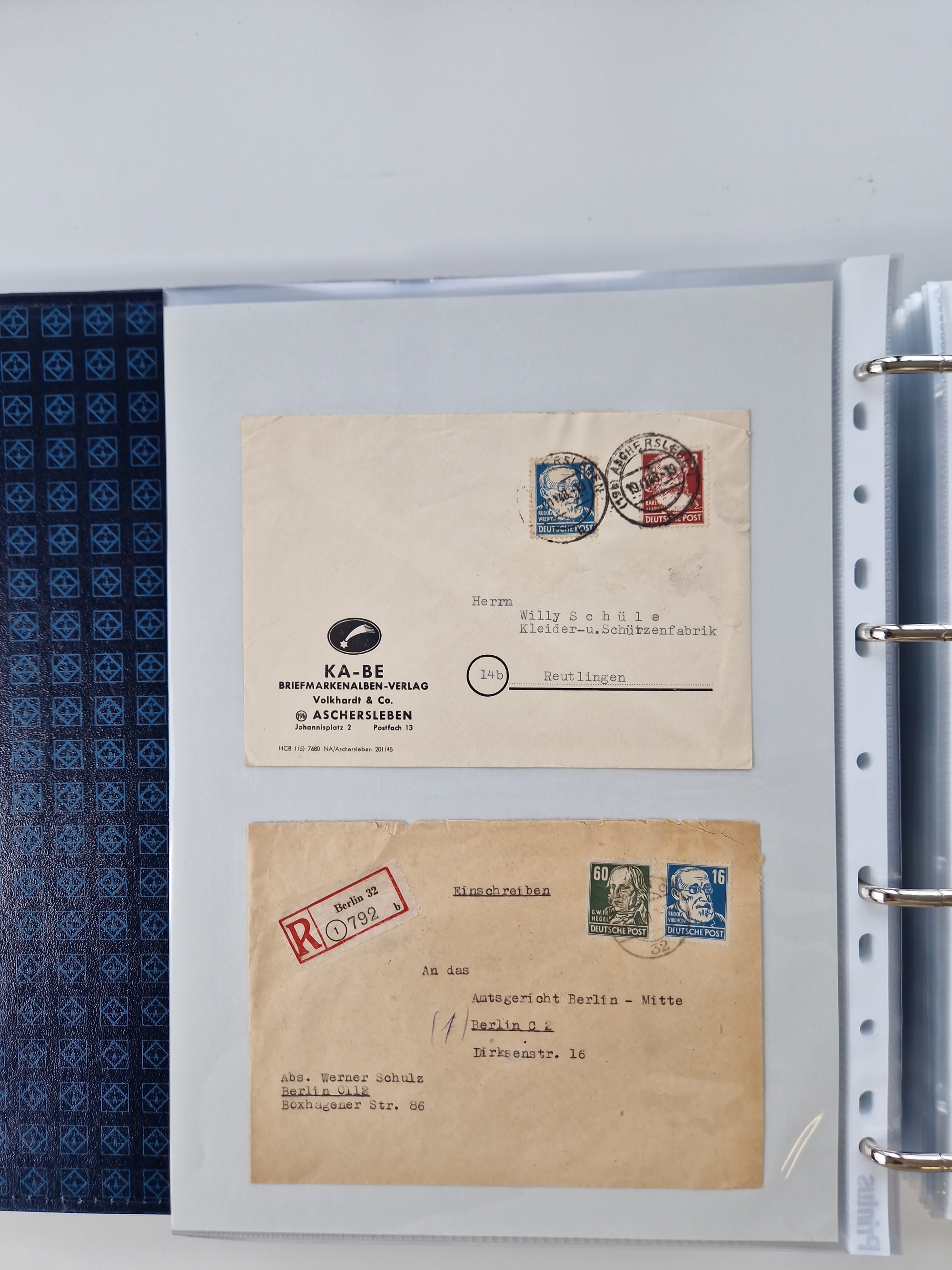 1945/49, umfangreiche Sammlung mit geschätzt 800-900 Briefen, Karten und Ganzsachen. Dabei viele R-Briefe und Satzbriefe, Bedarfspost Mecklenburg Vorpommern, Marken mit Rändern und Einheiten, Bezirkshandstempel mit Bedarfspost und weiteren Besonderheiten, sauber auf Albenblättern in drei Ordnern