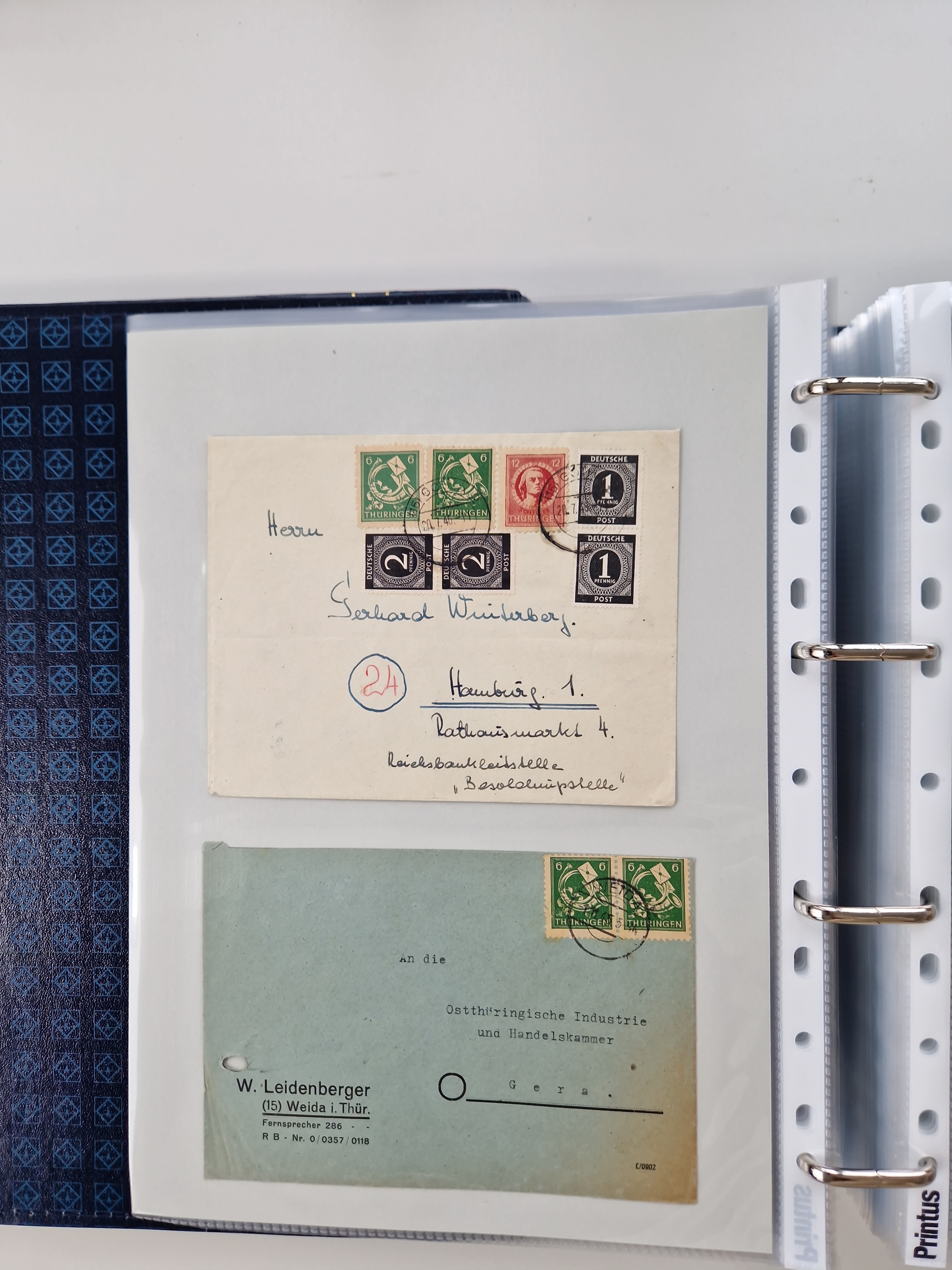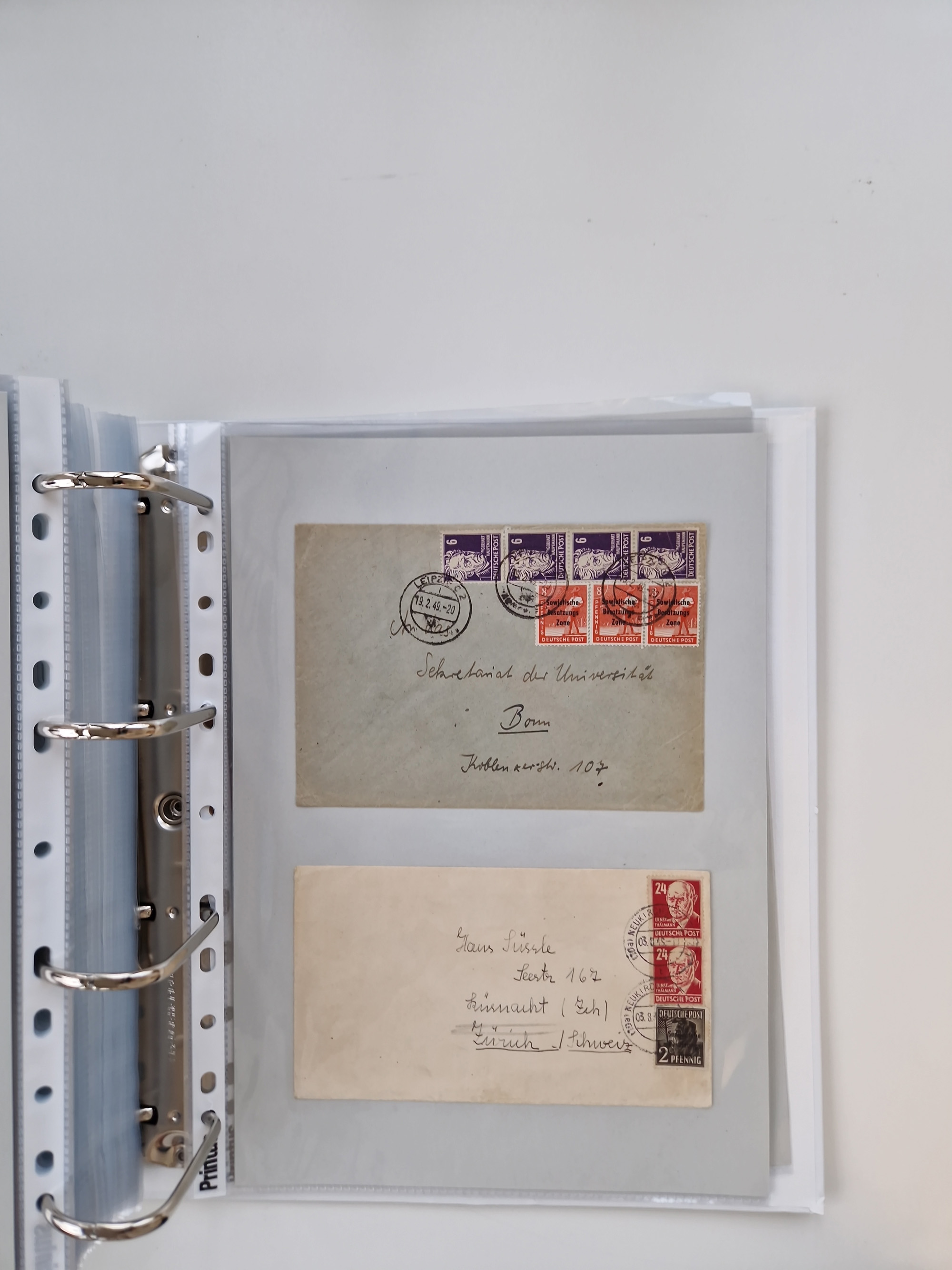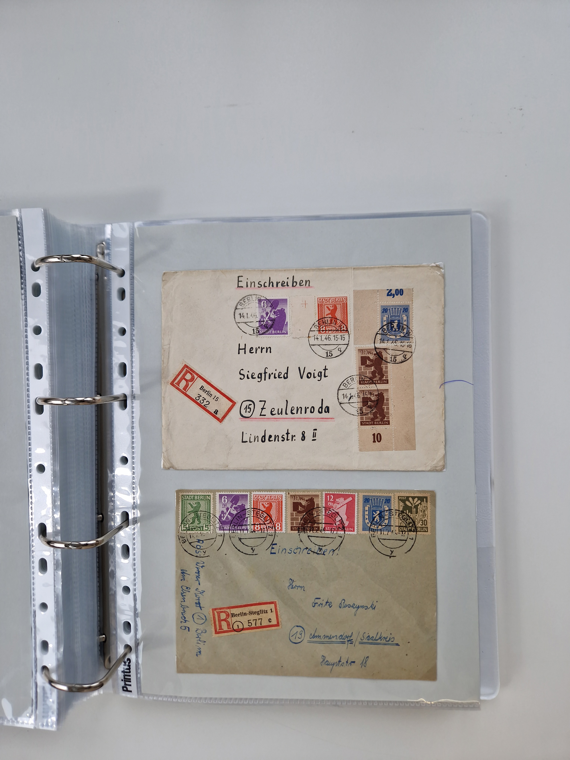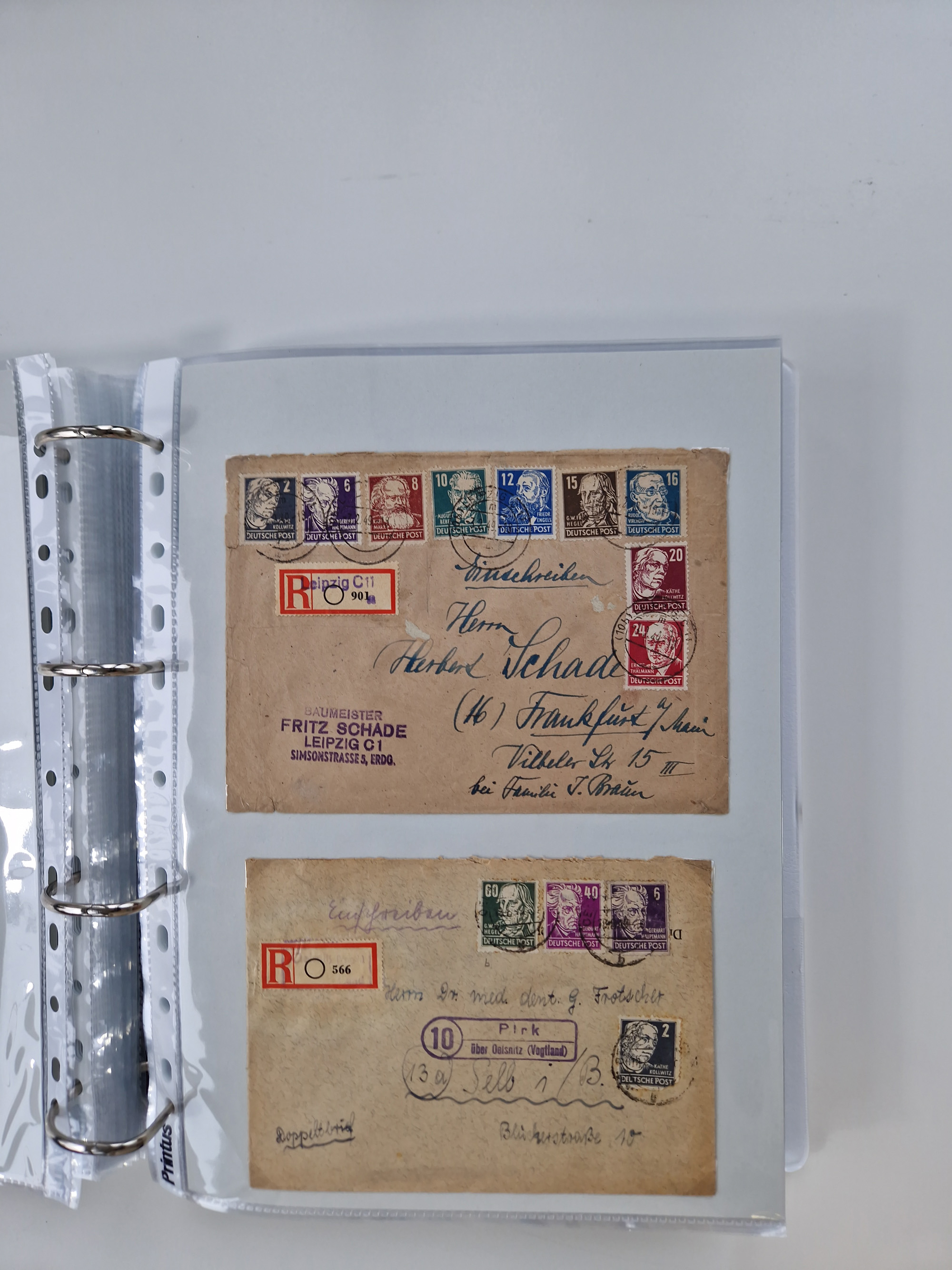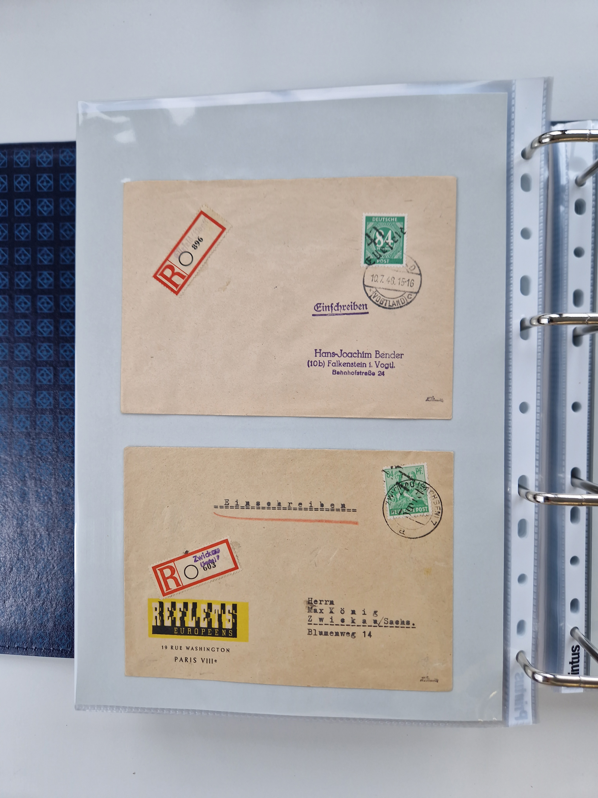1945/49, umfangreiche Sammlung mit geschätzt 800-900 Briefen, Karten und Ganzsachen. Dabei viele R-Briefe und Satzbriefe, Bedarfspost Mecklenburg Vorpommern, Marken mit Rändern und Einheiten, Bezirkshandstempel mit Bedarfspost und weiteren Besonderheiten, sauber auf Albenblättern in drei Ordnern