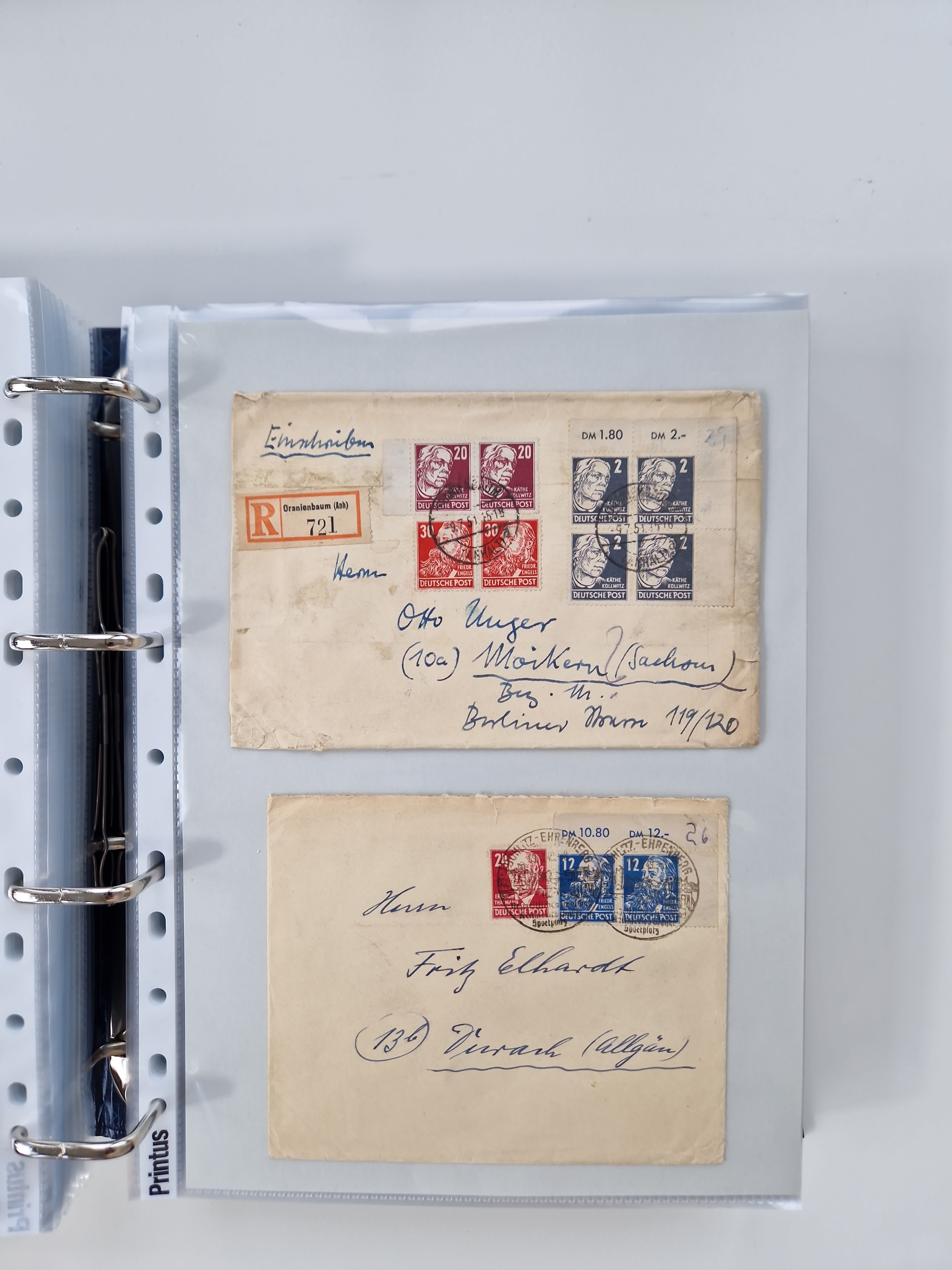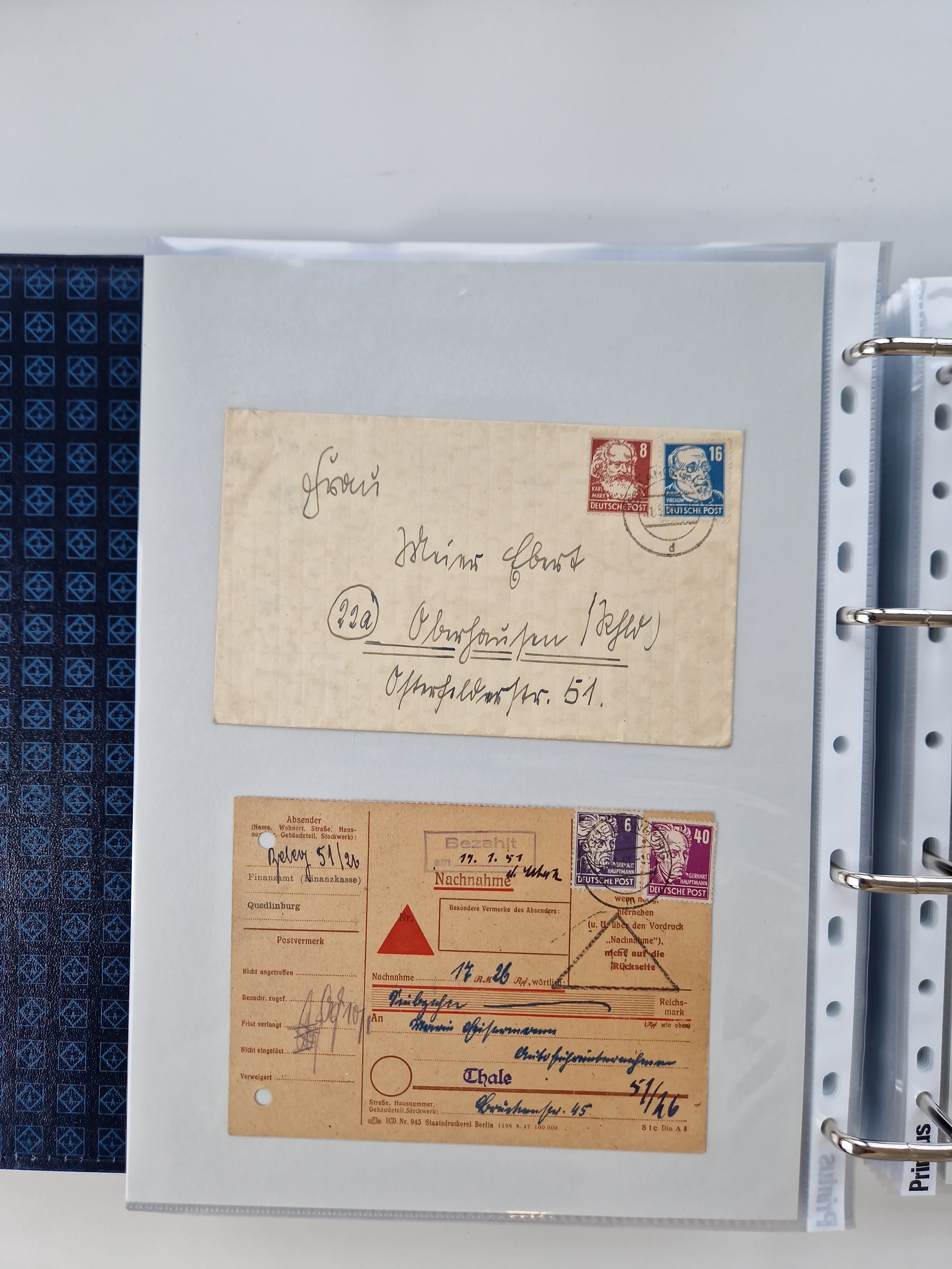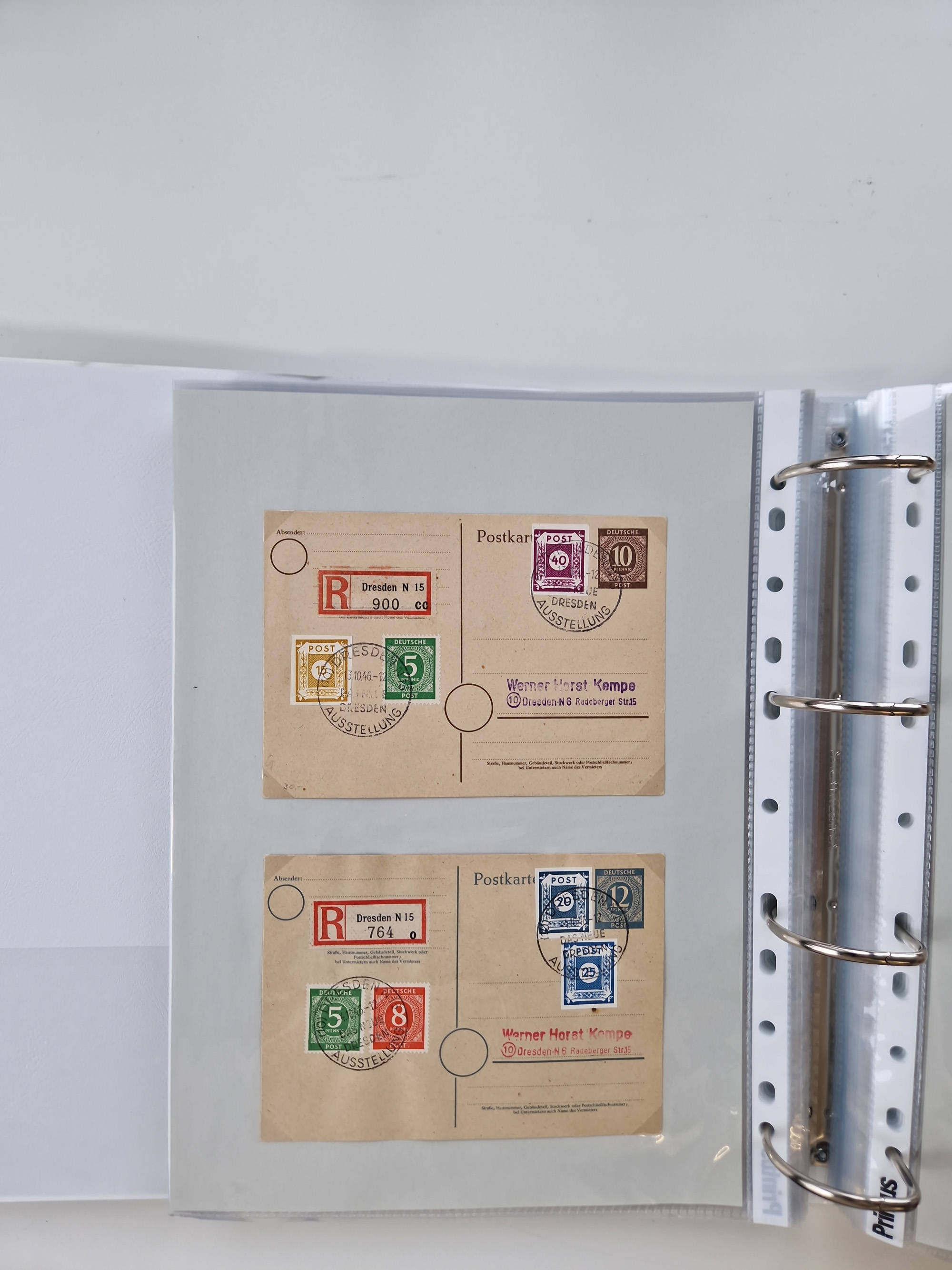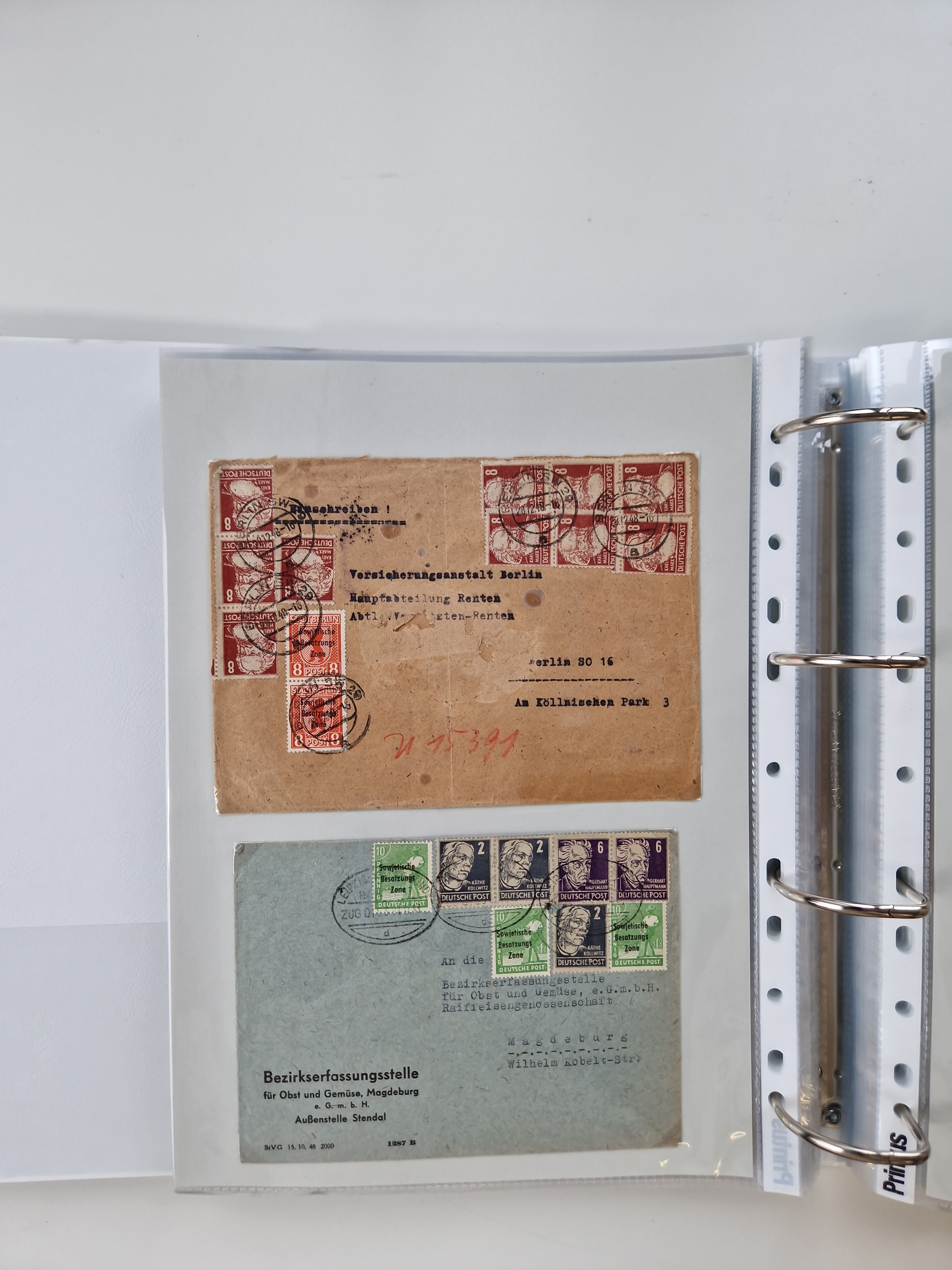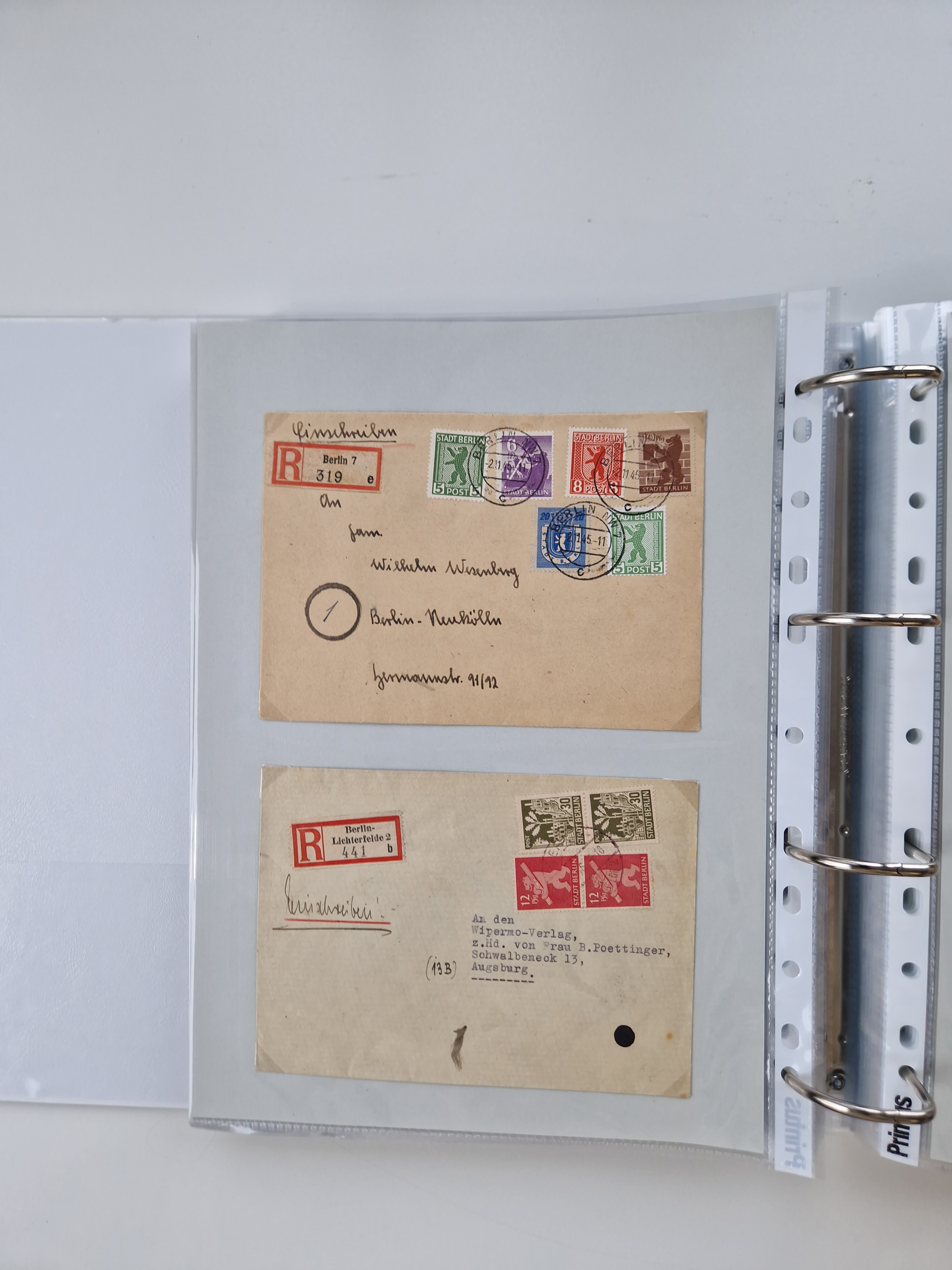 1945/49, umfangreiche Sammlung mit geschätzt 800-900 Briefen, Karten und Ganzsachen. Dabei viele R-Briefe und Satzbriefe, Bedarfspost Mecklenburg Vorpommern, Marken mit Rändern und Einheiten, Bezirkshandstempel mit Bedarfspost und weiteren Besonderheiten, sauber auf Albenblättern in drei Ordnern
