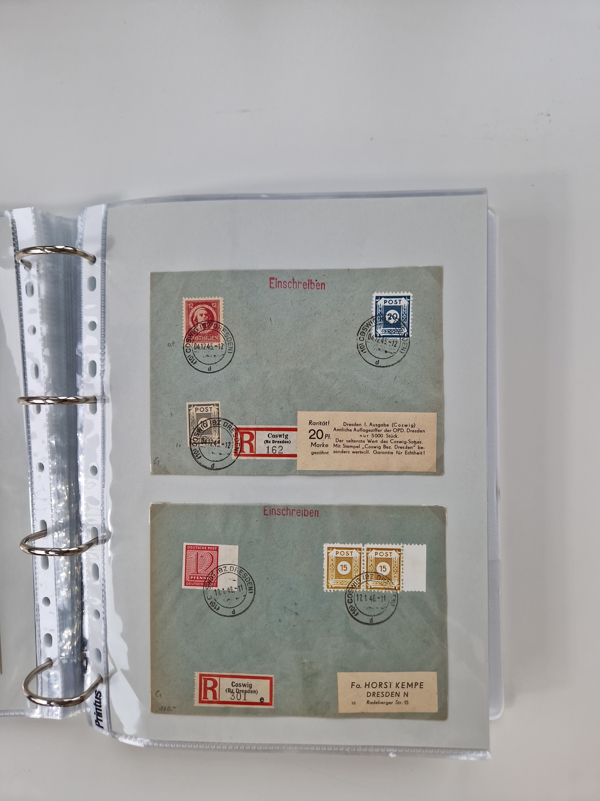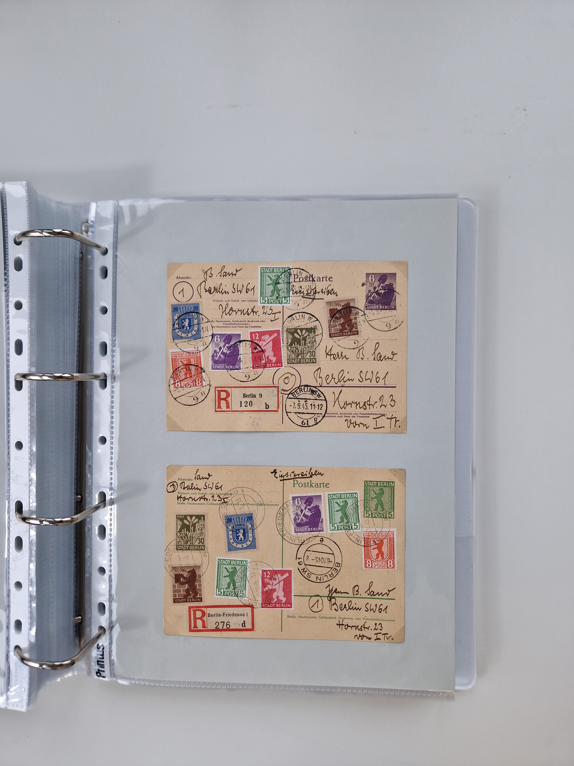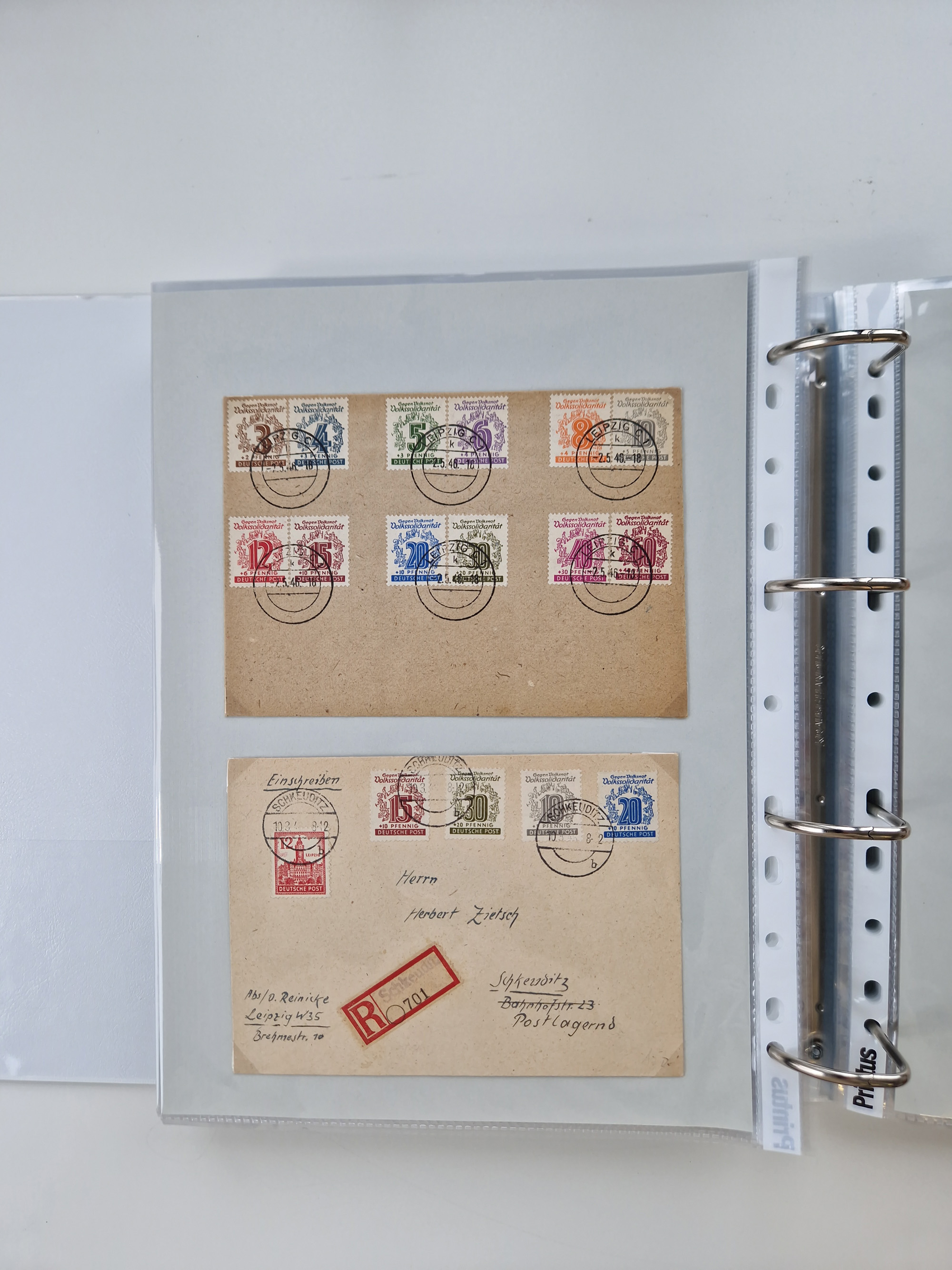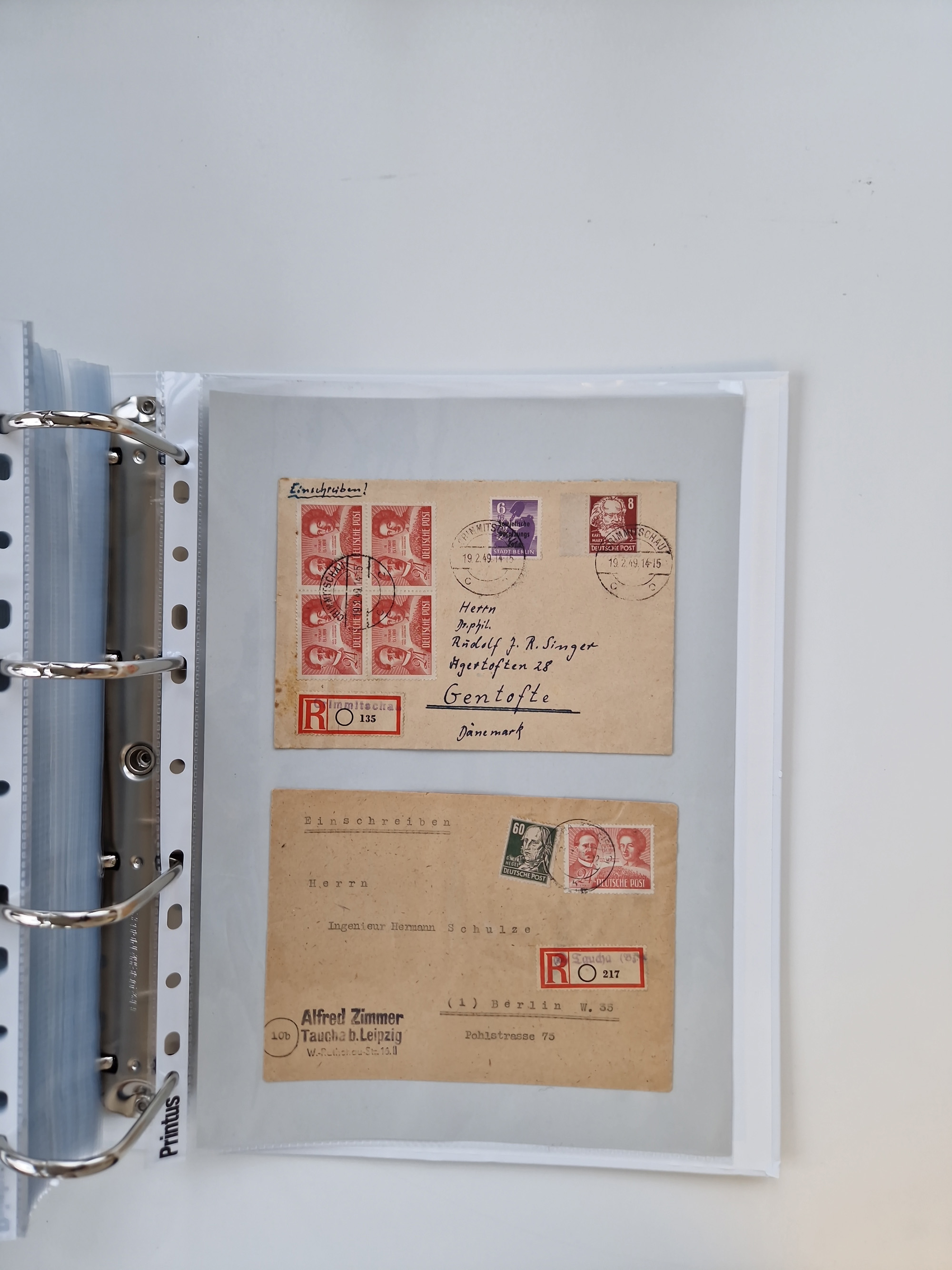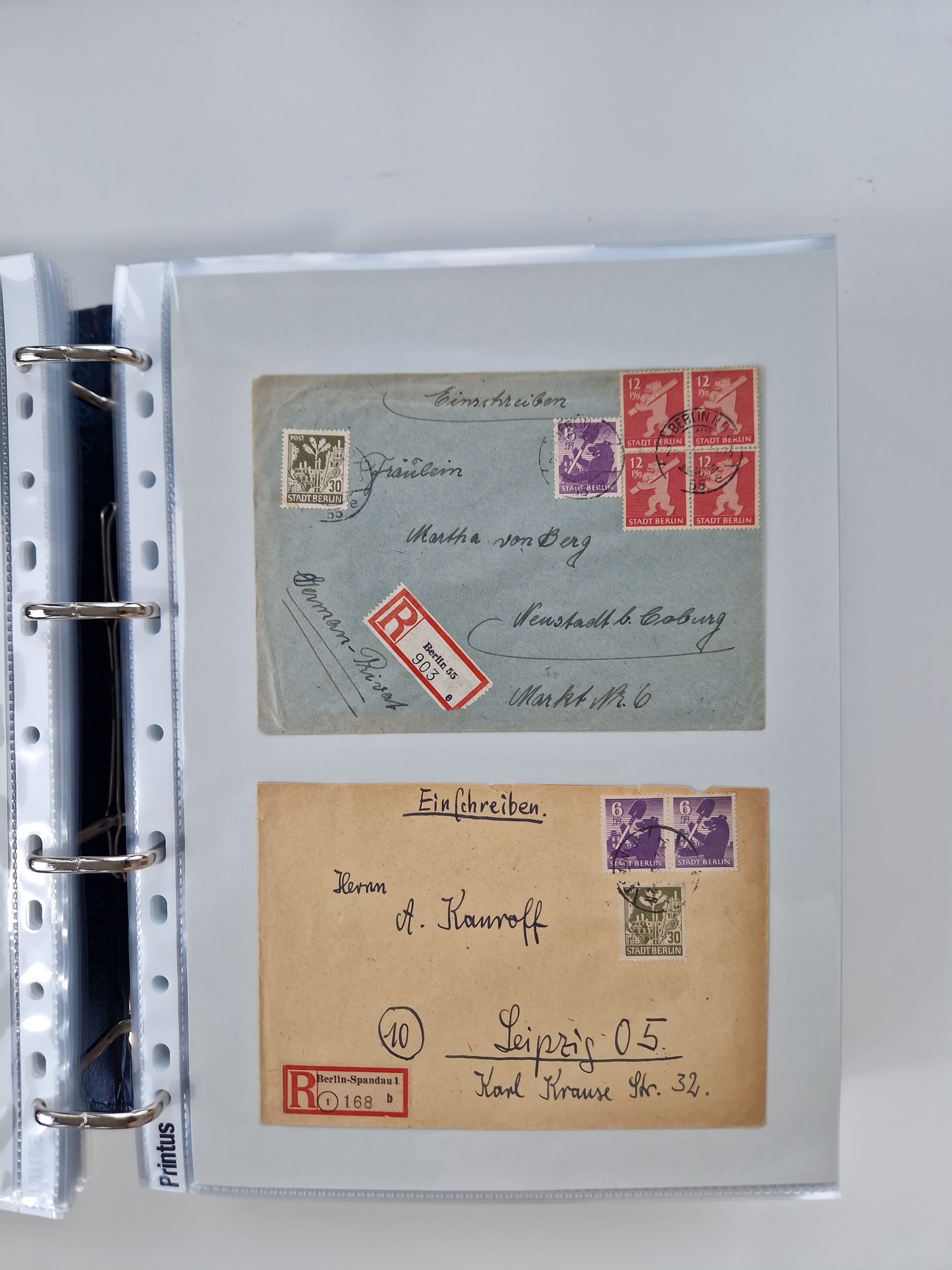 1945/49, umfangreiche Sammlung mit geschätzt 800-900 Briefen, Karten und Ganzsachen. Dabei viele R-Briefe und Satzbriefe, Bedarfspost Mecklenburg Vorpommern, Marken mit Rändern und Einheiten, Bezirkshandstempel mit Bedarfspost und weiteren Besonderheiten, sauber auf Albenblättern in drei Ordnern