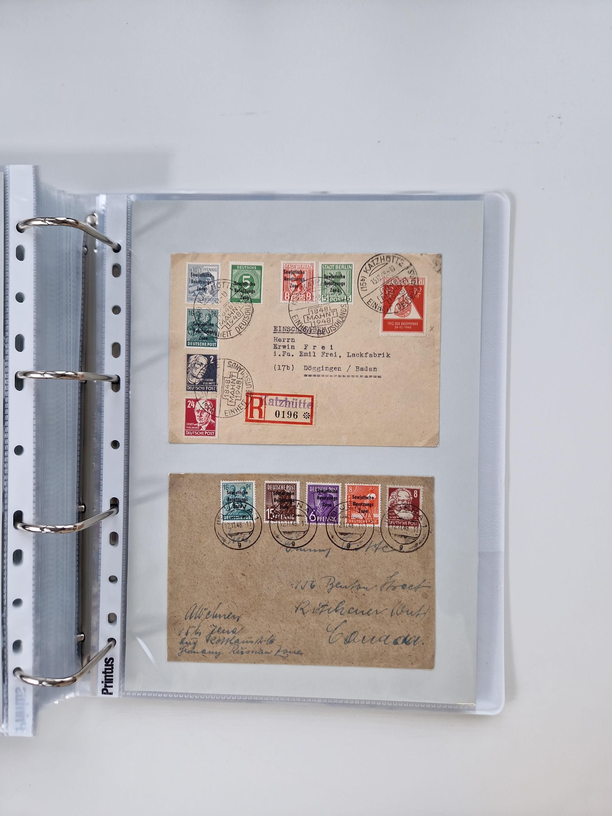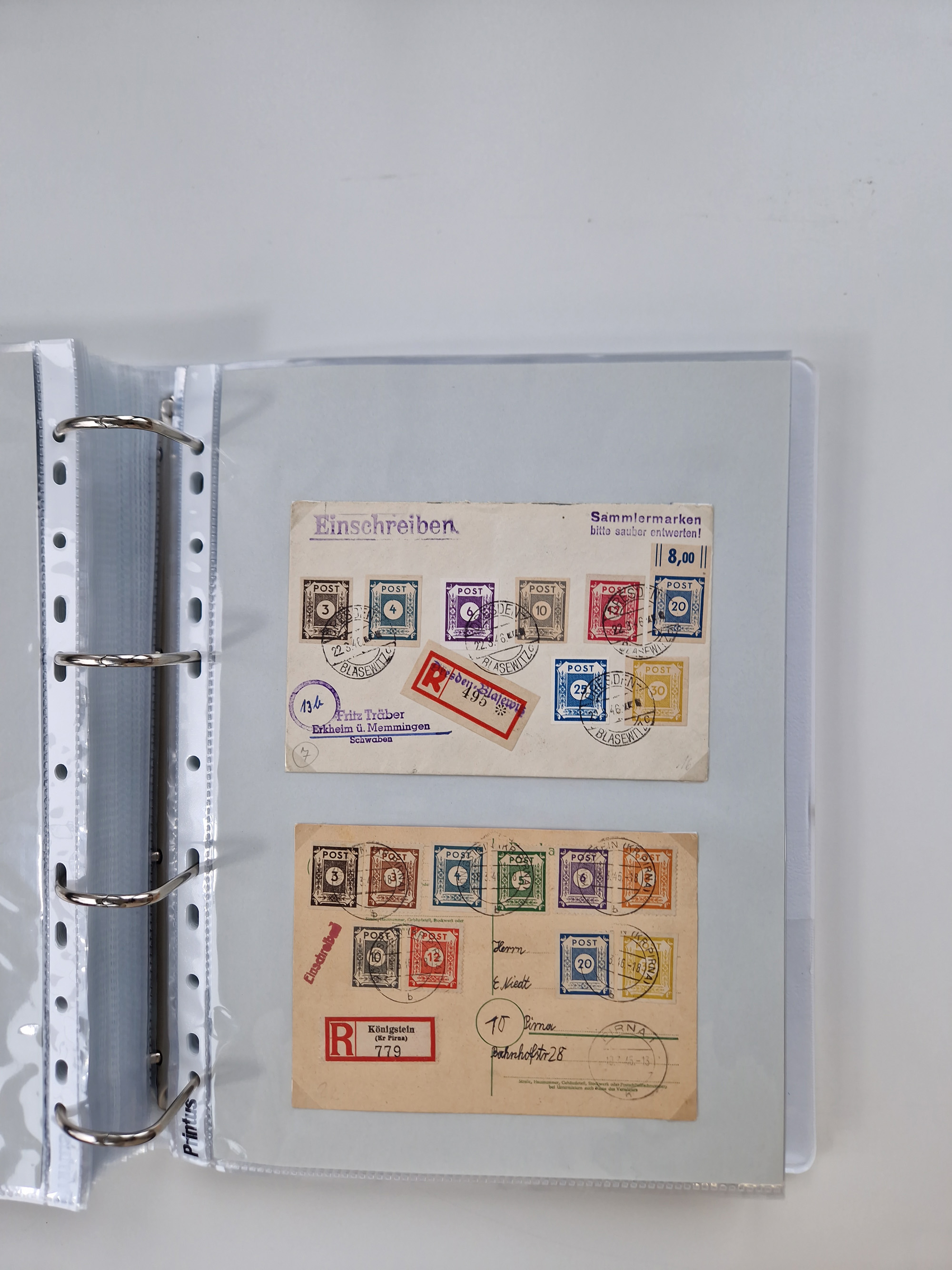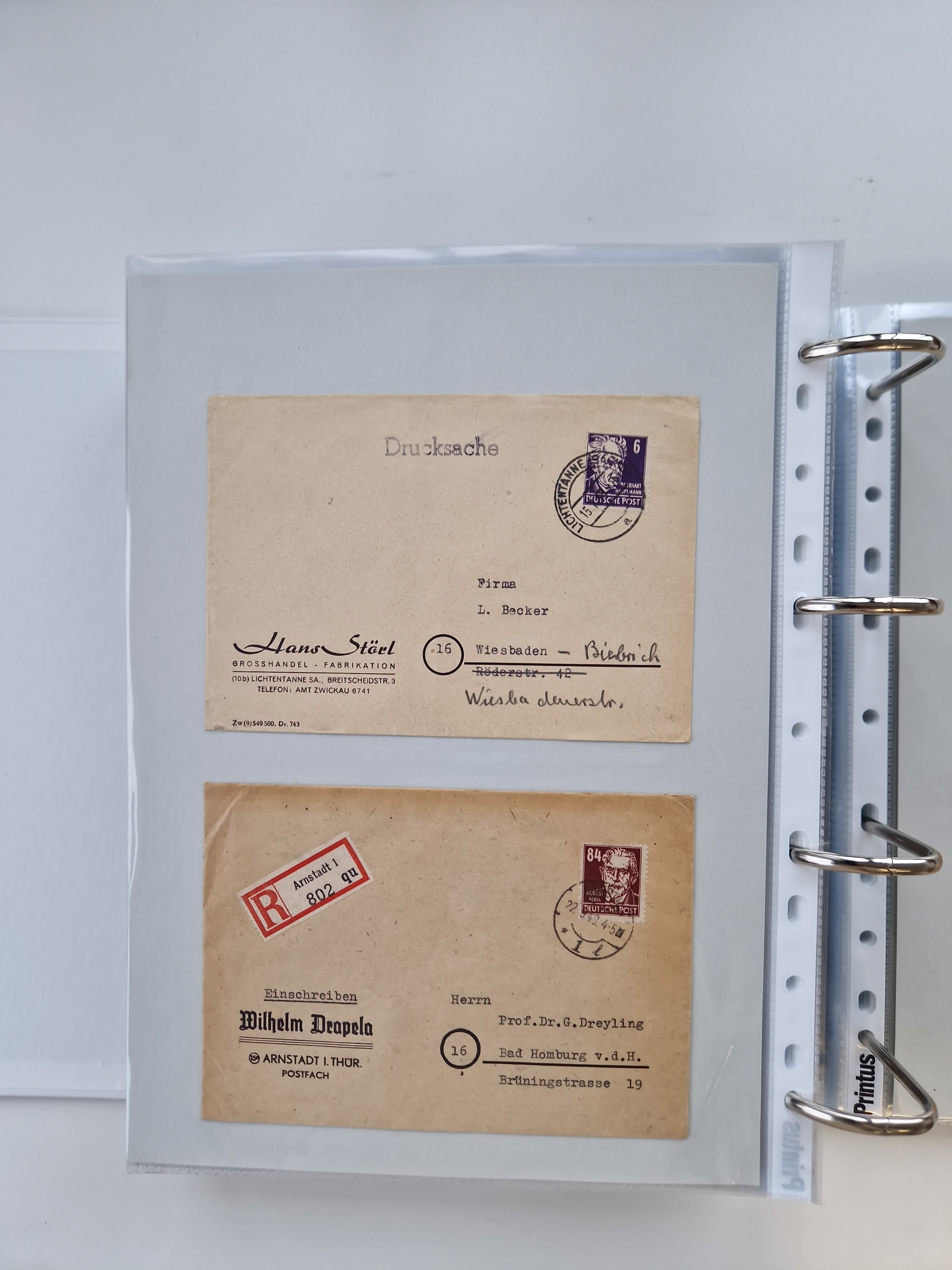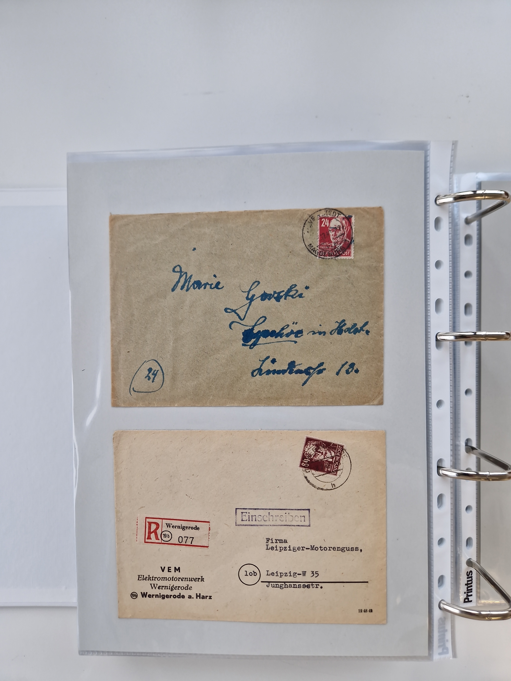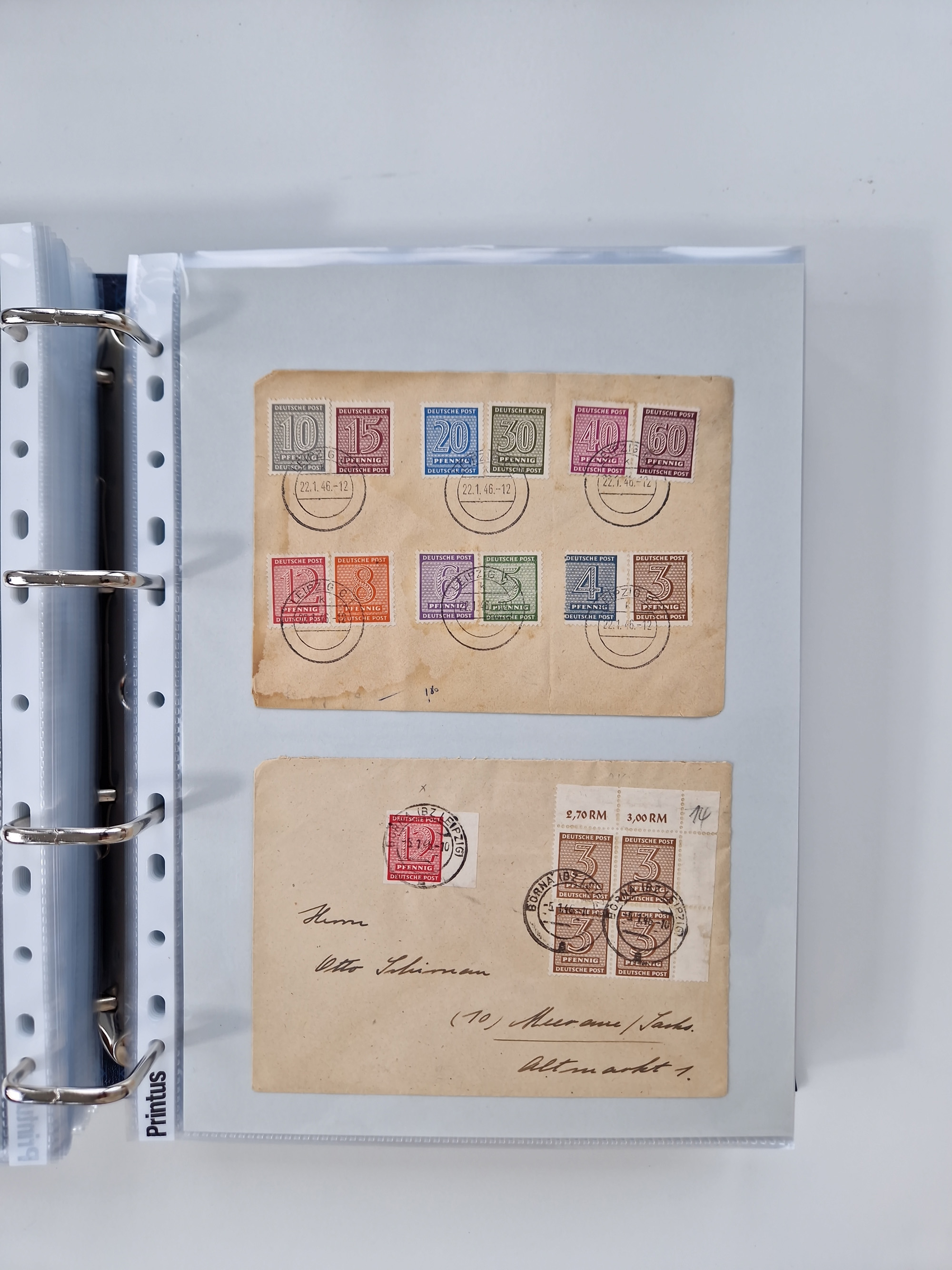 1945/49, umfangreiche Sammlung mit geschätzt 800-900 Briefen, Karten und Ganzsachen. Dabei viele R-Briefe und Satzbriefe, Bedarfspost Mecklenburg Vorpommern, Marken mit Rändern und Einheiten, Bezirkshandstempel mit Bedarfspost und weiteren Besonderheiten, sauber auf Albenblättern in drei Ordnern