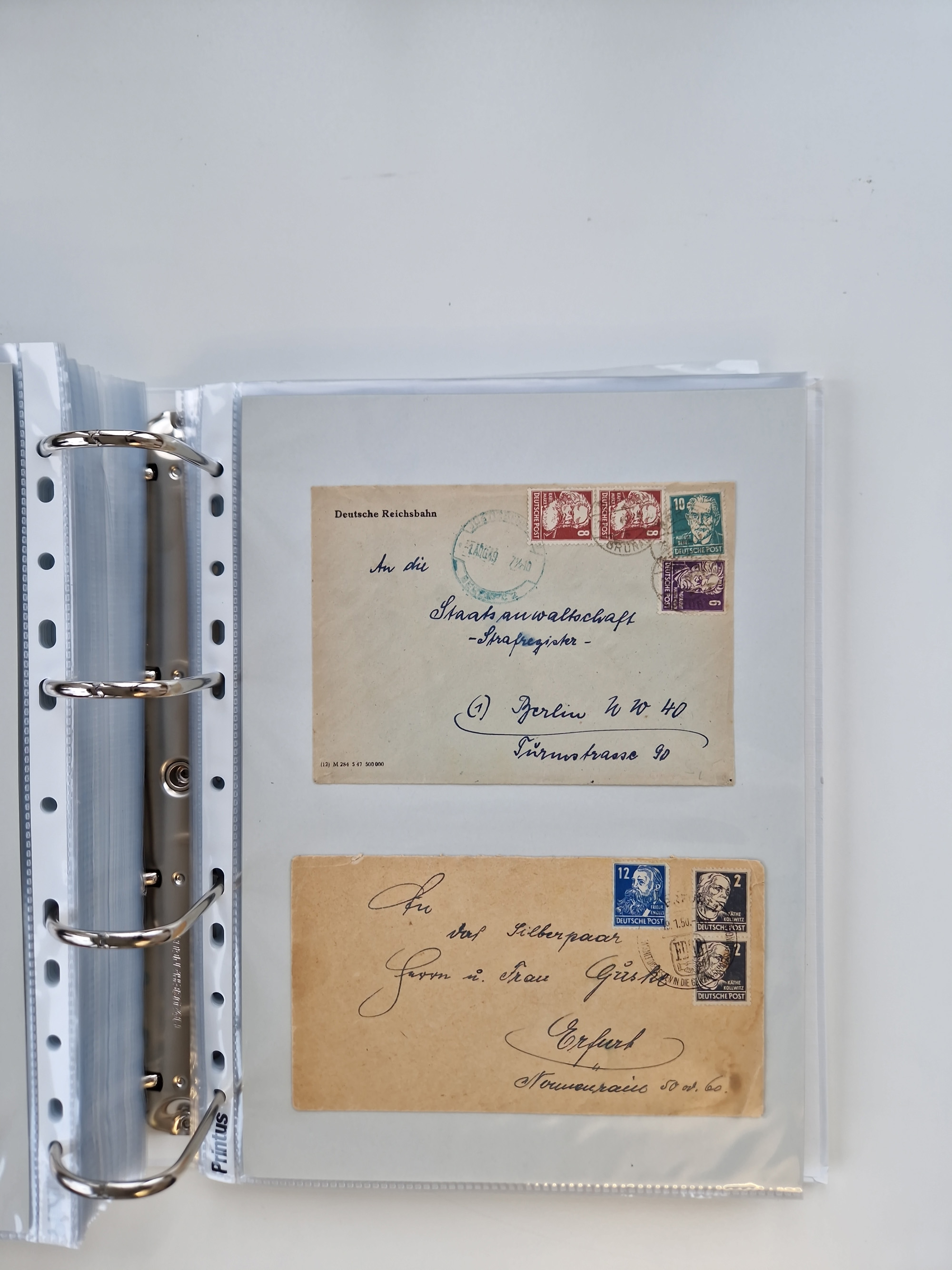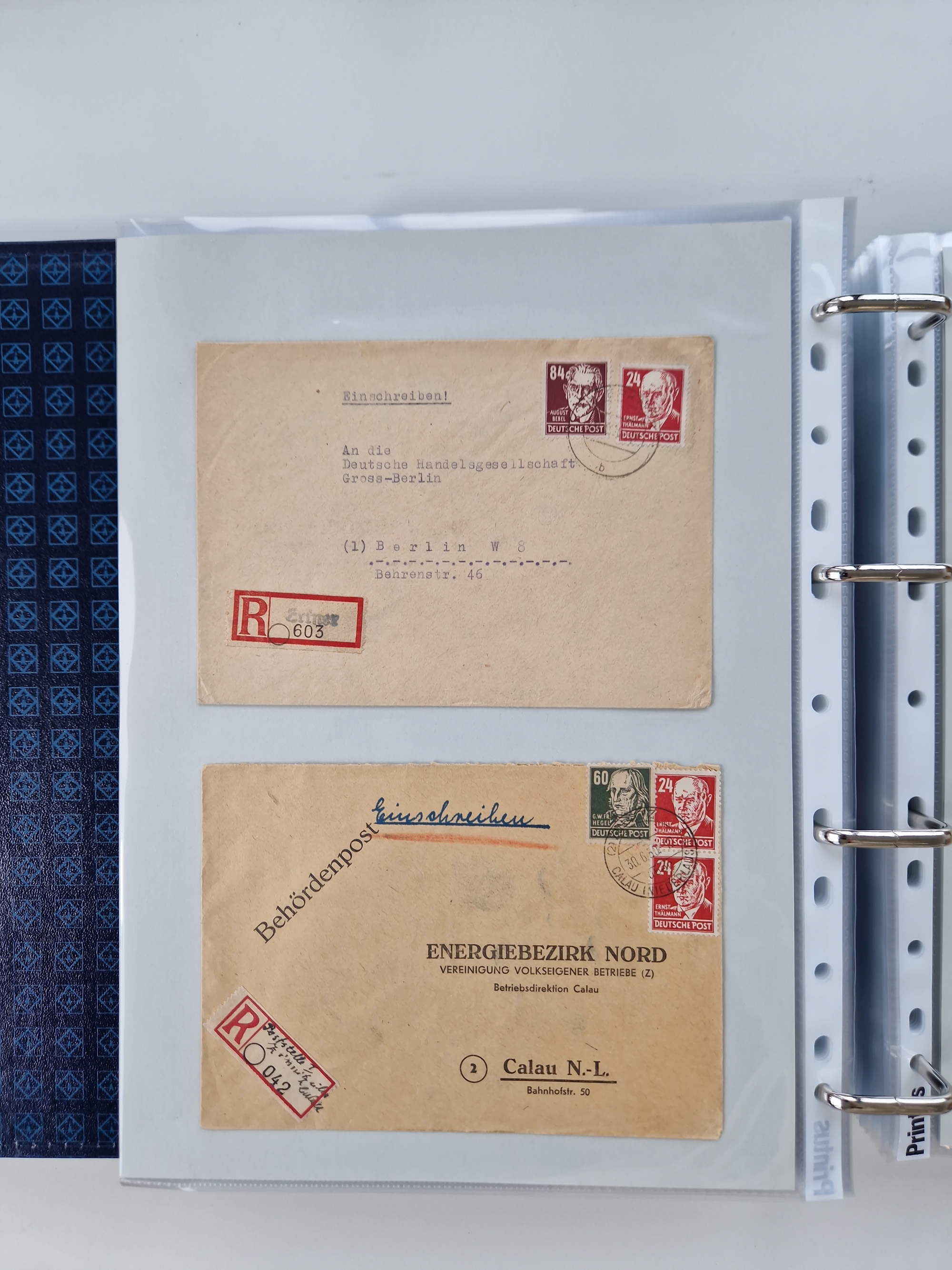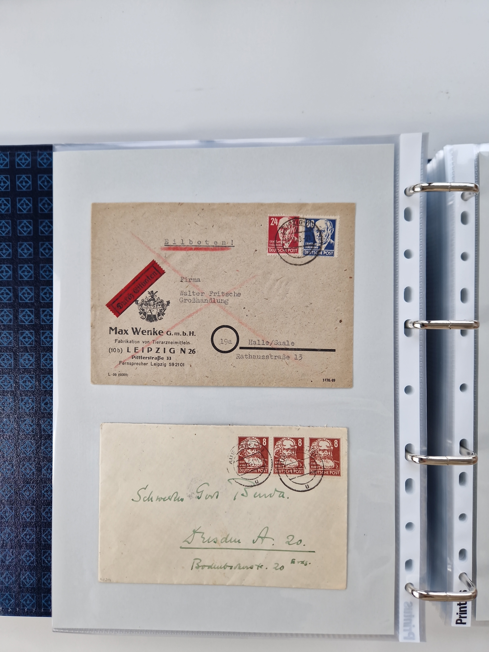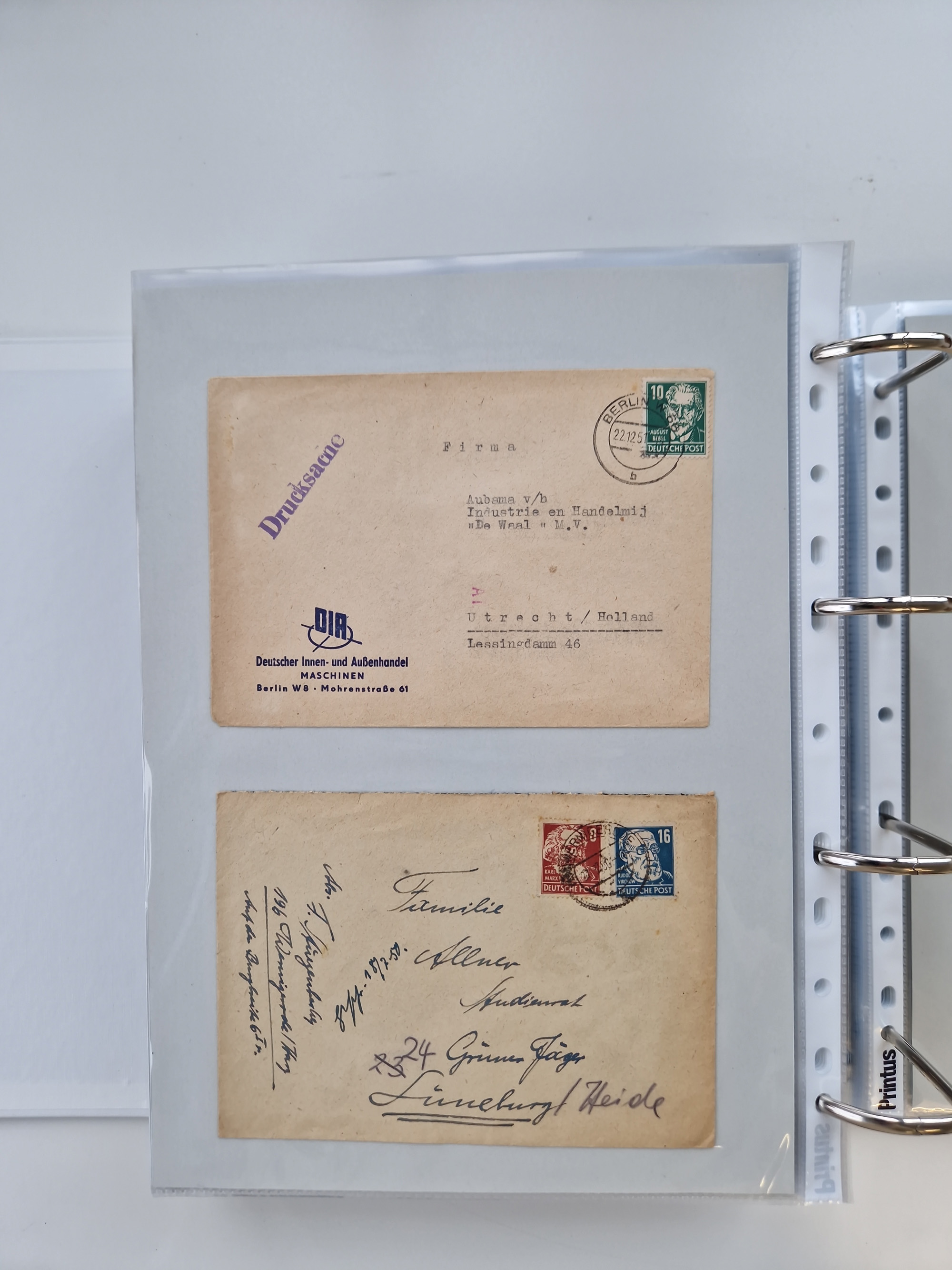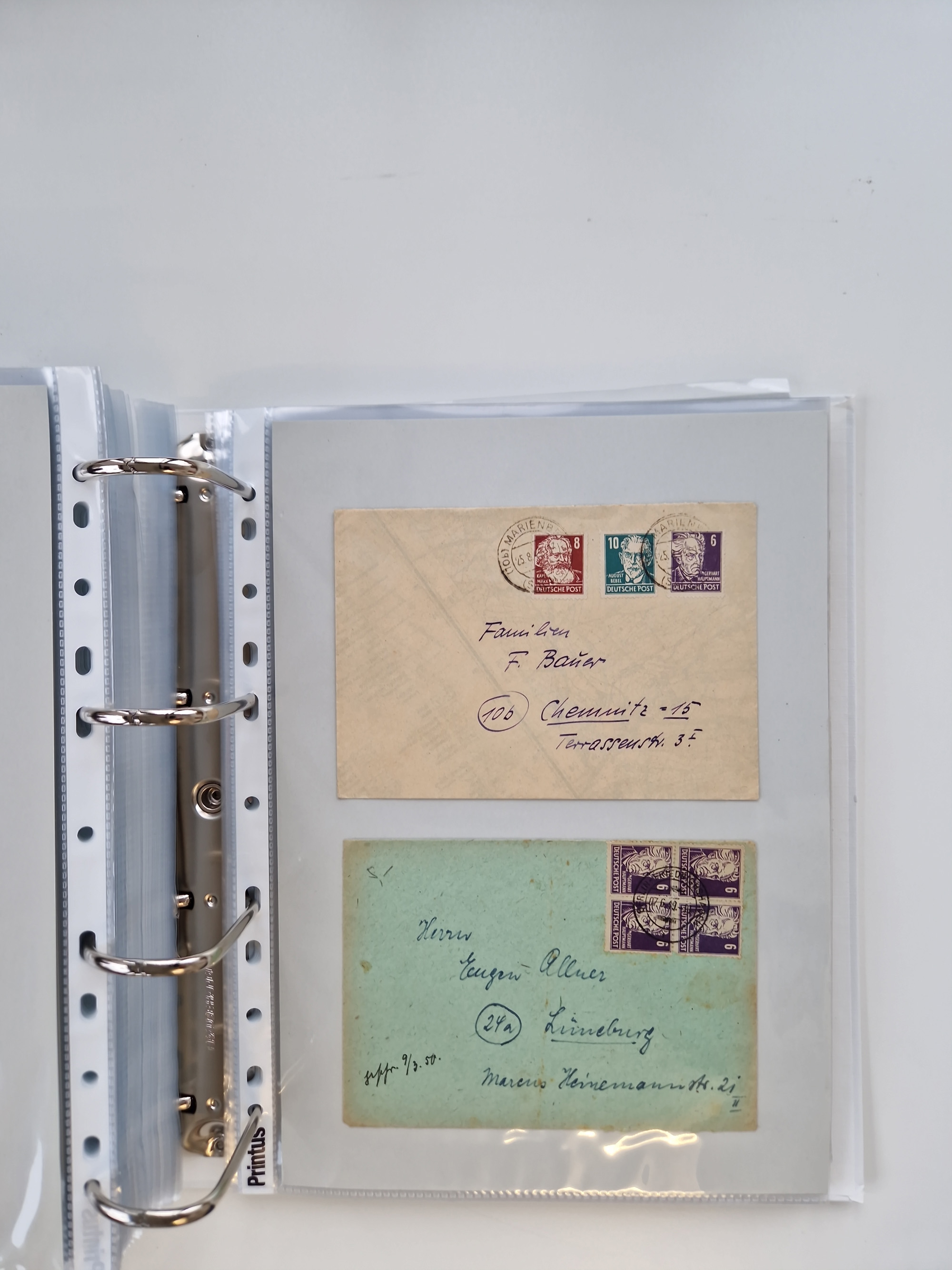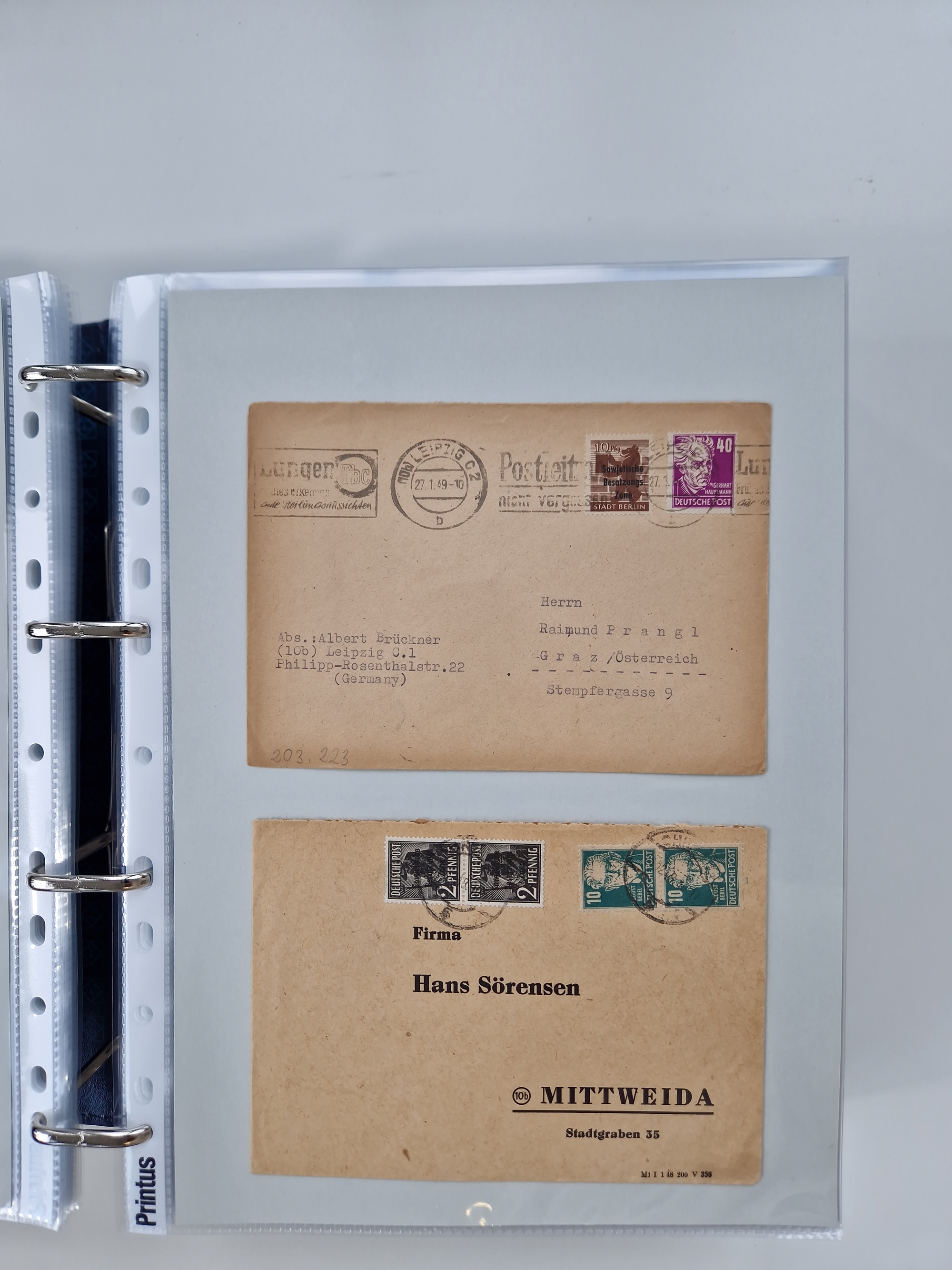 1945/49, umfangreiche Sammlung mit geschätzt 800-900 Briefen, Karten und Ganzsachen. Dabei viele R-Briefe und Satzbriefe, Bedarfspost Mecklenburg Vorpommern, Marken mit Rändern und Einheiten, Bezirkshandstempel mit Bedarfspost und weiteren Besonderheiten, sauber auf Albenblättern in drei Ordnern