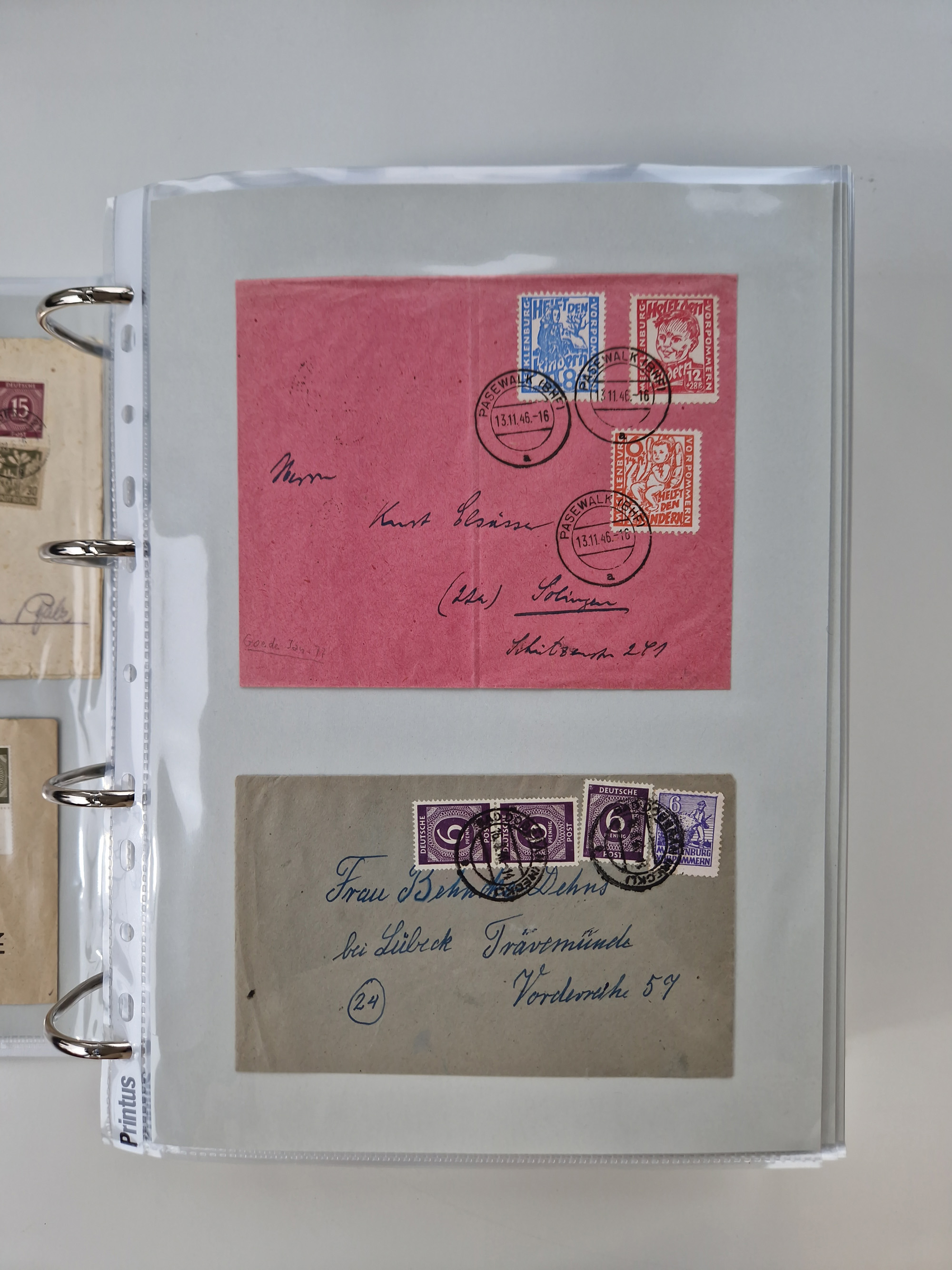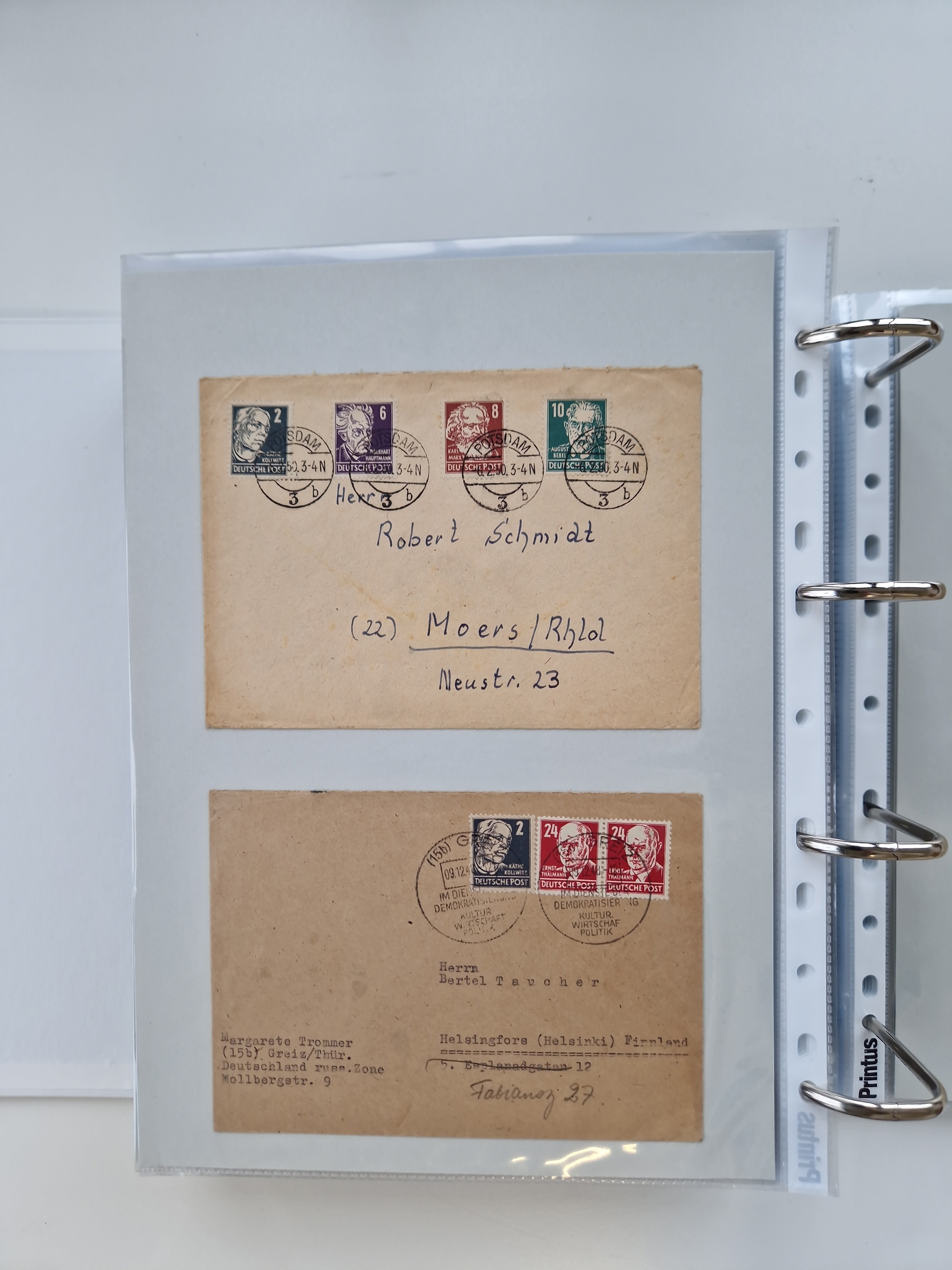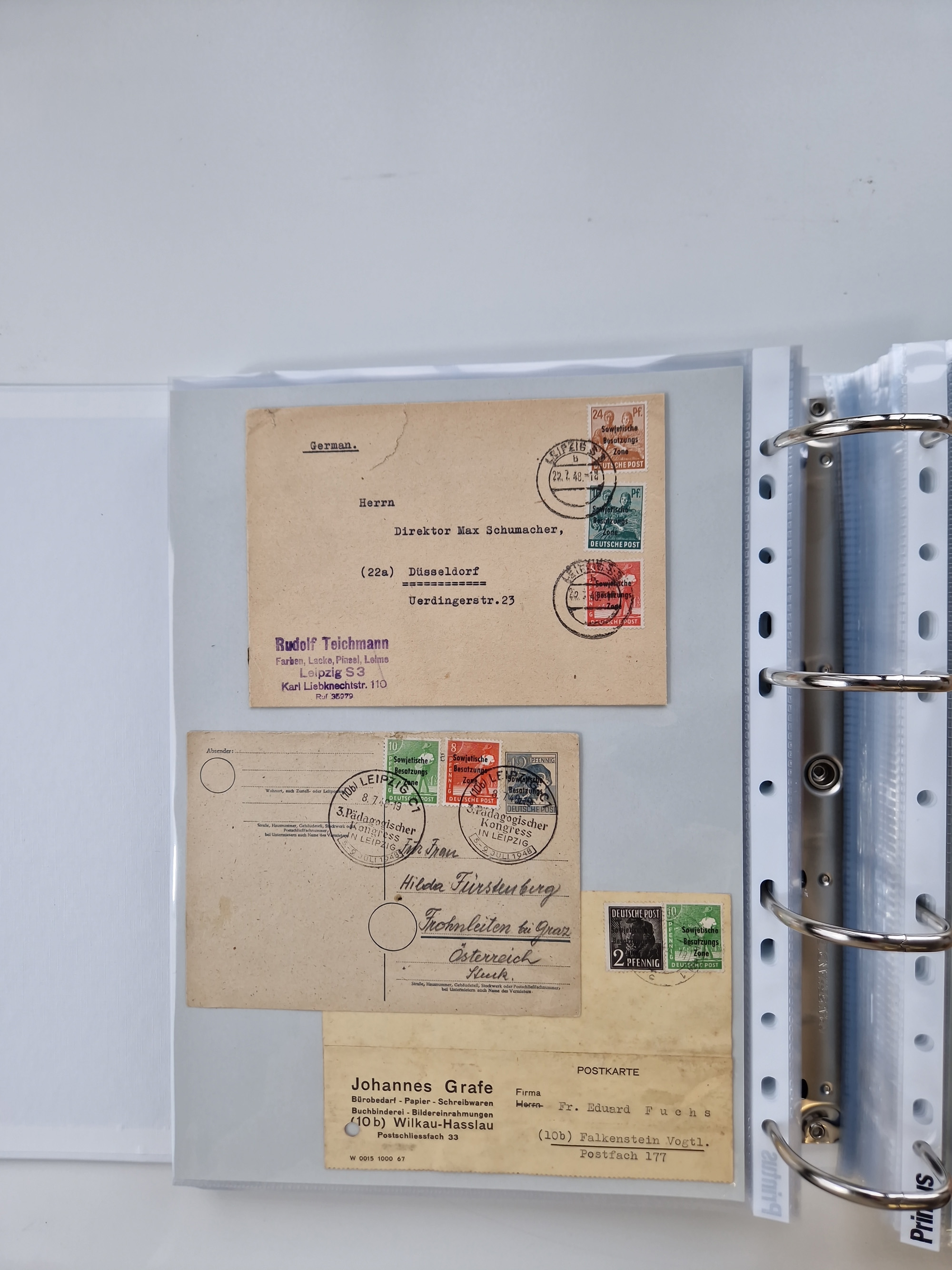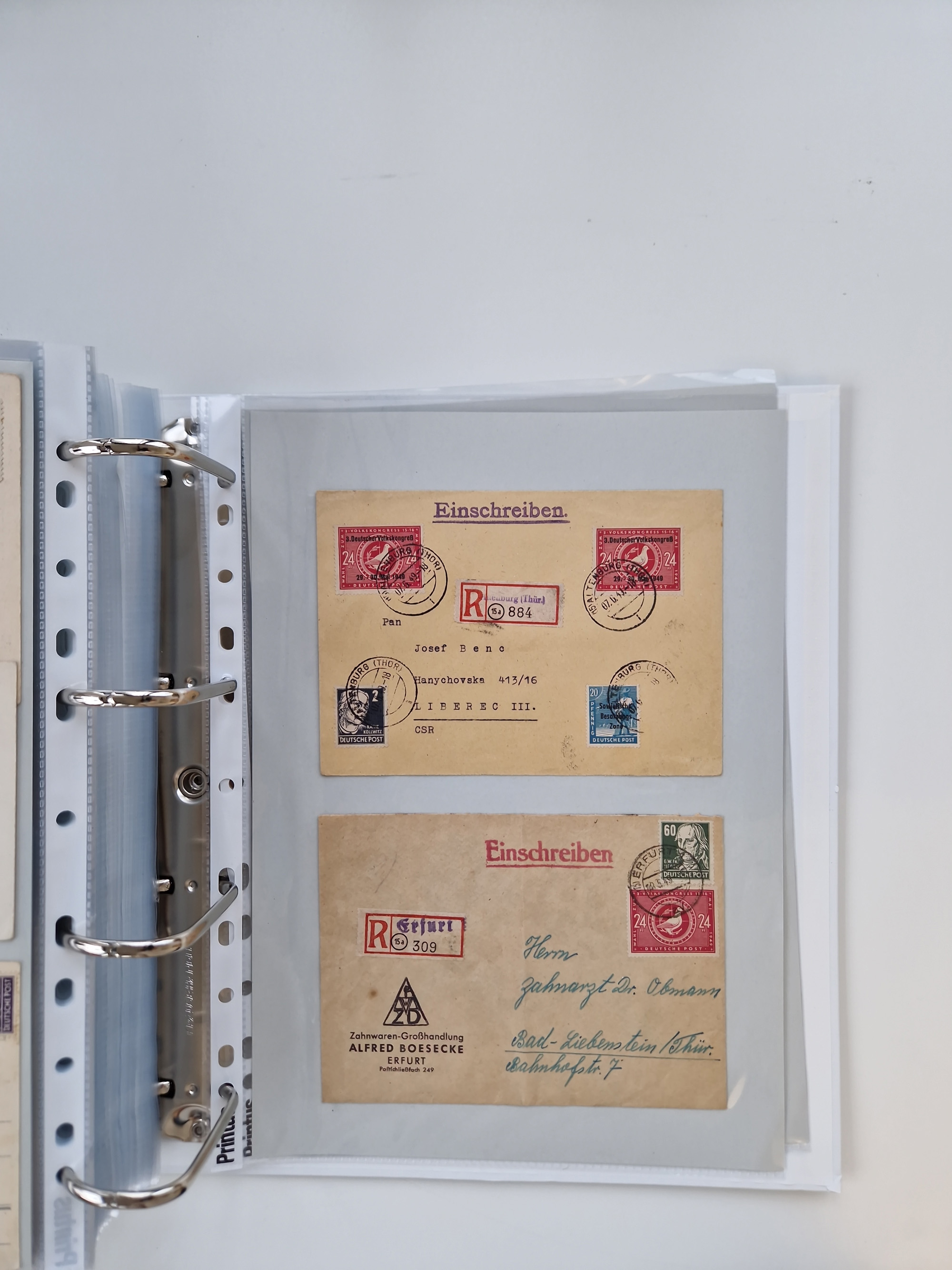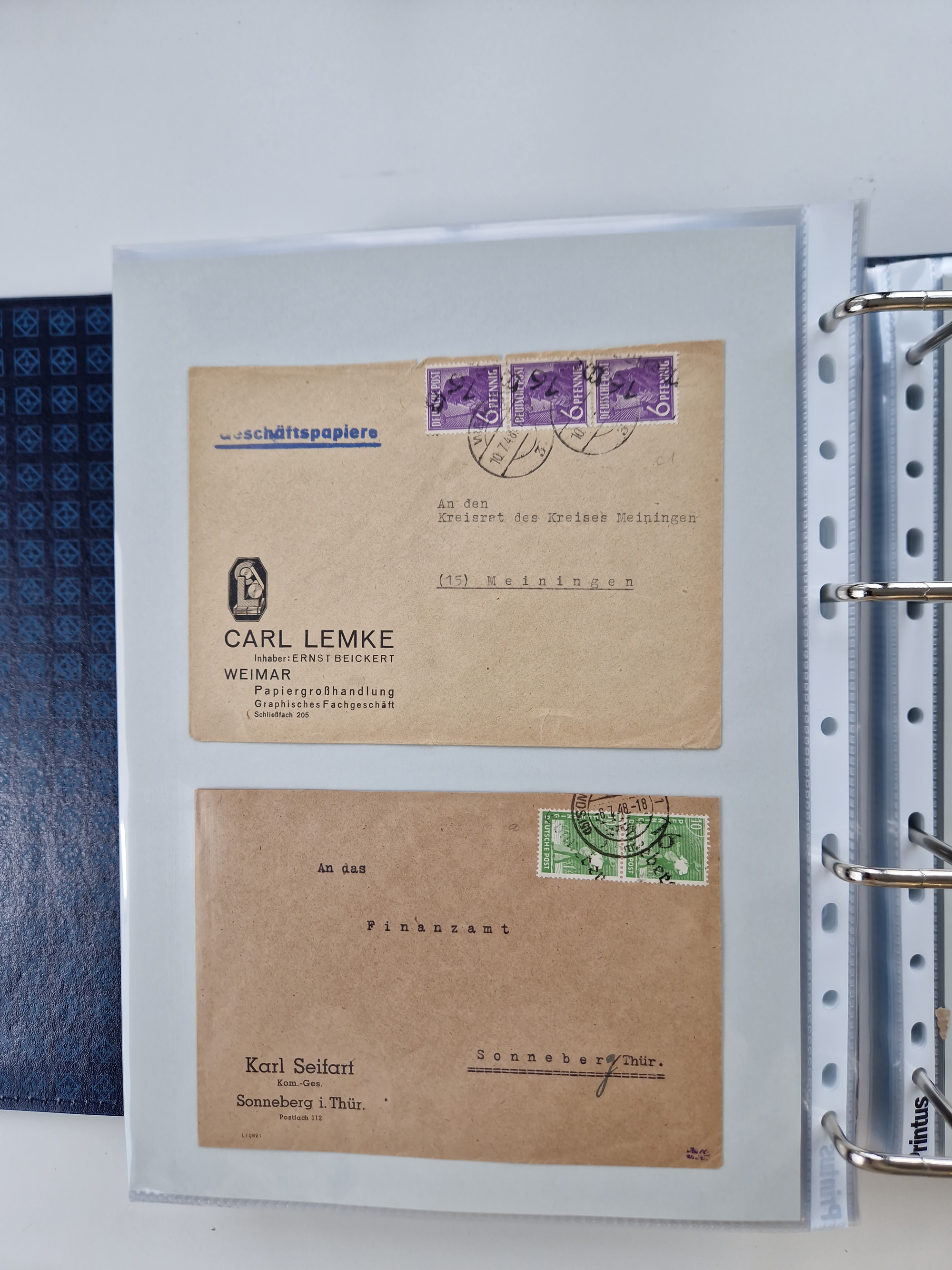 1945/49, umfangreiche Sammlung mit geschätzt 800-900 Briefen, Karten und Ganzsachen. Dabei viele R-Briefe und Satzbriefe, Bedarfspost Mecklenburg Vorpommern, Marken mit Rändern und Einheiten, Bezirkshandstempel mit Bedarfspost und weiteren Besonderheiten, sauber auf Albenblättern in drei Ordnern