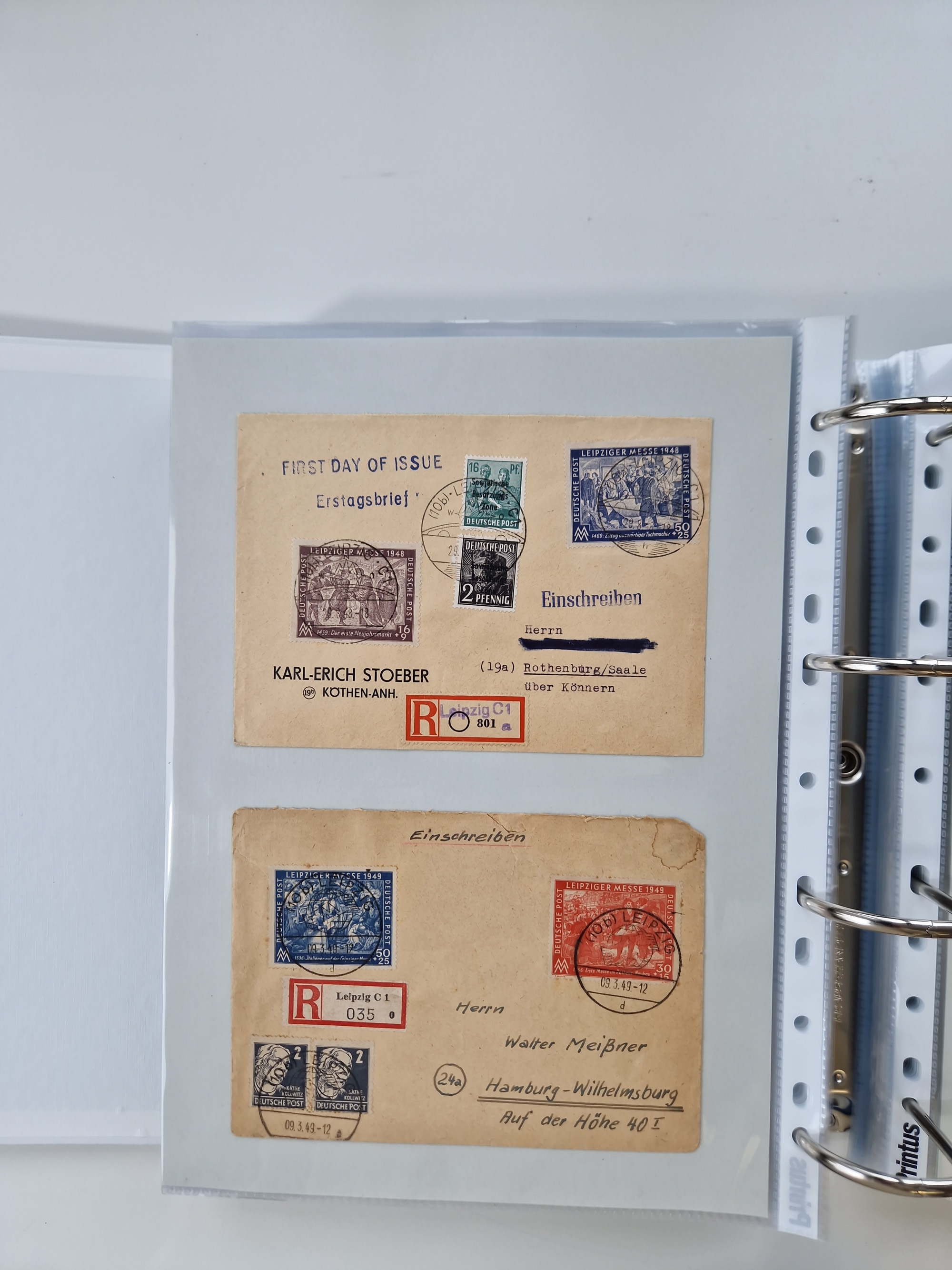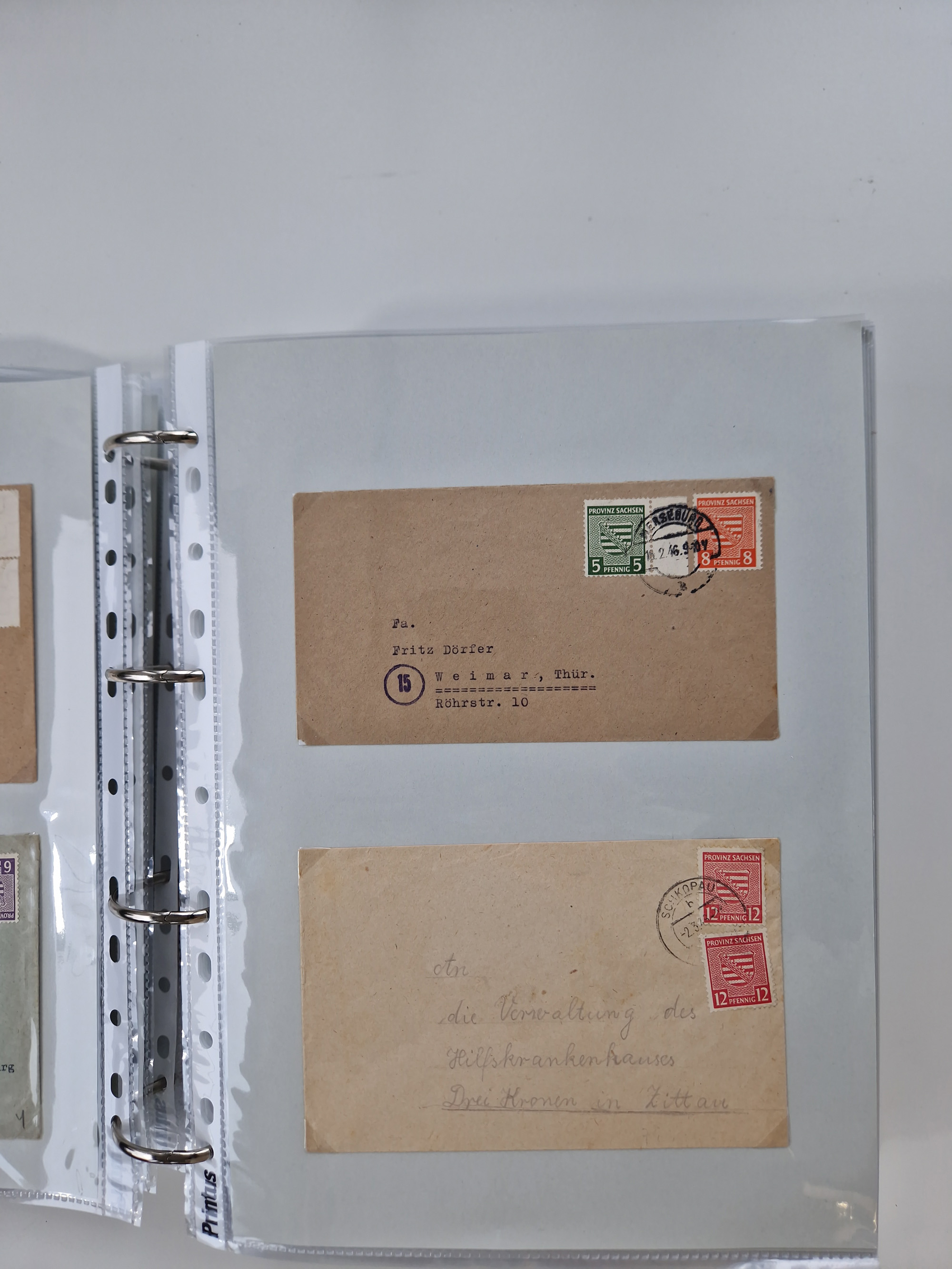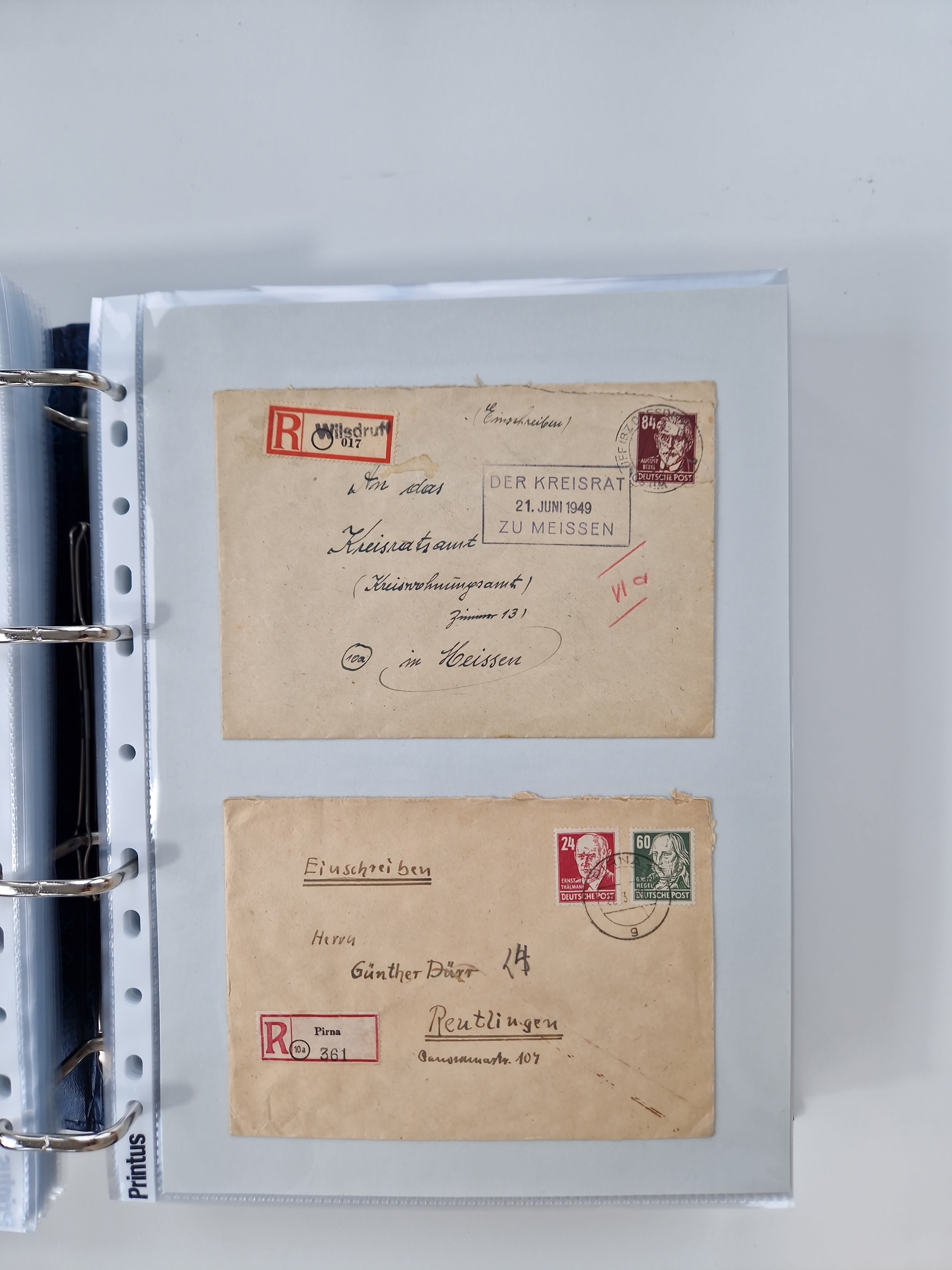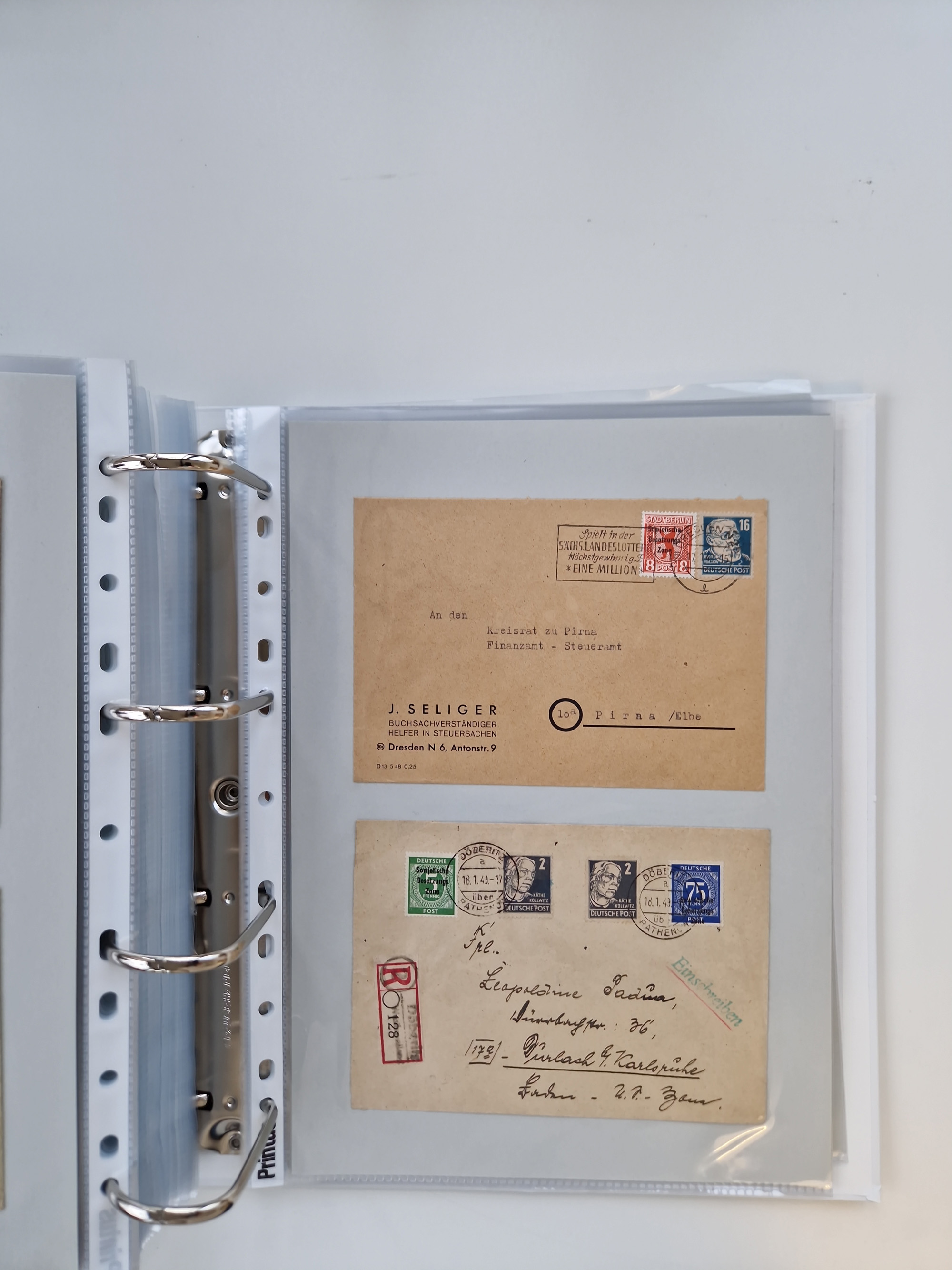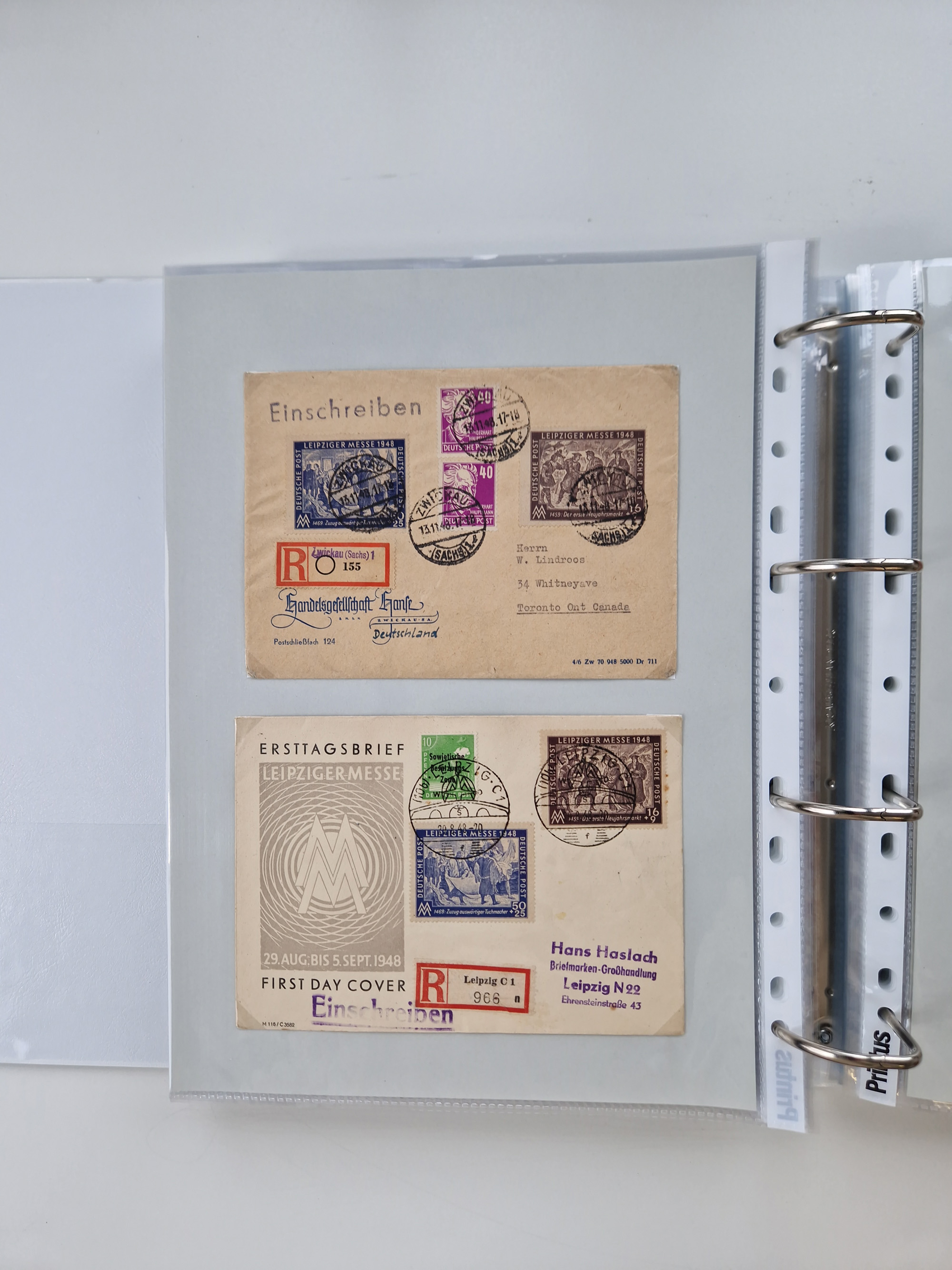 1945/49, umfangreiche Sammlung mit geschätzt 800-900 Briefen, Karten und Ganzsachen. Dabei viele R-Briefe und Satzbriefe, Bedarfspost Mecklenburg Vorpommern, Marken mit Rändern und Einheiten, Bezirkshandstempel mit Bedarfspost und weiteren Besonderheiten, sauber auf Albenblättern in drei Ordnern