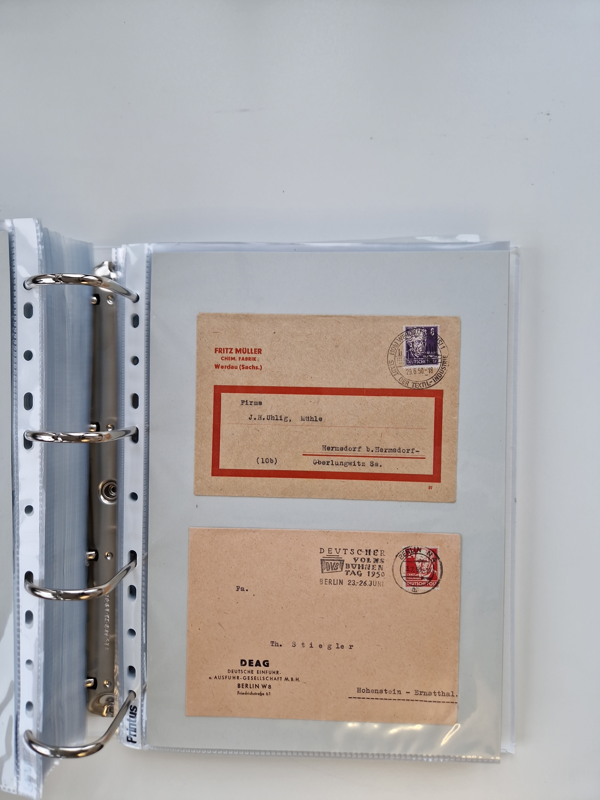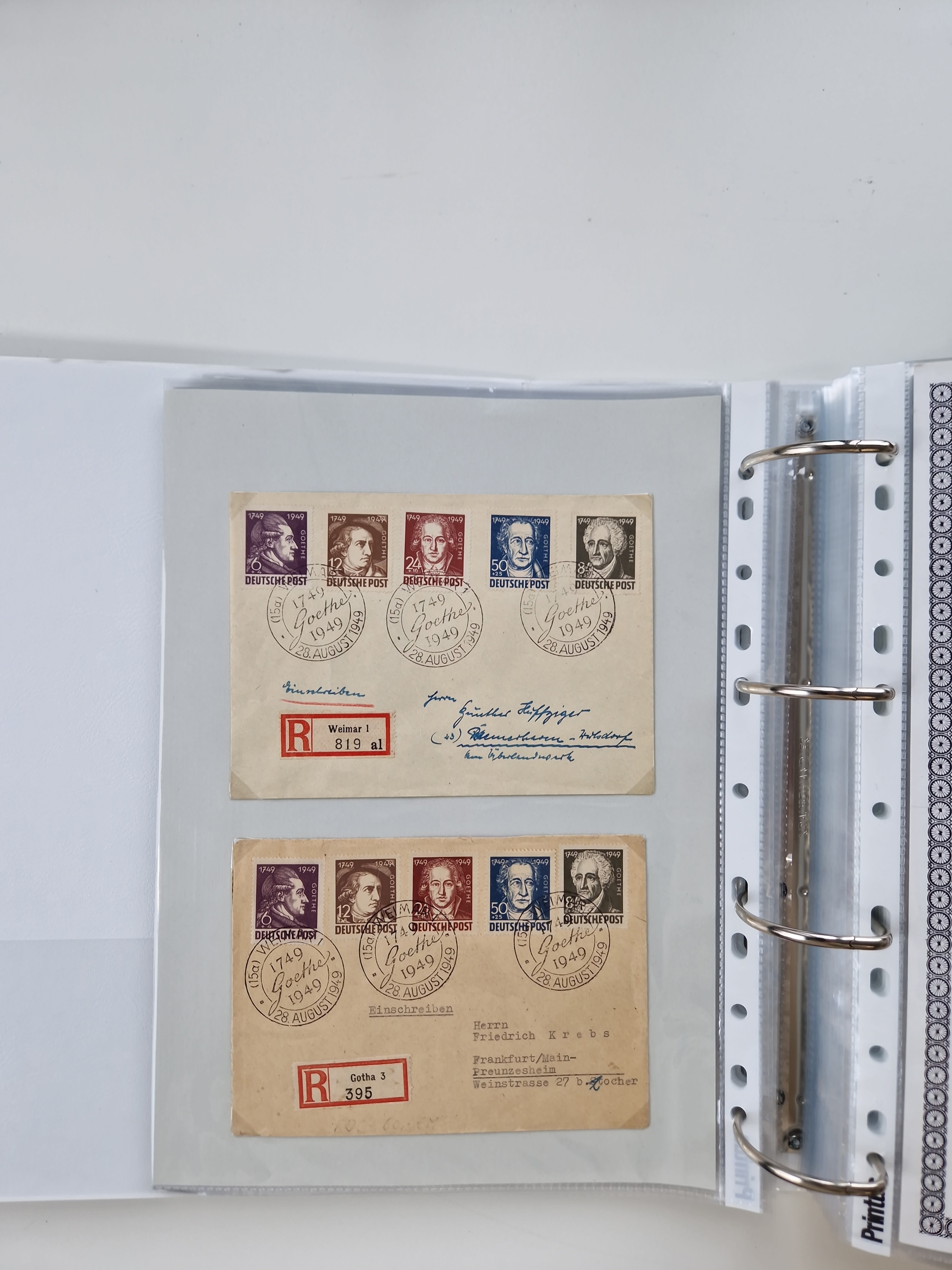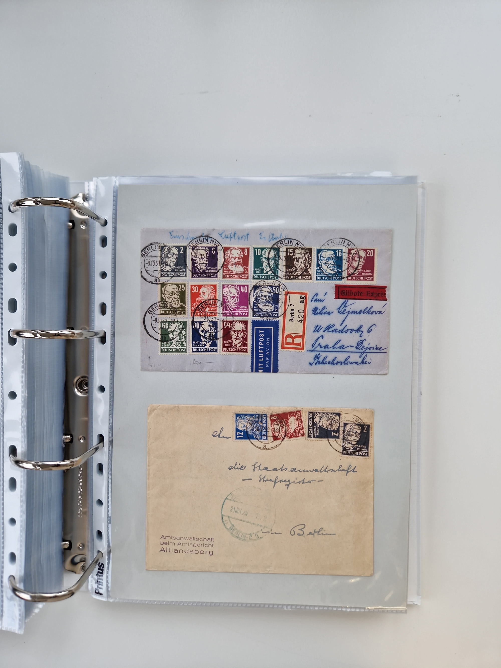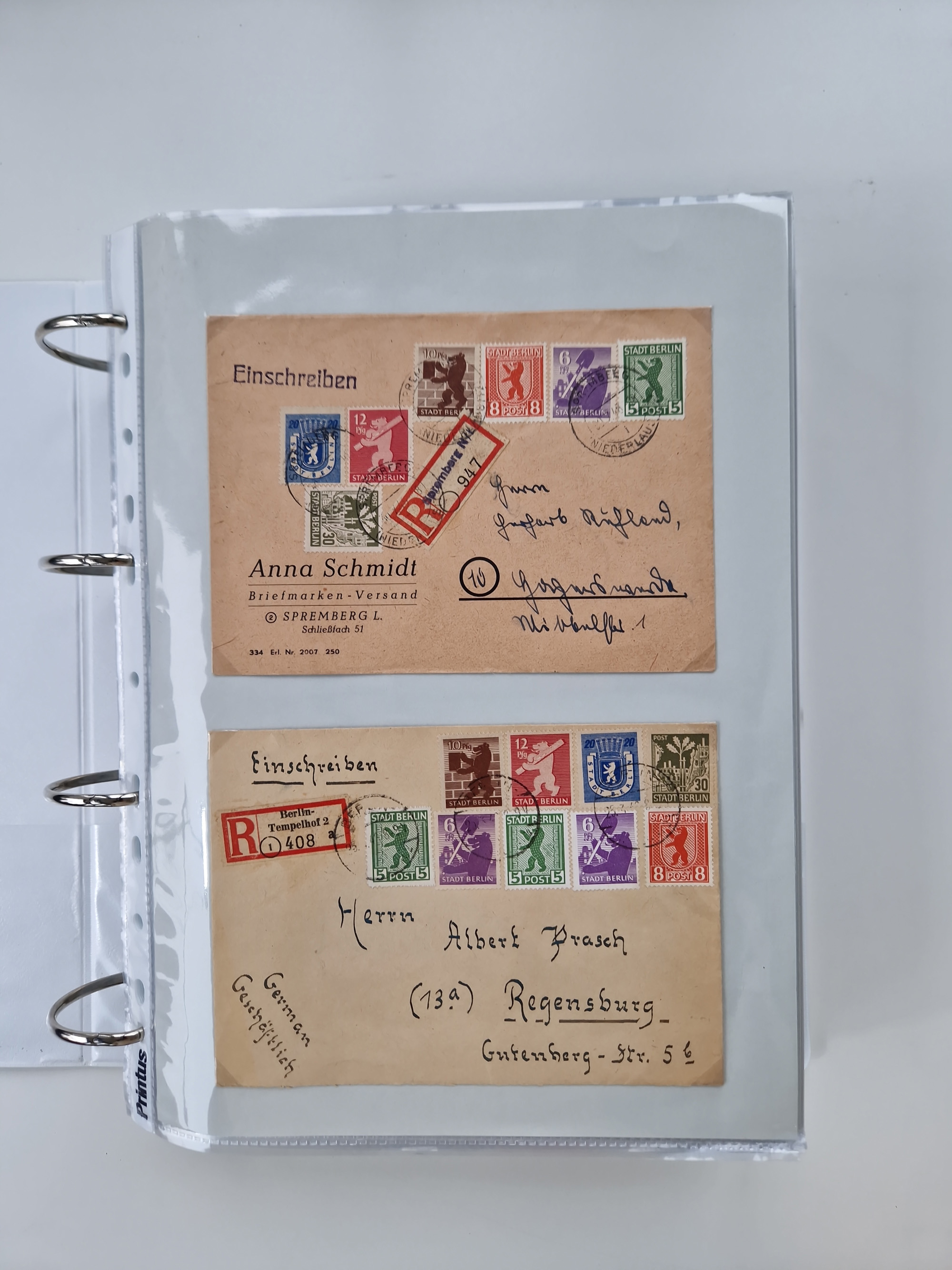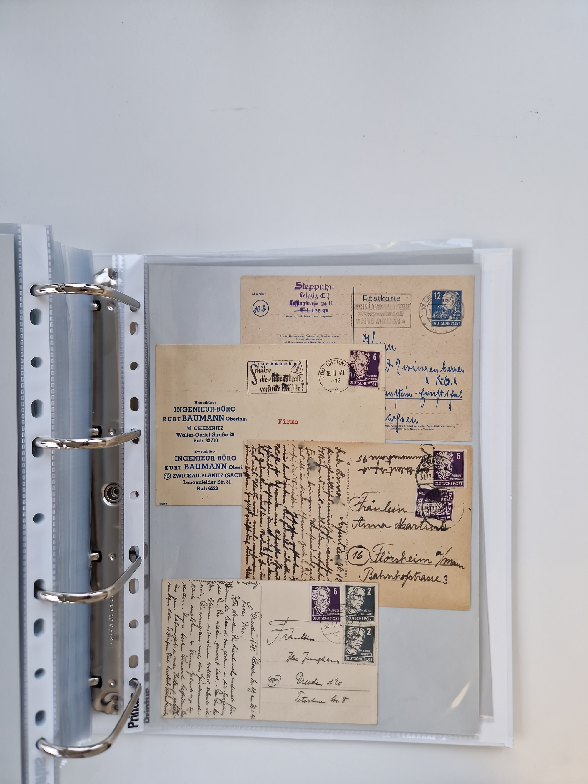 1945/49, umfangreiche Sammlung mit geschätzt 800-900 Briefen, Karten und Ganzsachen. Dabei viele R-Briefe und Satzbriefe, Bedarfspost Mecklenburg Vorpommern, Marken mit Rändern und Einheiten, Bezirkshandstempel mit Bedarfspost und weiteren Besonderheiten, sauber auf Albenblättern in drei Ordnern