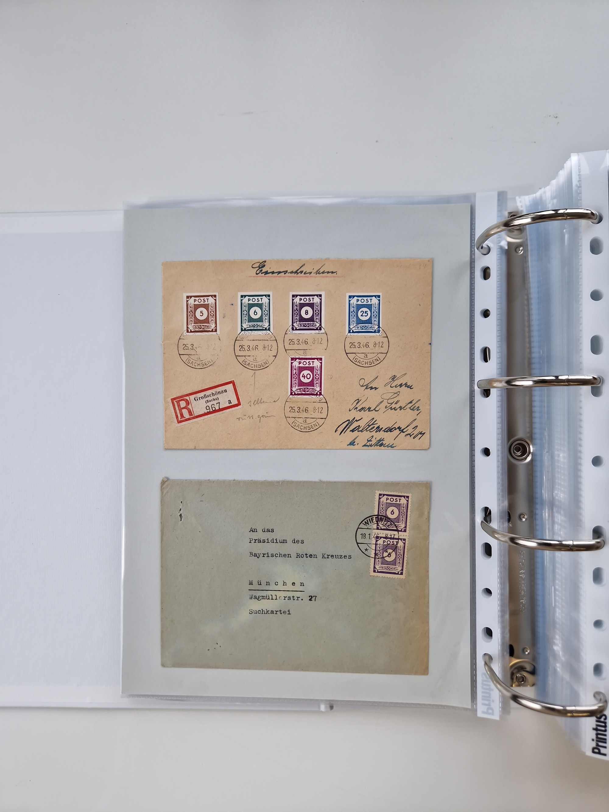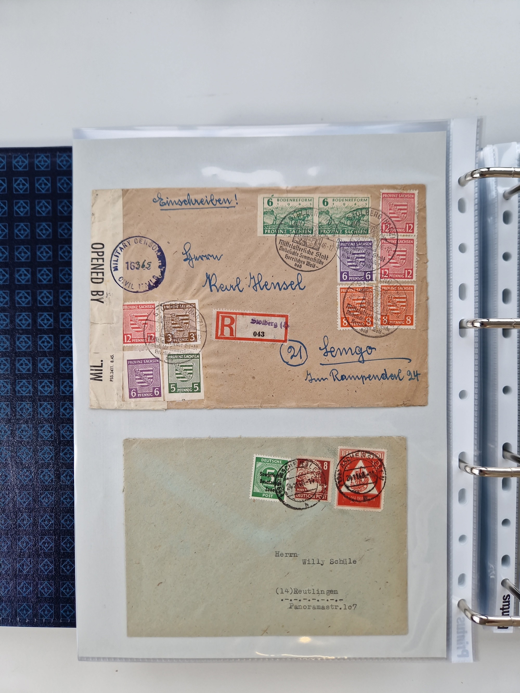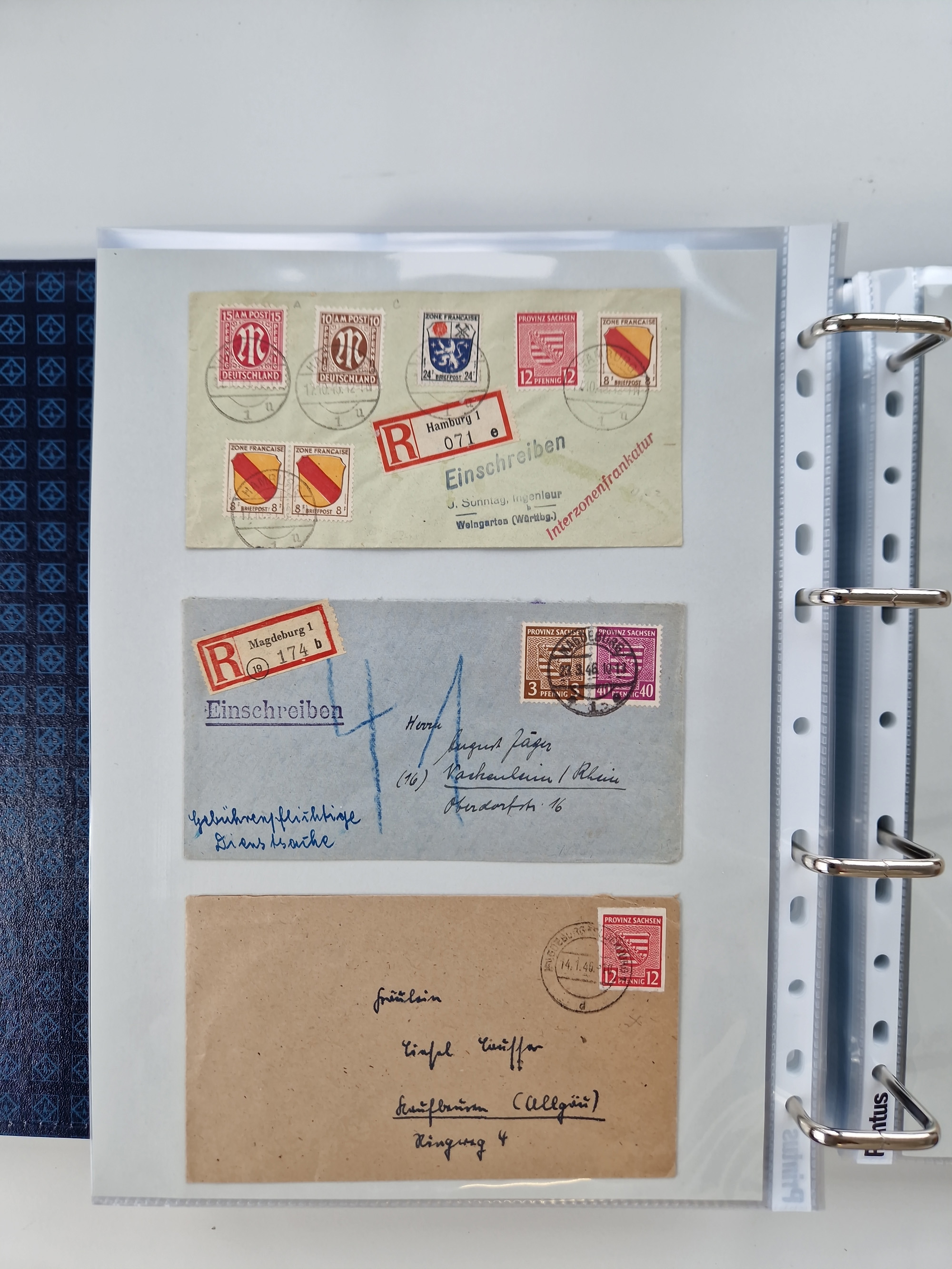 1945/48, umfangreicher Sammlungsbestand mit geschätzt fast 400 Briefen, Karten und Ganzsachen. Dabei sehr viel Auslandspost mit Zensuren, R-Briefe, interessante Frankaturen, Notstempel und weiteren Besonderheiten