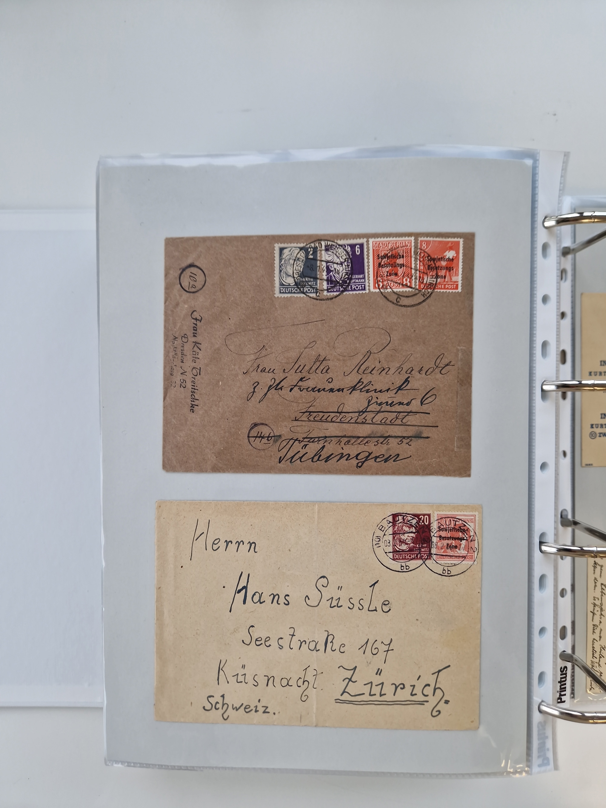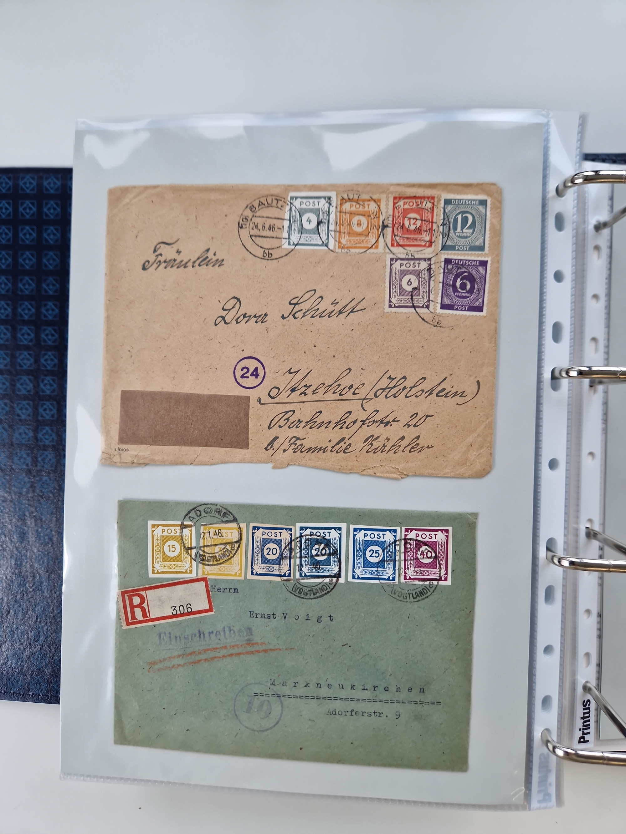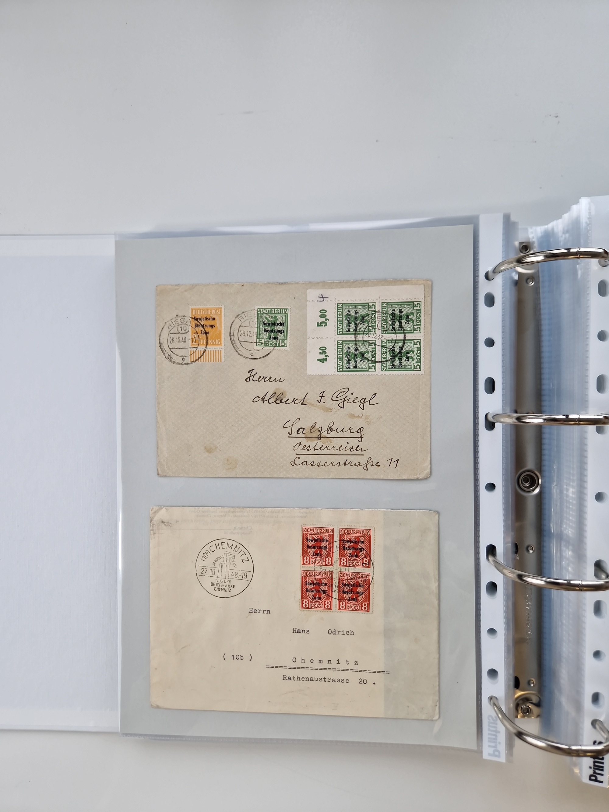 1945/48, umfangreicher Sammlungsbestand mit geschätzt fast 400 Briefen, Karten und Ganzsachen. Dabei sehr viel Auslandspost mit Zensuren, R-Briefe, interessante Frankaturen, Notstempel und weiteren Besonderheiten