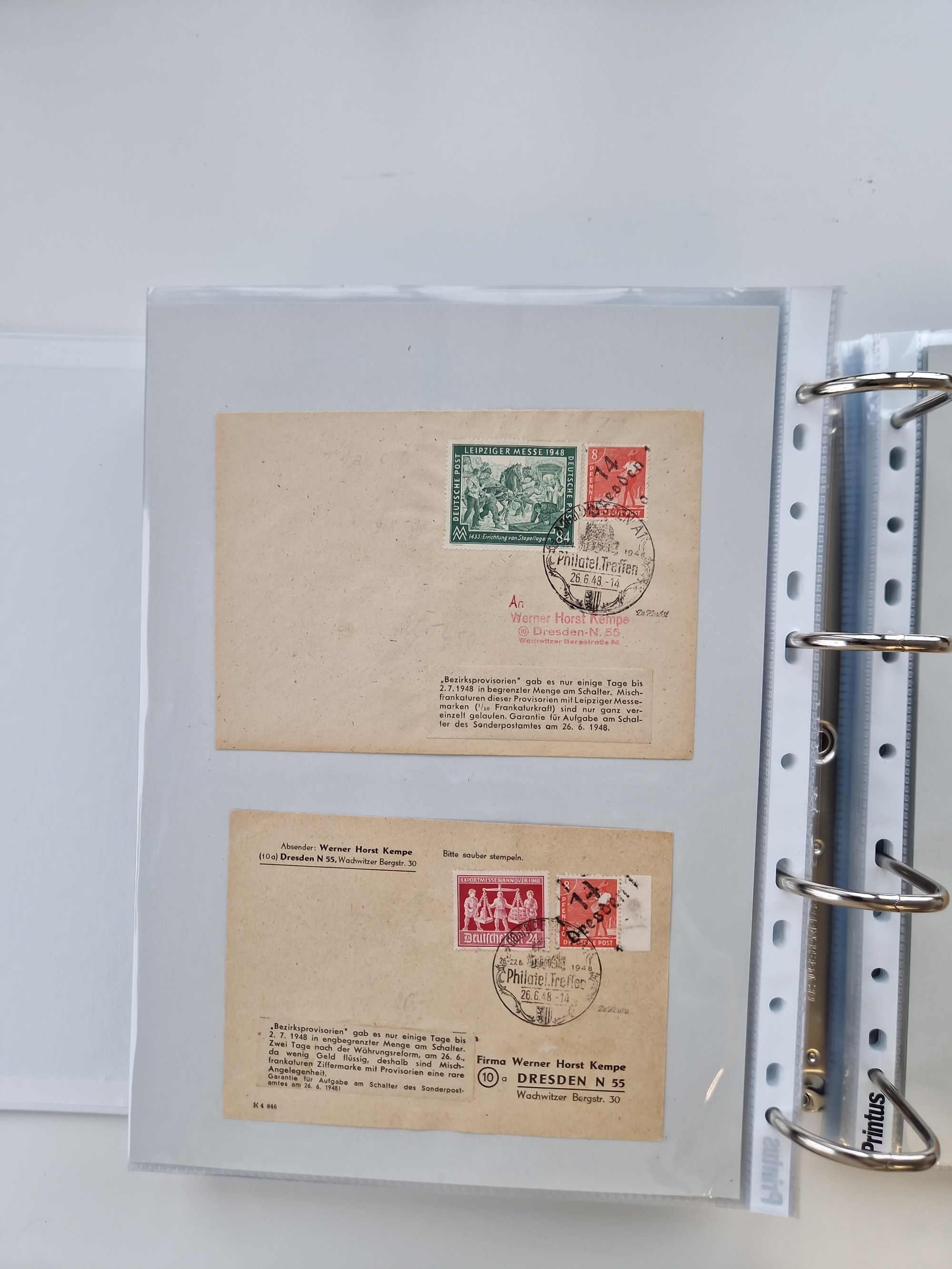 1948, Bezirkshandstempel, 2-bändige Sammlung mit hunderten von Einzelwerten und vielen Einheiten, postfrisch und wenig ungebraucht, dabei Ziffern, Mark-Werte, Sonderausgaben und Besonderheiten. Vieles signiert, teils Altsignaturen, teils BPP.