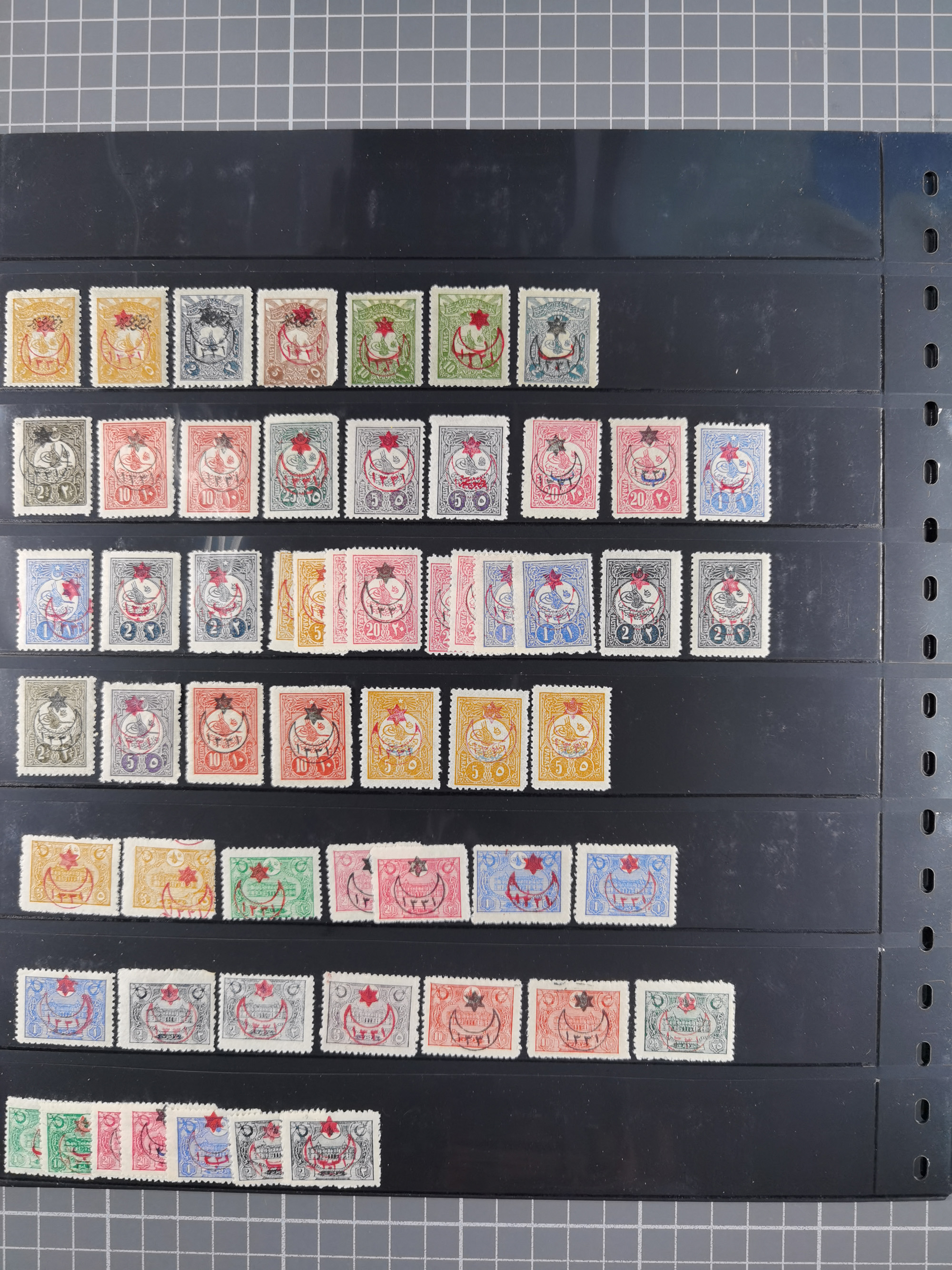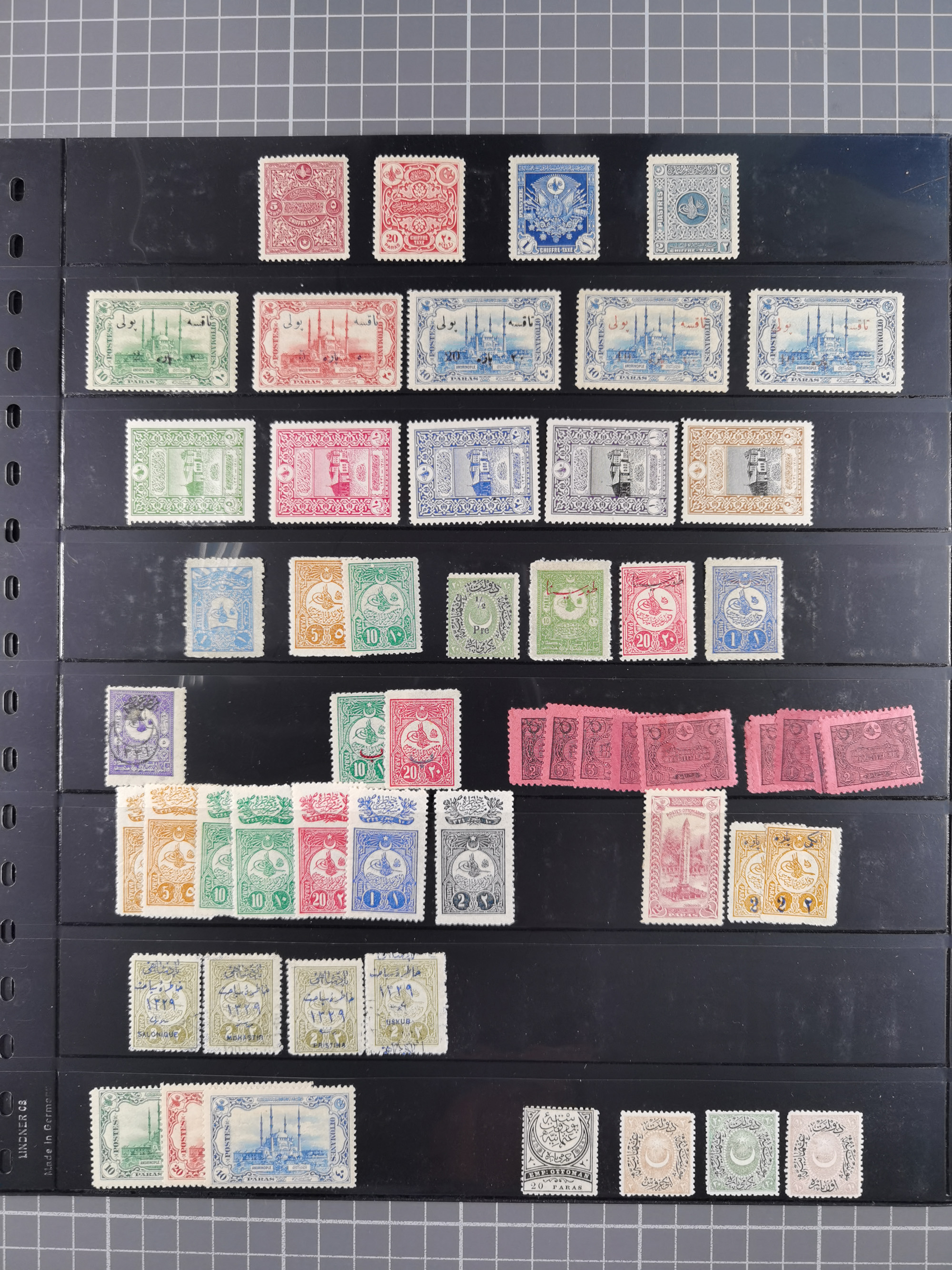 1865/1980 (ca.), Collection of mostly excellent copies of the “Duloz” issues with nice and clear cancellations in a very lovingly designed album, 1 pia. yellow 1871 corner margin block of 15, ‘Arabkir’ on 1875 block of nine, ship cancels ‘Vapur’ and numeral railway marks, 1, 2, 3 and 6 of Smyrna Aidin railway. Lost territories with clear cancellations of Irak, Bulgaria, Greece with islands, Lebanon & Palestine, Albania and Yugoslawia, nice pieces and multiples, neatly in two albums, plus 22 Duloz envelopes. Coles & Walker handbooks Part 1, 2 and 4.