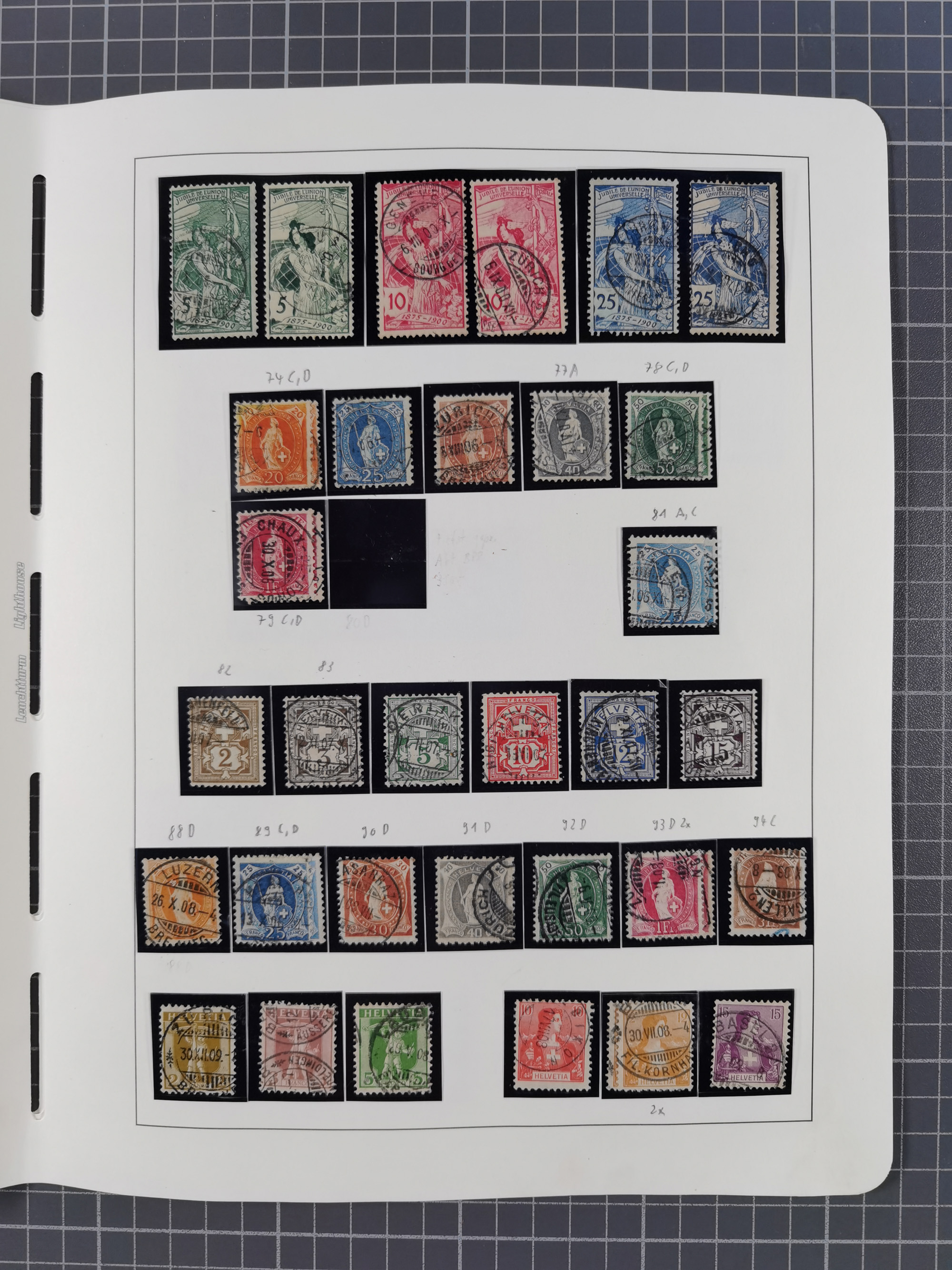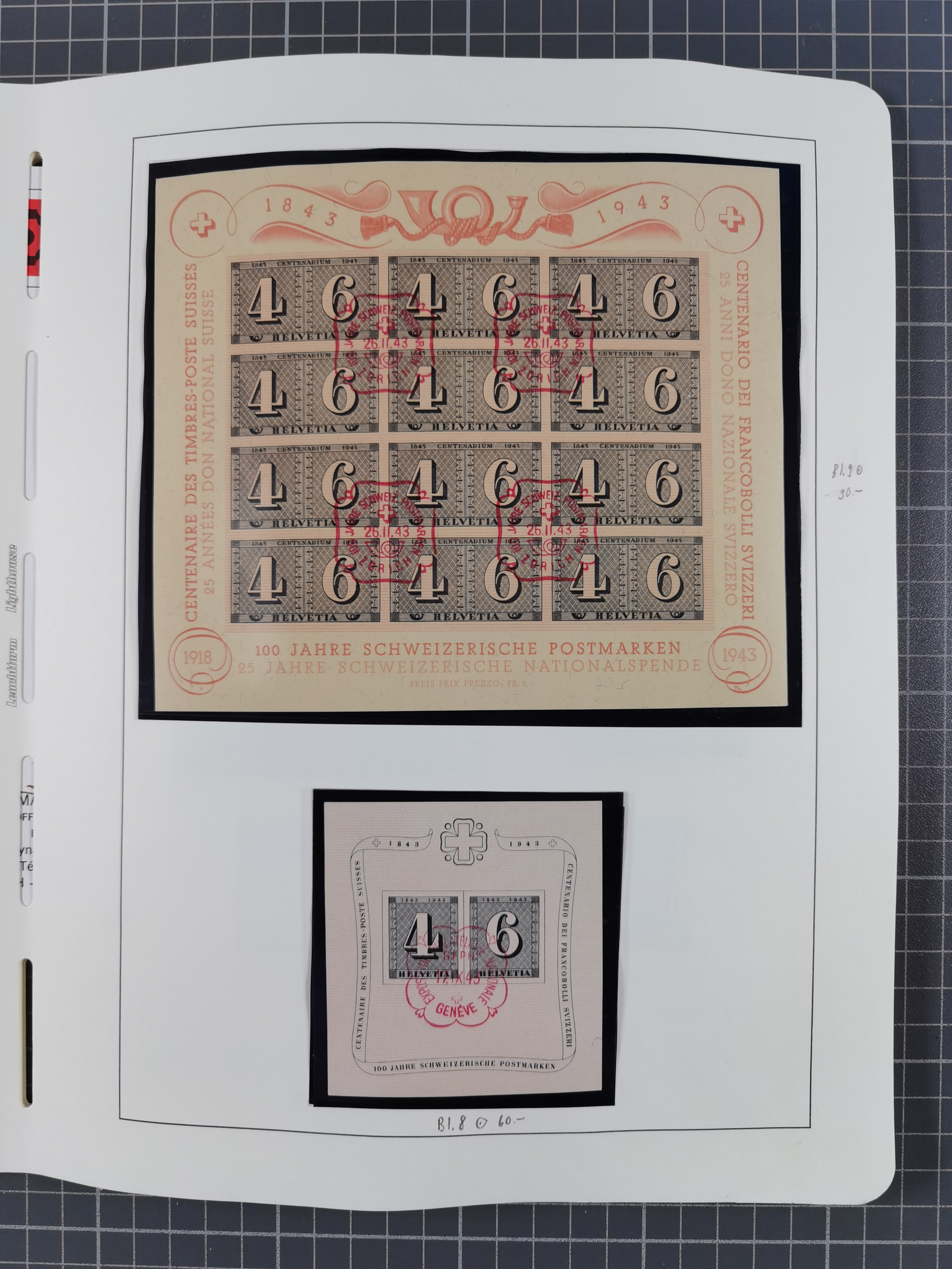 1876, Duloz four complete sheets in large folder, including 5 Pres,½ Pres, ¼ Pres, 1¼ Pres. (Mi.22-24, 26), most fine, few perfs apart and little different, isf. catalogue value over 2.500 Euro