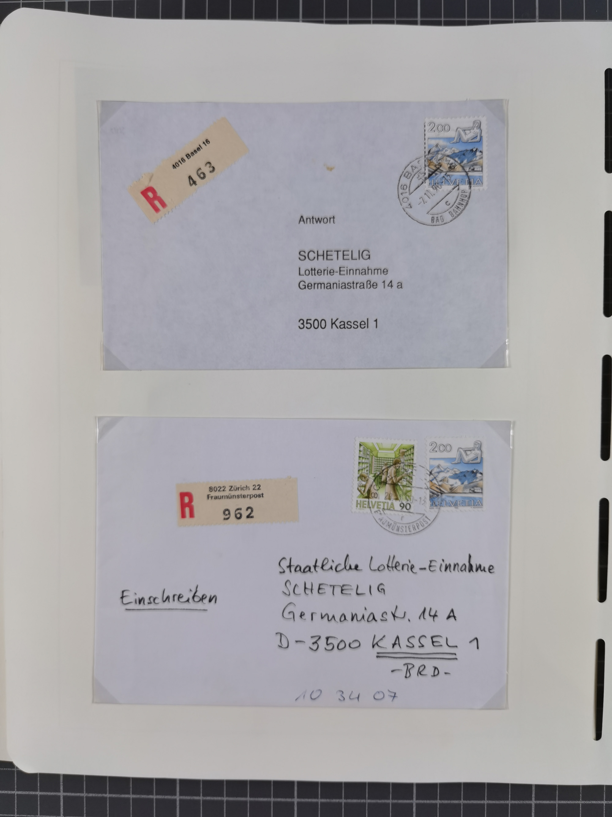 1842/1975, reichhaltige Sammlung mit etwas über 110 Briefen, dabei u.a. Mi.-Nr. 7II (oben angeschnitten) auf Forwarded-Brief , 8II auf Brief (Bug), 8II im Paar auf Brief, 15IIByp auf Brief (Attest Nussbaum), 33b auf retourniertem NN-Brief (Befund Guinand SBPV), ferner unterfrankierter Portobrief im schweizerischen-badischen Grenzrayon (Attest Hermann SBPV), Mi.-Nr. 37 MeF (5) auf unterfrankiertem Brief im Lokalrayon (Befund Liniger), sowie Auslandsbriefe und Incoming-Mail aus u.a. den Altdeutschen Staaten, USA, Frankreich, Belgien, Schweden, etc., sauber aufgezogen und beschrieben auf Blättern