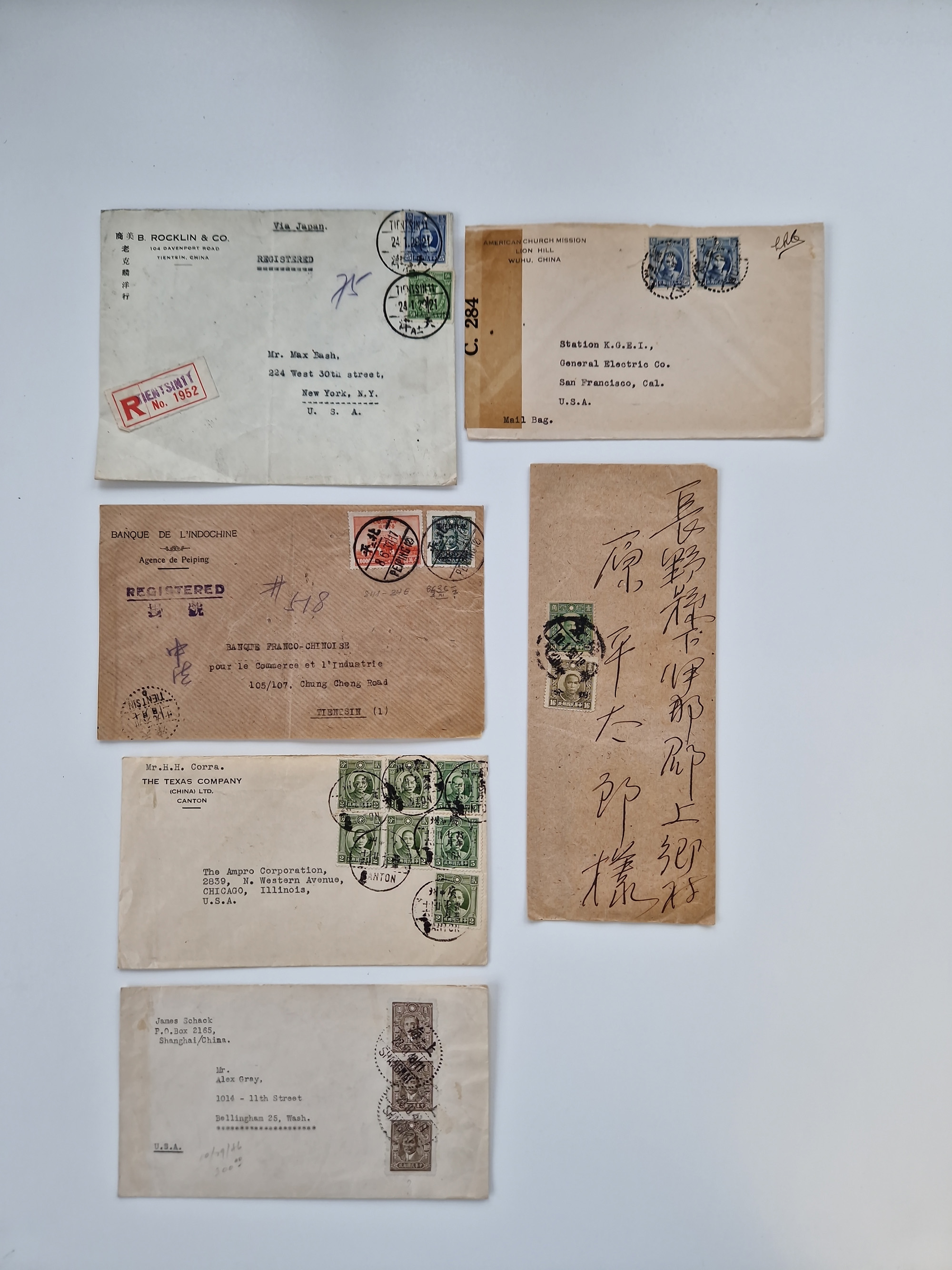 1913/33 (ca.), Hall of Classics specialized assembly of around 80 covers and cards, interesting usages with some combination and large multiple frankings, destinations abroad with Germany, France, Bangkok, etc., some maritime mail with Paquebot handstamp, registered and express mail, routing via Siberia, etc., mixed condition