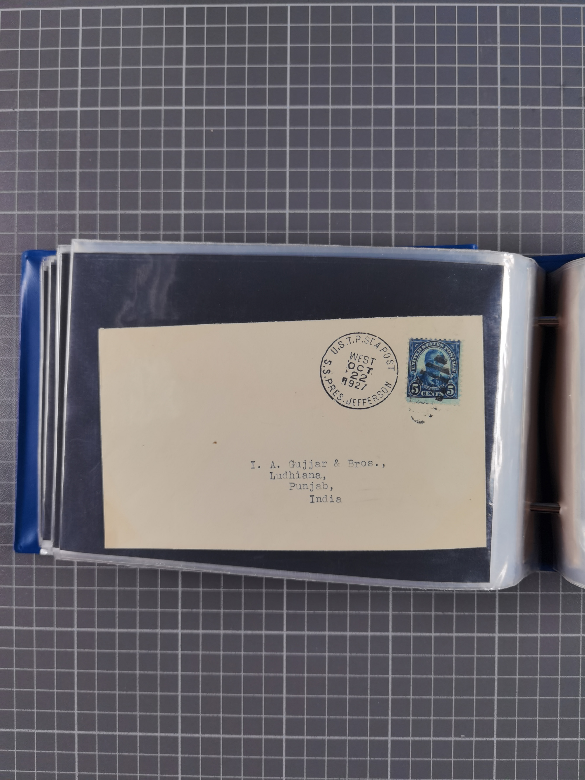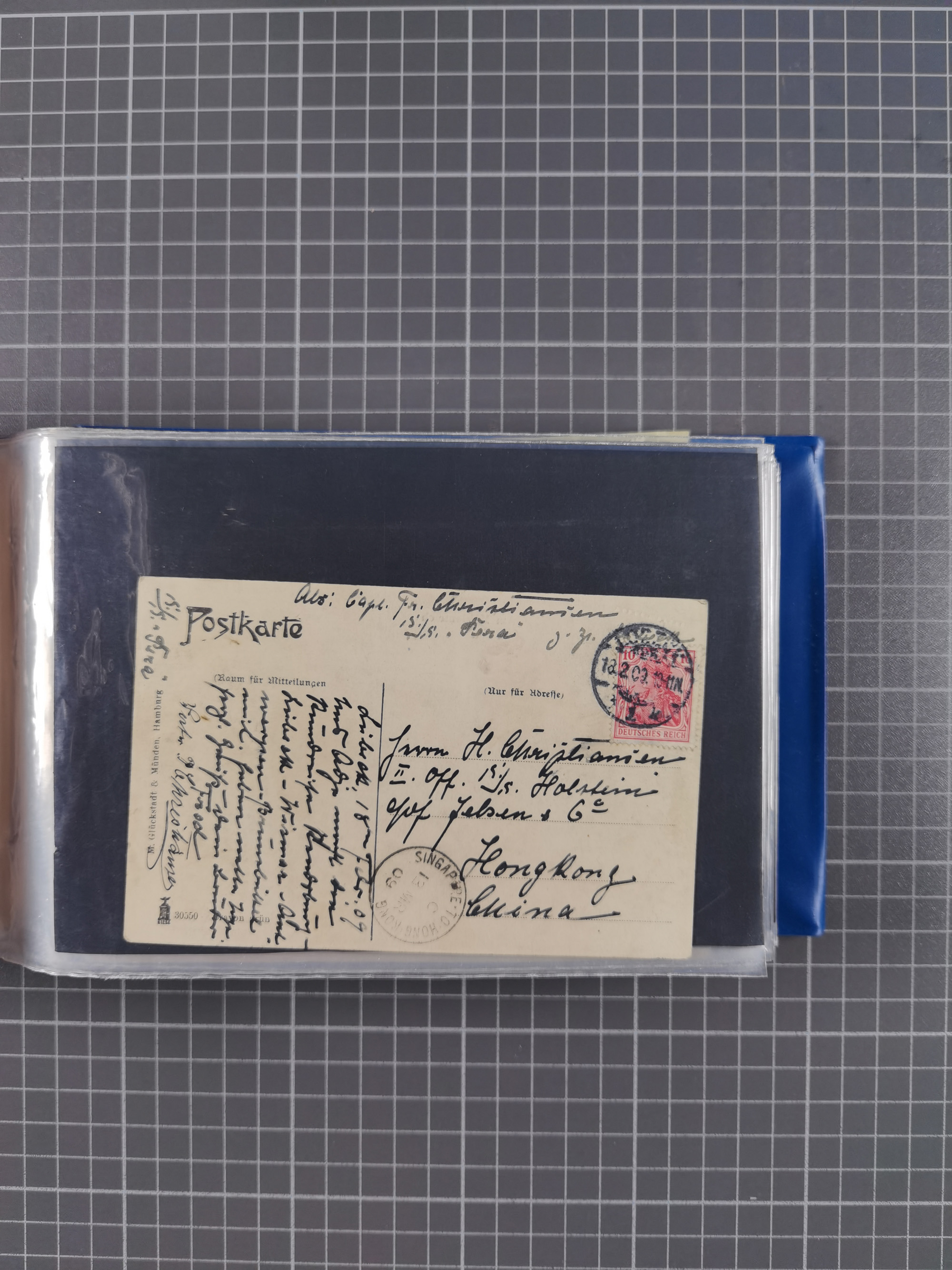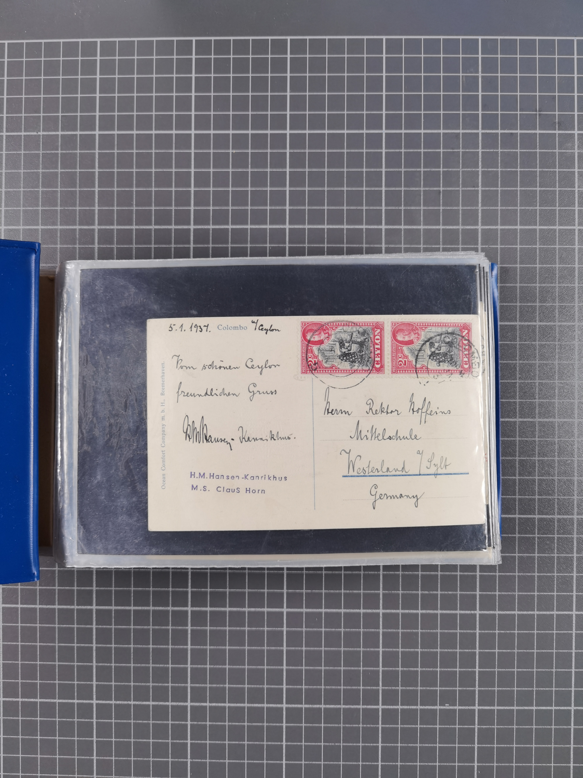 1892/1939, umfangreiche Sammlung “U.S. GERMAN SEA POST” mit ca. 400 Briefen, Karten und Ganzsachen, Schwerpunkt vor 1920 mit den Dublex-Stempeln mit Nr. 1-16, dabei verschiedene Verwendungen mit besseren (u.a. auf Briefen/Karten vom D. Reich), 1 R-GSU und weiteren Besonderheiten. Dazu noch einige Schiffs-Ansichtskarten, bei vielen Belegen mit Vermerken zu den Schiffen usw. und meist in guter Erhaltung. Eine in diesem Umfang seltene Sammlung in sechs Alben, ex Steinmeyer
