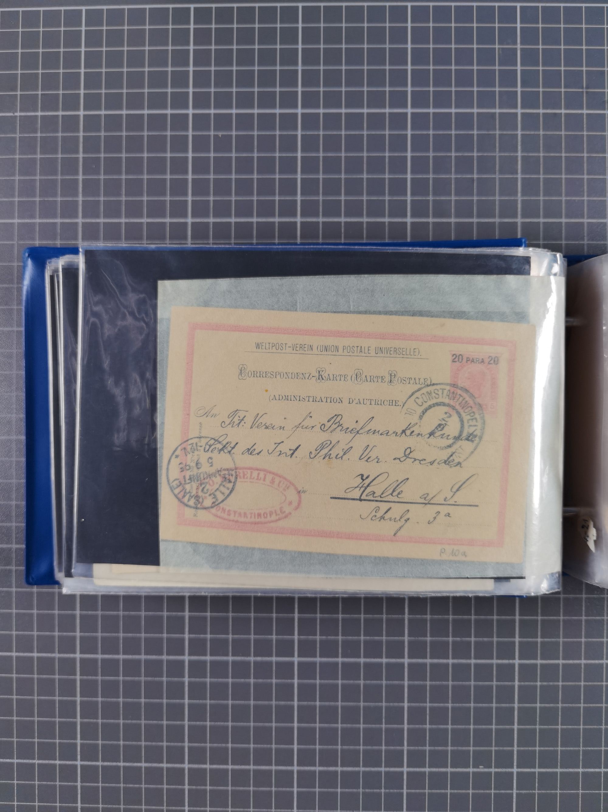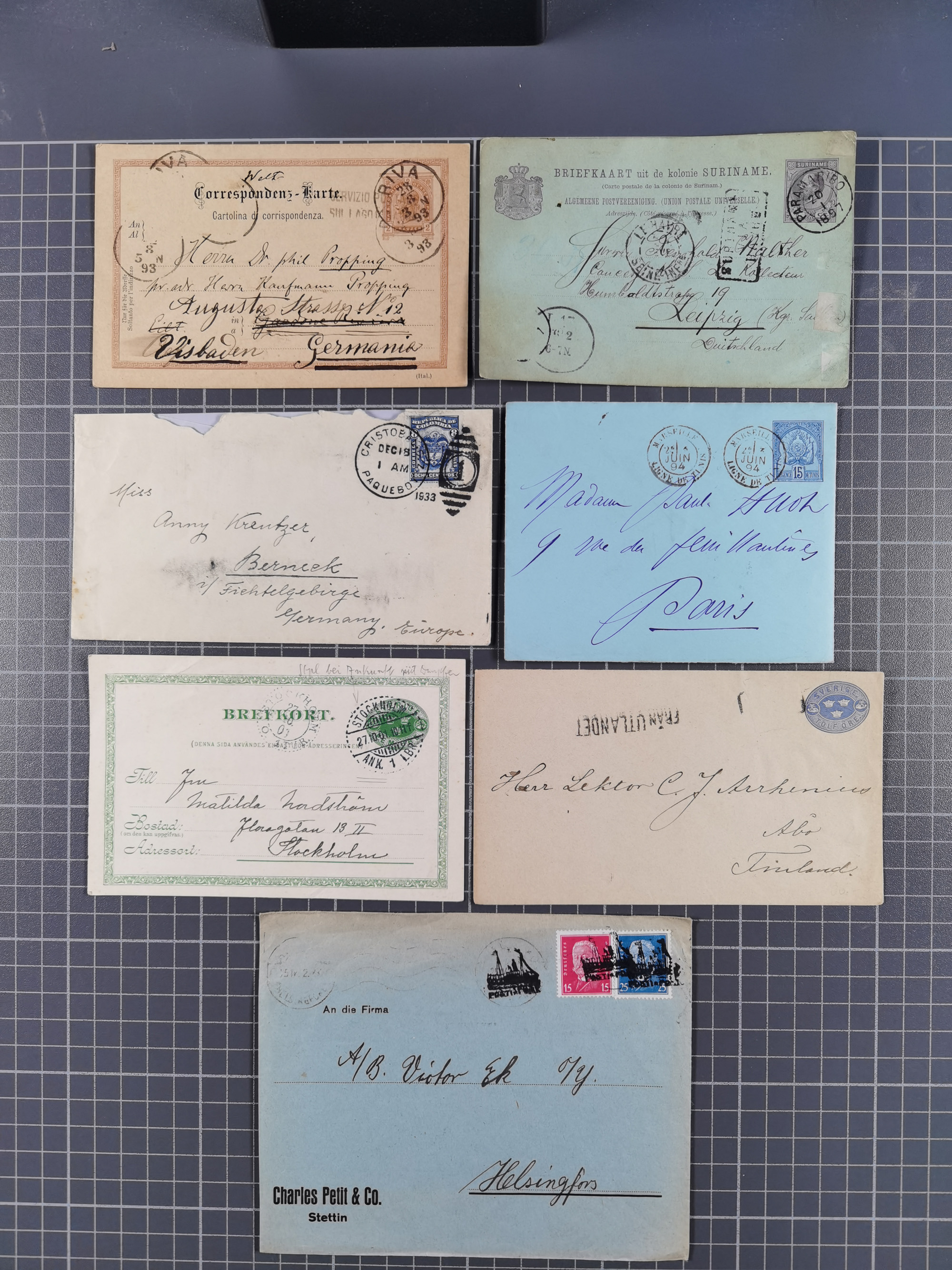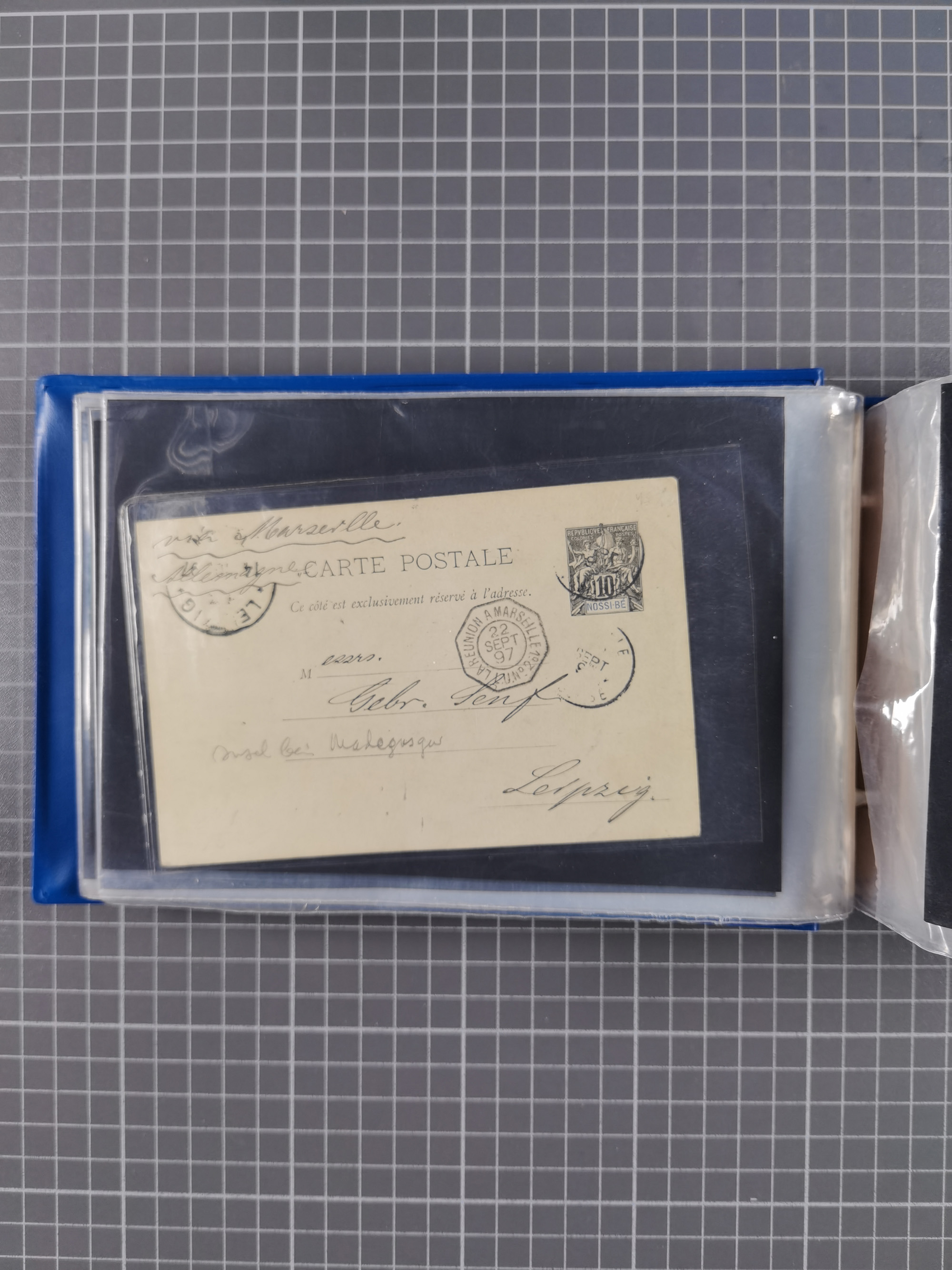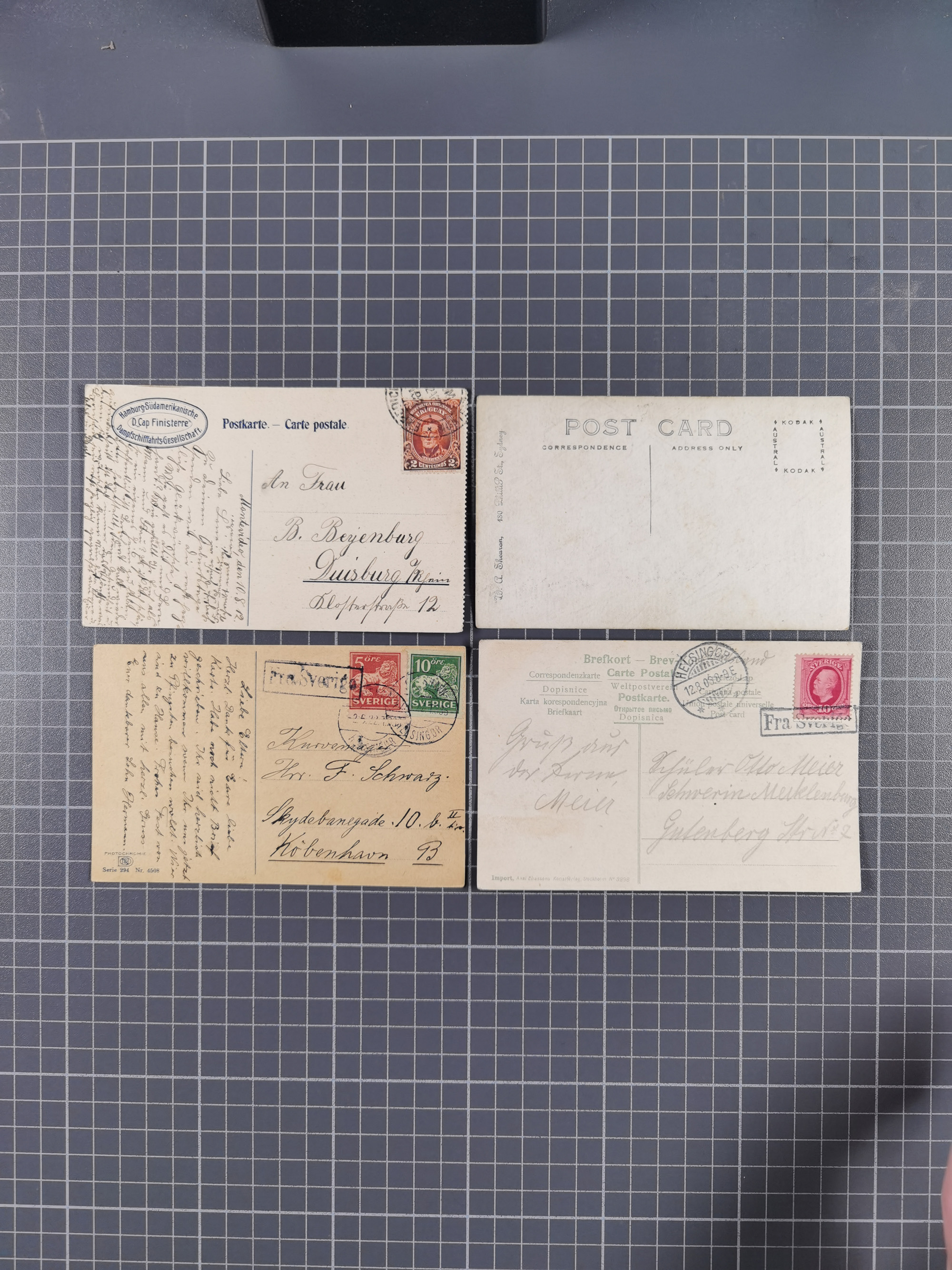 1829/1970 (ca.), interessanter Bestand mit über 100 Briefen, Karten und Ganzsachen inkl. Belege mit handschriftlichen Leitvermerken bzw. Leitstempeln und Transitstempeln. Schwerpunkt vor 1945 mit u.a. komplettem Faltbrief 1829 aus Russland mit L1 “'Russie” nach Triest, frankierte Postkarte Österreich 1905 mit Stempel “CARNIOLIA OE. LLOYD”, dänischer Stempel “KORSOR-KIEÖ…No4” klar auf Postkarte 1907 mit Germania 10 Pfg. sowie viele Pauebot-Stempel. Dazu Frankreich GSU 15 C. mit Zufrankatur und rotem Zudruck mit Flagge “North German Lloyd Bremen…..”, meist in guter Erhaltung, ex Steinmeyer