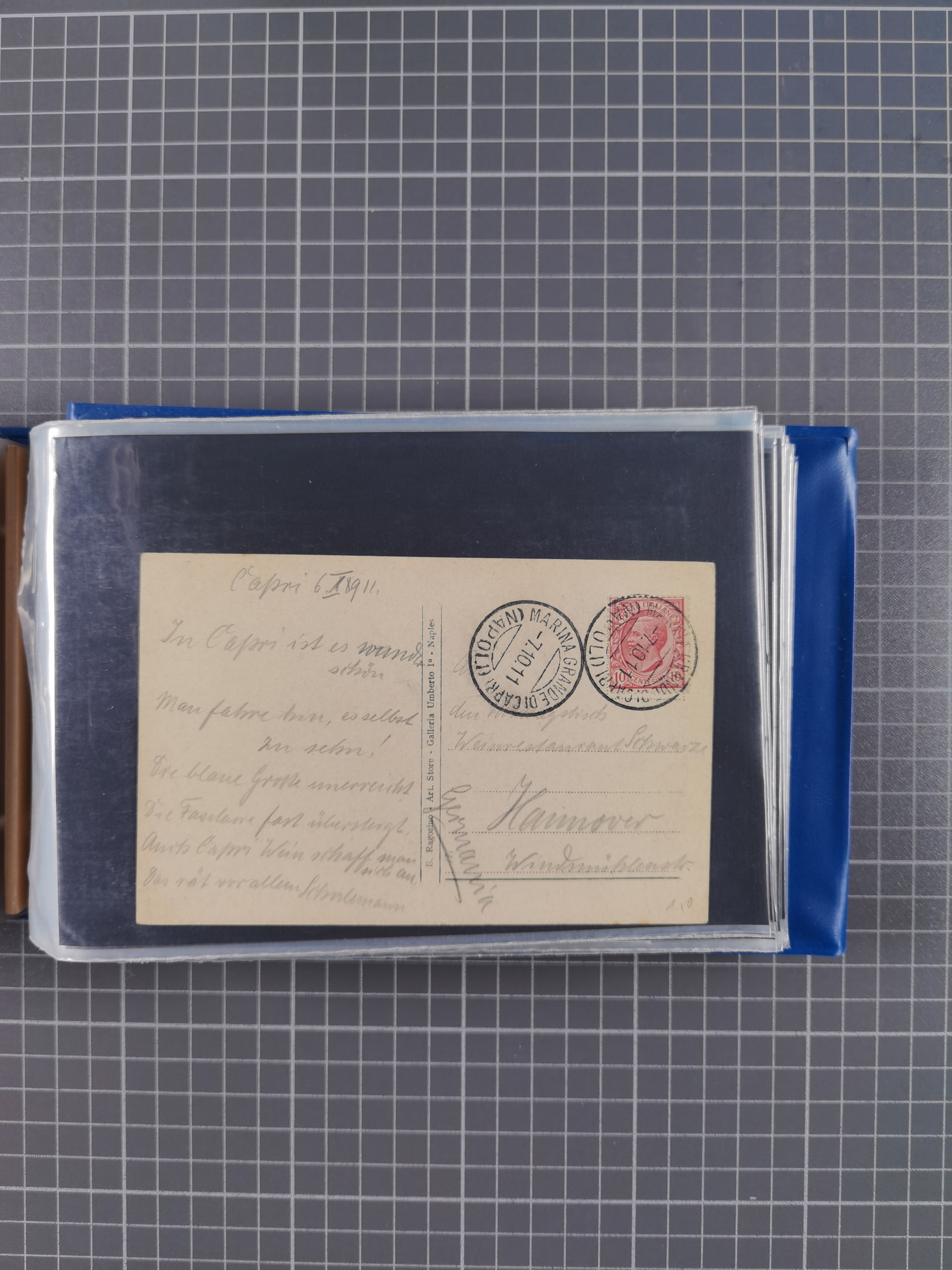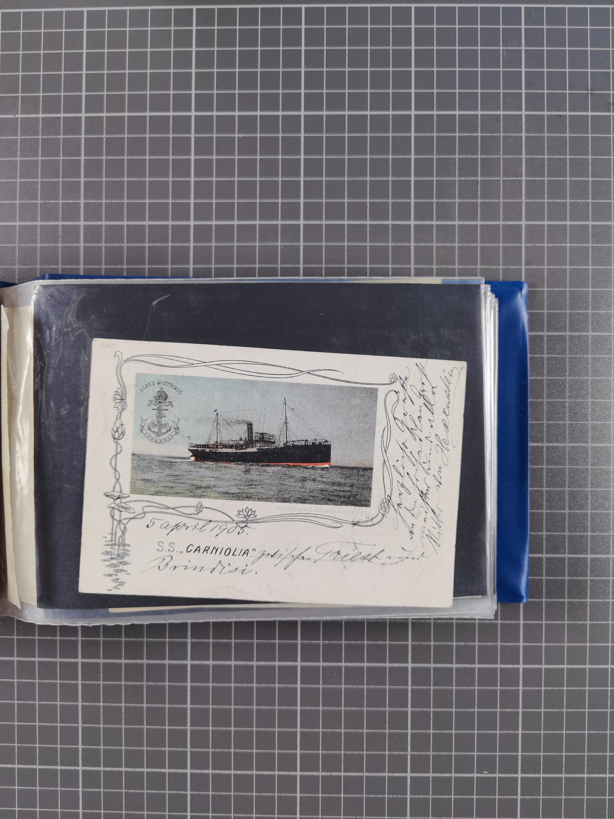 Italien: 1899/1939, interessante Sammlung der Inlands-Schiffspost mit ca. 100 Karten und GSK, dabei viele verschiedene und klarte Stempel. Dazu noch einige Schiffs-Ansichtskarten, meist in guter Erhaltung, ex Steinmeyer