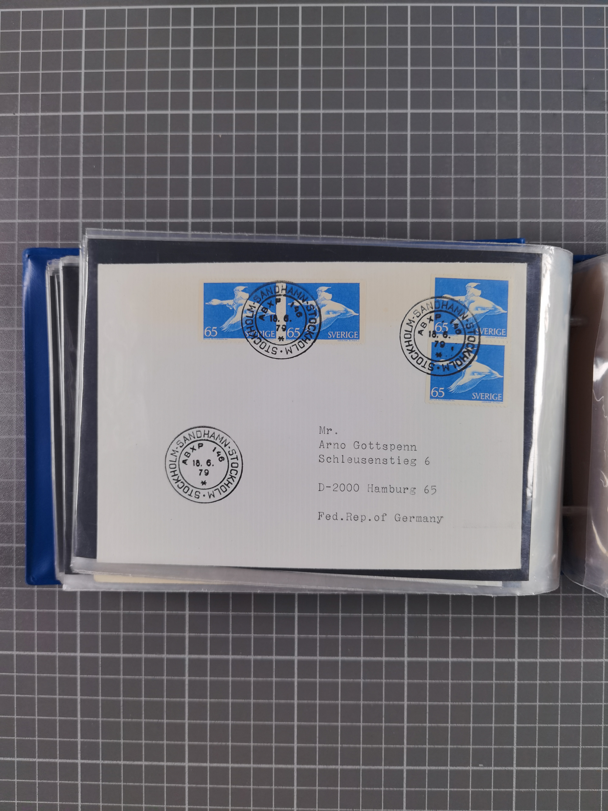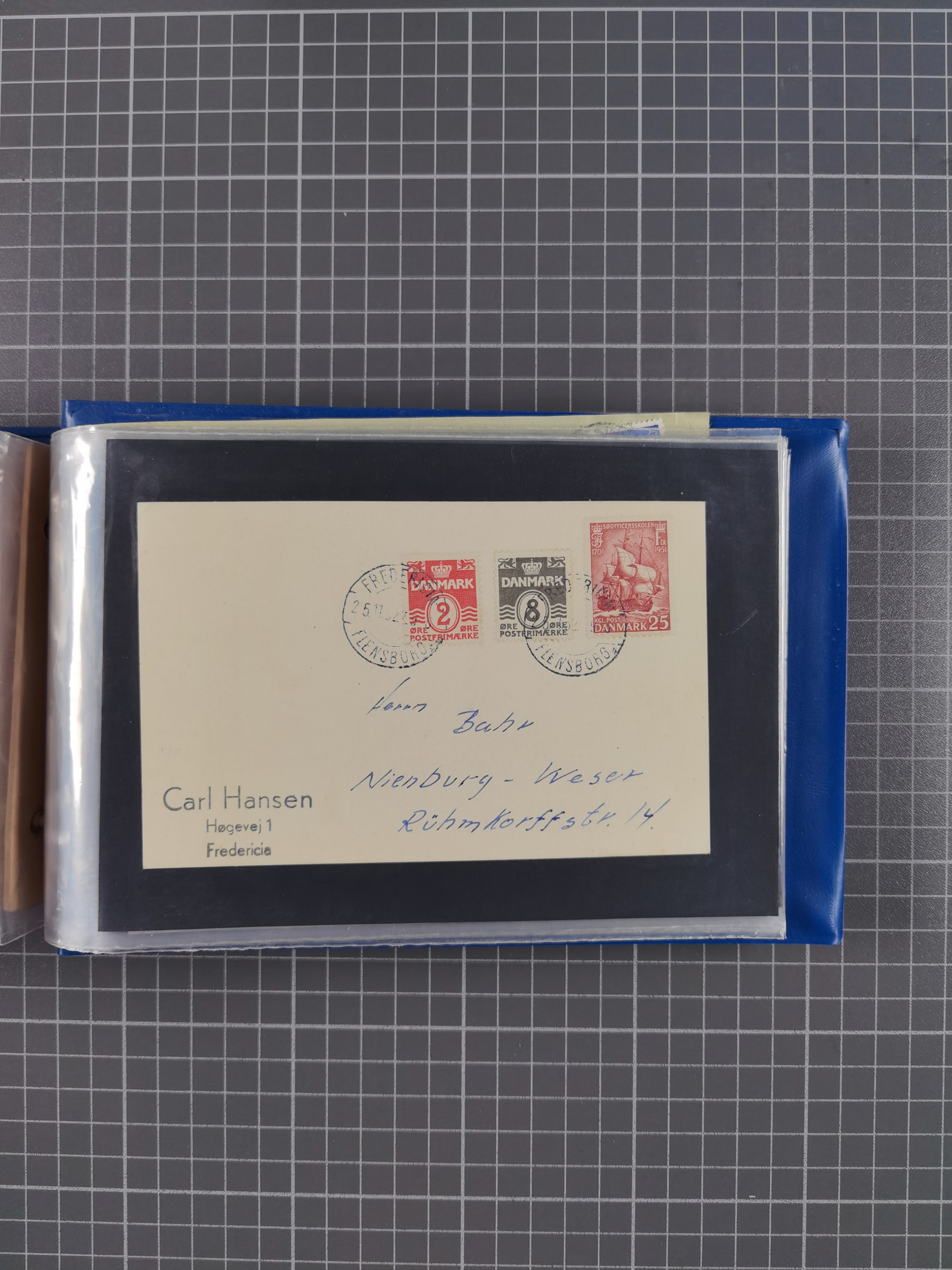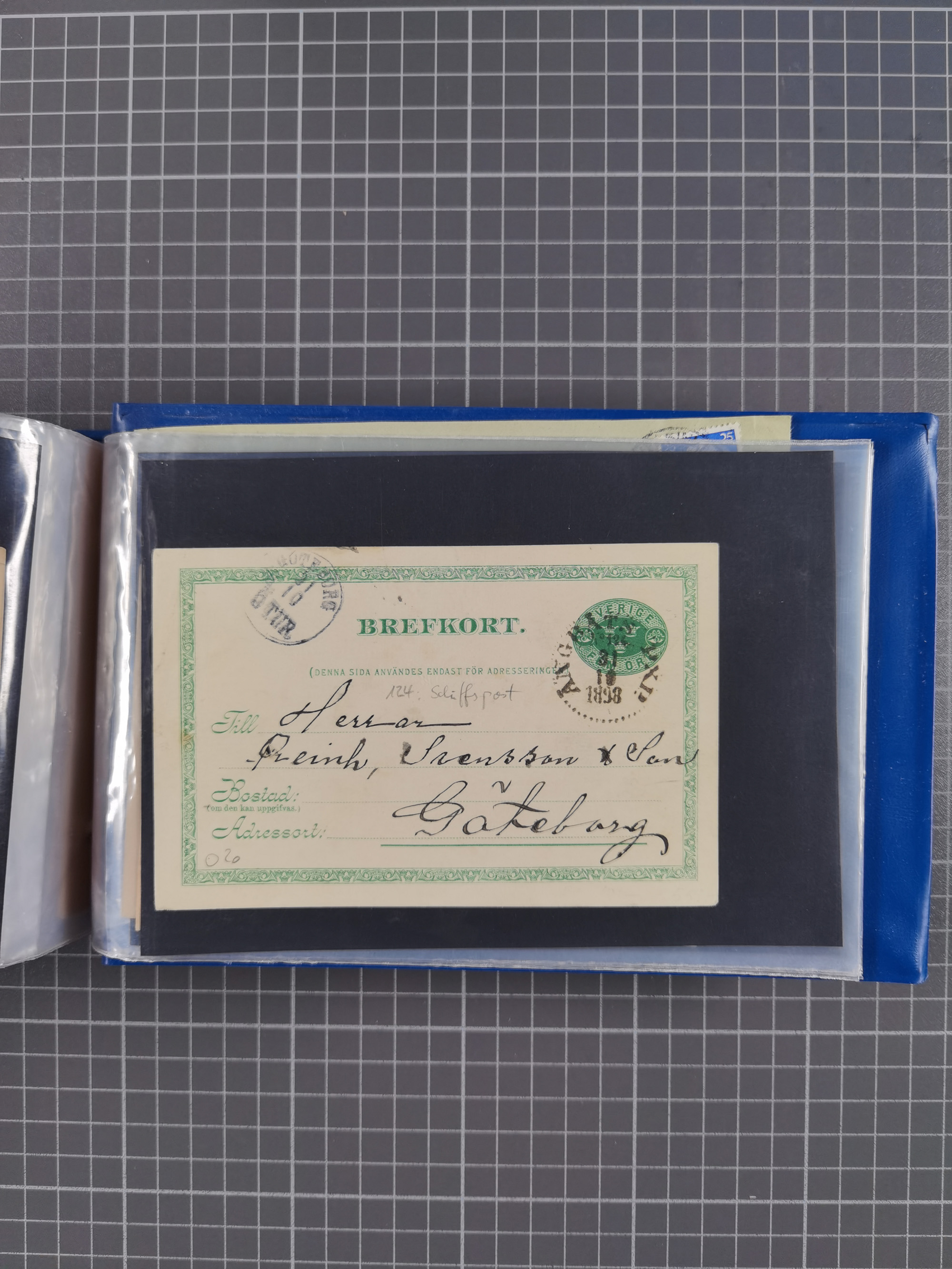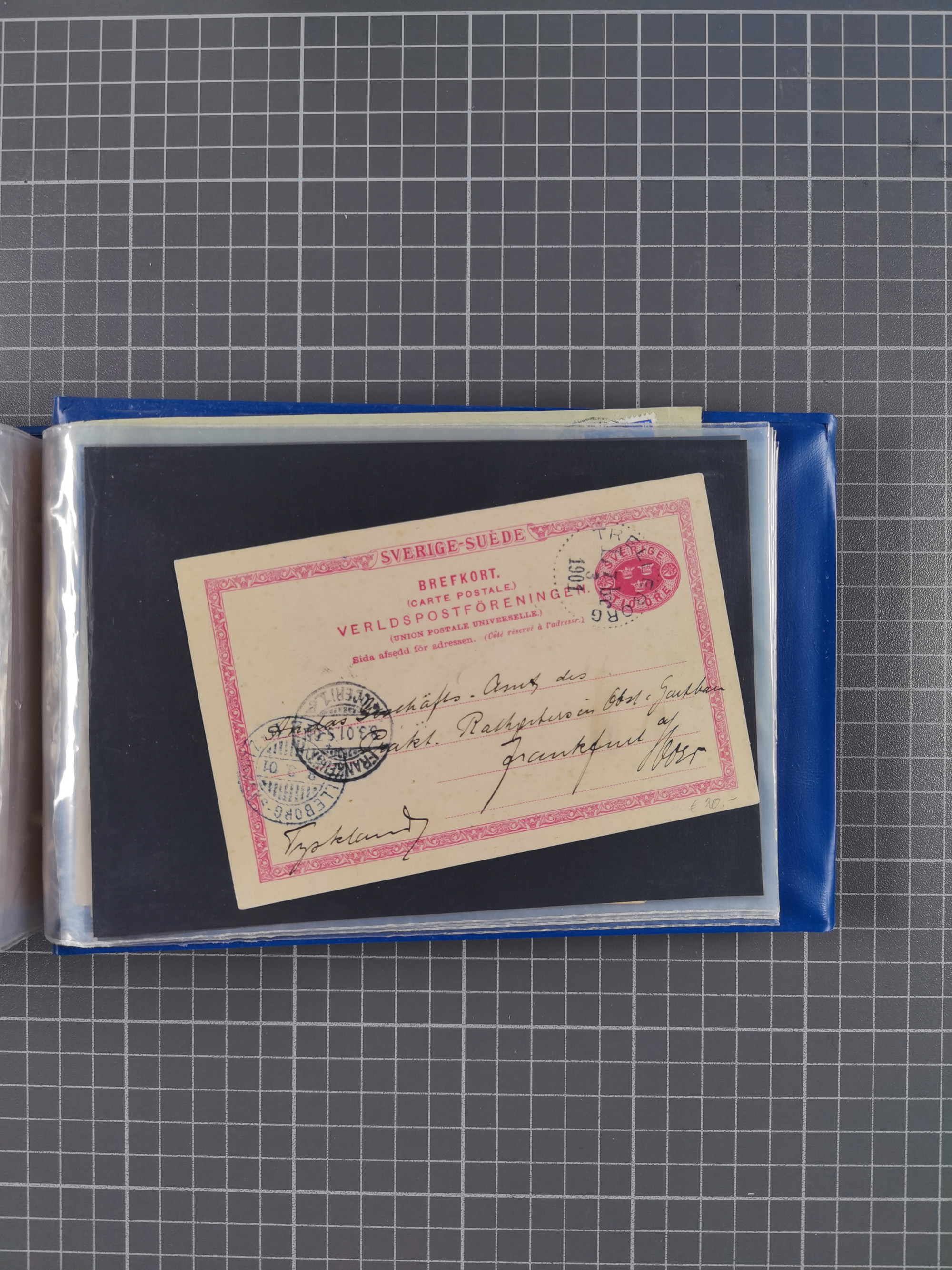 1853/1950, interessante Sammlung “Nordische Schiffspost” inkl. Transit- und Anlandungsstempeln mit fast 60 Briefen, Karten und GSK sowie einigen losen Marken und Briefstücken, dabei u.a. NDP-Faltbrief 1870 mit Ra3" AUS (Wollin) PER DAMPFSCHIFF….", markenloser Faltbrief 1871 mit Rahmenstempel “AUS STETTIN PER DAMPFSCHIFF”, dänischer Nummernstempel “1” auf D. Reich Ganzsachenkarte 10 Pfg,, frankierter Island-Brief mit Stempel “ABERDEEN 1933” und Ra1 “SHIPP LETTER" und einige Briefe mit schwedischen Sonderfahrten-Stempel der 30er-Jahre. Alles auf Albenblättern mit Beschriftung, ex Steinmeyer