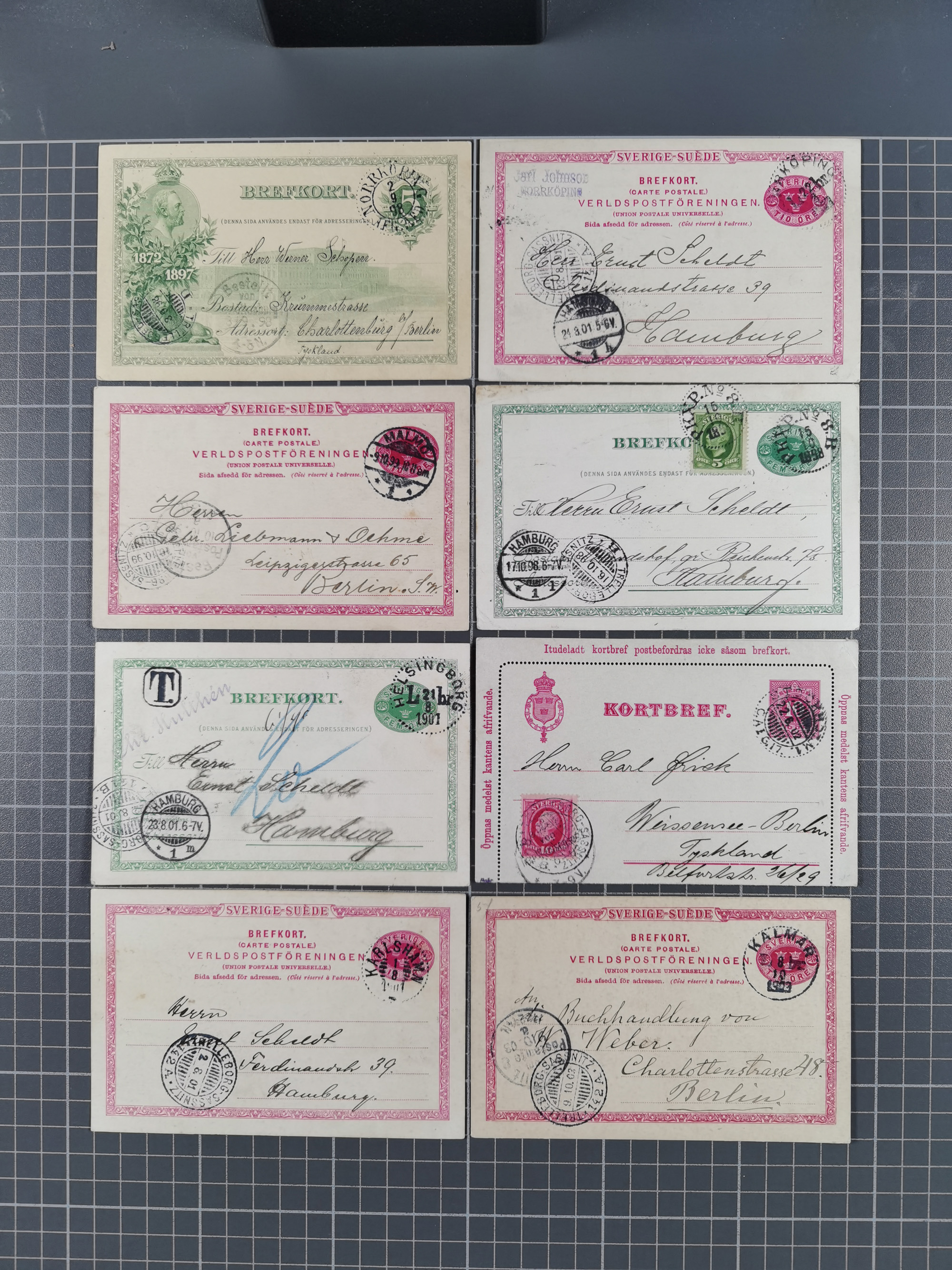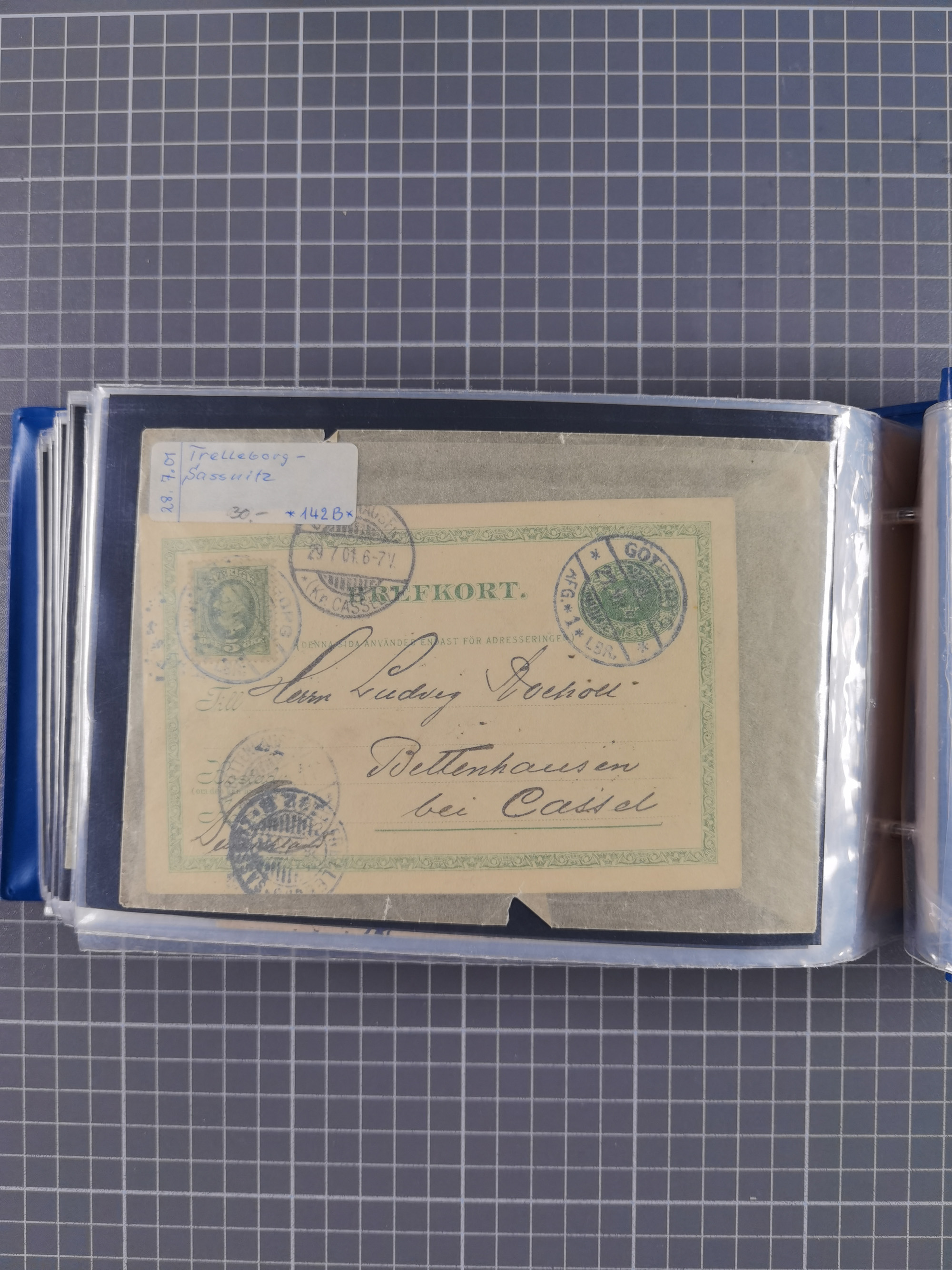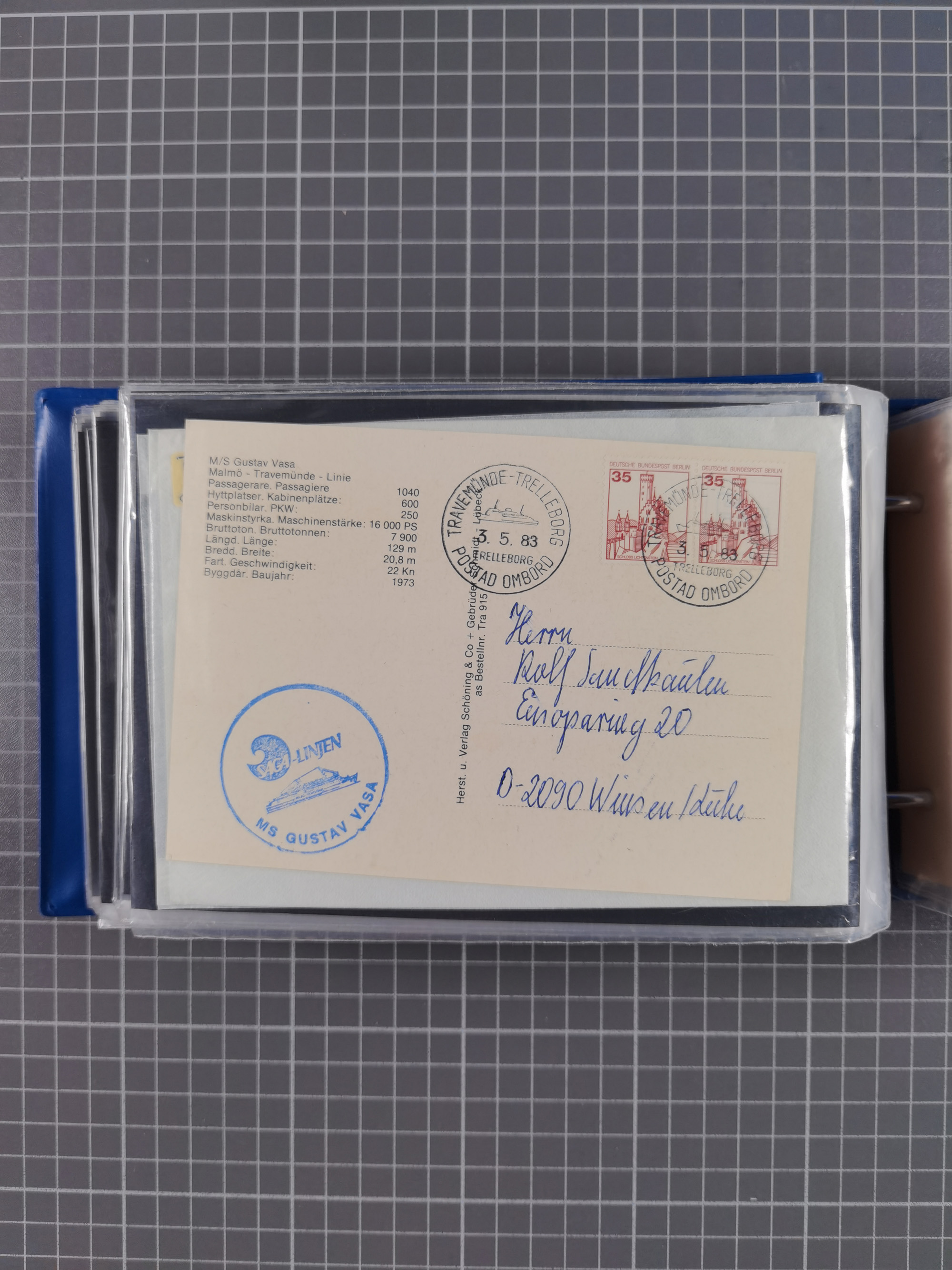 1853/1970 (ca.), interessante Sammlung “Schiffspost der Ostsee” mit Schwerpunkt bei den Anlandungsstempeln, ca 130 Briefe, Karten und GSK sowie einigen Briefstücken und losen Marken mit u.a. GSK 1874 mit Ra3 “AUS WOLLIN PER DAMPFSCHIFF 5.10.74”, GSK 1893 mit Ra2" Aus Schweden per Stralsund", Ansichtskarte 1909 mit Ra3 “KPSOR-KIEL…No. 4 20/3” und Brief aus Dänemark 1939 mit L1 “Fra Borholm”. Die Erhaltung ist zum Teil fehlerhaft, dabei viel Post aus dem Bedarf, ex Steinmeyer