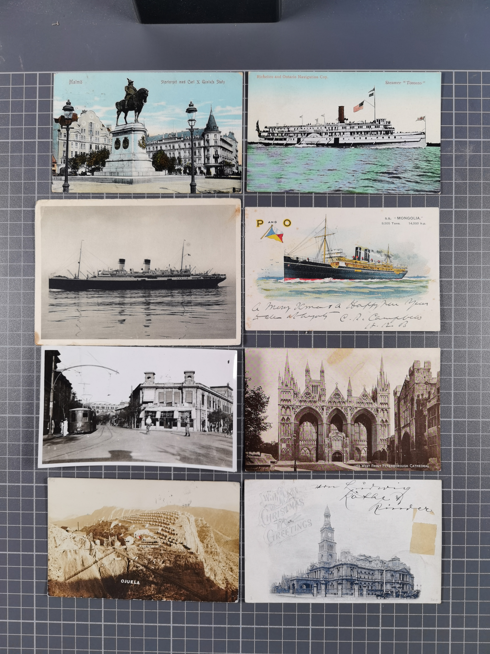 1902/38, Maritime Mail 14 covers & postcards, including five ship cards (S.S.Finland, Britannic, Nieuv Amsterdam, Canadian Montrose and Cunard SMS Samaria) COGH card cancelled OCEAN POST OFFICE, First Voyage Queen Mary, Paquebot, Envelope and imprint letter “White Star line Australian Service Via Capetown 1912” some different, mainly fine.