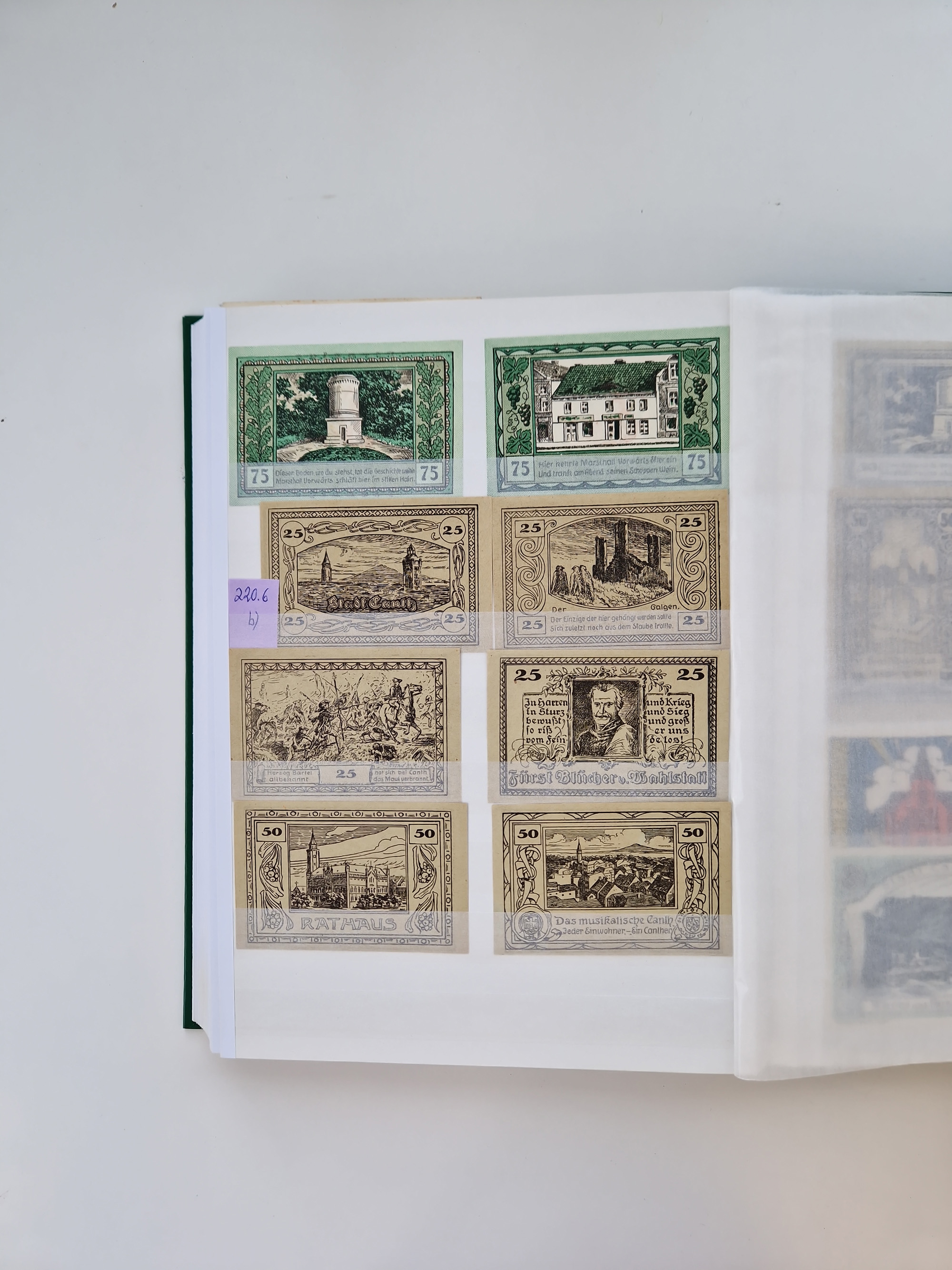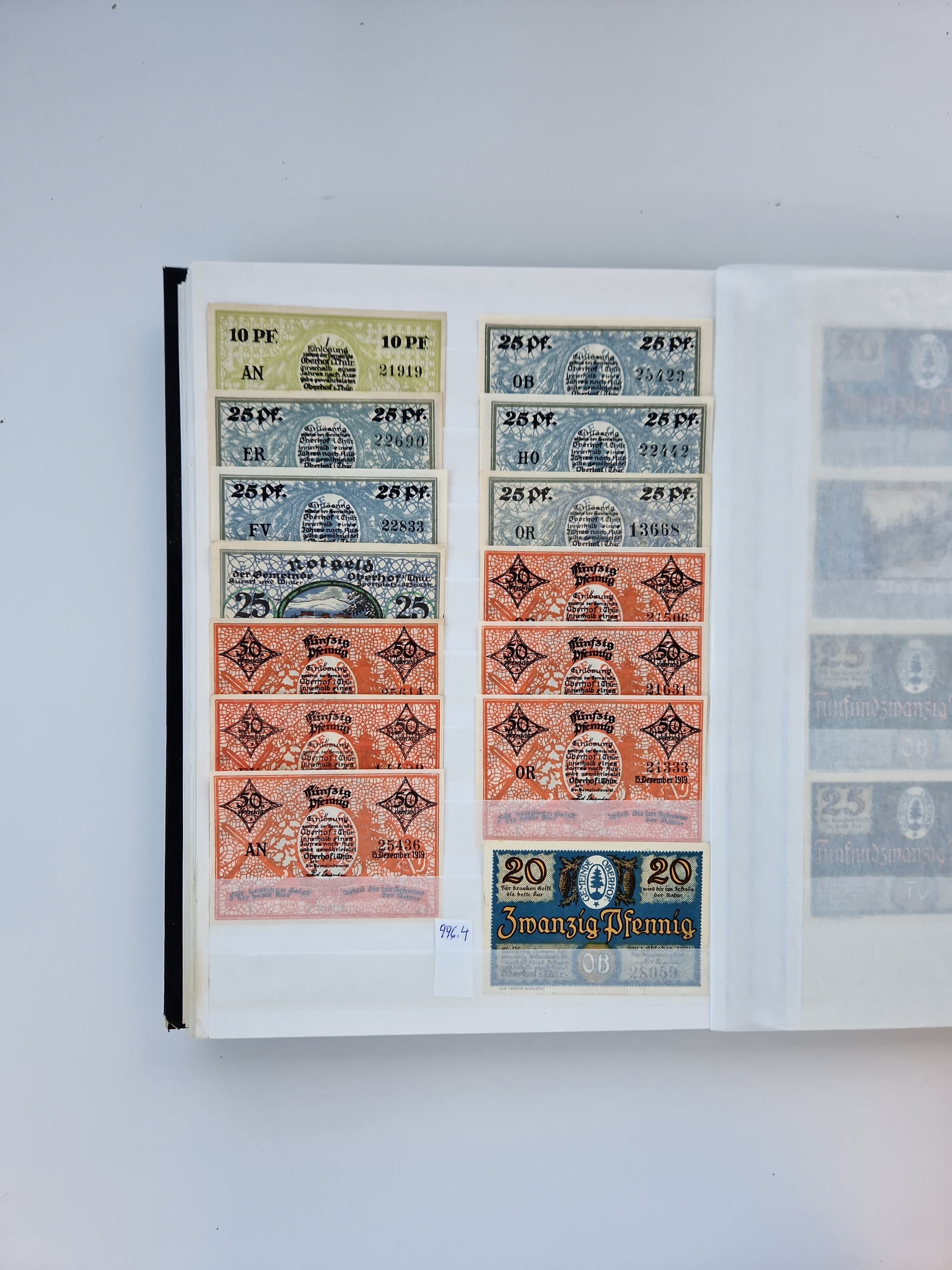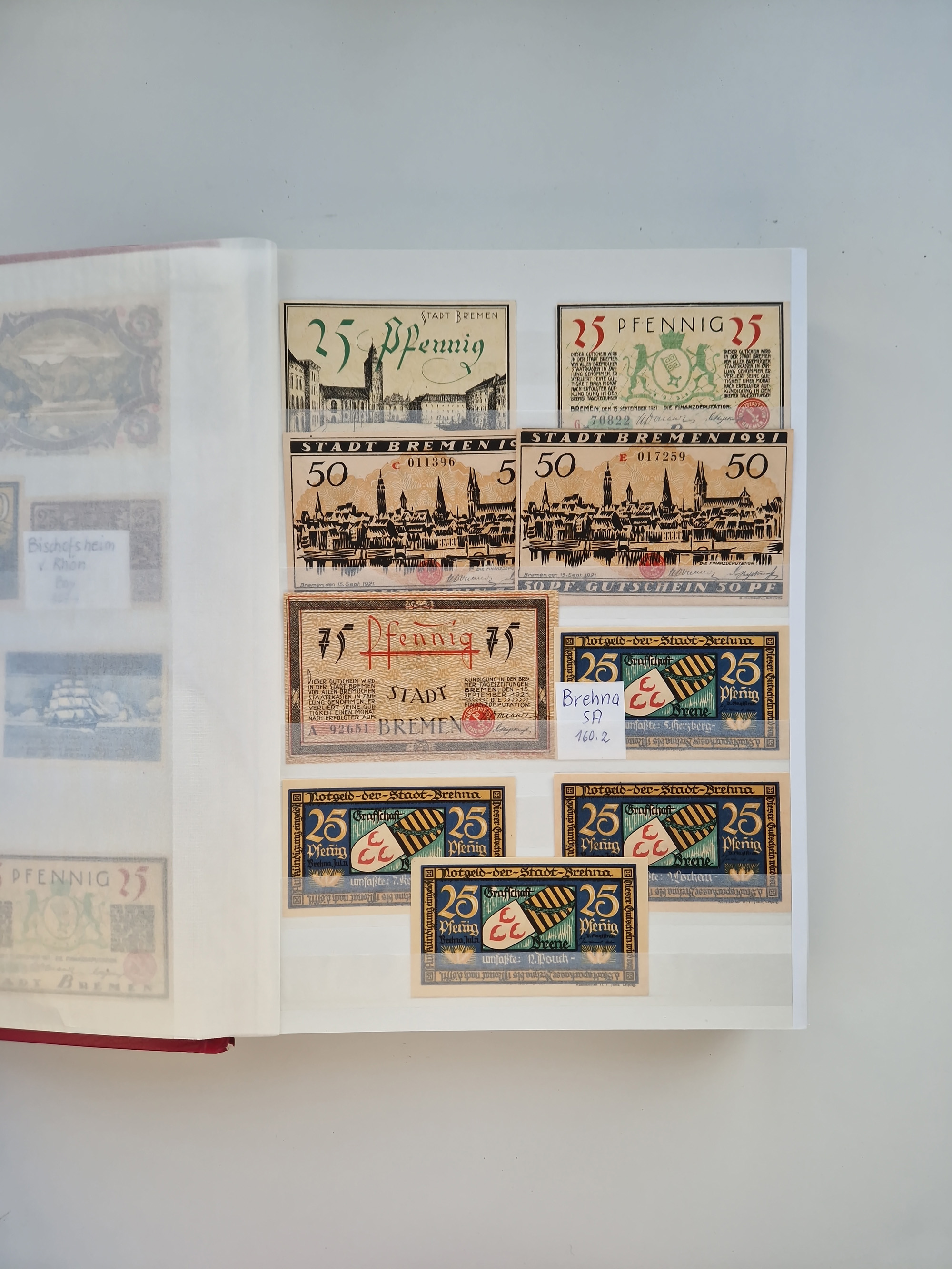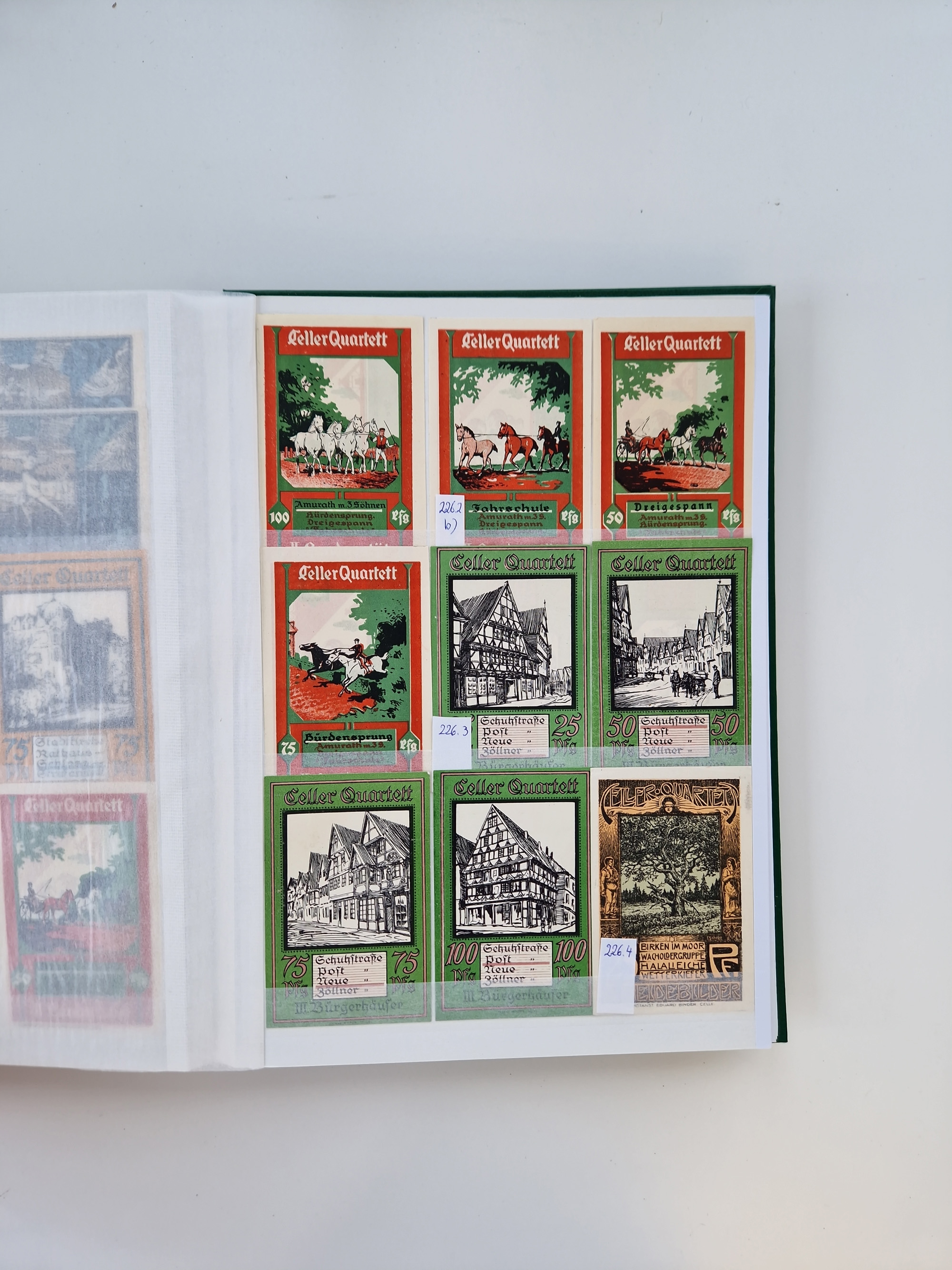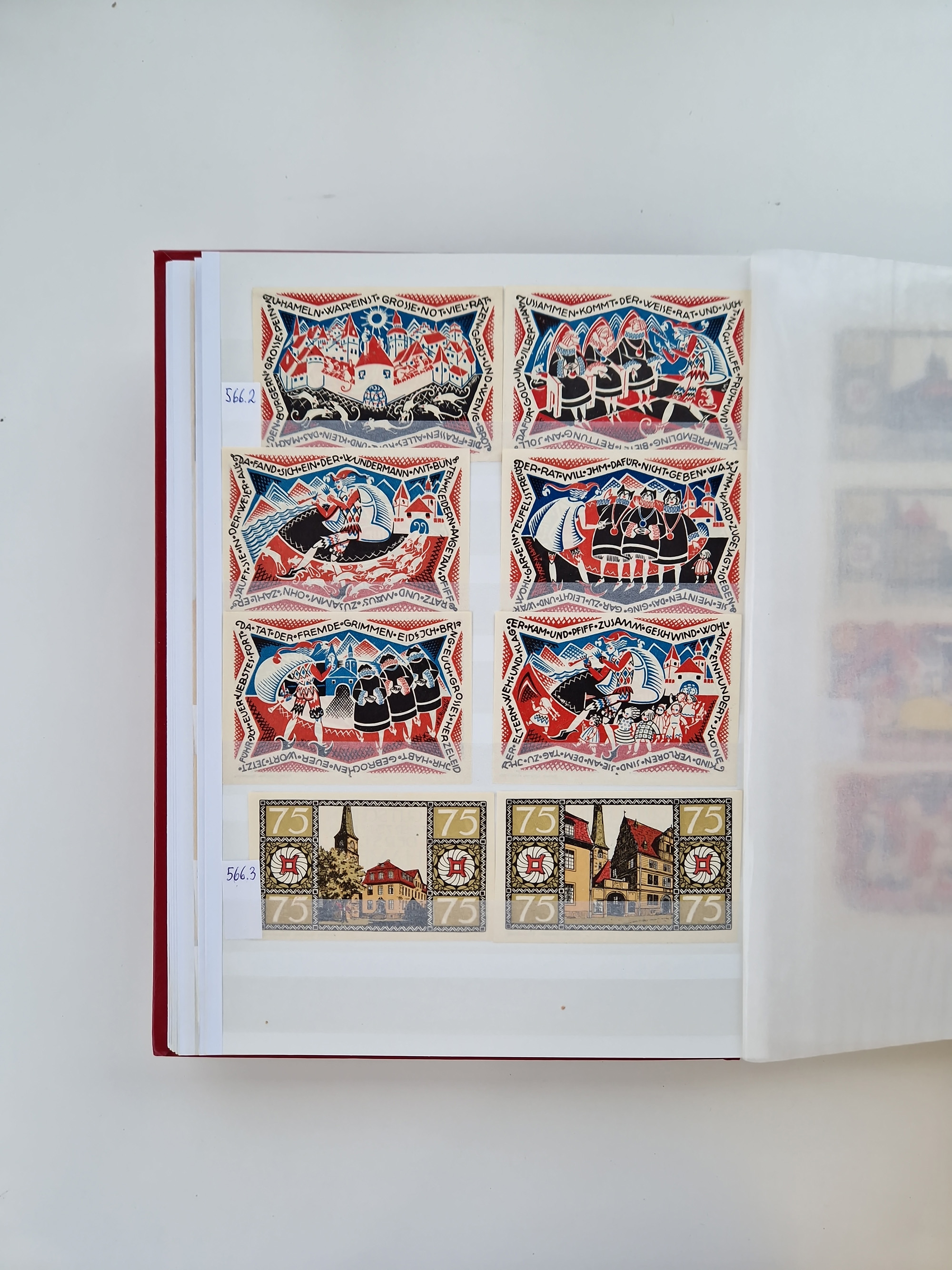 Notgeld-Serienscheine, saubere Sammlung in 16 meist dicken Steckalben, sauber nach Orten und Serien sortiert, überschlägig etwa 7/8000 Stück, dazu 4 Kataloge