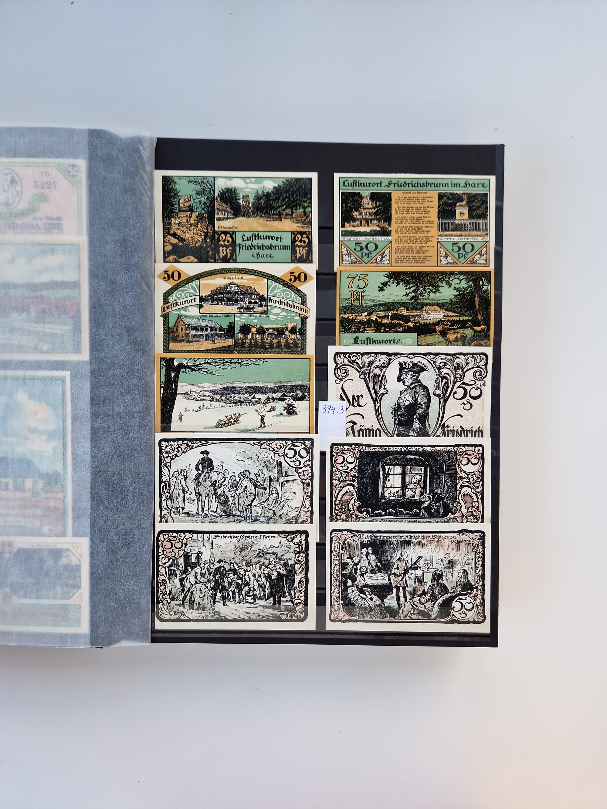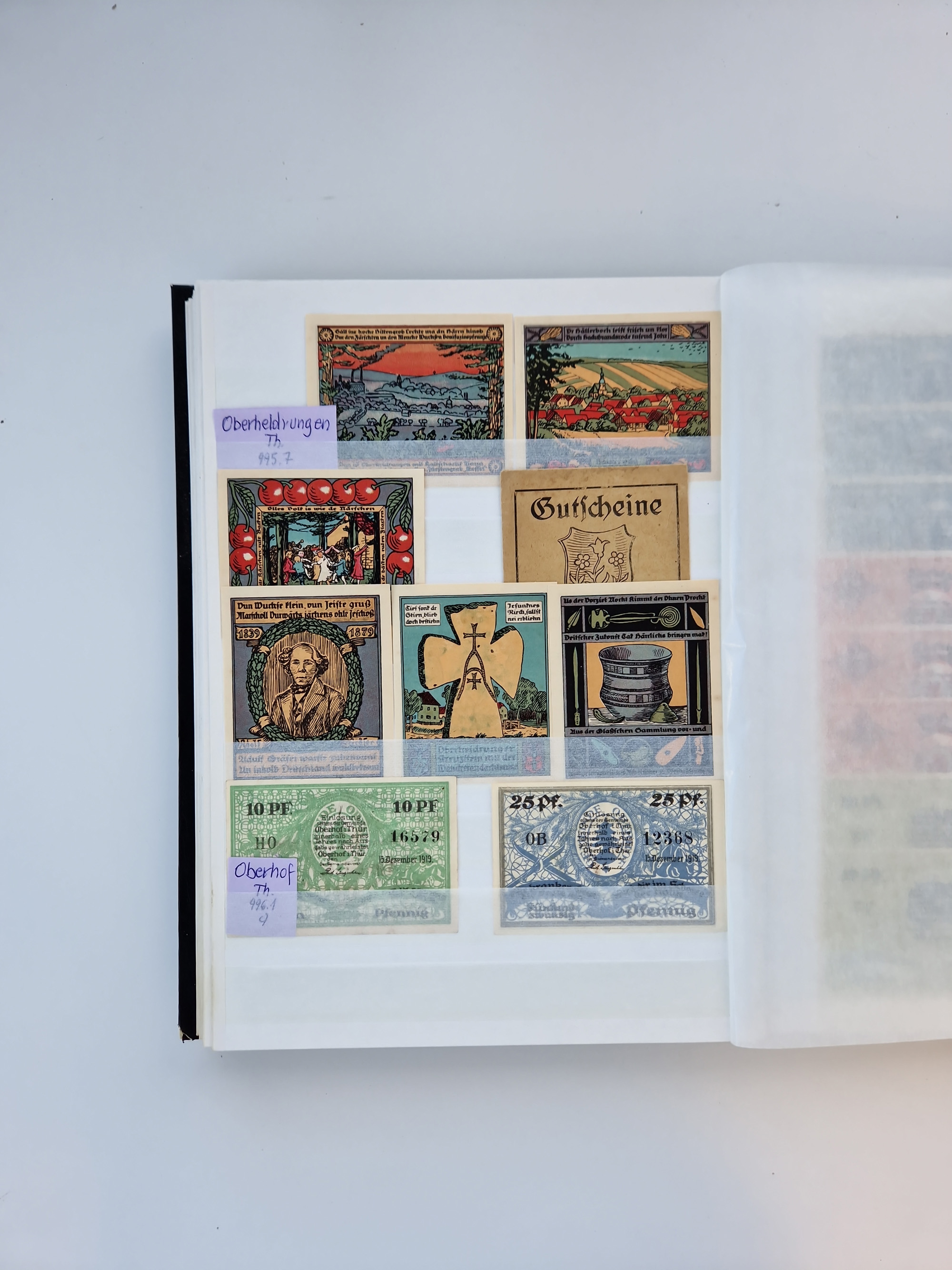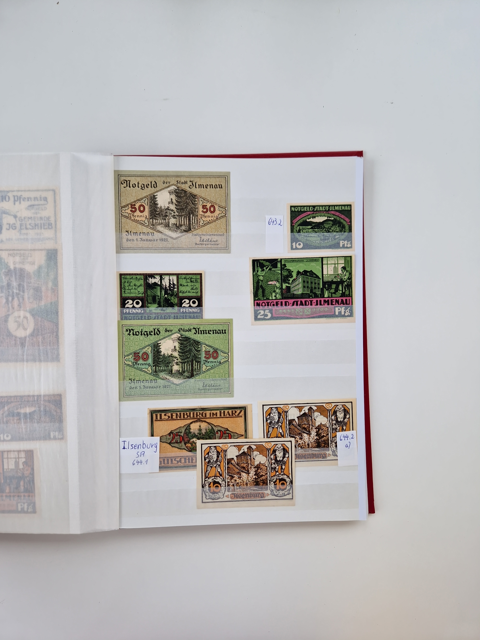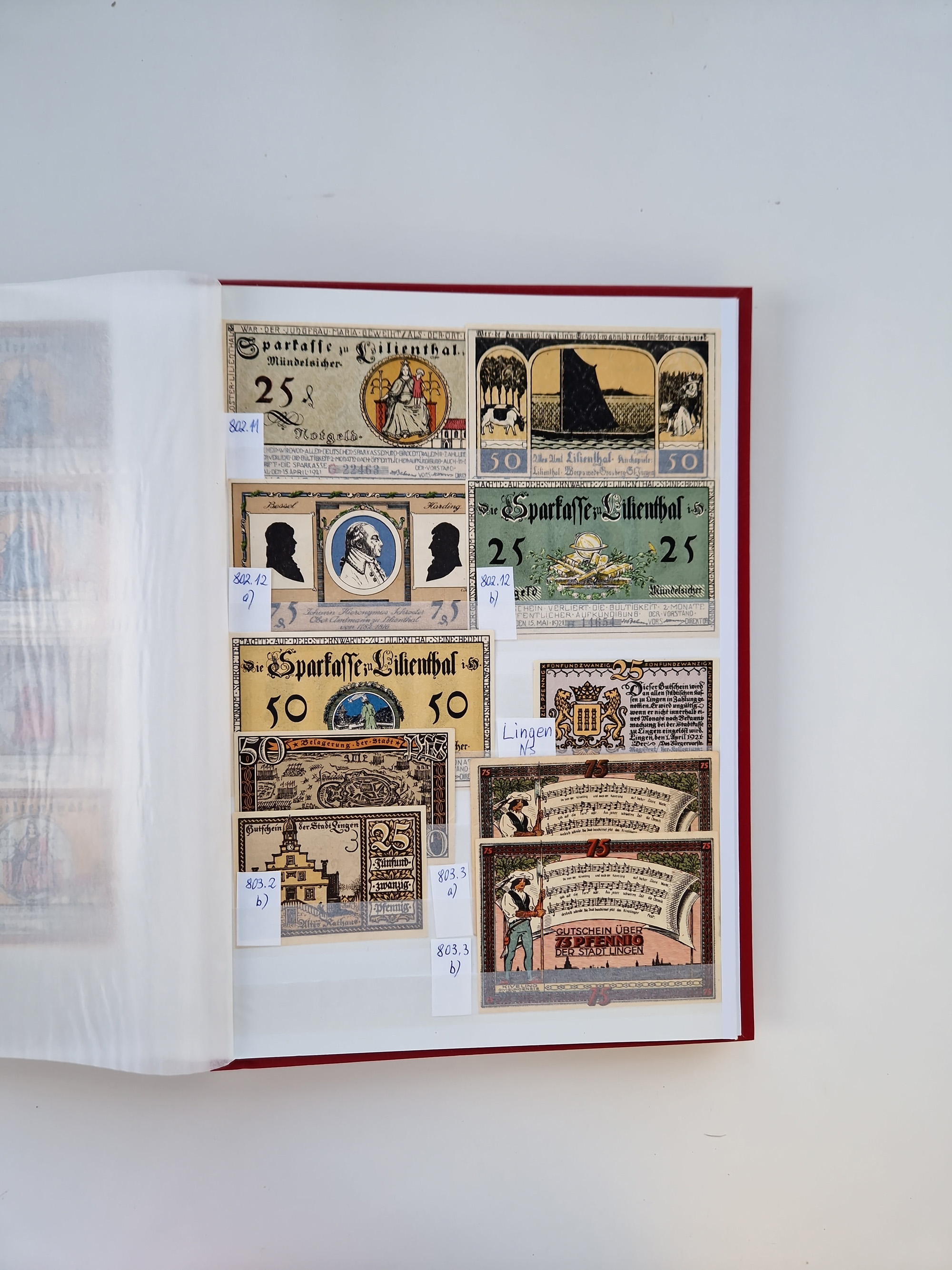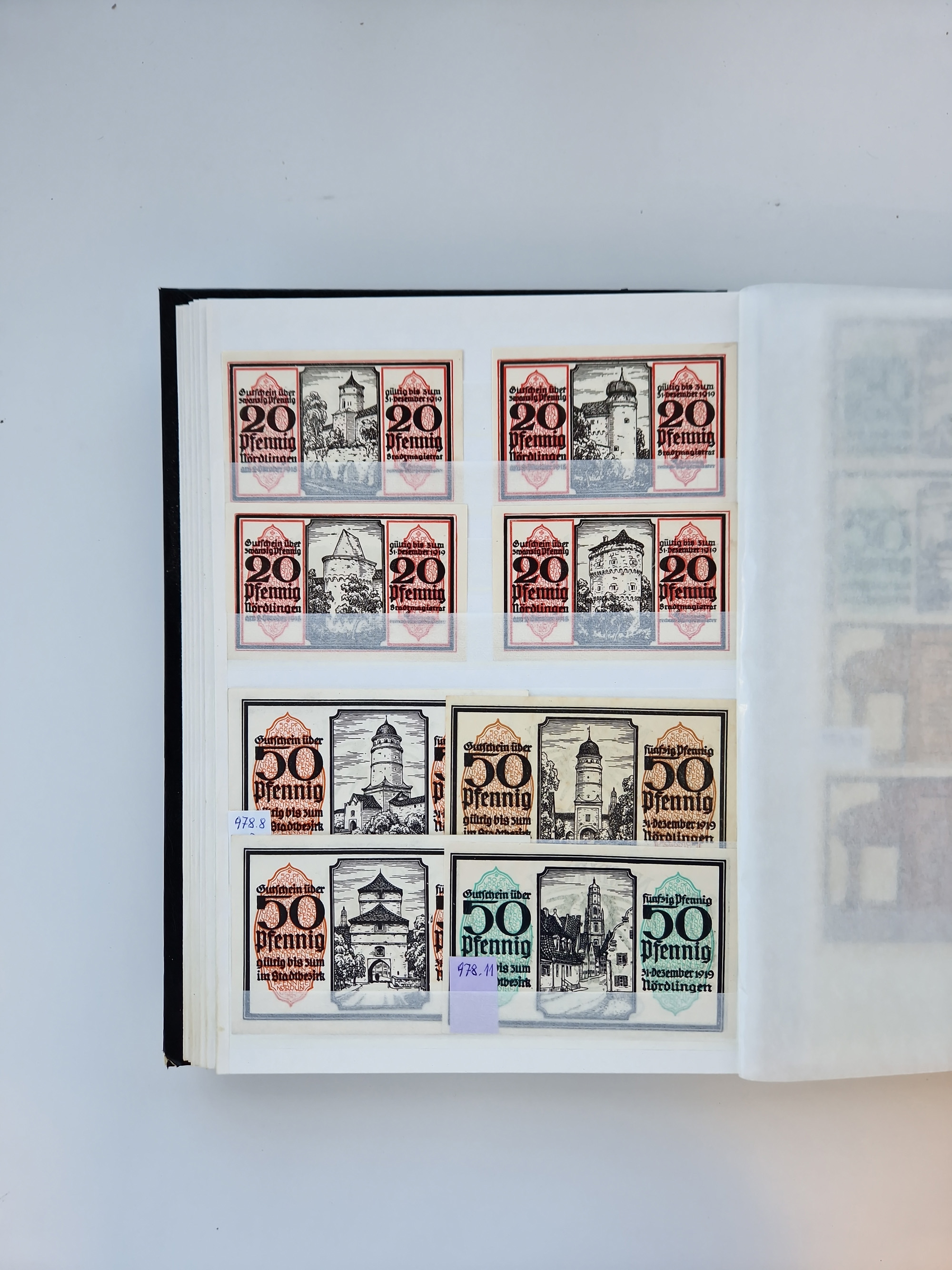 Notgeld-Serienscheine, saubere Sammlung in 16 meist dicken Steckalben, sauber nach Orten und Serien sortiert, überschlägig etwa 7/8000 Stück, dazu 4 Kataloge