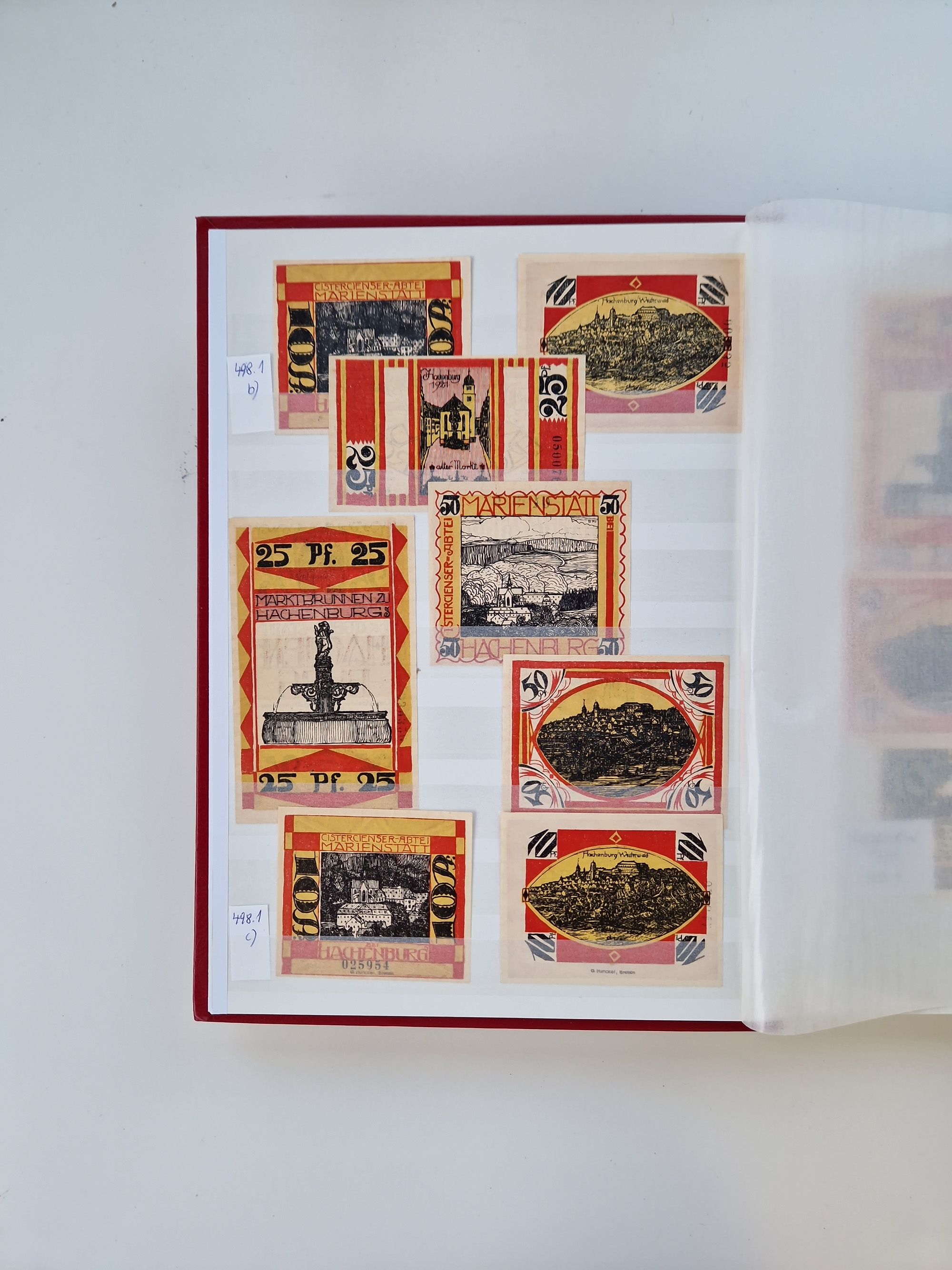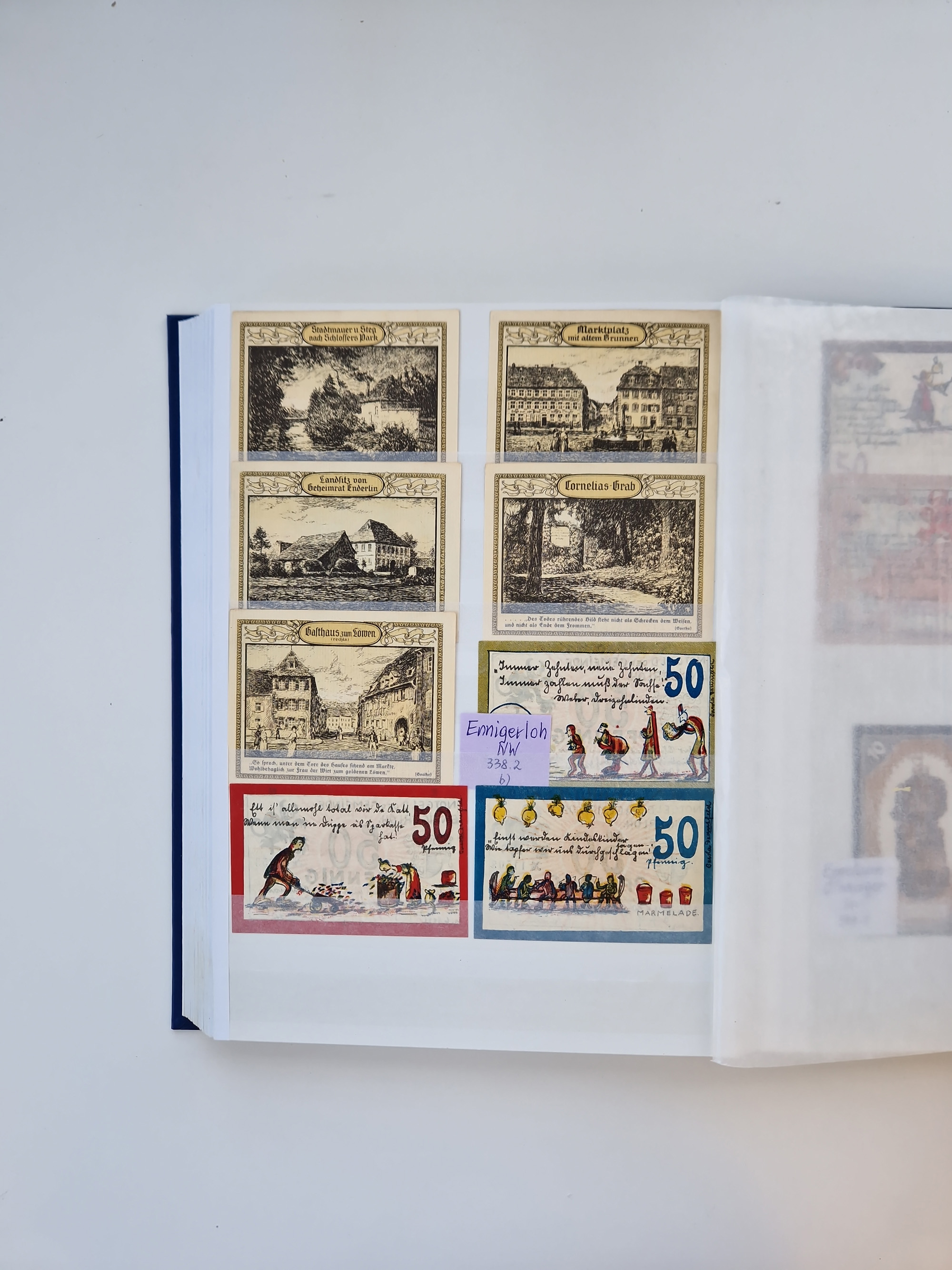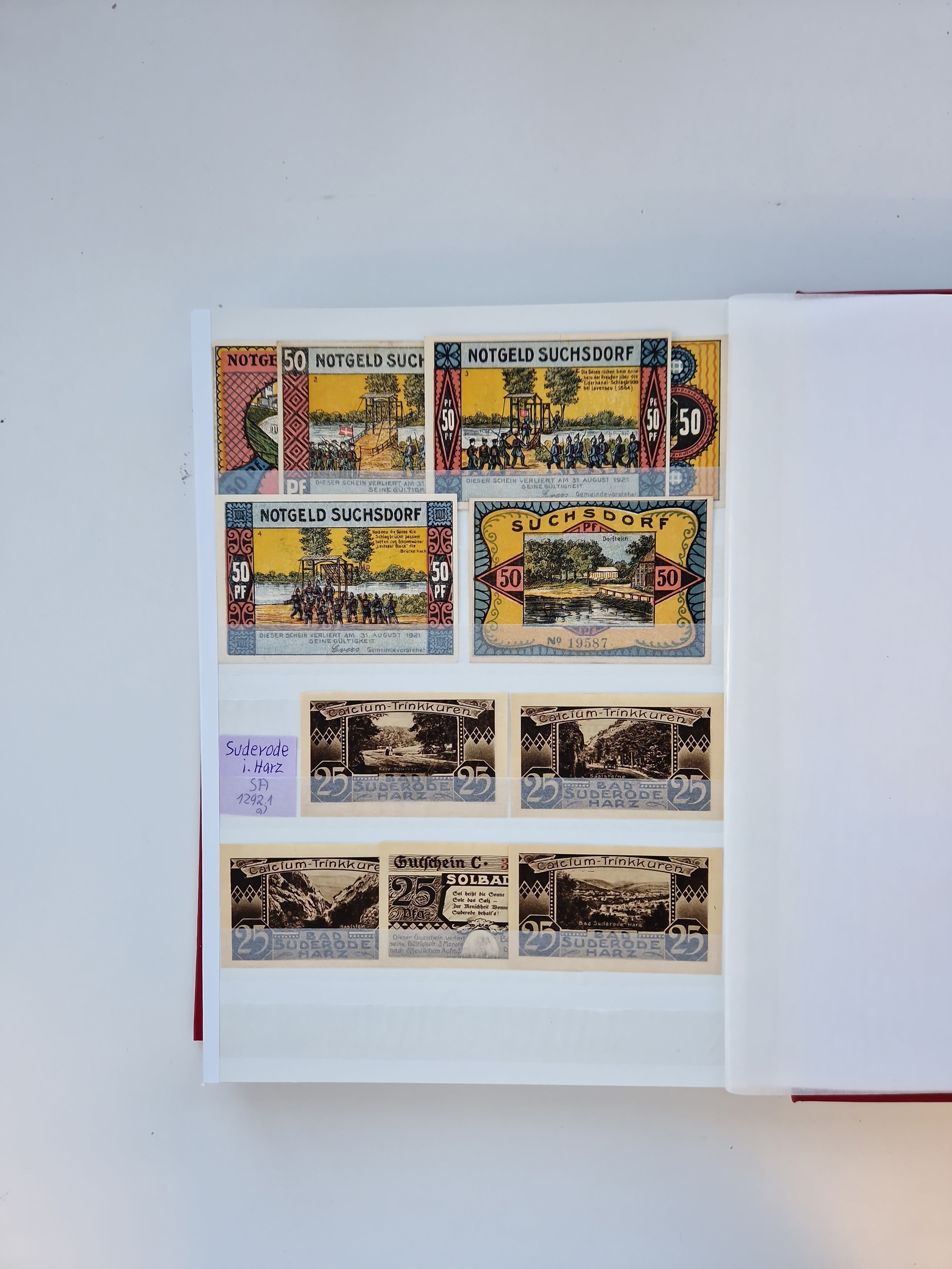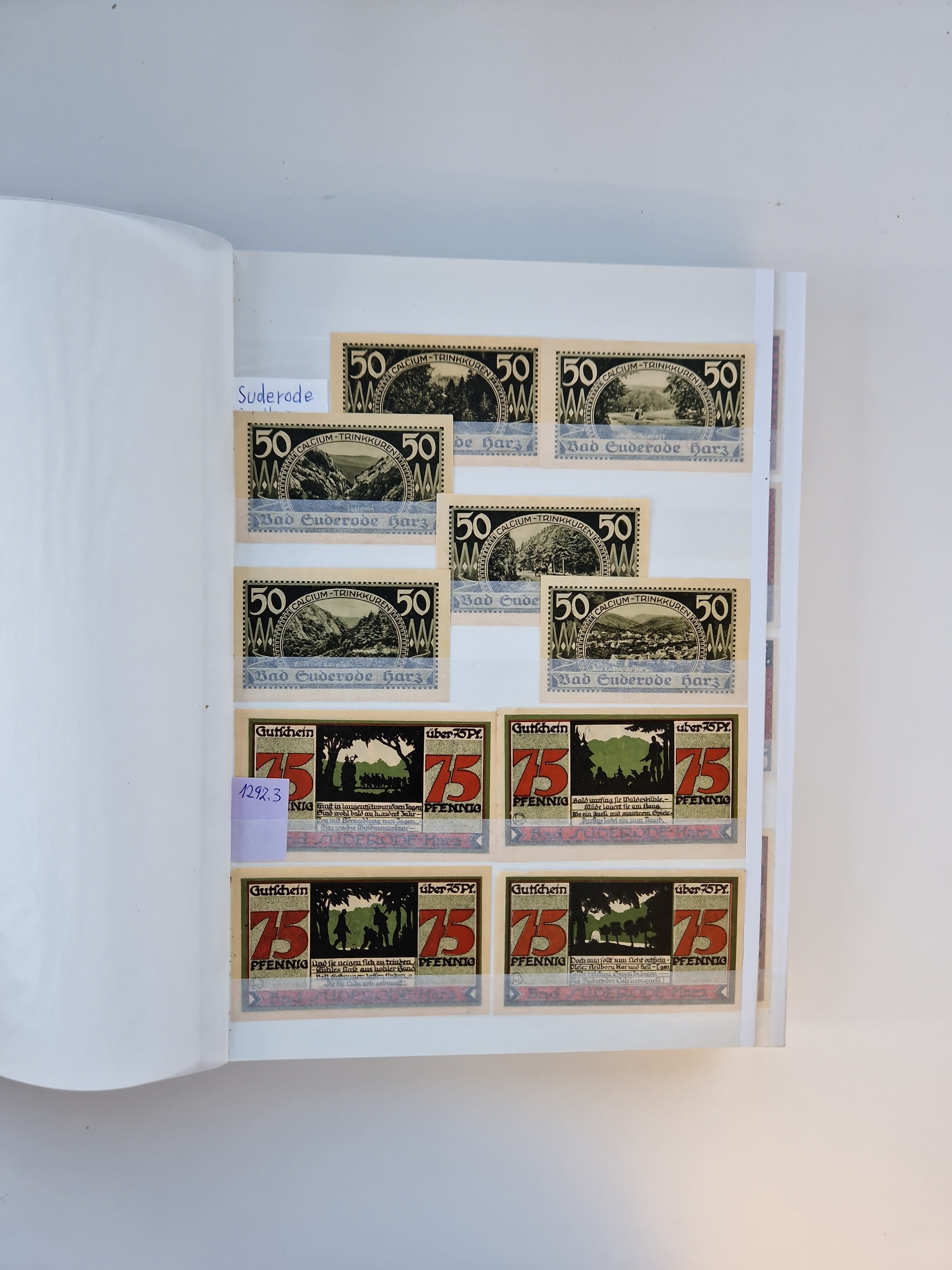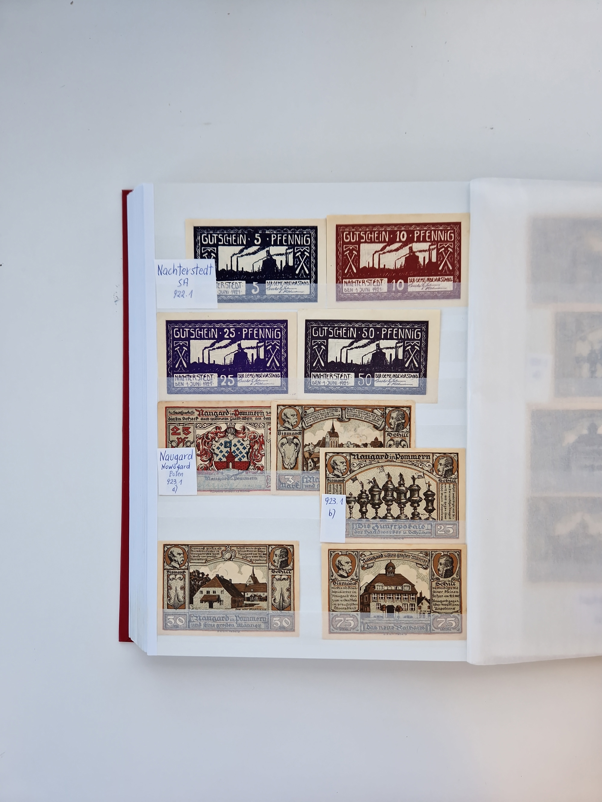 Notgeld-Serienscheine, saubere Sammlung in 16 meist dicken Steckalben, sauber nach Orten und Serien sortiert, überschlägig etwa 7/8000 Stück, dazu 4 Kataloge