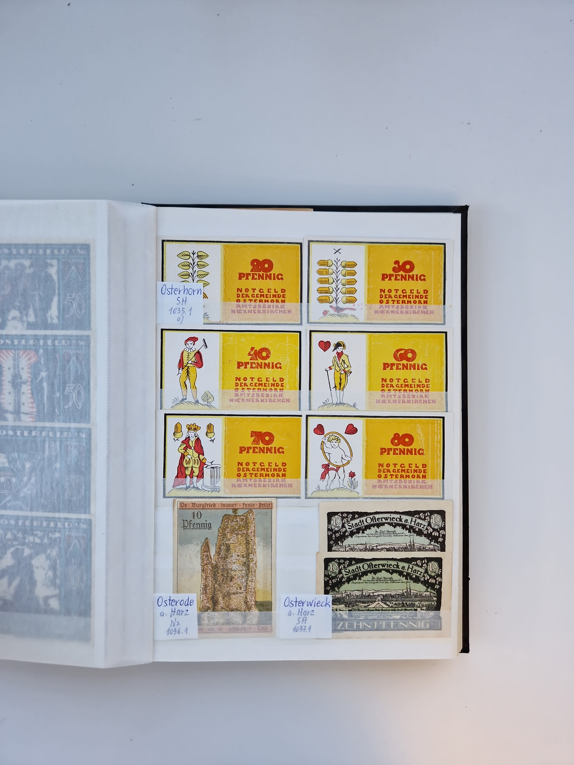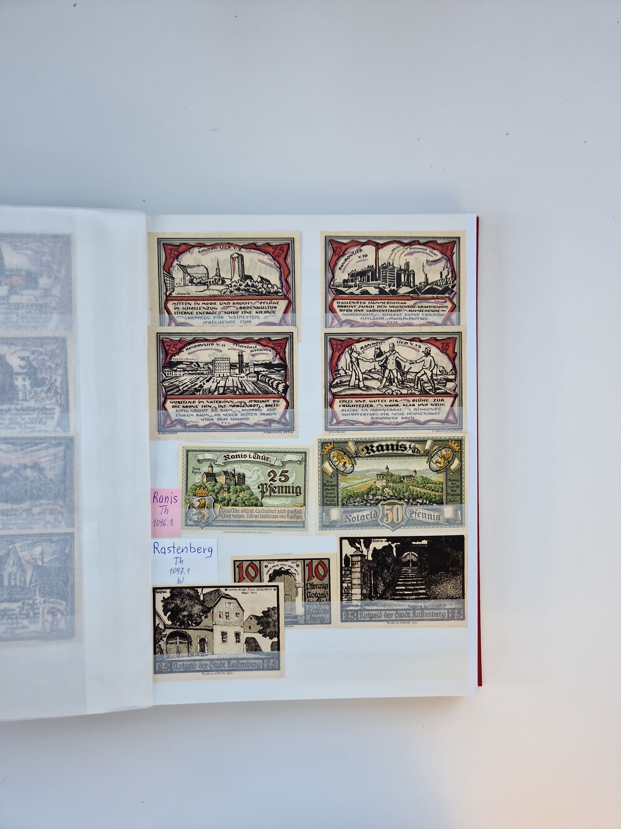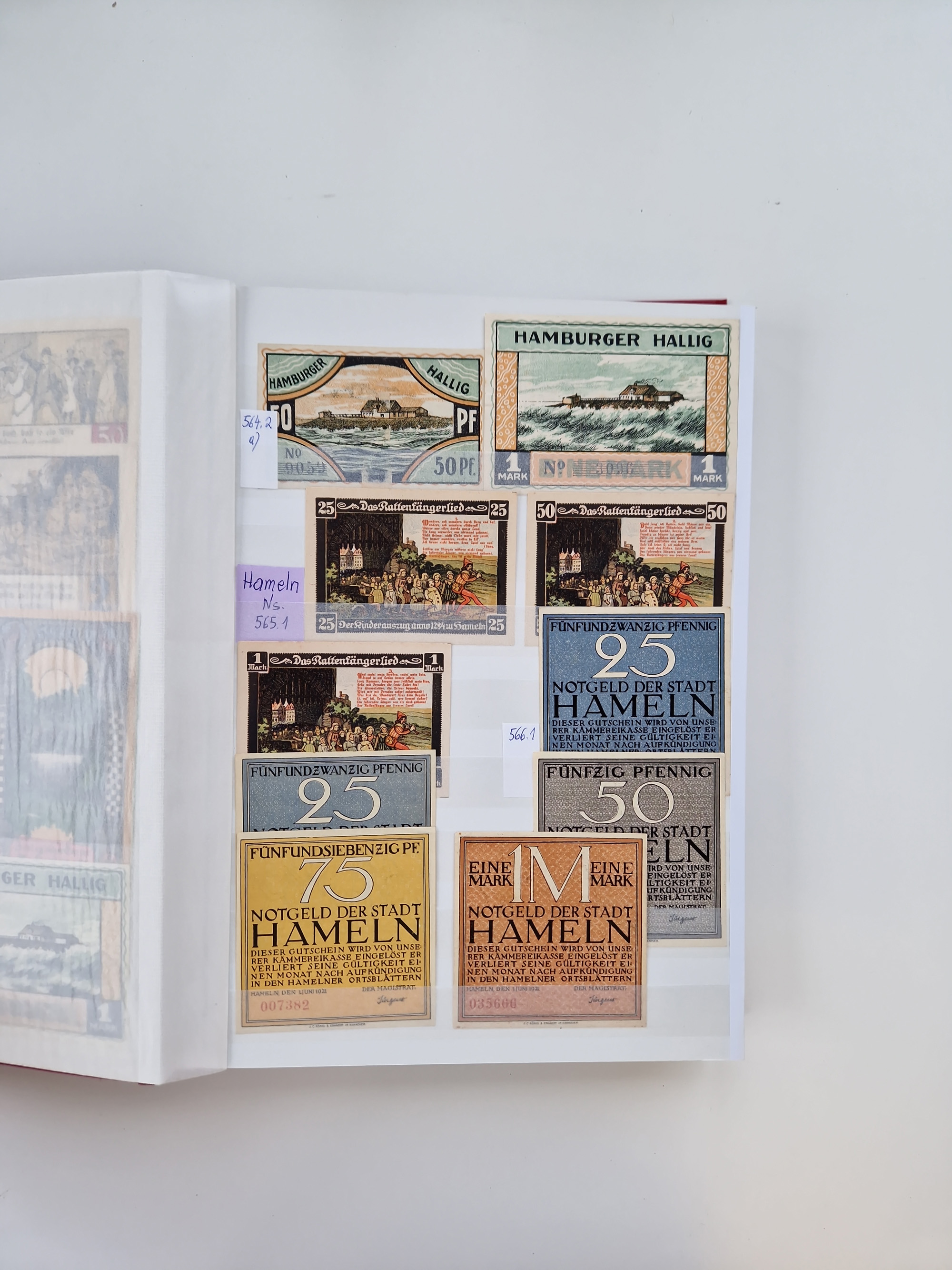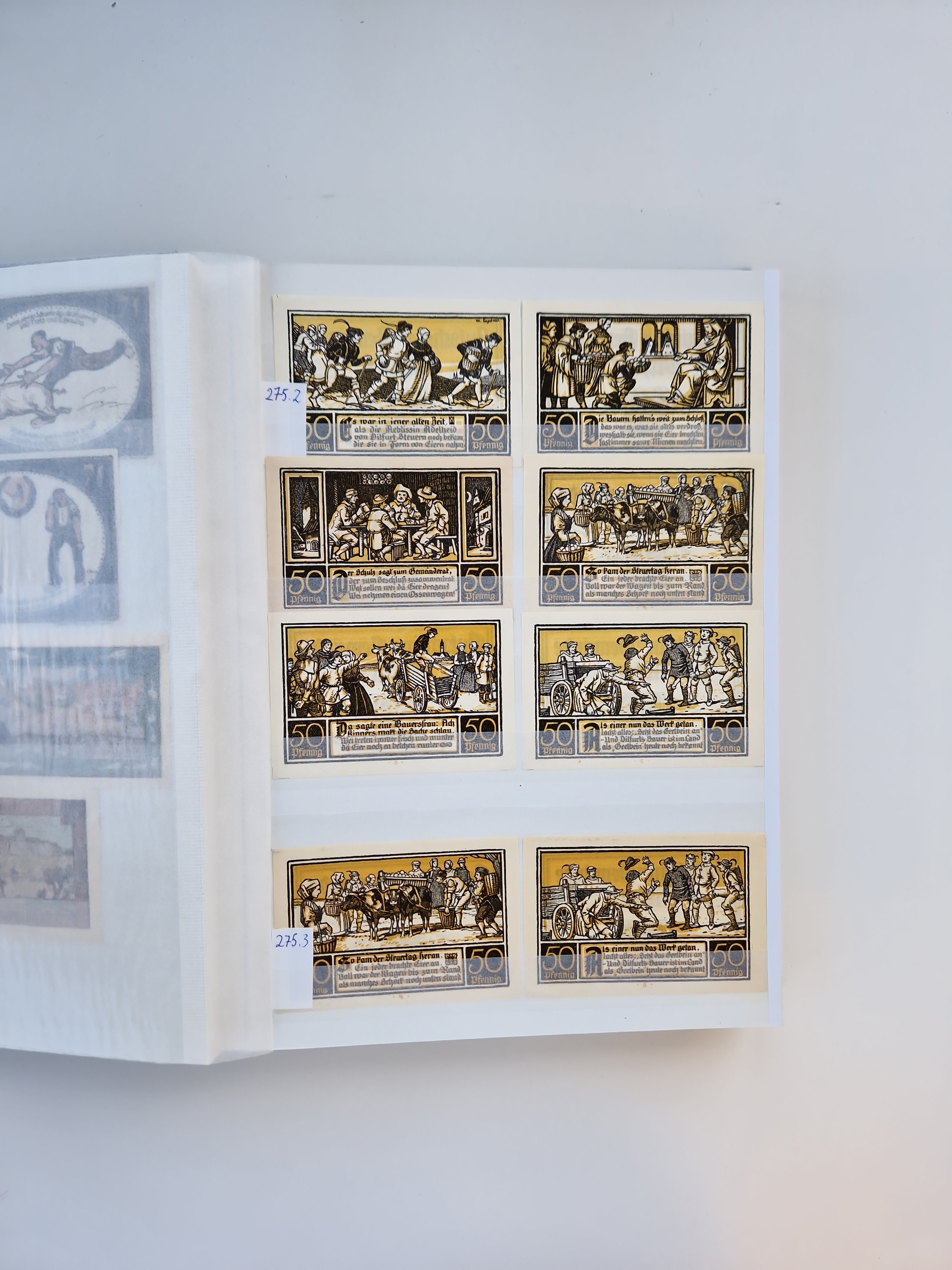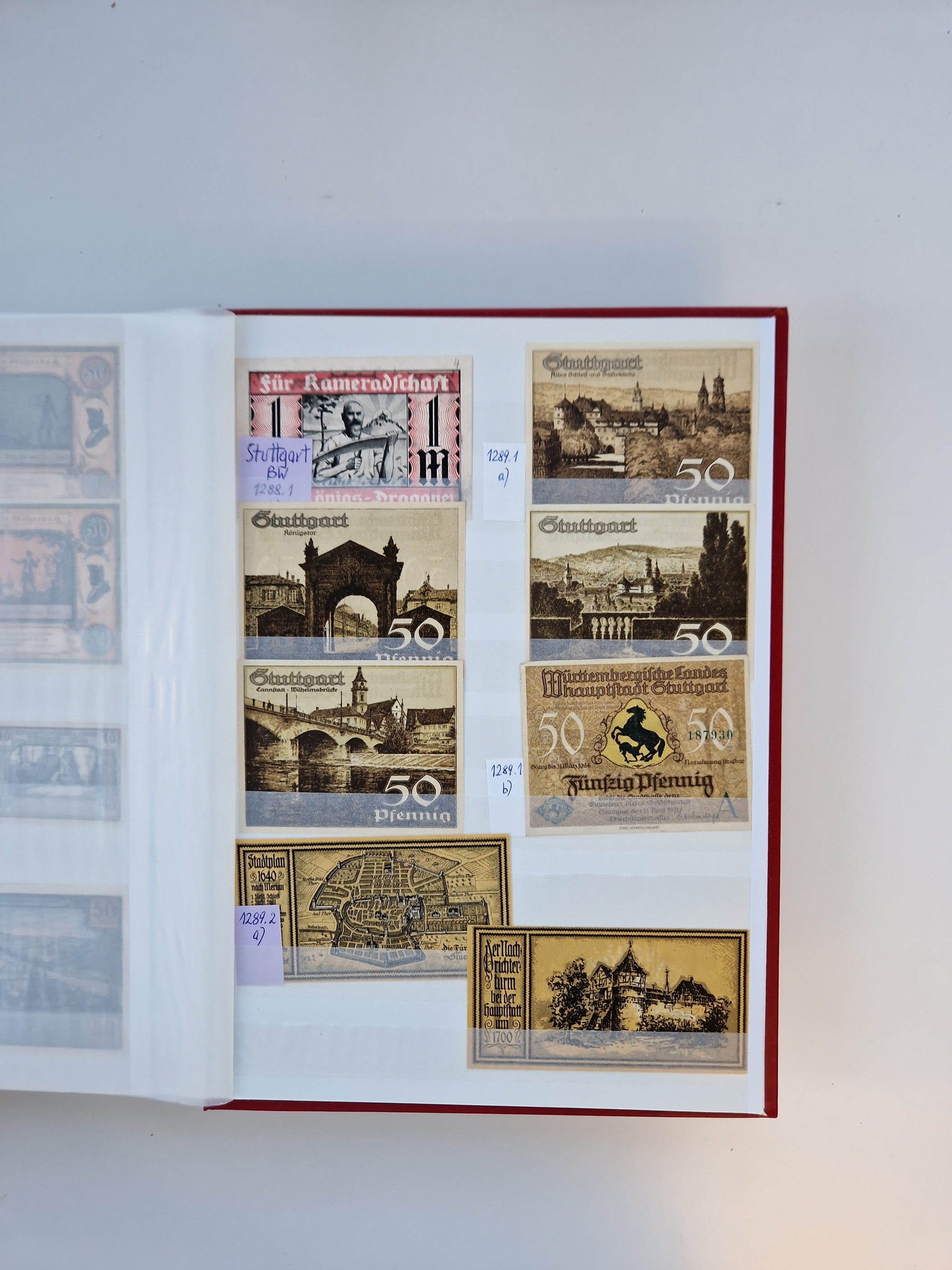 Notgeld-Serienscheine, saubere Sammlung in 16 meist dicken Steckalben, sauber nach Orten und Serien sortiert, überschlägig etwa 7/8000 Stück, dazu 4 Kataloge