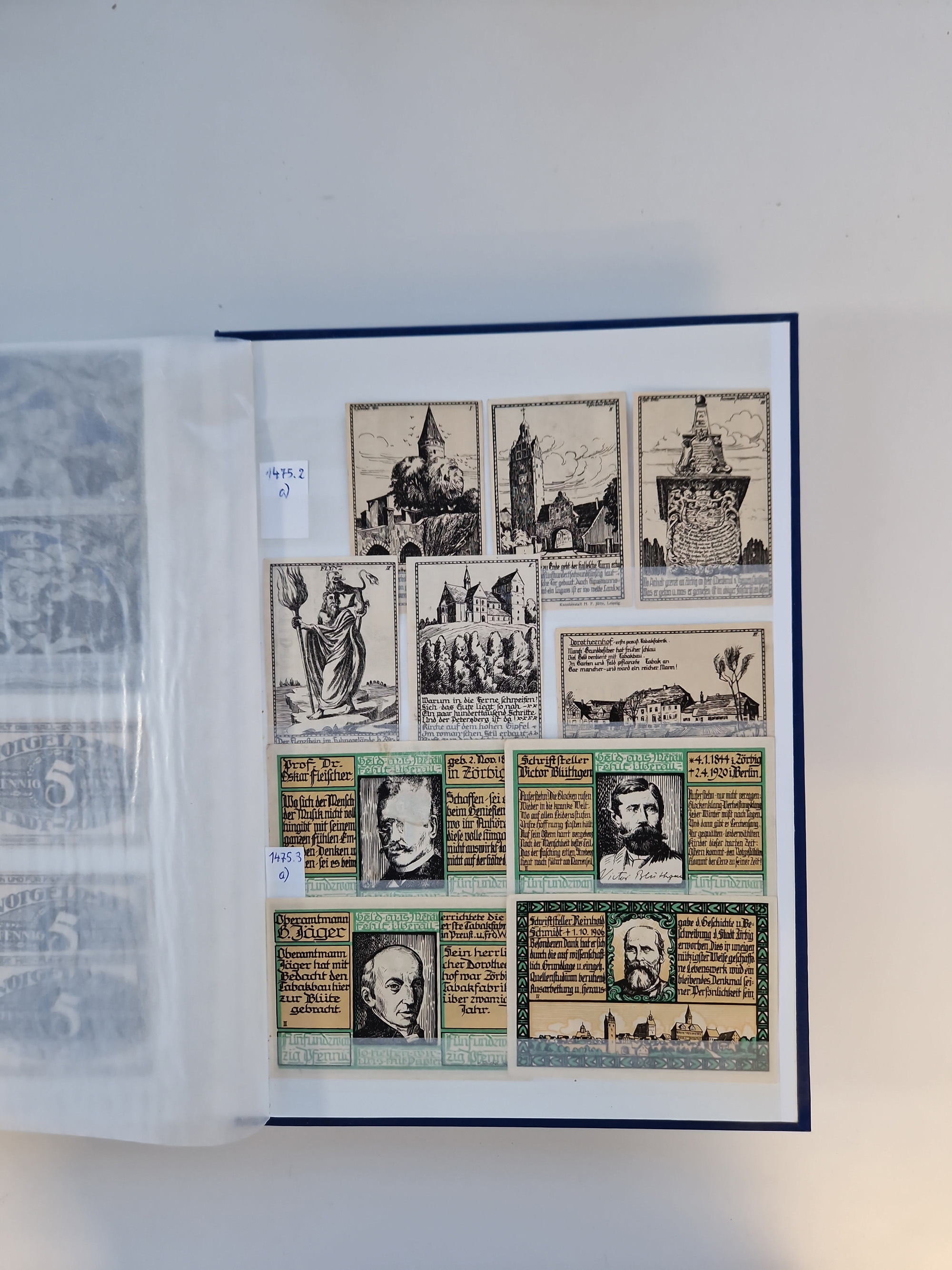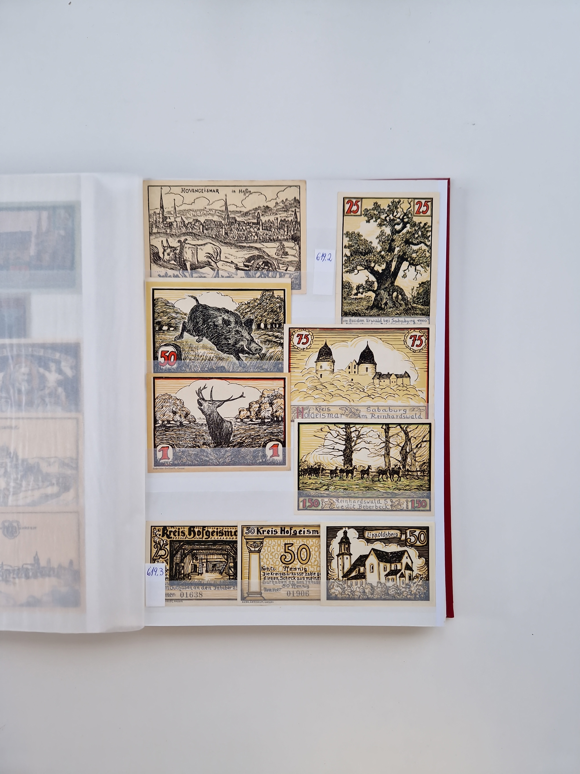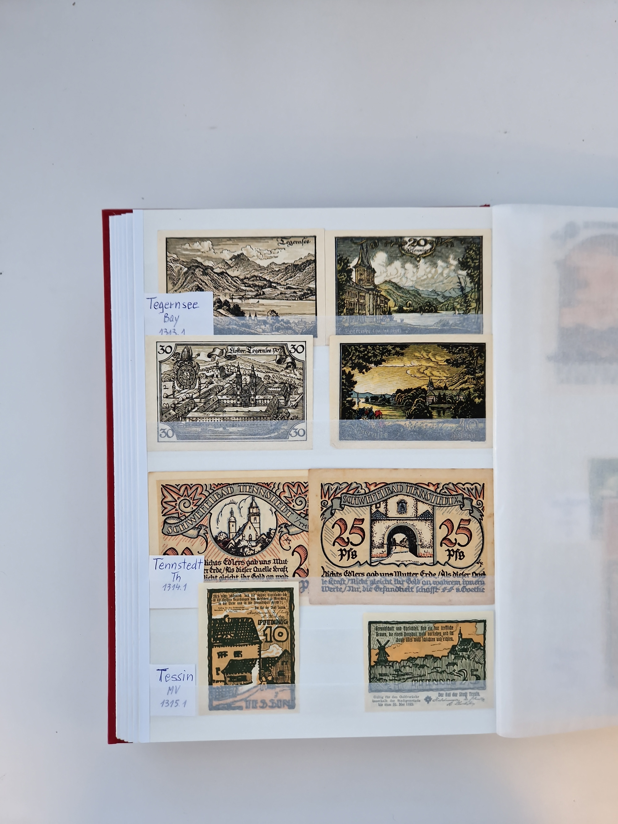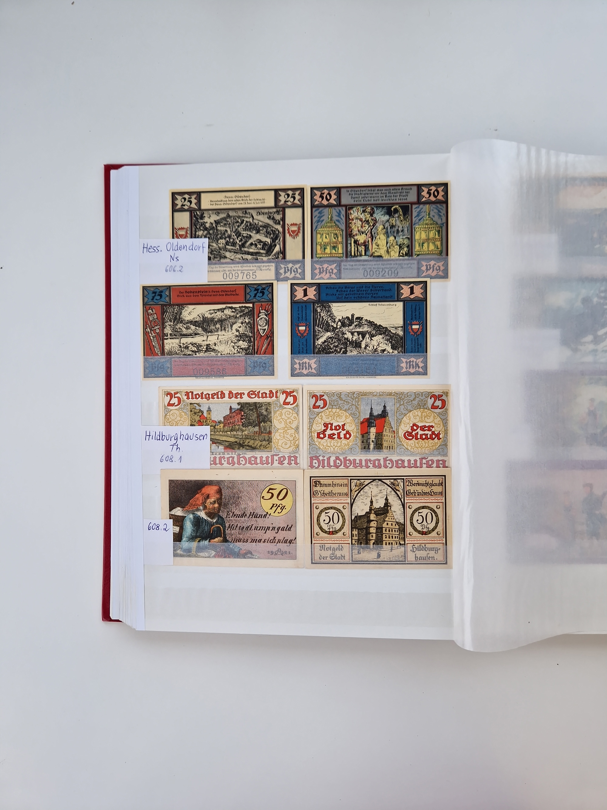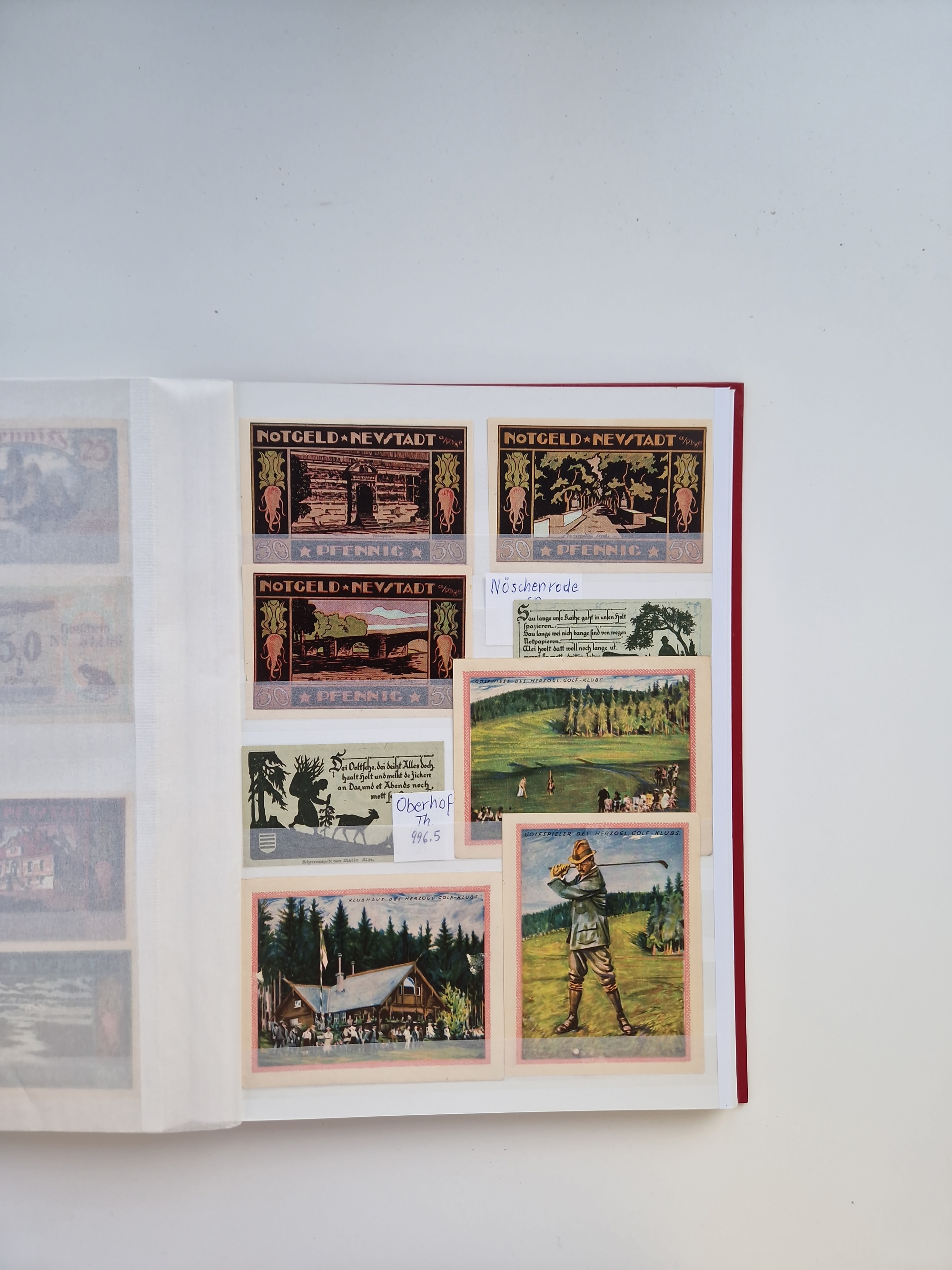 Notgeld-Serienscheine, saubere Sammlung in 16 meist dicken Steckalben, sauber nach Orten und Serien sortiert, überschlägig etwa 7/8000 Stück, dazu 4 Kataloge