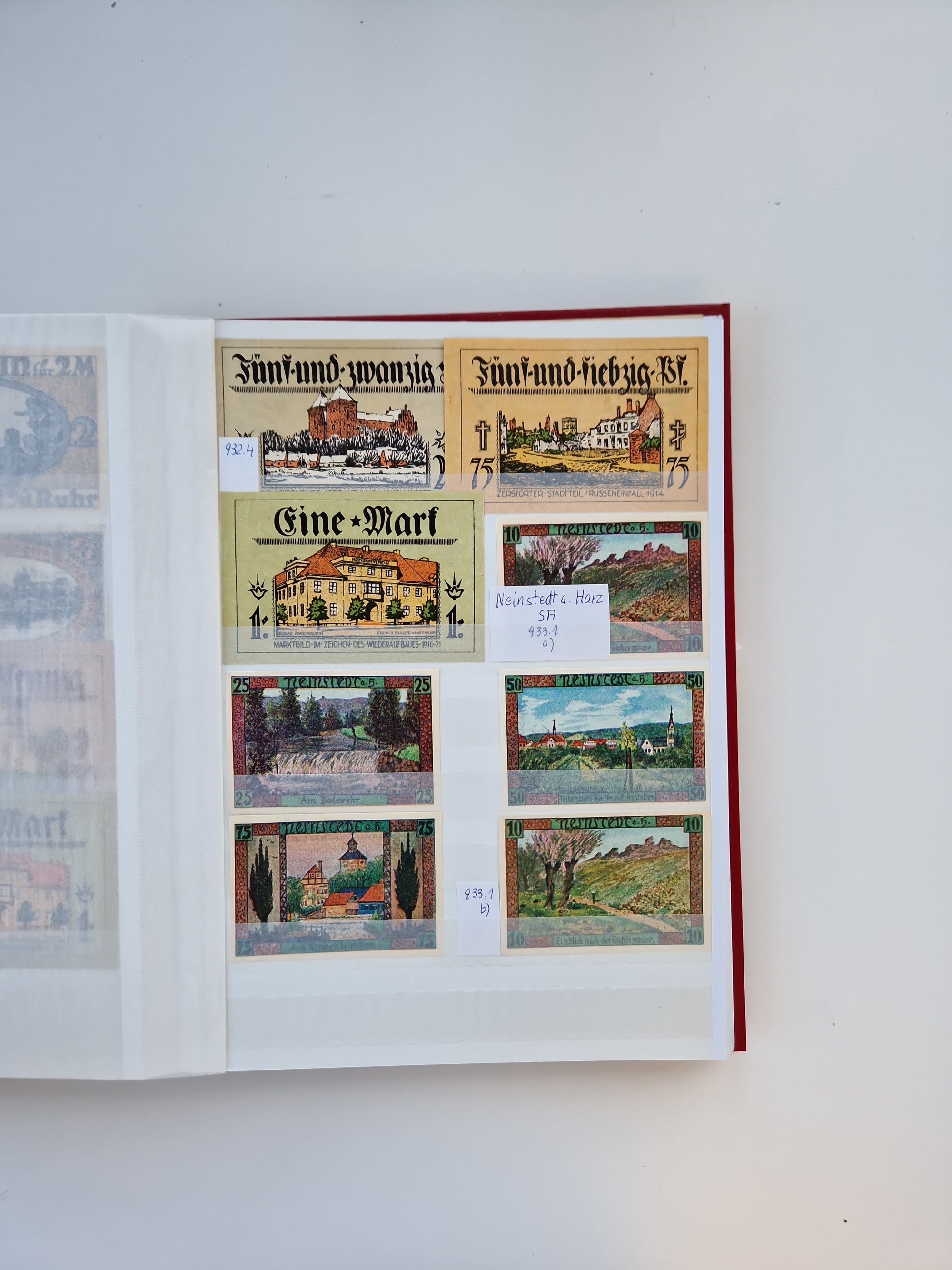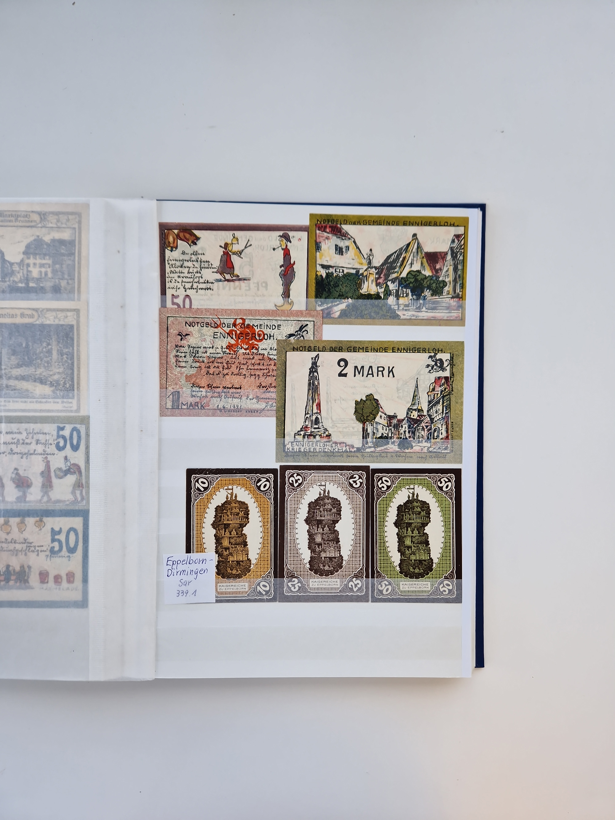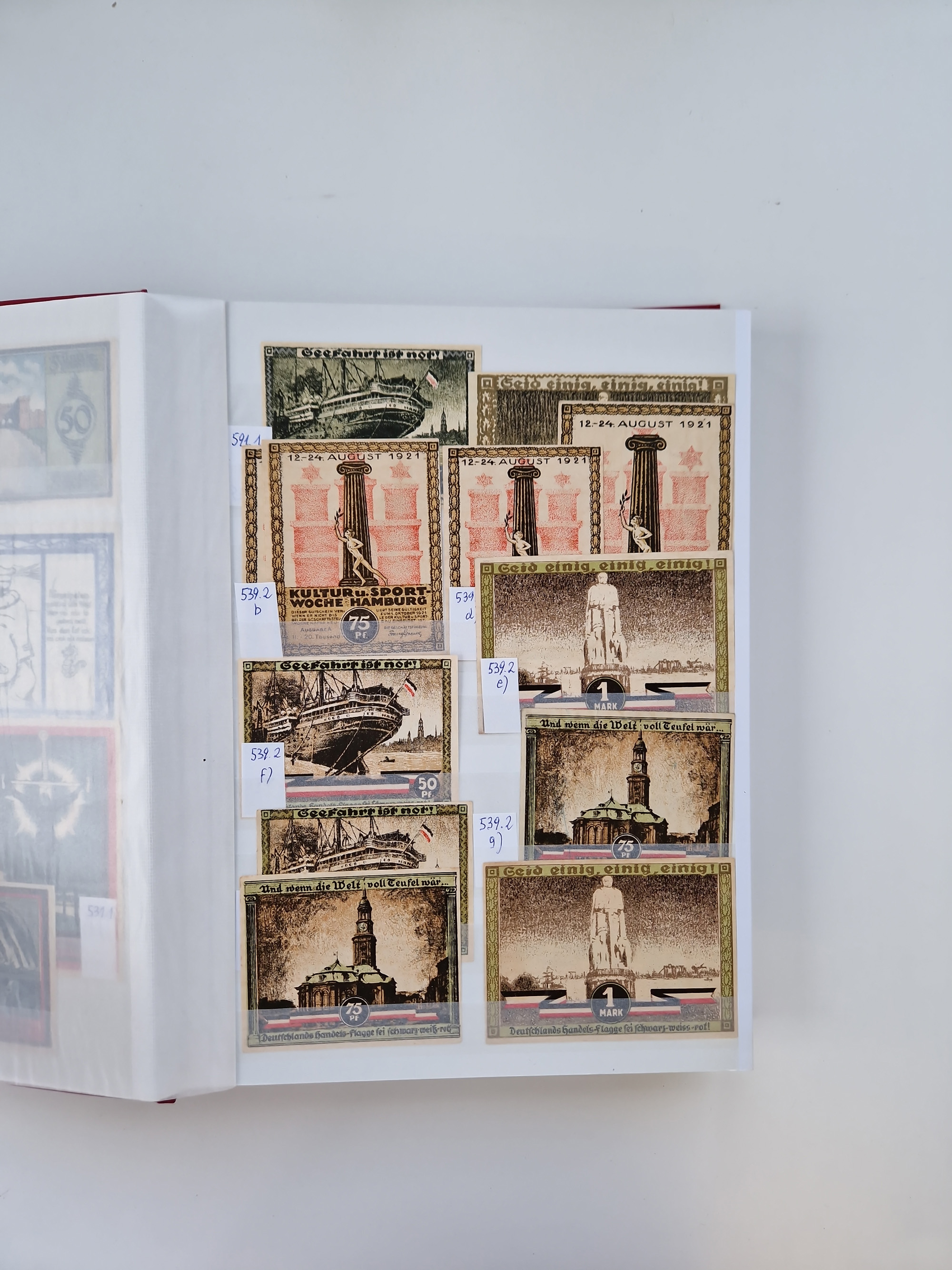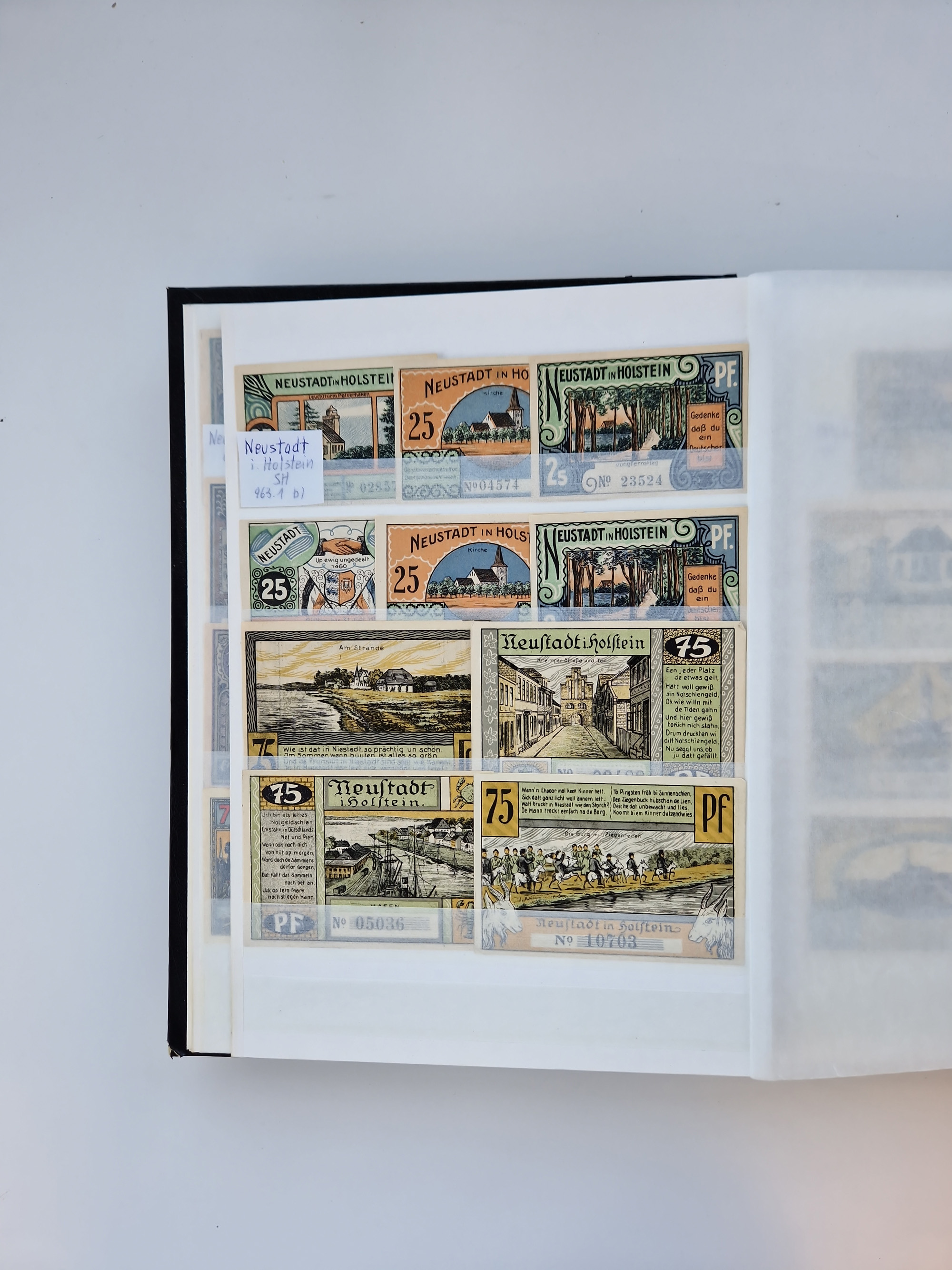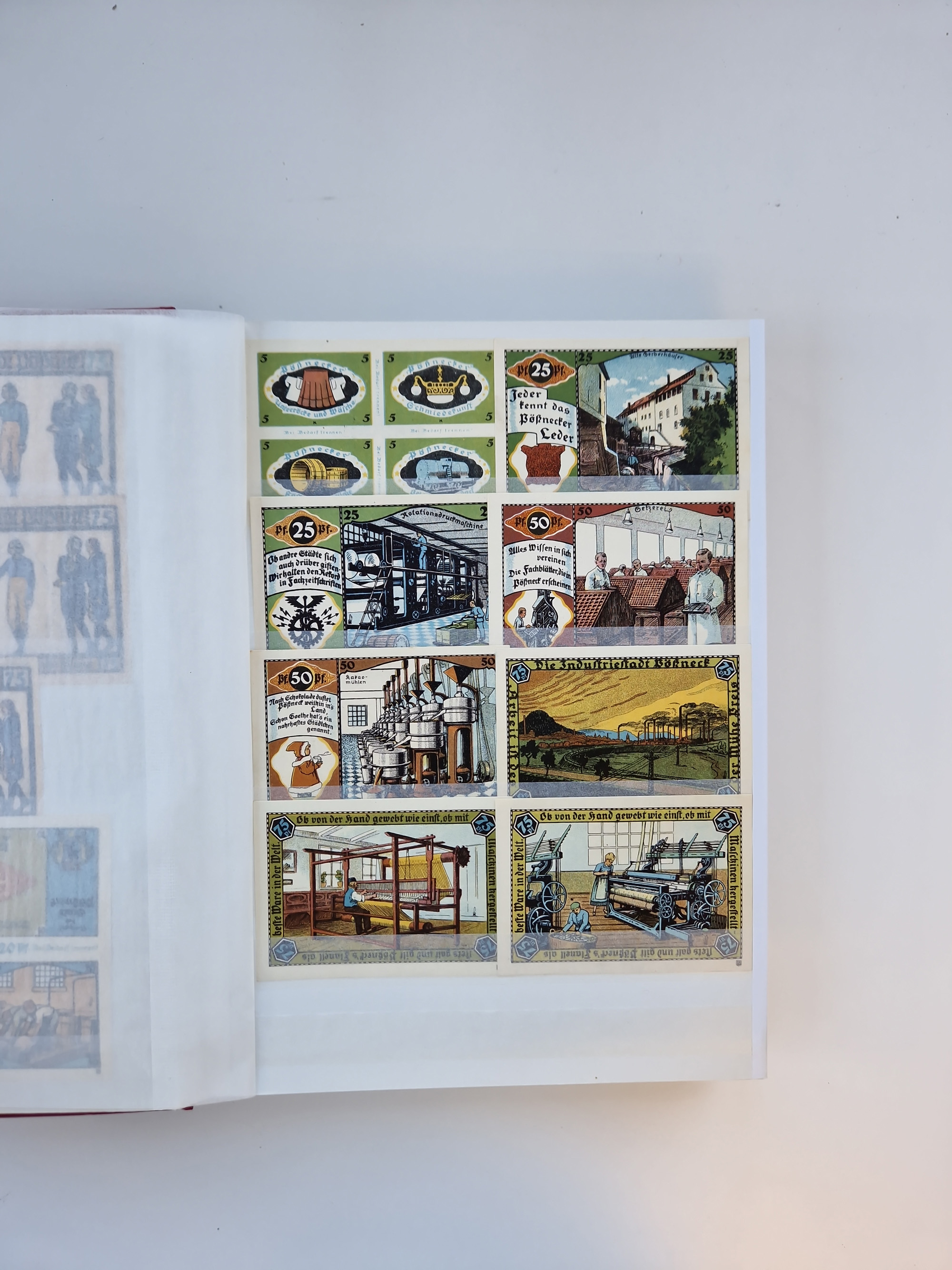 Notgeld-Serienscheine, saubere Sammlung in 16 meist dicken Steckalben, sauber nach Orten und Serien sortiert, überschlägig etwa 7/8000 Stück, dazu 4 Kataloge