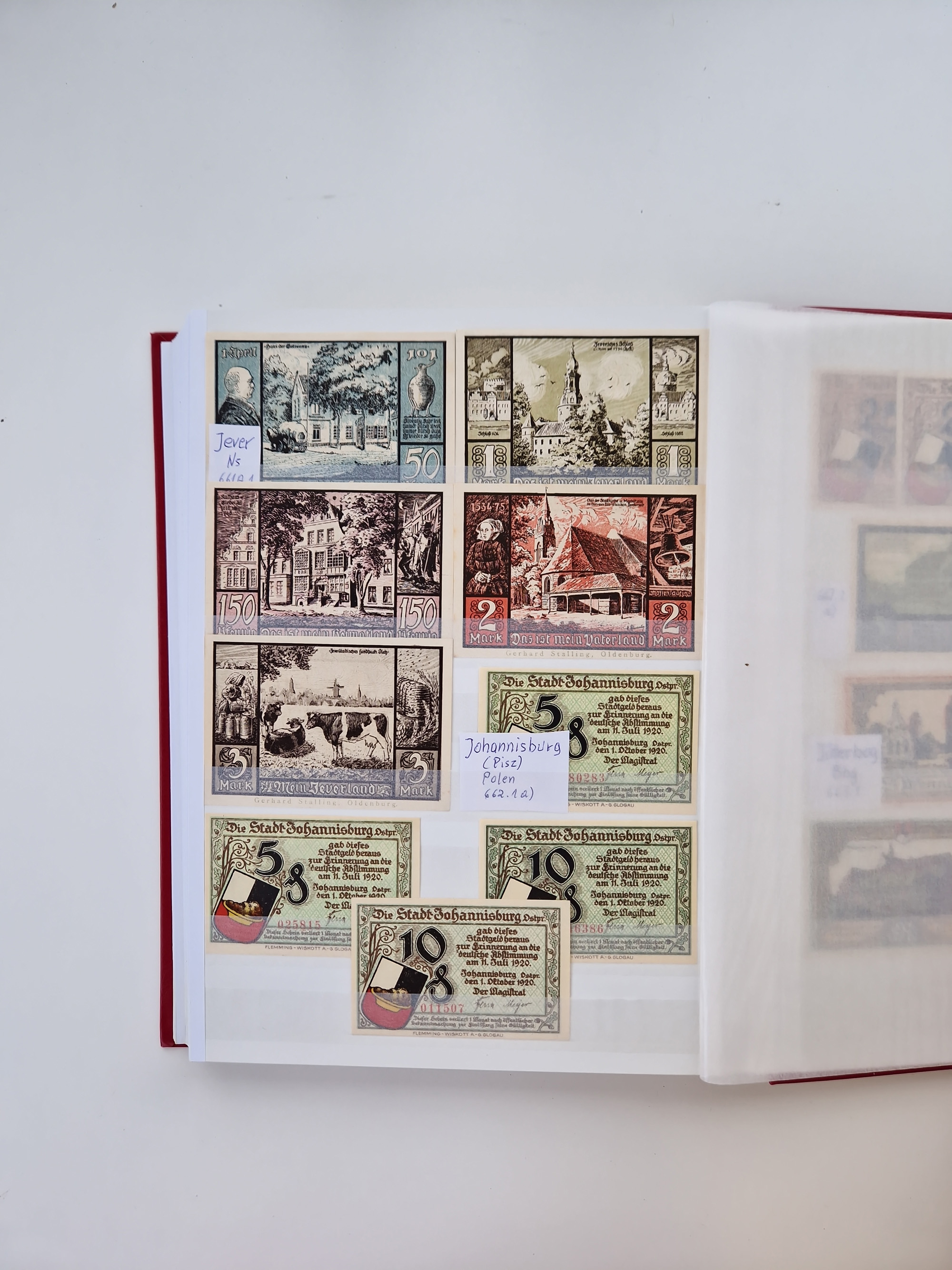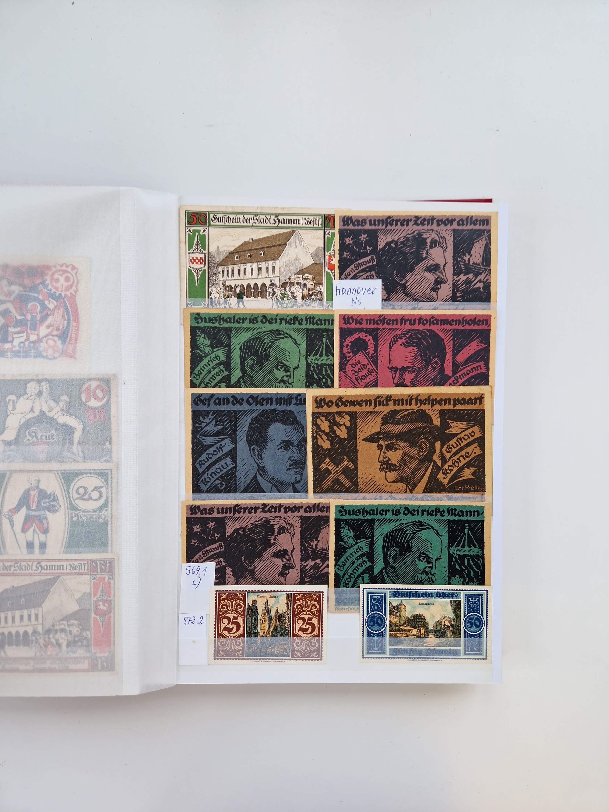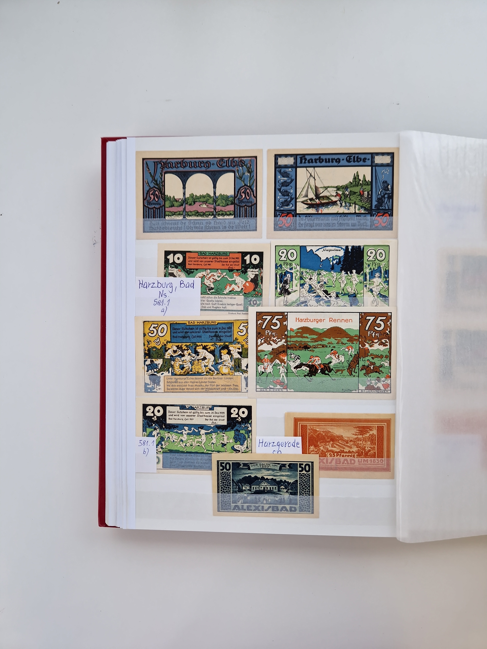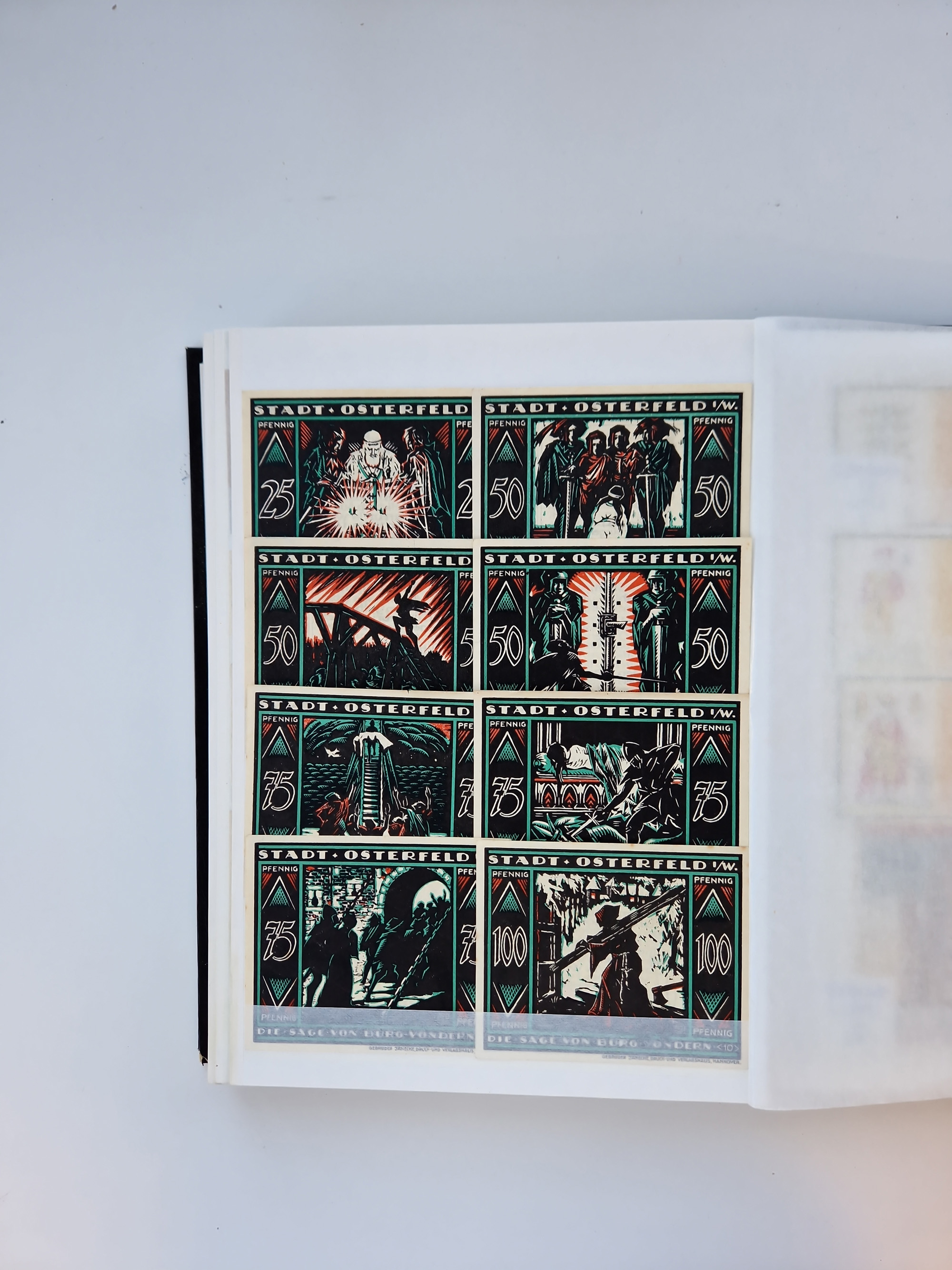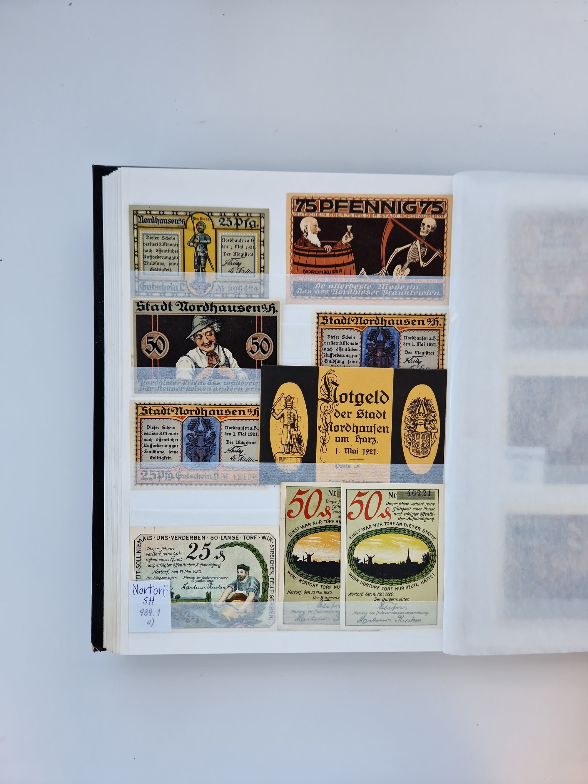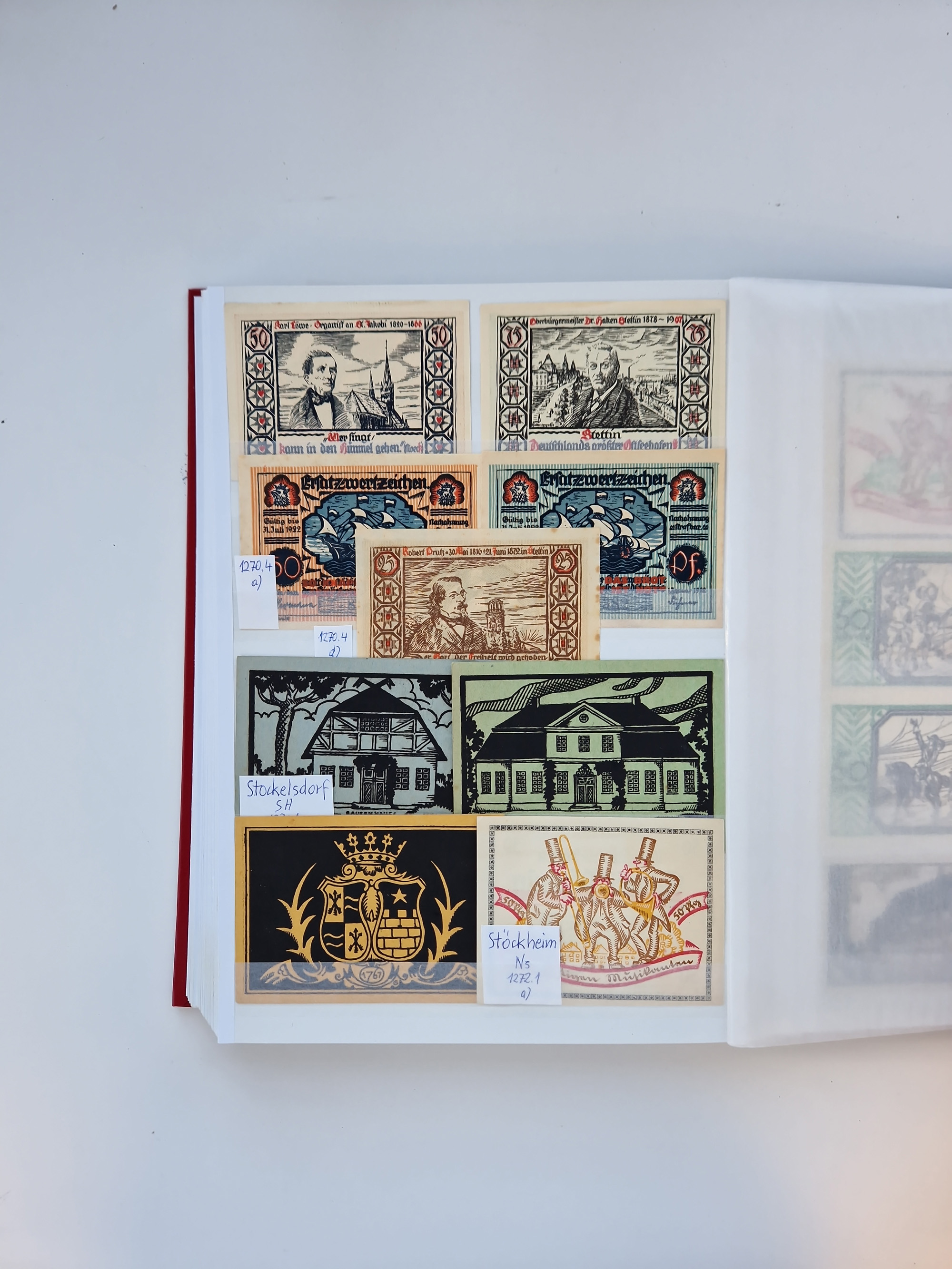 Notgeld-Serienscheine, saubere Sammlung in 16 meist dicken Steckalben, sauber nach Orten und Serien sortiert, überschlägig etwa 7/8000 Stück, dazu 4 Kataloge