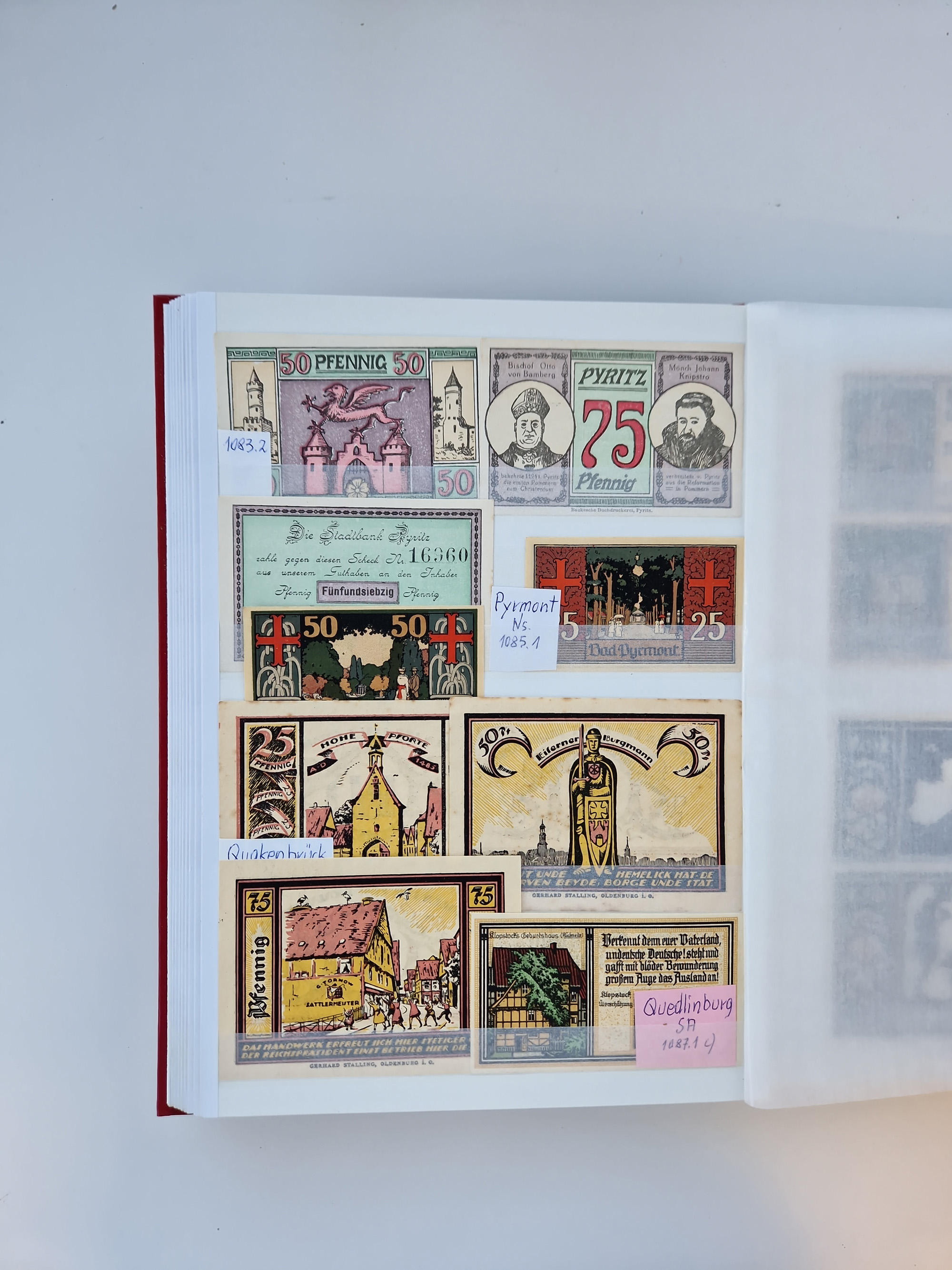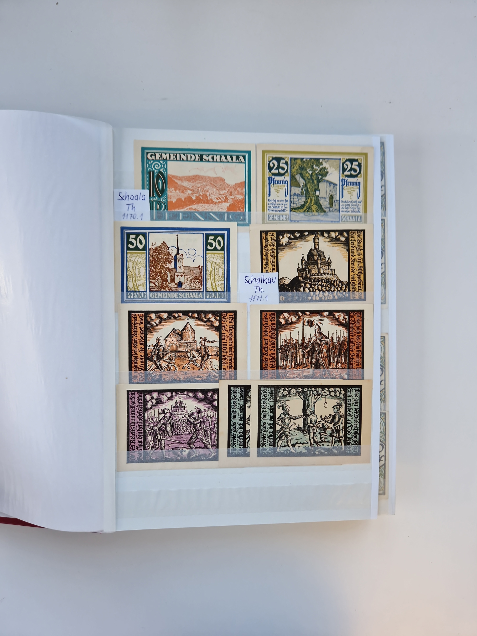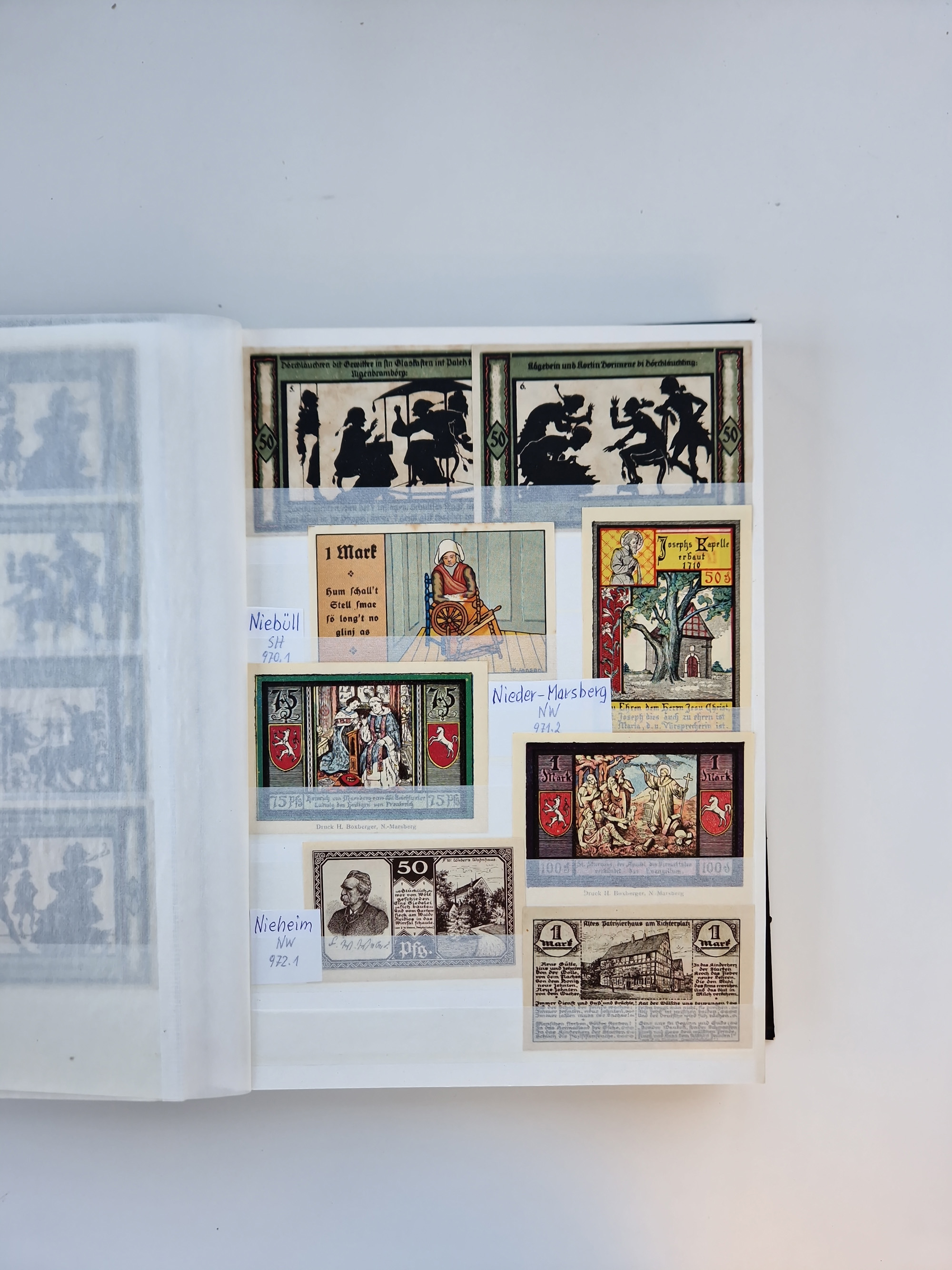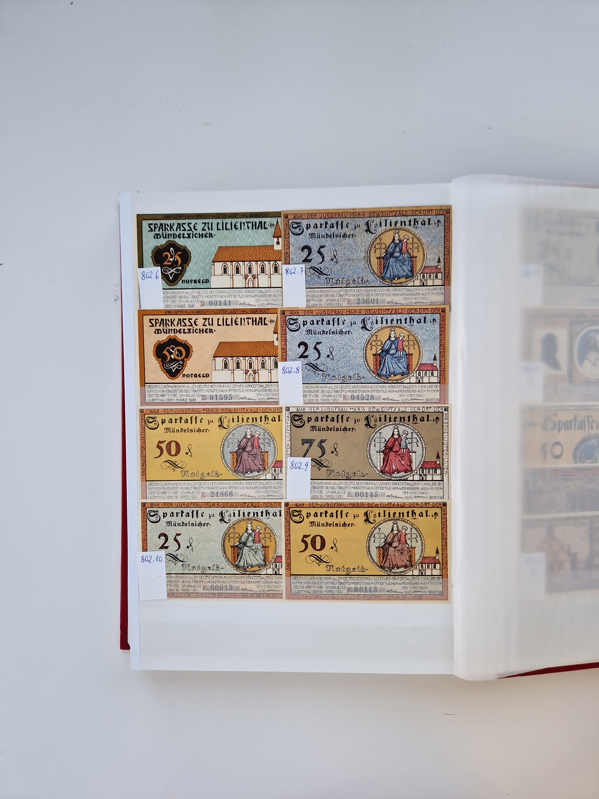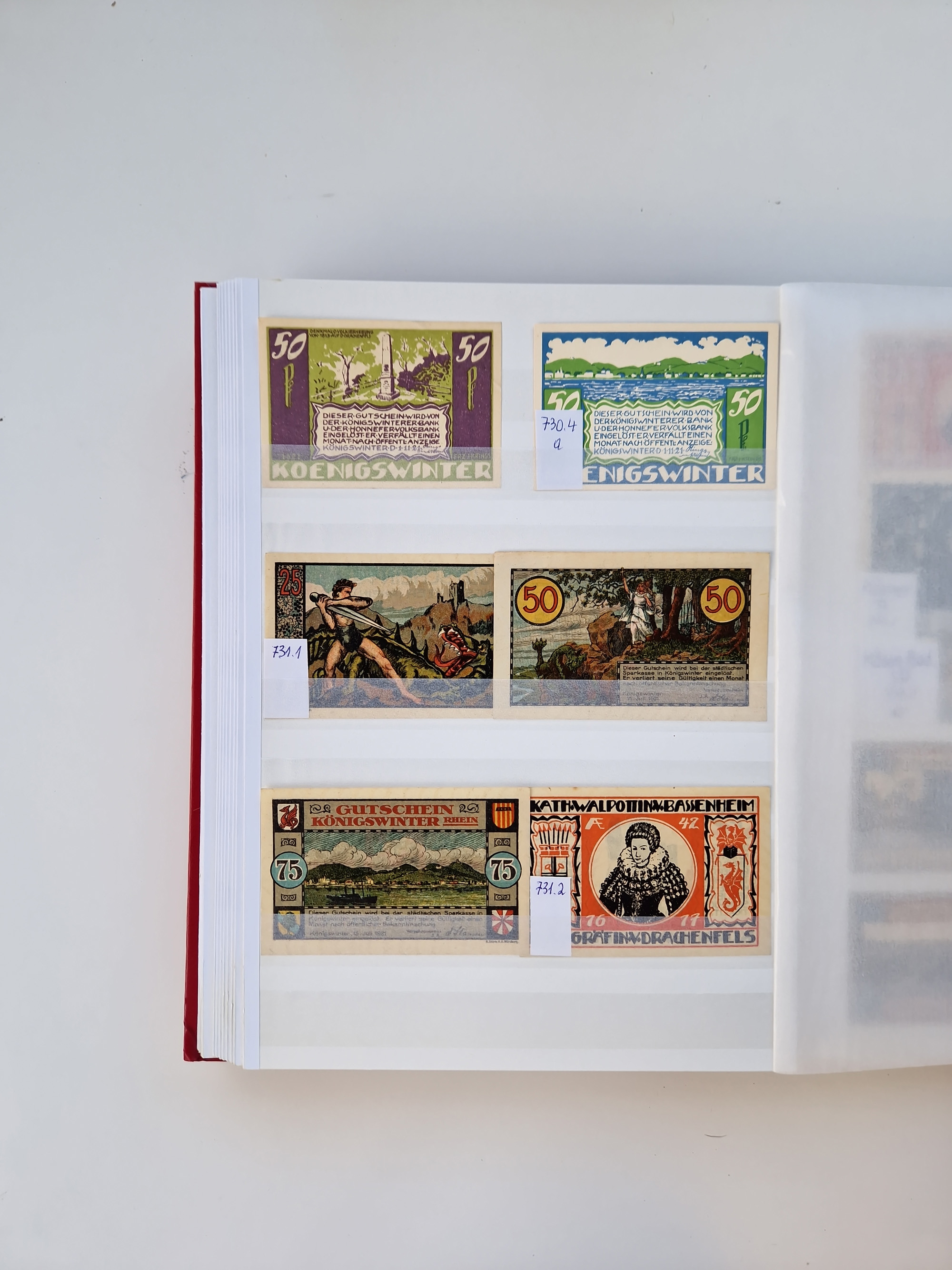 Notgeld-Serienscheine, saubere Sammlung in 16 meist dicken Steckalben, sauber nach Orten und Serien sortiert, überschlägig etwa 7/8000 Stück, dazu 4 Kataloge