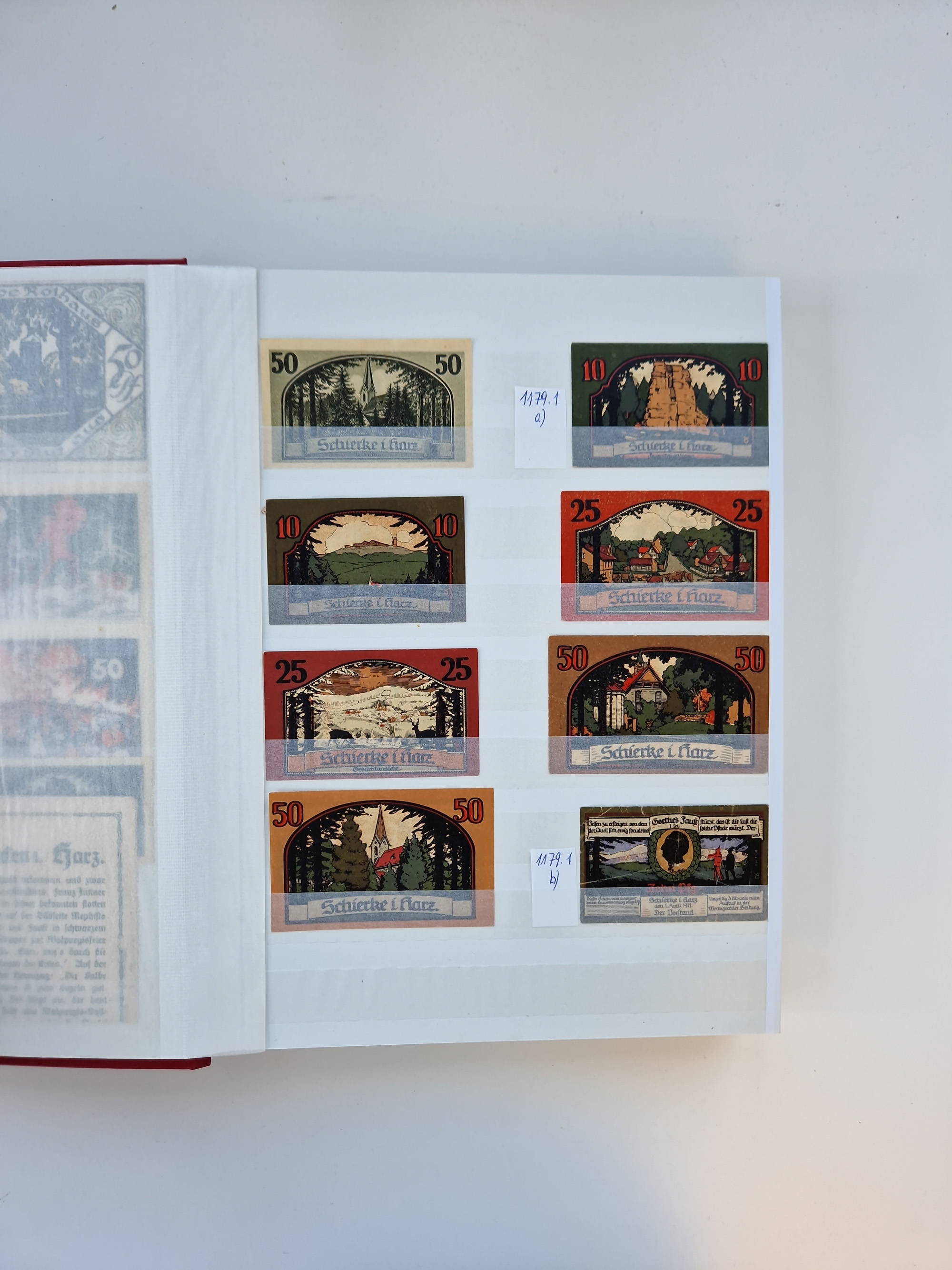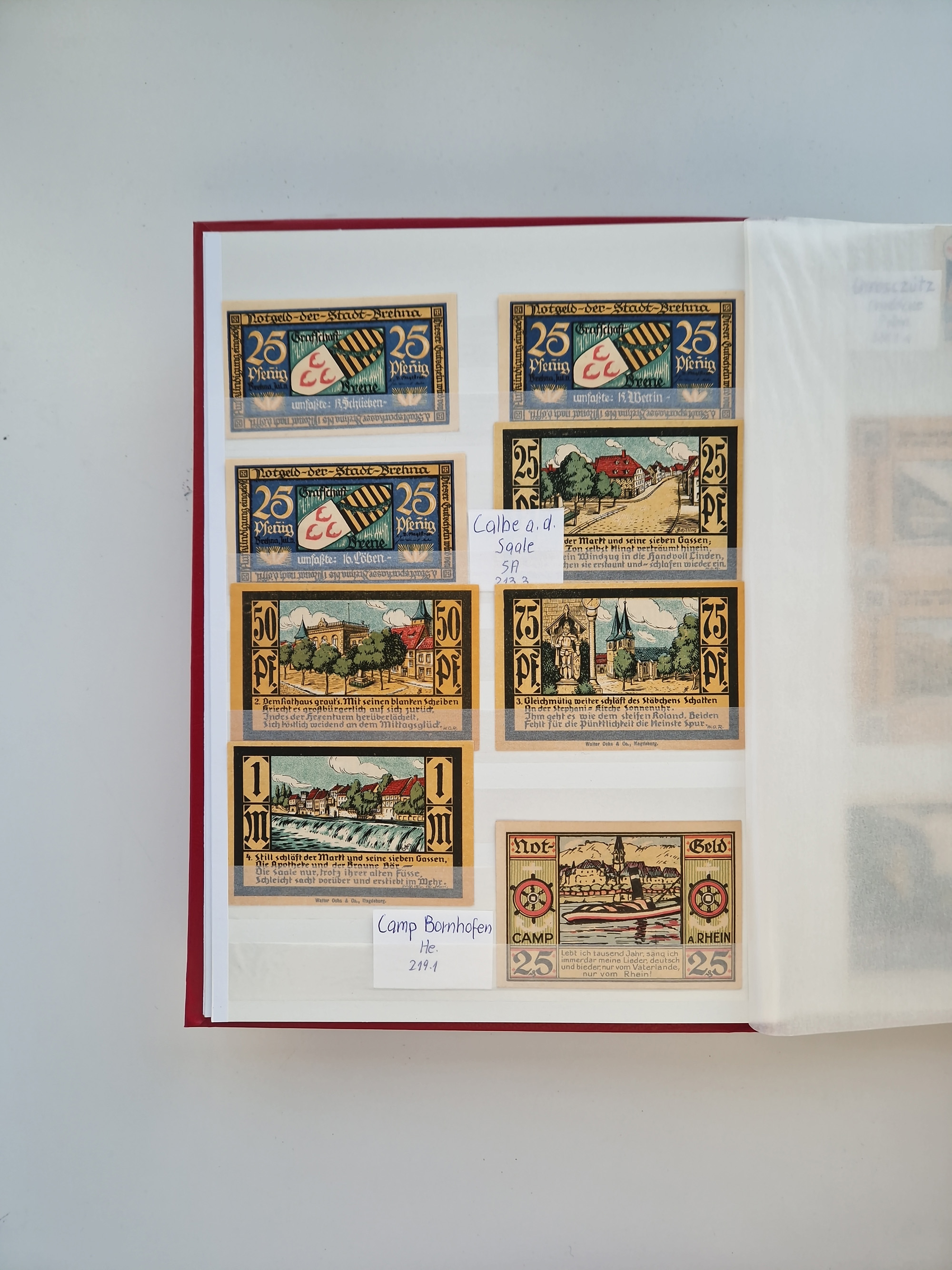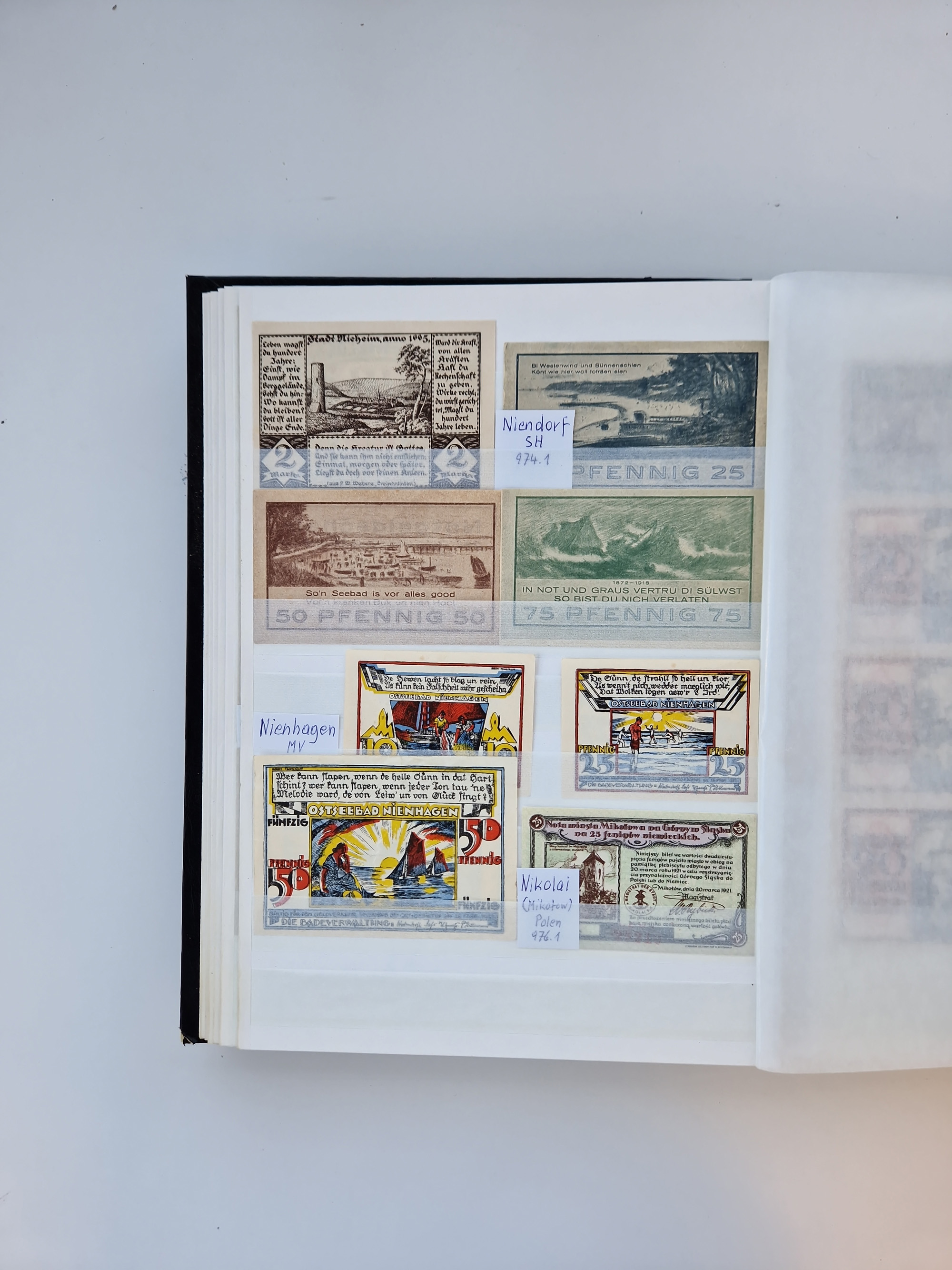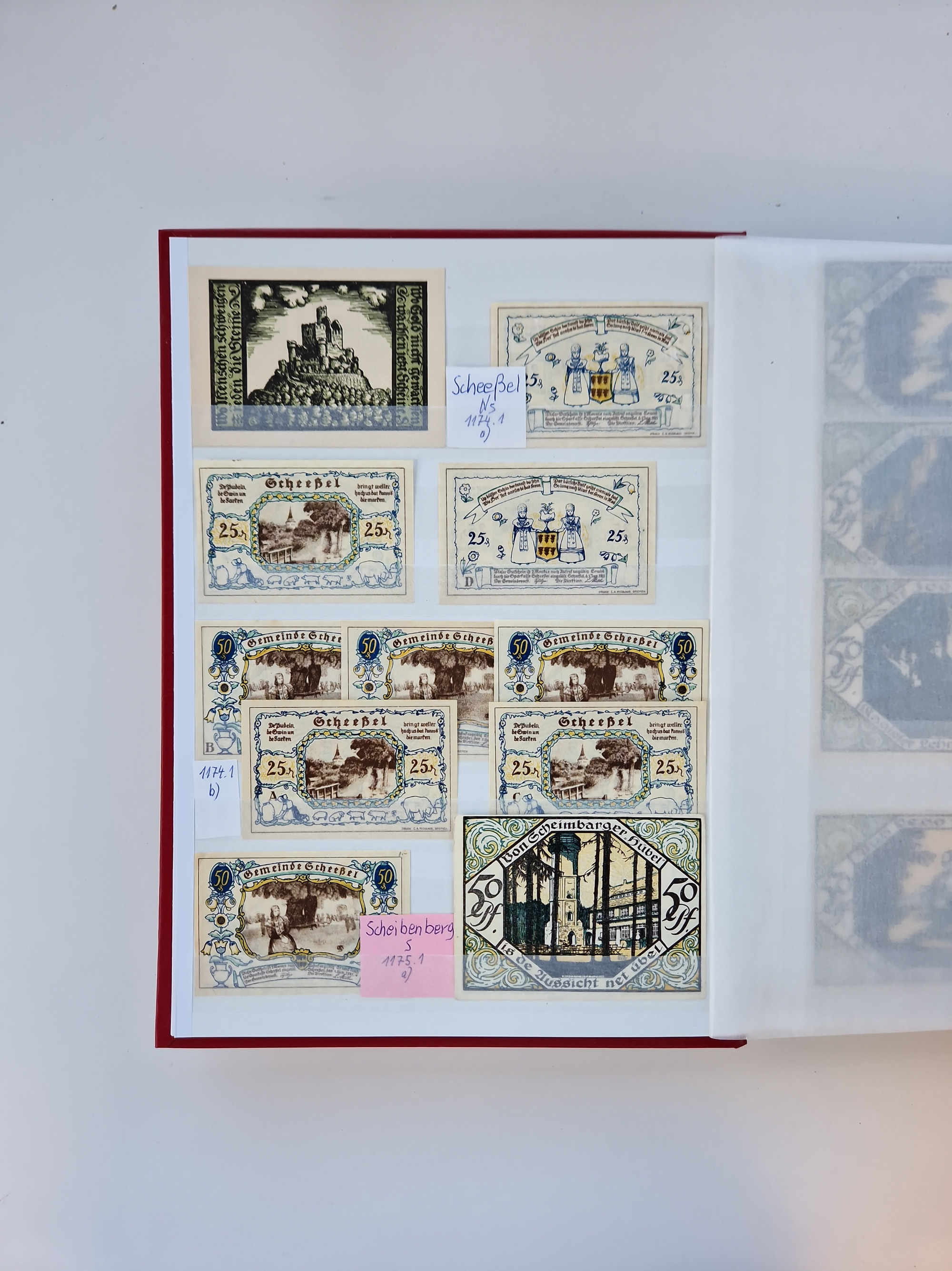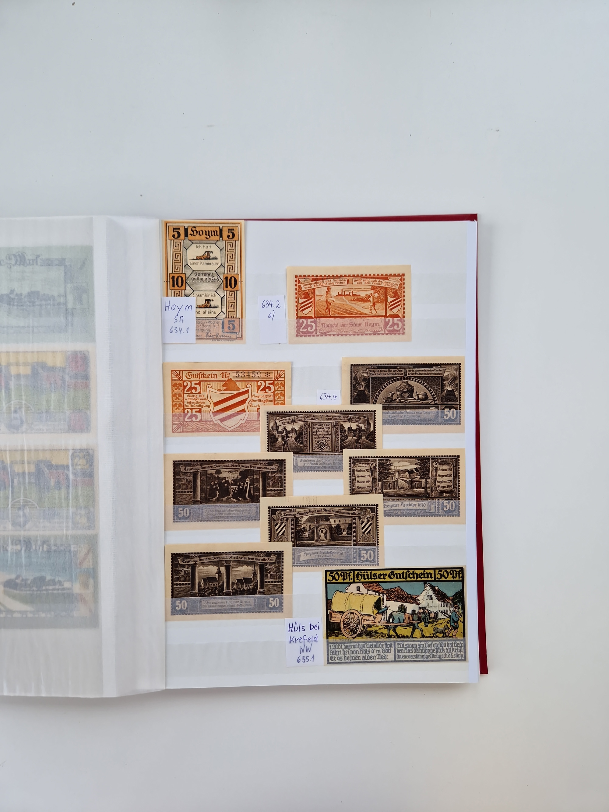 Notgeld-Serienscheine, saubere Sammlung in 16 meist dicken Steckalben, sauber nach Orten und Serien sortiert, überschlägig etwa 7/8000 Stück, dazu 4 Kataloge