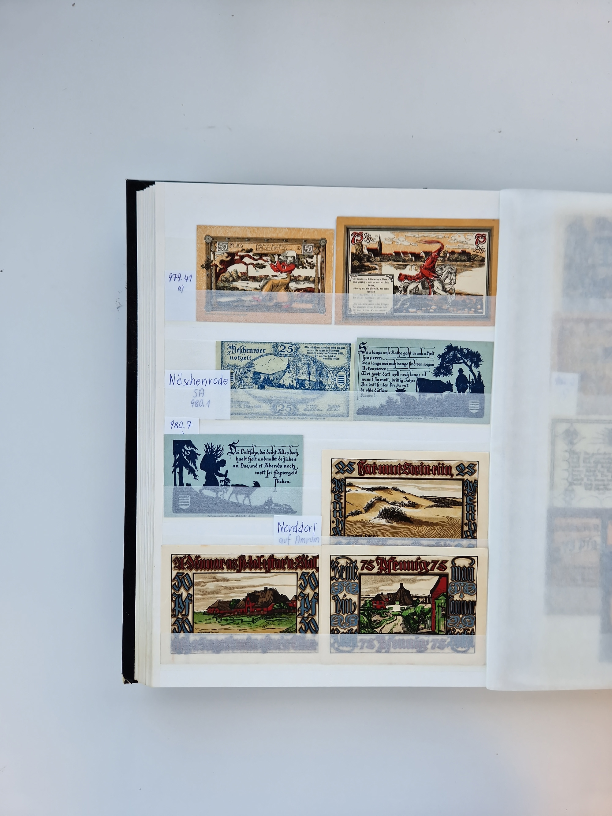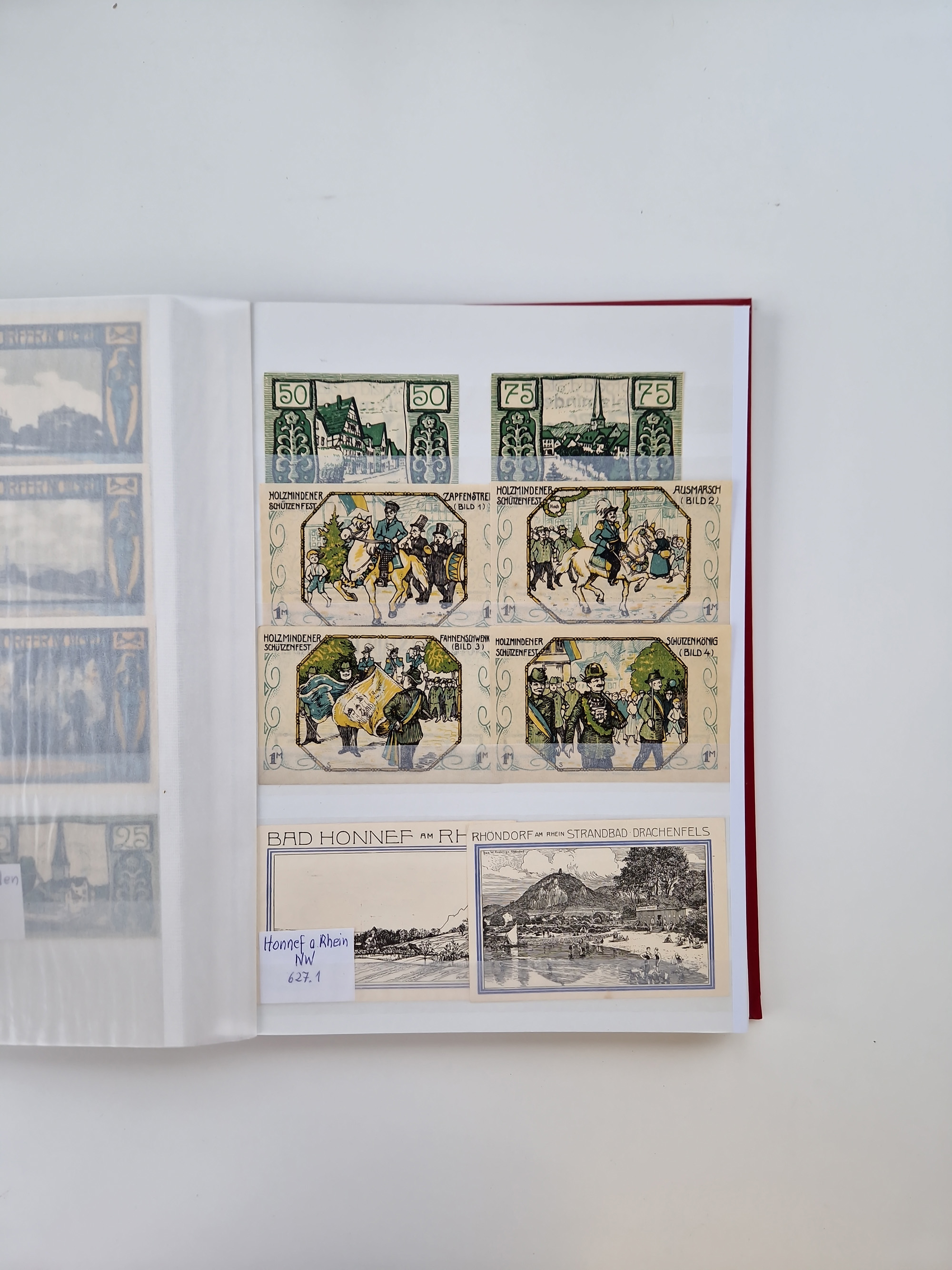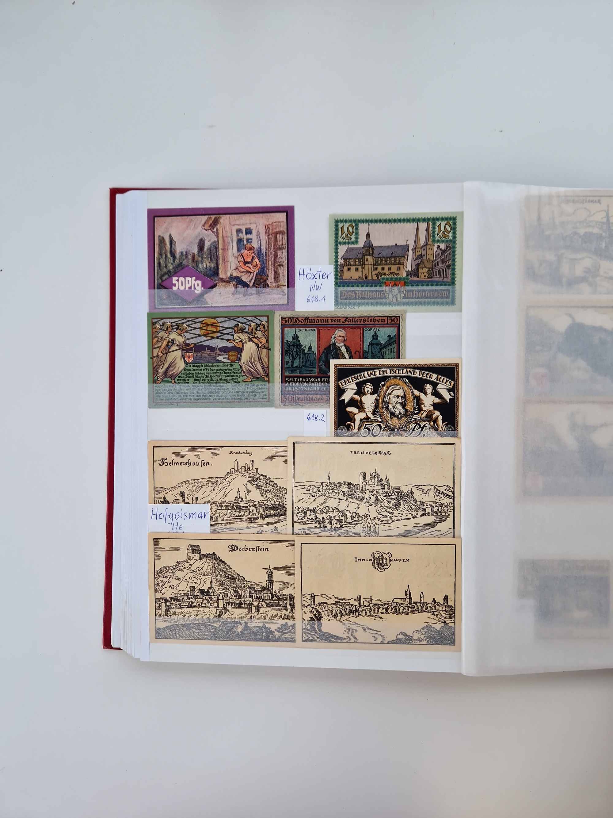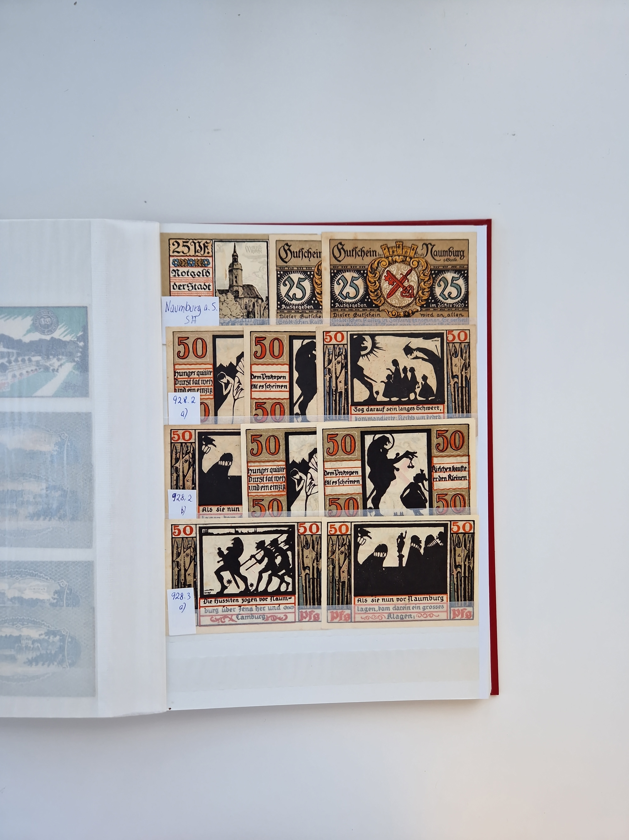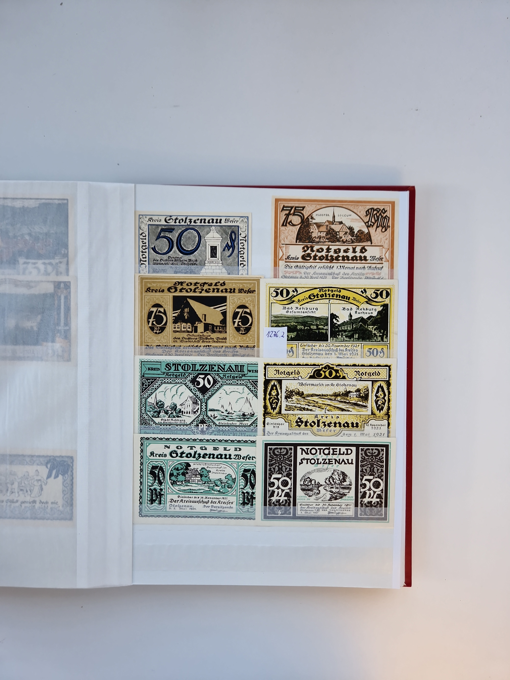 Notgeld-Serienscheine, saubere Sammlung in 16 meist dicken Steckalben, sauber nach Orten und Serien sortiert, überschlägig etwa 7/8000 Stück, dazu 4 Kataloge