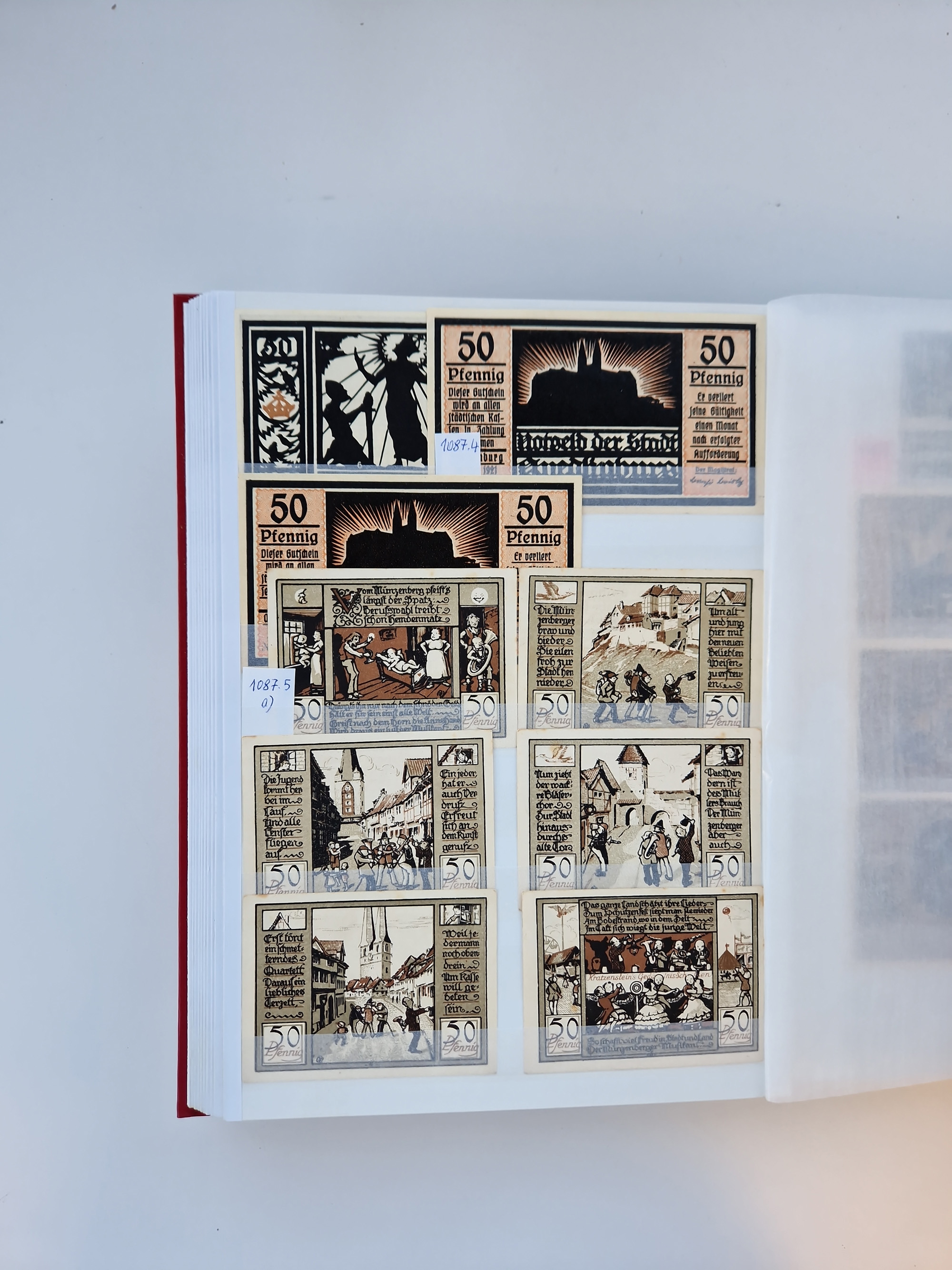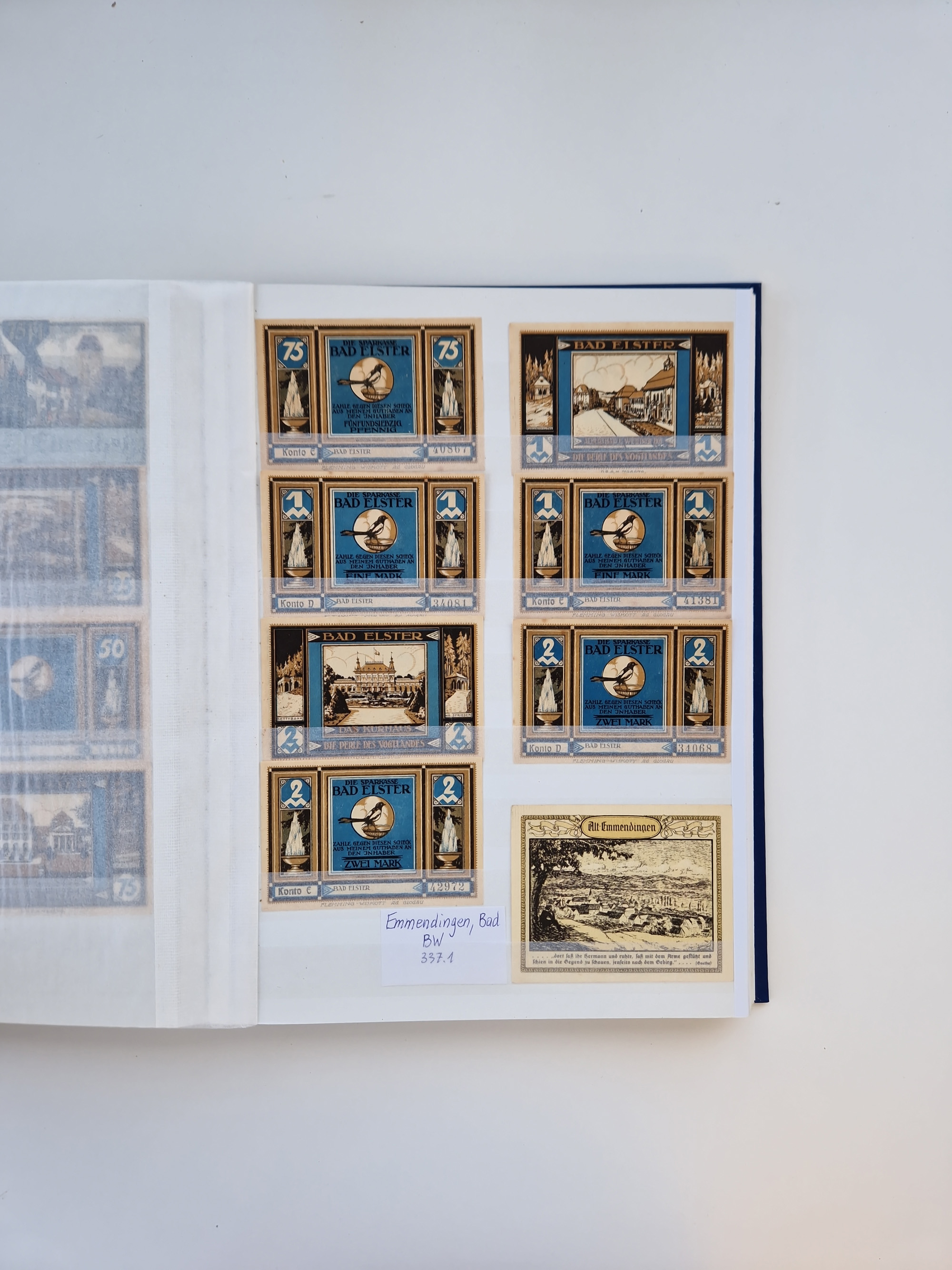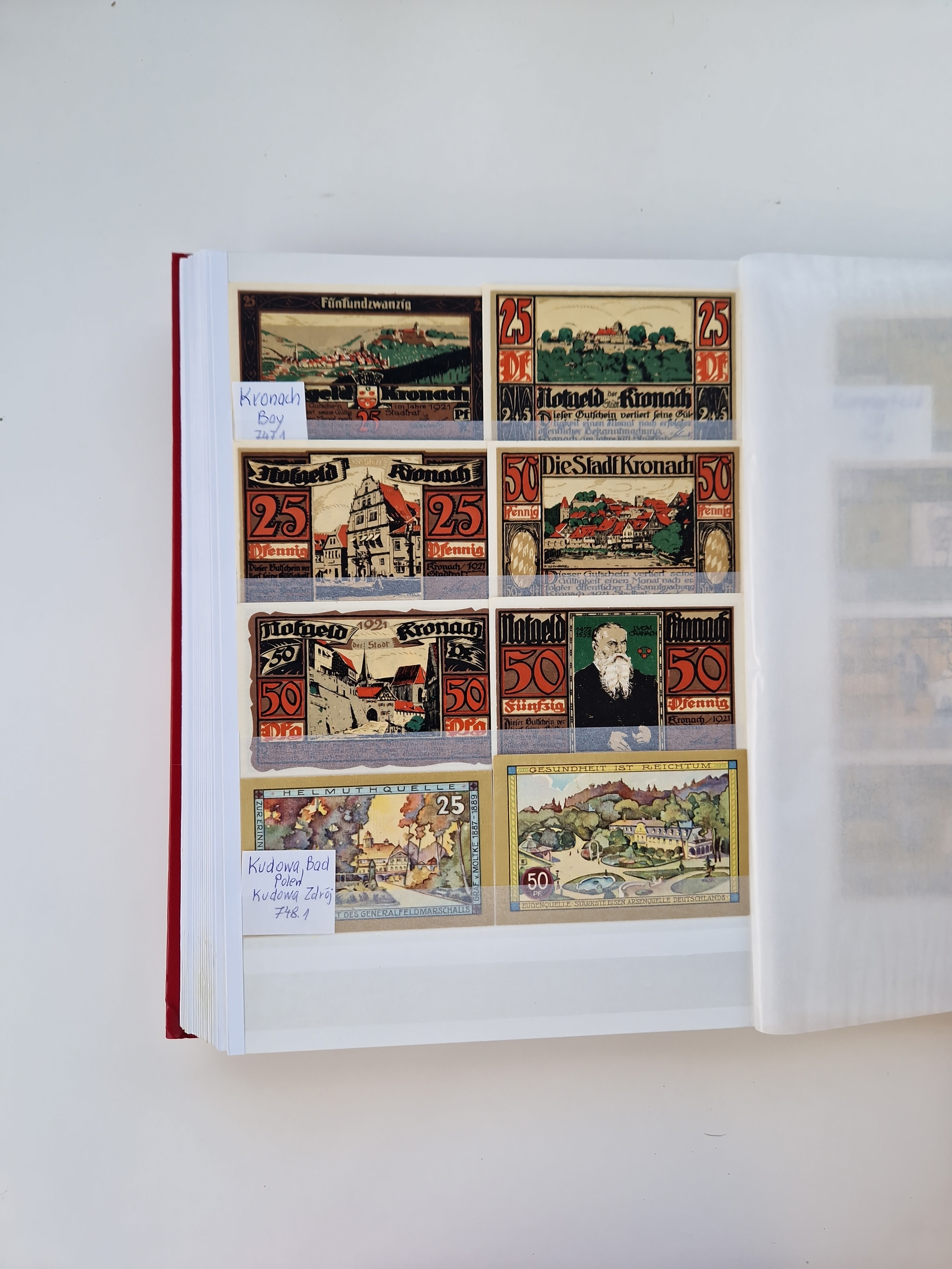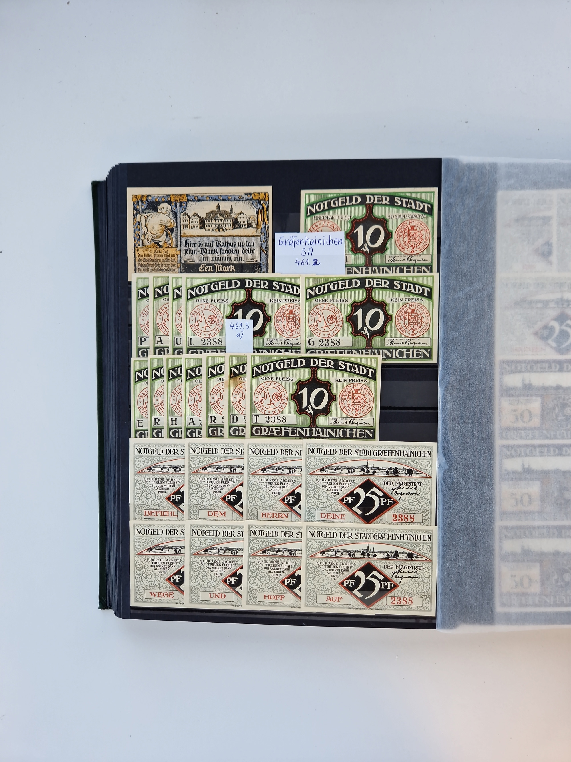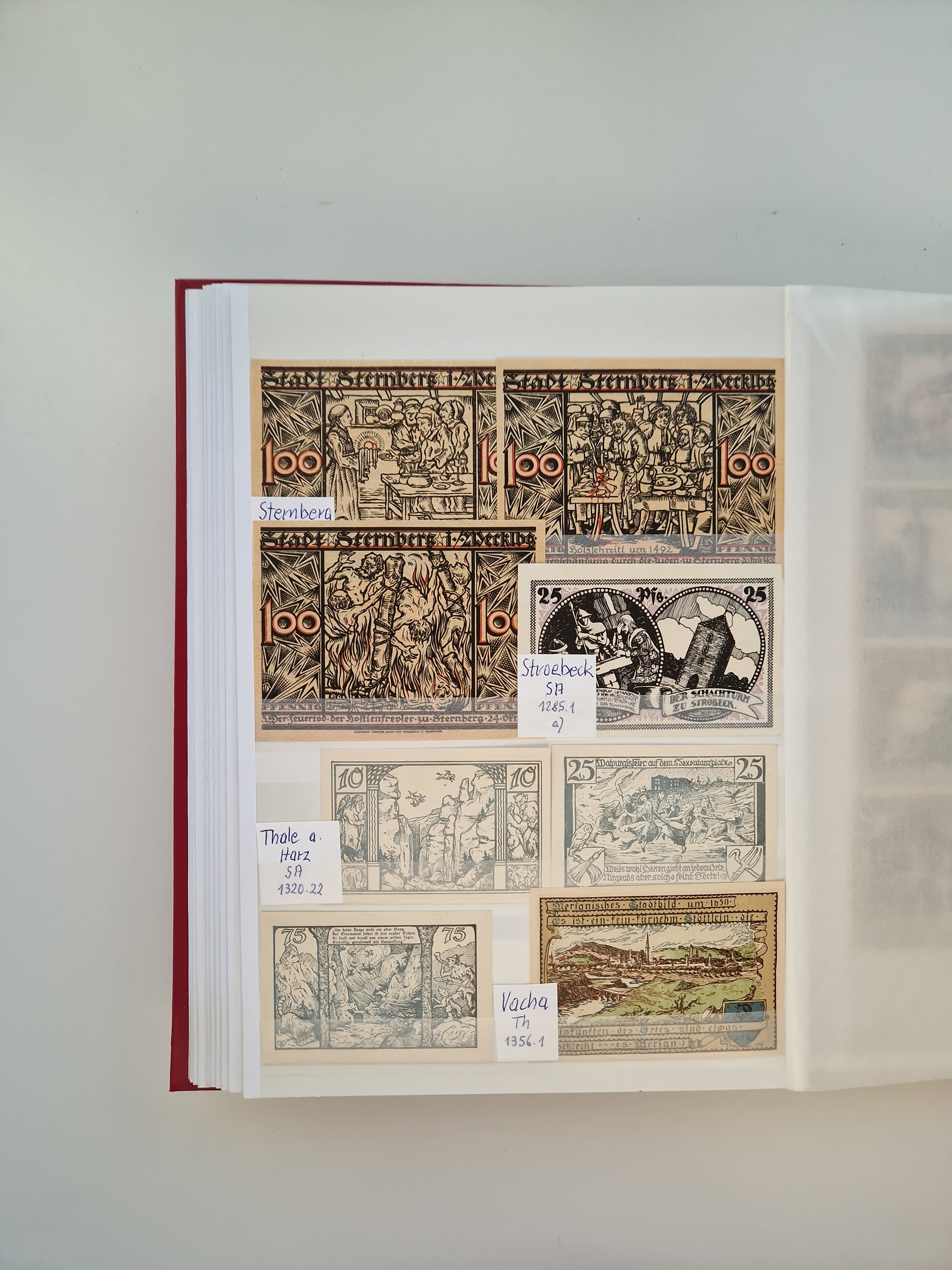 Notgeld-Serienscheine, saubere Sammlung in 16 meist dicken Steckalben, sauber nach Orten und Serien sortiert, überschlägig etwa 7/8000 Stück, dazu 4 Kataloge